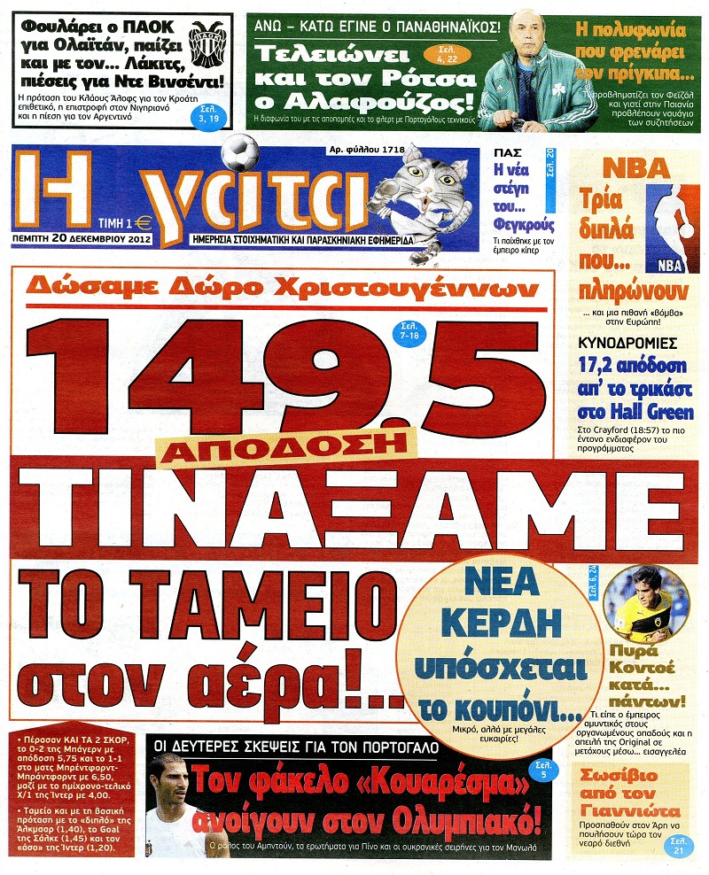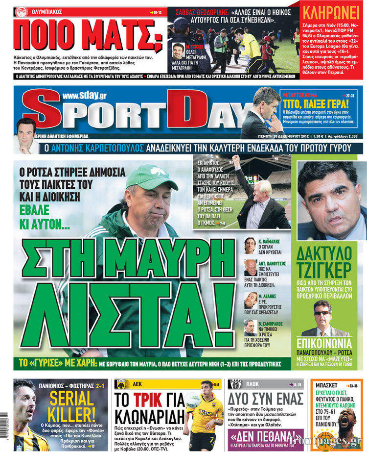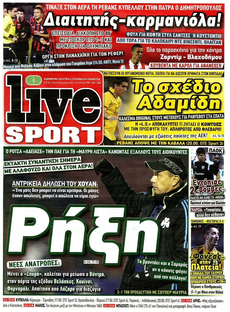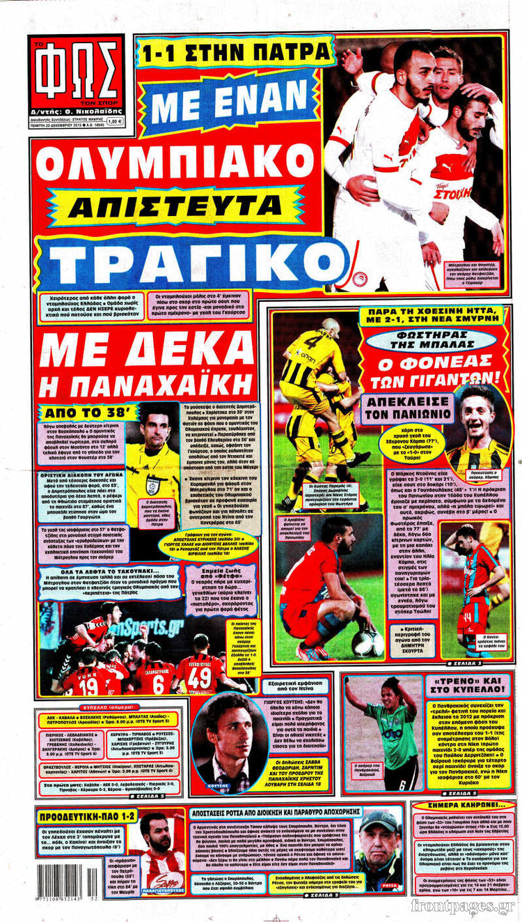 Οι αθλητικές εφημερίδες Enikos Newsroom 09:26, Πέμπτη 20 Δεκεμβρίου 2012 Media Οι αθλητικές εφημερίδες Τα πρωτοσέλιδα των αθλητικών εφημερίδων. ΑΘΛΗΤΙΚΑ ΕΦΗΜΕΡΙΔΕΣ ΠΡΩΤΟΣΕΛΙΔΑ ΠΡΩΤΟΣΕΛΙΔΑ Μοιράσου το: σχολίασε κι εσύ (0 σχόλια) Ακολουθήστε το enikos.gr στο Google News και μάθετε πρώτοι όλες τις ειδήσεις Δείτε όλες τις τελευταίες ειδήσεις από την Ελλάδα και τον Κόσμο στο enikos.gr Ειδήσεις Ροή Ειδήσεων 26 λεπτά πριν Κυριάκος Μητσοτάκης μετά το «όχι» των αγροτών: Διάλογος δεν γίνεται με τελεσίγραφα και οι λύσεις προκύπτουν μόνο από συζήτηση 3 ώρες πριν ΟΠΕΚΕΠΕ – Κρήτη: Στην Ευρωπαϊκή Εισαγγελία οι 15 από τους 16 συλληφθέντες για τις παράνομες επιδοτήσεις 1 ώρα πριν Πανεπιστήμιο Μπράουν: Βίντεο με αστυνομικούς να διασώζουν φοιτητές που είχαν κρυφτεί σε βιβλιοθήκη – Μαρτυρίες για σκηνές χάους και τρόμου 2 ώρες πριν Δώρο Χριστουγέννων 2025: Αντίστροφη μέτρηση για την καταβολή του – Ποιοι θα πάρουν περισσότερα φέτος και τι ισχύει για τη μερική απασχόληση 2 ώρες πριν Κυριακή με ανοιχτά καταστήματα σήμερα: Το ωράριο λειτουργίας – Τι ισχύει για τα σούπερ μάρκετ 31 λεπτά πριν Η ζωή γίνεται πολύ καλύτερη για 3 ζώδια – «Ίσως έχει έρθει η ώρα να κάνετε μια πραγματική και μόνιμη αλλαγή» 1 ώρα πριν Ξέσπασε σε κλάματα με το χριστουγεννιάτικο δώρο του άνδρα της – «Μου είπε ότι είμαι το πιο αχάριστο άτομο που έχει γνωρίσει» 2 ώρες πριν Στο φως απομεινάρια μιας ξεχασμένης πόλης που «σημαδεύτηκε από συγκρούσεις» – Είναι θαμμένη κάτω από σύγχρονη μεγαλούπολη 5 ώρες πριν Σπλαχνικό λίπος: Γιατρός του Χάρβαρντ αποκαλύπτει 7 τροφές που βοηθούν στη μείωσή του με φυσικό τρόπο 8 λεπτά πριν Ένωση Δικαστών και Εισαγγελέων: Ζητεί από την Πολιτεία μέτρα για να ανακτηθεί η κοινωνική εμπιστοσύνη στη Δικαιοσύνη 16 λεπτά πριν Πάτρα: Νέες κινητοποιήσεις αγροτών και κτηνοτρόφων – Πού υπάρχουν μπλόκα στη Δυτική Ελλάδα 24 λεπτά πριν Η γη της ελιάς: Η αρχή του τέλους του Δημοσθένη πλησιάζει 26 λεπτά πριν Κυριάκος Μητσοτάκης μετά το «όχι» των αγροτών: Διάλογος δεν γίνεται με τελεσίγραφα και οι λύσεις προκύπτουν μόνο από συζήτηση 31 λεπτά πριν Η ζωή γίνεται πολύ καλύτερη για 3 ζώδια – «Ίσως έχει έρθει η ώρα να κάνετε μια πραγματική και μόνιμη αλλαγή» ENIKOS NETWORK Η «βρώμικη» αλήθεια για τον στεγνωτήρα χεριών: Πώς διασπείρει τα μικρόβια αντί να τα εξαλείφει, σύμφωνα με το Κλίβελαντ Η Samantha του Sex & The City αποκαλύπτει την εμπειρία της με την εμμηνόπαυση: «Έμαθα καλύτερα τον εαυτό μου» e- ΕΦΚΑ και ΔΥΠΑ: Ο «χάρτης» των πληρωμών έως και τις 19 Δεκεμβρίου Εθνικό Μητρώο Παροχών και Ενισχύσεων: Ποιες αλλαγές έρχονται και πώς θα λειτουργεί Σύγχρονος Νοστράδαμος: Προειδοποιεί για «μεγάλο γεγονός» τους επόμενους μήνες που θα συγκλονίσει τη Βρετανία και τον κόσμο Τεστ παρατηρητικότητας: Μπορείτε να βρείτε τις 3 διαφορές στις εικόνες με έναν πιγκουίνο σε 14 δευτερόλεπτα περισσότερα 10:07 , Κυριακή 14 Δεκεμβρίου 2025 Η γη της ελιάς: Η αρχή του τέλους του Δημοσθένη πλησιάζει Η δραματική σειρά του MEGA «Η γη της ελιάς» επιφυλάσσει ακόμα μεγαλύτερες ανατροπές. Κάθε επει... 08:46 , Κυριακή 14 Δεκεμβρίου 2025 Η Realnews στο www.pressreader.com Διαβάστε την ψηφιακή έκδοση της εφημερίδας στην οθόνη του κινητού, του tablet και του υπολογισ... 08:15 , Κυριακή 14 Δεκεμβρίου 2025 Σήμερα με τη Realnews: Food & Travel μαζί Beaute και Μαστορέματα Σήμερα με τη Realnews: Food & Travel μαζί Beaute και Μαστορέματα Food & Travel Ετοιμάζ... 07:46 , Κυριακή 14 Δεκεμβρίου 2025 Σήμερα με τη Realnews: Σκάναρε & κέρδισε με το PaduApp Τo κορυφαίο app