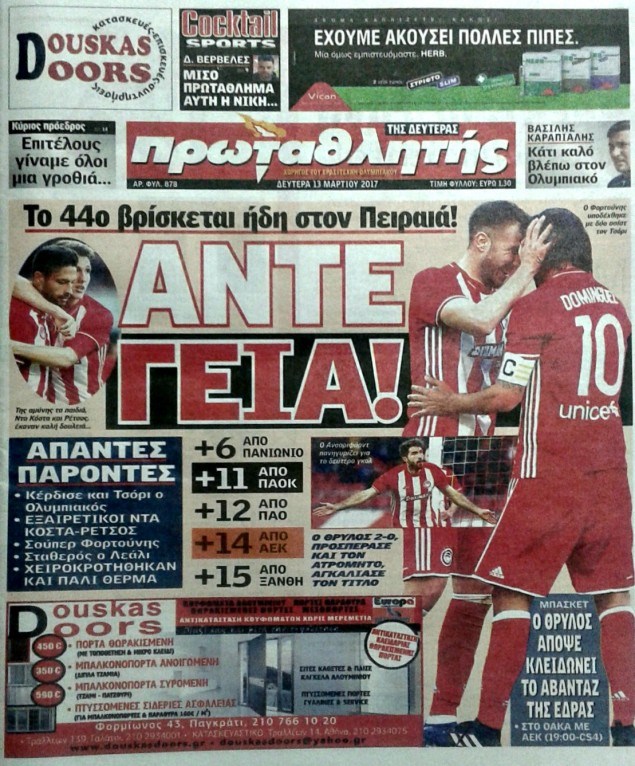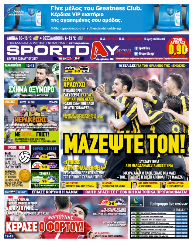 Οι αθλητικές εφημερίδες 13/3/2017 Κώστας Τεό 06:38, Δευτέρα 13 Μαρτίου 2017 Media Διαβάστε τα σημερινά πρωτοσέλιδα των αθλητικών εφημερίδων: ΑΘΛΗΤΙΚΕΣ ΕΦΗΜΕΡΙΔΕΣ ΠΡΩΤΟΣΕΛΙΔΑ Μοιράσου το: σχολίασε κι εσύ (0 σχόλια) Ακολουθήστε το enikos.gr στο Google News και μάθετε πρώτοι όλες τις ειδήσεις Δείτε όλες τις τελευταίες ειδήσεις από την Ελλάδα και τον Κόσμο στο enikos.gr Ειδήσεις Ροή Ειδήσεων 35 λεπτά πριν Αγρότες: «Όχι στον διάλογο, μας εμπαίζει η κυβέρνηση» – Αποφάσισαν κλιμάκωση των κινητοποιήσεων 1 ώρα πριν Την πρώτη Belharra παρέλαβε η χώρα μας, υψώθηκε η ελληνική σημαία στη φρεγάτα «Κίμων» – Δένδιας: «Το ισχυρότερο Πολεμικό Ναυτικό που είχε ποτέ ο ελληνισμός» 4 ώρες πριν Γιώργος Μαζωνάκης: «Δεν ζήτησα χρήματα, παρά μόνο ηθική δικαίωση» – Οι πρώτες δηλώσεις του 21χρονου μετά την κατάθεση της μήνυσης 19 λεπτά πριν Μιχάλης Χουρδάκης: «Είμαι διαθέσιμος να συμβάλω στην προσωρινή κάλυψη του ιατρείου της Ψερίμου» – Η επιστολή στον Άδωνι Γεωργιάδη 43 λεπτά πριν Εξώδικο Γεωργιάδη στην Κωνσταντοπούλου – «Με κατηγόρησε ότι έχω καταδικαστεί για παιδεραστία» 1 ώρα πριν Τα 5 ζώδια που θα ευνοηθούν στα οικονομικά τους το 2026 – «Τραβούν το χρήμα σαν μαγνήτες» 6 ώρες πριν Αν κάνετε συνεχώς αυτά τα 8 πράγματα με τα κατοικίδιά σας, σας λείπει η ανθρώπινη επαφή 2 ώρες πριν Αυτό που κρύβεται κάτω από τη Γροιλανδία θα μπορούσε να ανατρέψει όσα γνωρίζουμε για την άνοδο της στάθμης των θαλασσών 1 ημέρα πριν 20 χρόνια τα Χριστούγεννα ξεκινούν στα Public με μεγάλη ποικιλία σε δώρα! 3 λεπτά πριν Σμαράγδα Καρύδη για την περούκα της «Ντάλιας»: «Την είχα 20 χρόνια και τώρα μπήκε ξανά σε κουτί» 8 λεπτά πριν Άγιος έρωτας: Η Χριστίνα εξομολογείται στον πατέρα Νικόλαο, απόψε στις 21:00 στον Alpha 13 λεπτά πριν ΕΛΚ – Κωστής Χατζηδάκης: Παρεμβάσεις σε 9 τομείς για την ανταγωνιστικότητα 19 λεπτά πριν Μιχάλης Χουρδάκης: «Είμαι διαθέσιμος να συμβάλω στην προσωρινή κάλυψη του ιατρείου της Ψερίμου» – Η επιστολή στον Άδωνι Γεωργιάδη 24 λεπτά πριν Κουίζ για την παλιά Αθήνα: Αναγνωρίζετε την περιοχή; Είναι από τις πιο γνωστές ENIKOS NETWORK 100 χρόνια ΠΙΣ: Ένας αιώνας προσφοράς στην Ιατρική και την κοινωνία Ένα ποτήρι την ημέρα από αυτόν τον χυμό μειώνει τη χοληστερίνη, τη φλεγμονή και την πίεση Χριστούγεννα και Πρωτοχρονιά: Δείτε πόσα χρήματα θα πάρουν ως αμοιβή όσοι εργαστούν Κρατική επιχορήγηση έως 14.500 ευρώ: Ποιοι θα λάβουν από σήμερα την προκαταβολή στον τραπεζικό λογαριασμό τους Χαρτογραφώντας το «σημείο χωρίς επιστροφή»: Για πρώτη φορά αποκαλύπτεται με λεπτομέρεια το ακανθώδες όριο της ατμόσφαιρας τ... Η Google καταργεί τη λειτουργία «dark web report» – Πώς θα μπορούν οι χρήστες να διαγράφουν τα δεδομένα τους περισσότερα 17:20 , Πέμπτη 18 Δεκεμβρίου 2025 Άγιος έρωτας: Η Χριστίνα εξομολογείται στον πατέρα Νικόλαο, απόψε στις 21:00 στον Alpha Η Νότα αποφασίζει να εκδικηθεί τον Πέτρο και τον Στέφανο, για χάρη του Λούη, όμως τα πράγματα ... 16:50 , Πέμπτη 18 Δεκεμβρίου 2025 Να μ’ αγαπάς: Ζωή και Φωτεινή συμφιλιώνονται ως μάνα με κόρη, απόψε στις 20:00 Η ταυτότητα του Άγγελου αποκαλύπτεται στο νέο επεισόδιο της σειράς “Να μ’ αγαπάς... 15:52 , Πέμπτη 18 Δεκεμβρίου 2025 Το Σπίτι Δίπλα Στο Ποτάμι: Το καθηλωτικό τελευταίο επεισόδιο για το 2025 απόψε στις 22:30 Καθηλώνει το σημερινό επεισόδιο της σειράς “Το Σπίτι Δίπλα Στο Ποτάμι” που έρχεται... 15:20 , Πέμπτη 18 Δεκεμβρίου 2025 Άγιος έρωτας – Η Ελευθερία Αρβανιτάκη τραγουδά και ο Γιάννης Τσορτέκης καθηλώνει με τον χορό του Ο Κλεά