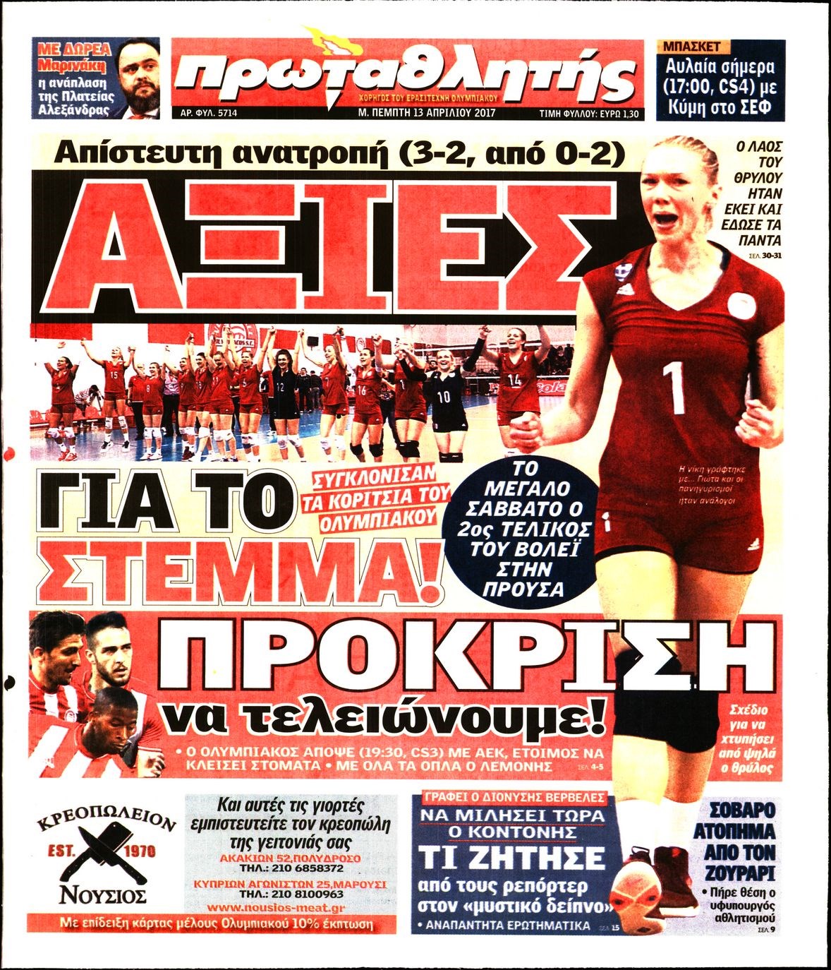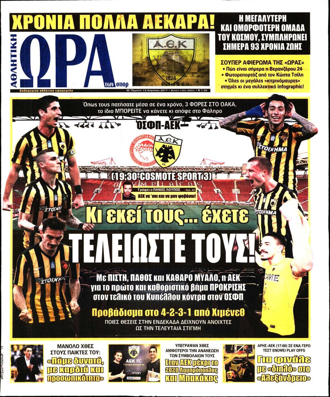 Οι αθλητικές εφημερίδες 13/4/2017