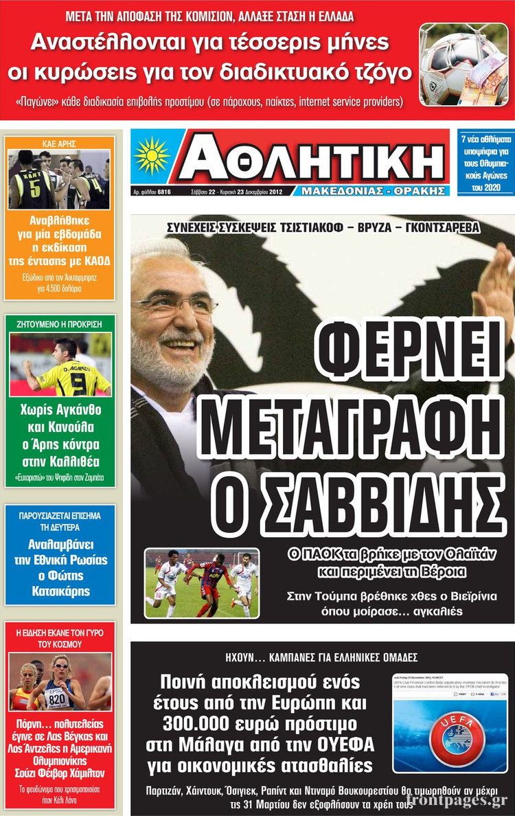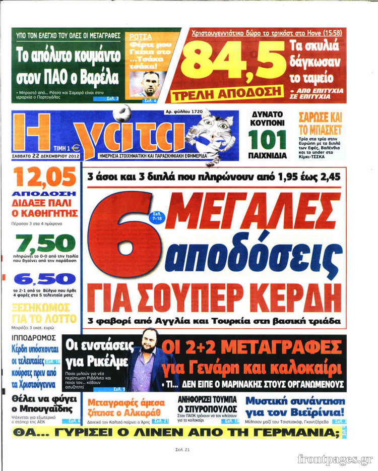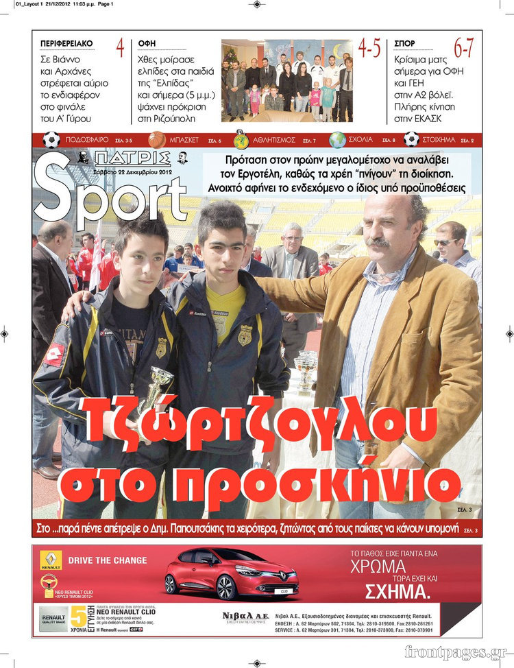 Οι αθλητικές εφημερίδες Enikos Newsroom 09:57, Σάββατο 22 Δεκεμβρίου 2012 Media Οι αθλητικές εφημερίδες ΑΘΛΗΤΙΚΕΣ ΕΦΗΜΕΡΙΔΕΣ Μοιράσου το: σχολίασε κι εσύ (0 σχόλια) Ακολουθήστε το enikos.gr στο Google News και μάθετε πρώτοι όλες τις ειδήσεις Δείτε όλες τις τελευταίες ειδήσεις από την Ελλάδα και τον Κόσμο στο enikos.gr Ειδήσεις Ροή Ειδήσεων 8 ώρες πριν Εκτός ευρωομάδας ΣΥΡΙΖΑ ο Νίκος Παππάς μετά την επίθεση στον δημοσιογράφο Νίκο Γιαννόπουλο – Η μήνυση και οι νέες δηλώσεις 9 ώρες πριν «Αγριεύουν» οι αγρότες: «Δεν συντρέχει λόγος συνάντησης με τον πρωθυπουργό» – Ώρα αποφάσεων στη σύσκεψη της Πέμπτης 8 ώρες πριν Κυψέλη: Χωρίς την οικογένειά της δίπλα της απολογήθηκε η 16χρονη – «Της είχε επιτεθεί κάποιος για να την βιάσει, φοβήθηκε και κυκλοφορούσε με μαχαίρι» 8 ώρες πριν Politico: Το πρόβλημα της Ευρώπης δεν είναι το Βέλγιο αλλά ο Ντόναλντ Τραμπ 10 ώρες πριν Αλεξανδρούπολη: Πολυοργανική ανεπάρκεια λόγω υποσιτισμού η αιτία θανάτου του 3χρονου αγοριού 1 ώρα πριν Καούρα: Το μπαχαρικό που είναι «εξίσου αποτελεσματικό» με την ομεπραζόλη, σύμφωνα με ειδικούς 2 ώρες πριν Τα ζώδια σήμερα, Πέμπτη 18 Δεκεμβρίου: Λέοντες, η καρδιά σας θέλει να εκφραστεί 8 ώρες πριν Μυστήριο με τεράστιες κυκλικές πέτρες 200 κιλών – Ανακαλύφθηκαν τυχαία κατά τη διάρκεια οδικών έργων και κανείς δεν ξέρει από πού προέρχονται 22 ώρες πριν 20 χρόνια τα Χριστούγεννα ξεκινούν στα Public με μεγάλη ποικιλία σε δώρα! 12 λεπτά πριν Εορτολόγιο: Ποιοι γιορτάζουν σήμερα 18 Δεκεμβρίου 23 λεπτά πριν Επιχειρήσεις: Έρχονται νέα μέτρα φορολογικών ελαφρύνσεων – Τα σχέδια για την προκαταβολή φόρου και το τέλος επιτηδεύματος 31 λεπτά πριν ΗΠΑ: Οριστική άρση κυρώσεων κατά της Συρίας – Ανοίγει ο δρόμος για επενδύσεις 39 λεπτά πριν Οι τελευταίες εξελίξεις στην εμπορική συμφωνία Ευρωπαϊκής Ένωσης – Mercosur 43 λεπτά πριν Ρεκόρ εσόδων για τον Παναμά από τα τέλη διέλευσης της Διώρυγας ENIKOS NETWORK Μπορείτε να εντοπίσετε το ποντικάκι που κρύβεται πίσω από όλα τα μανιτάρια; Μόνο όσοι έχουν τα μάτια γερακιού μπορούν να λύ... Το «λουλούδι σκαντζόχοιρος» που μπορεί να ενισχύσει το ανοσοποιητικό, να μειώσει τη φλεγμονή και να ρυθμίσει το σάκχαρο ΕΛΣΤΑΤ: Τι δείχνουν τα νέα στοιχεία για τις ηλεκτρονικές παραγγελίες των επιχειρήσεων ΚΕΠΕ: Οι 3 διακριτές συμβολές των ΜμΕ και της μεταποίησης στην ελληνική οικονομία Χαρτογραφώντας το «σημείο χωρίς επιστροφή»: Για πρώτη φορά αποκαλύπτεται με λεπτομέρεια το ακανθώδες όριο της ατμόσφαιρας τ... Η Google καταργεί τη λειτουργία «dark web report» – Πώς θα μπορούν οι χρήστες να διαγράφουν τα δεδομένα τους περισσότερα 05:48 , Πέμπτη 18 Δεκεμβρίου 2025 Οι οικονομικές εφημερίδες 18/12/2025 Διαβάστε τα πρωτοσέλιδα από τις οικονομικές εφημερίδες, σήμερα 18/12/2025. 05:43 , Πέμπτη 18 Δεκεμβρίου 2025 Οι αθλητικές εφημερίδες 18/12/2025 Διαβάστε τα πρωτοσέλιδα από τις αθλητικές εφημερίδες, σήμερα 18/12/2025. 05:38 , Πέμπτη 18 Δεκεμβρίου 2025 Οι πολιτικές εφημερίδες 18/12/2025 Διαβάστε τα πρωτοσέλιδα από τις πολιτικές εφημερίδες, σήμερα 18/12/2025. 05:22 , Πέμπτη 18 Δεκεμβρίου 2025 Το Ποντίκι σήμερα Πέμπτη 18/12/2025 Διαβάστε το πρωτοσέλιδο της εφημερίδας «Το Ποντίκι» σήμερα 18/12/2025. ΤΕΛΕΥΤΑΙΕΣ ΕΙΔΗΣΕΙΣ 12 λεπτά πριν Εορτολόγιο: Ποιοι γιορτάζουν σήμερα 18 Δεκεμβρίου 23 λεπτά πριν Επιχειρήσεις: Έρχονται νέα μέτρα φορολογικών... 31 λεπτά πριν ΗΠΑ: Οριστική άρση κυρώσεων κατά της Συρίας – Ανοίγει... 39 λεπτά πριν Οι τελευταίες εξελίξεις στην εμπορική συμφωνία... 43 λεπτά πριν Ρεκόρ εσόδων για τον 