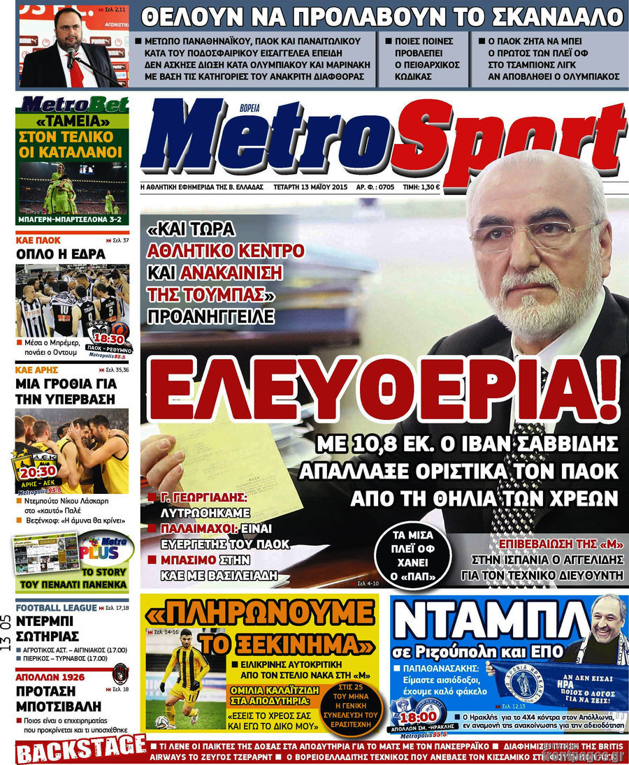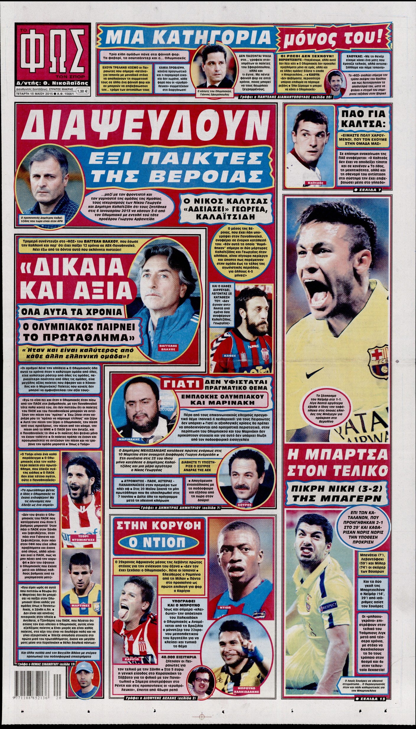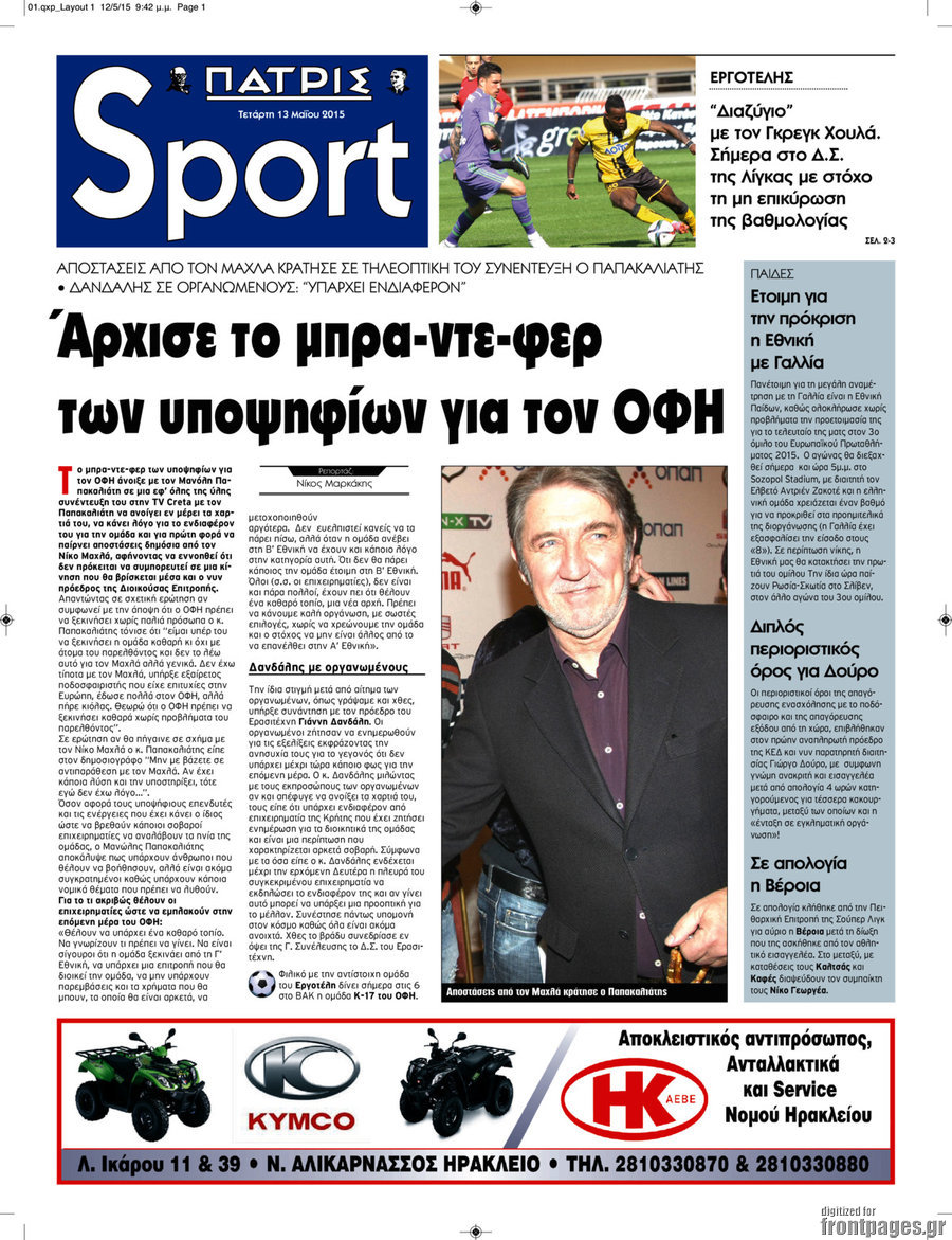 Οι αθλητικές εφημερίδες 13/5/2015 Enikos Newsroom 06:43, Τετάρτη 13 Μαΐου 2015 Media Διαβάστε τα σημερινά πρωτοσέλιδα των αθλητικών εφημερίδων: ΑΘΛΗΤΙΚΕΣ ΕΦΗΜΕΡΙΔΕΣ ΠΡΩΤΟΣΕΛΙΔΑ Μοιράσου το: σχολίασε κι εσύ (0 σχόλια) Ακολουθήστε το enikos.gr στο Google News και μάθετε πρώτοι όλες τις ειδήσεις Δείτε όλες τις τελευταίες ειδήσεις από την Ελλάδα και τον Κόσμο στο enikos.gr Ειδήσεις Ροή Ειδήσεων 3 ώρες πριν Χριστούγεννα στα μπλόκα: Επιμένουν στις κινητοποιήσεις τους οι αγρότες – Ανοίγουν τα διόδια το Σαββατοκύριακο 4 ώρες πριν Ουκρανία: Η άνευ προηγουμένου επίθεση σε ρωσικό τάνκερ στη Μεσόγειο και το μήνυμα προς στον Πούτιν – Το «μακρύ χέρι» του Κιέβου 3 ώρες πριν Πούτιν: Τα μηνύματα σε Ευρώπη και ΝΑΤΟ από το μαραθώνιο «σόου» του – Η απαίτηση για «σεβασμό» και η ειρήνη «με τους όρους» της Μόσχας 4 ώρες πριν Τραμπ: Δεν αποκλείει την πιθανότητα ενός πολέμου στη Βενεζουέλα – «Ο Μαδούρο ξέρει καλύτερα από τον καθένα τι ακριβώς θέλω» 4 ώρες πριν Συνεχίζει να προκαλεί ο Μίτσκοσκι: «Για μένα το όνομα Μακεδονία είναι ιερό» 3 ώρες πριν Ανακαλύφθηκαν αρχαία χρυσά νομίσματα 2.200 ετών που απεικονίζουν τον θεό Απόλλωνα – Η άγνωστη σύνδεση με τον Φίλιππο Β΄ της Μακεδονίας 4 ώρες πριν Ύπνος: Μια κρυφή κατάσταση του εγκεφάλου πριν από τον ύπνο μπορεί να είναι το “κλειδί” για υψηλή ευφυΐα και δημιουργικότητα 5 ώρες πριν Αριθμολογία: Οι άνθρωποι που έχουν γεννηθεί αυτές τις 4 ημερομηνίες, συχνά παρεξηγούνται – «Η καλοσύνη τους κρύβει τεράστια δύναμη» 6 ώρες πριν Ξεχάστε το καθάρισμα το Σαββατοκύριακο: Ο «κανόνας των 20 λεπτών» που θα σας λύσει τα χέρια 11 λεπτά πριν Πρόταση γάμου στο ΣΕΦ κατά την διάρκεια του αγώνα Ολυμπιακός-Βιλερμπάν – Δείτε βίντεο 26 λεπτά πριν Euroleague: Επέστρεψε στις νίκες ο Ολυμπιακός, πήρε την ματσάρα της χρονιάς η Μπάρτσα – Τα αποτελέσματα και η βαθμολογία 41 λεπτά πριν Συρία: Μαζικά πλήγματα των ΗΠΑ σε θέσεις του Ισλαμικού Κράτους – Χέγκσεθ: «Δεν είναι αρχή πολέμου, είναι μια δήλωση εκδίκησης» για το θάνατο των στρατιωτών μας 53 λεπτά πριν Ουκρανία: Ολοκληρώθηκαν οι συνομιλίες με τους Αμερικανούς κι Ευρωπαίους διαπραγματευτές 1 ώρα πριν Μπαρτσελόνα – Μπασκόνια 134-124: Οι «μπλαουγκράνα» πήραν το ματς της χρονιάς ύστερα από τρεις παρατάσεις ENIKOS NETWORK Το ΕΚΑΒ τιμήθηκε από την Ακαδημία Αθηνών για τα 40 χρόνια προσφοράς του Έχετε πραγματικά μεγάλη καρδιά; 10 χαρακτηριστικά όσων έχουν καλοσύνη Αναστολή μέτρων αναγκαστικής εκτέλεσης για κτηνοτρόφους που πλήττονται από την ευλογιά των αιγοπροβάτων Πλήρης επάρκεια προϊόντων στις λαϊκές της Αττικής, παρά τις αγροτικές κινητοποιήσεις – Τι απαντούν οι πωλητές Χαρτογραφώντας το «σημείο χωρίς επιστροφή»: Για πρώτη φορά αποκαλύπτεται με λεπτομέρεια το ακανθώδες όριο της ατμόσφαιρας τ... Η Google καταργεί τη λειτουργία «dark web report» – Πώς θα μπορούν οι χρήστες να διαγράφουν τα δεδομένα τους περισσότερα 22:42 , Παρασκευή 19 Δεκεμβρίου 2025 Γιώργος Γιαννόπουλος για “Το σόι σου”: “Είναι ευτυχία και ευλογία αυτή η σειρά” «Είναι ευτυχία και ευλογία η συγκυρία αυτής της σειράς», θα πει ο Γιώργος Γιαννόπουλος -ο αγαπ... 20:37 , Παρασκευή 19 Δεκεμβρίου 2025 Don’t Forget The Lyrics: Η Έλλη Κοκκίνου υποδέχεται 4 παίκτες που θα κάνουν τα πάντα για να μη χάσουν ούτε… μισή λέξη από τους στίχους Το «Don’t Forget The Lyrics» επιστρέφει απόψε, Παρασκευή 19 Δεκεμβρίου, στις 21:00 με νέο επει... 19:31 , Παρασκευή 19 Δεκεμβρίου 2025 GNTM: Απόψε ο μεγάλος τελικός για τους 4 φιναλίστ Έπειτα από μήνες γεμάτ