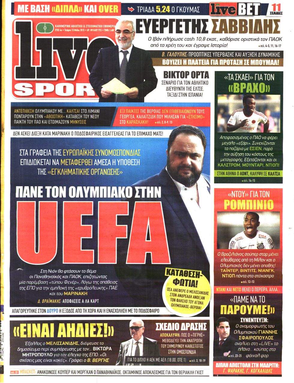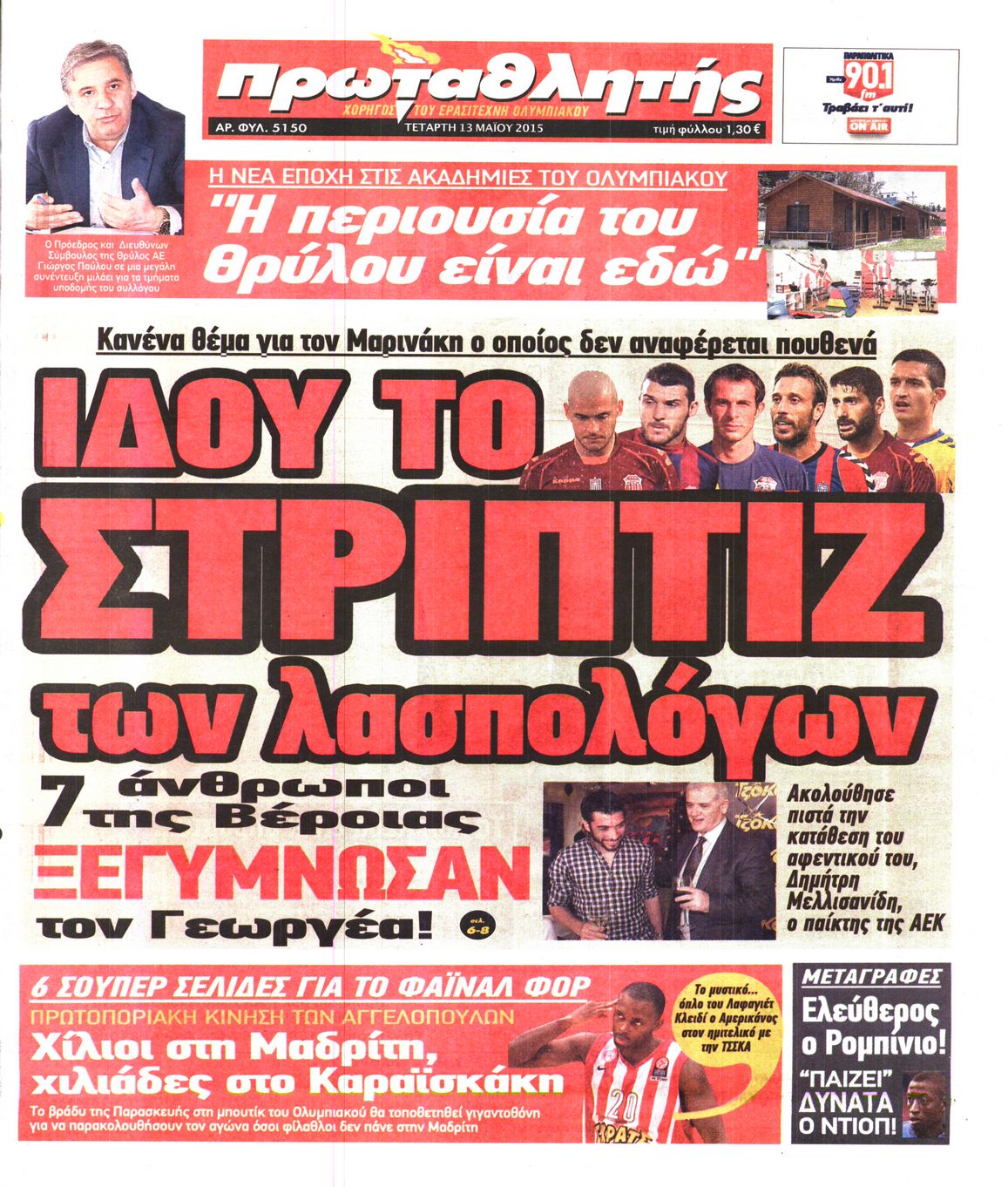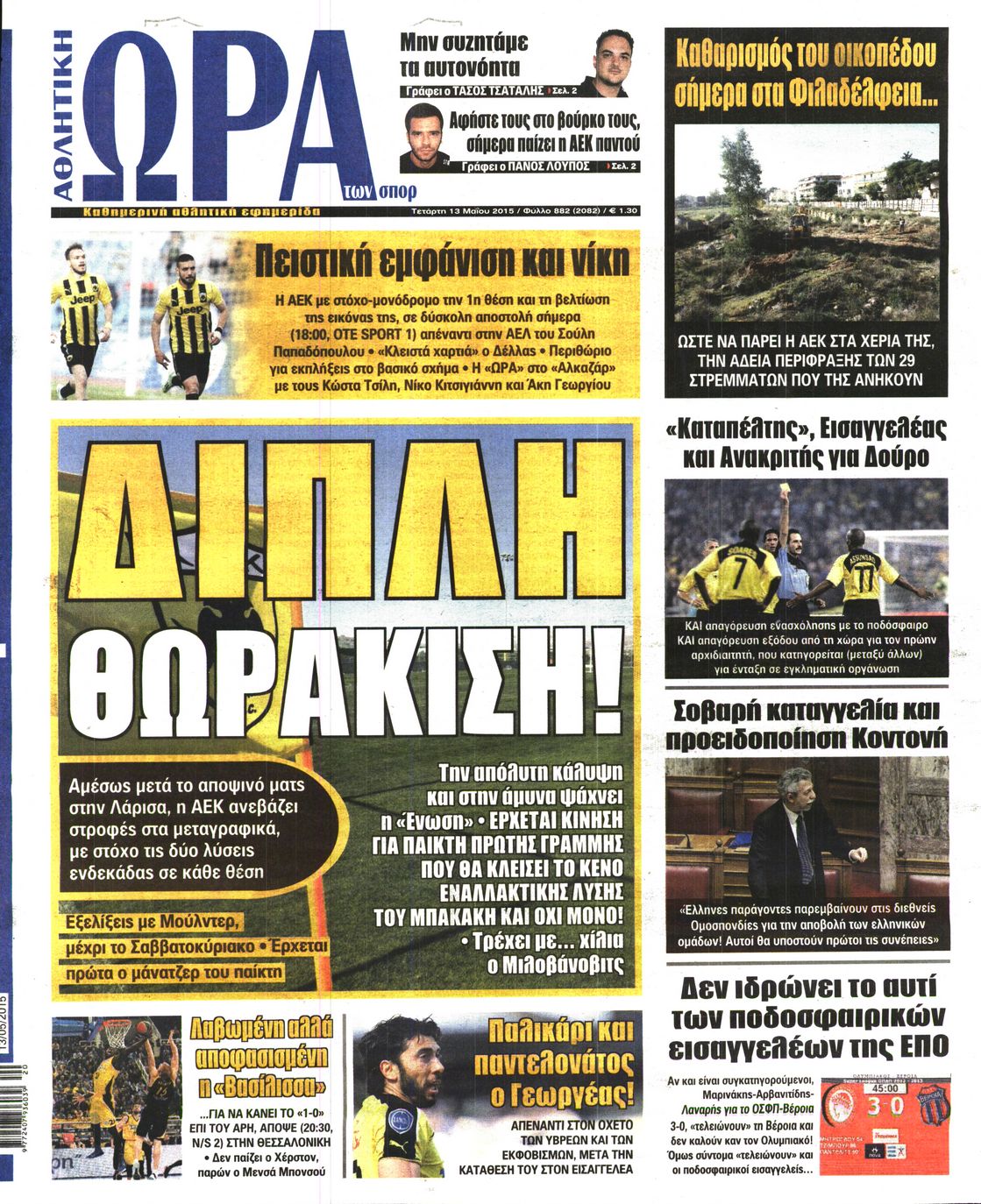 Οι αθλητικές εφημερίδες 13/5/2015 Enikos Newsroom 06:43, Τετάρτη 13 Μαΐου 2015 Media Διαβάστε τα σημερινά πρωτοσέλιδα των αθλητικών εφημερίδων: ΑΘΛΗΤΙΚΕΣ ΕΦΗΜΕΡΙΔΕΣ ΠΡΩΤΟΣΕΛΙΔΑ Μοιράσου το: σχολίασε κι εσύ (0 σχόλια) Ακολουθήστε το enikos.gr στο Google News και μάθετε πρώτοι όλες τις ειδήσεις Δείτε όλες τις τελευταίες ειδήσεις από την Ελλάδα και τον Κόσμο στο enikos.gr Ειδήσεις Ροή Ειδήσεων 3 ώρες πριν Χριστούγεννα στα μπλόκα: Επιμένουν στις κινητοποιήσεις τους οι αγρότες – Ανοίγουν τα διόδια το Σαββατοκύριακο 4 ώρες πριν Ουκρανία: Η άνευ προηγουμένου επίθεση σε ρωσικό τάνκερ στη Μεσόγειο και το μήνυμα προς στον Πούτιν – Το «μακρύ χέρι» του Κιέβου 3 ώρες πριν Πούτιν: Τα μηνύματα σε Ευρώπη και ΝΑΤΟ από το μαραθώνιο «σόου» του – Η απαίτηση για «σεβασμό» και η ειρήνη «με τους όρους» της Μόσχας 4 ώρες πριν Τραμπ: Δεν αποκλείει την πιθανότητα ενός πολέμου στη Βενεζουέλα – «Ο Μαδούρο ξέρει καλύτερα από τον καθένα τι ακριβώς θέλω» 4 ώρες πριν Συνεχίζει να προκαλεί ο Μίτσκοσκι: «Για μένα το όνομα Μακεδονία είναι ιερό» 3 ώρες πριν Ανακαλύφθηκαν αρχαία χρυσά νομίσματα 2.200 ετών που απεικονίζουν τον θεό Απόλλωνα – Η άγνωστη σύνδεση με τον Φίλιππο Β΄ της Μακεδονίας 4 ώρες πριν Ύπνος: Μια κρυφή κατάσταση του εγκεφάλου πριν από τον ύπνο μπορεί να είναι το “κλειδί” για υψηλή ευφυΐα και δημιουργικότητα 5 ώρες πριν Αριθμολογία: Οι άνθρωποι που έχουν γεννηθεί αυτές τις 4 ημερομηνίες, συχνά παρεξηγούνται – «Η καλοσύνη τους κρύβει τεράστια δύναμη» 6 ώρες πριν Ξεχάστε το καθάρισμα το Σαββατοκύριακο: Ο «κανόνας των 20 λεπτών» που θα σας λύσει τα χέρια 11 λεπτά πριν Πρόταση γάμου στο ΣΕΦ κατά την διάρκεια του αγώνα Ολυμπιακός-Βιλερμπάν – Δείτε βίντεο 26 λεπτά πριν Euroleague: Επέστρεψε στις νίκες ο Ολυμπιακός, πήρε την ματσάρα της χρονιάς η Μπάρτσα – Τα αποτελέσματα και η βαθμολογία 41 λεπτά πριν Συρία: Μαζικά πλήγματα των ΗΠΑ σε θέσεις του Ισλαμικού Κράτους – Χέγκσεθ: «Δεν είναι αρχή πολέμου, είναι μια δήλωση εκδίκησης» για το θάνατο των στρατιωτών μας 53 λεπτά πριν Ουκρανία: Ολοκληρώθηκαν οι συνομιλίες με τους Αμερικανούς κι Ευρωπαίους διαπραγματευτές 1 ώρα πριν Μπαρτσελόνα – Μπασκόνια 134-124: Οι «μπλαουγκράνα» πήραν το ματς της χρονιάς ύστερα από τρεις παρατάσεις ENIKOS NETWORK Το ΕΚΑΒ τιμήθηκε από την Ακαδημία Αθηνών για τα 40 χρόνια προσφοράς του Έχετε πραγματικά μεγάλη καρδιά; 10 χαρακτηριστικά όσων έχουν καλοσύνη Αναστολή μέτρων αναγκαστικής εκτέλεσης για κτηνοτρόφους που πλήττονται από την ευλογιά των αιγοπροβάτων Πλήρης επάρκεια προϊόντων στις λαϊκές της Αττικής, παρά τις αγροτικές κινητοποιήσεις – Τι απαντούν οι πωλητές Χαρτογραφώντας το «σημείο χωρίς επιστροφή»: Για πρώτη φορά αποκαλύπτεται με λεπτομέρεια το ακανθώδες όριο της ατμόσφαιρας τ... Η Google καταργεί τη λειτουργία «dark web report» – Πώς θα μπορούν οι χρήστες να διαγράφουν τα δεδομένα τους περισσότερα 22:42 , Παρασκευή 19 Δεκεμβρίου 2025 Γιώργος Γιαννόπουλος για “Το σόι σου”: “Είναι ευτυχία και ευλογία αυτή η σειρά” «Είναι ευτυχία και ευλογία η συγκυρία αυτής της σειράς», θα πει ο Γιώργος Γιαννόπουλος -ο αγαπ... 20:37 , Παρασκευή 19 Δεκεμβρίου 2025 Don’t Forget The Lyrics: Η Έλλη Κοκκίνου υποδέχεται 4 παίκτες που θα κάνουν τα πάντα για να μη χάσουν ούτε… μισή λέξη από τους στίχους Το «Don’t Forget The Lyrics» επιστρέφει απόψε, Παρασκευή 19 Δεκεμβρίου, στις 21:00 με νέο επει... 19:31 , Παρασκευή 19 Δεκεμβρίου 2025 GNTM: Απόψε ο μεγάλος τελικός για τους 4 φιναλίστ Έπειτα από μήνες γεμάτ