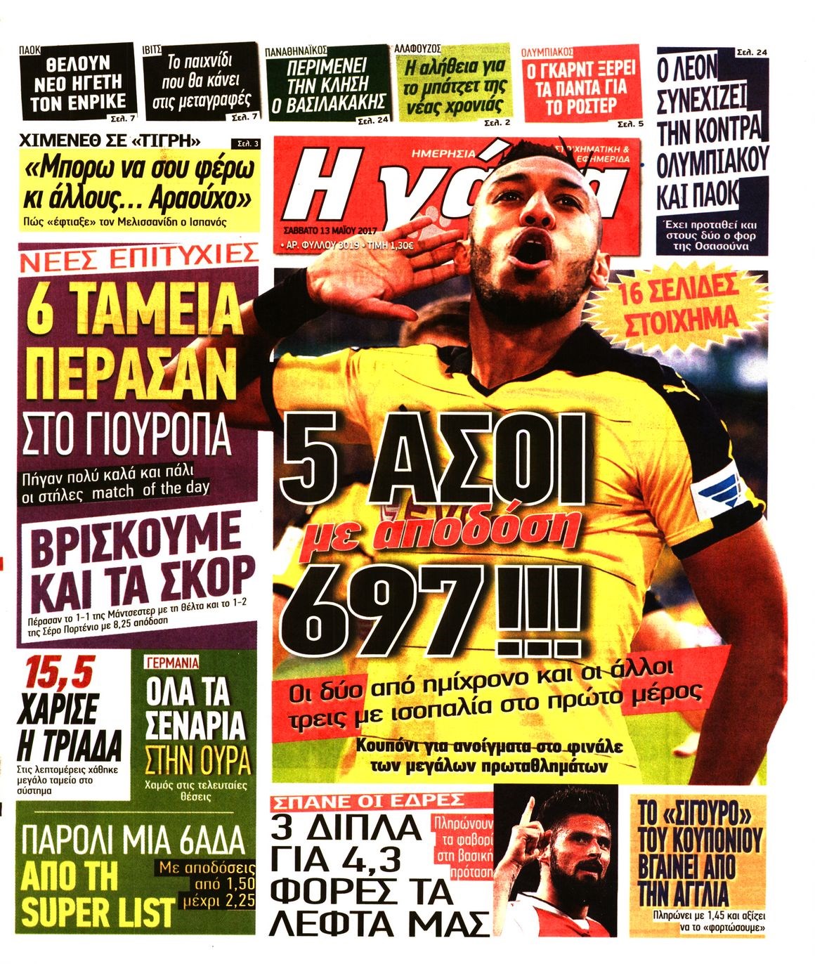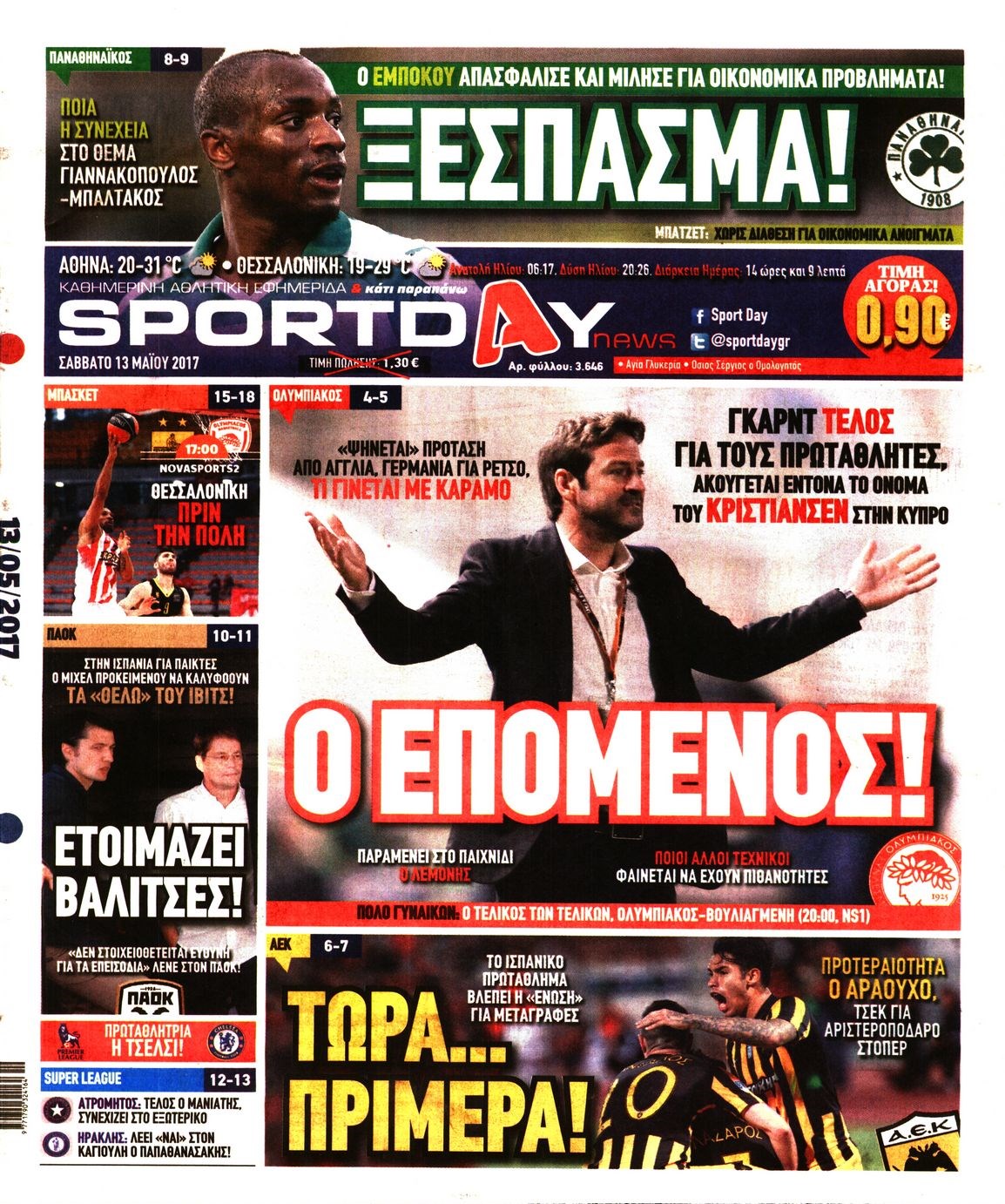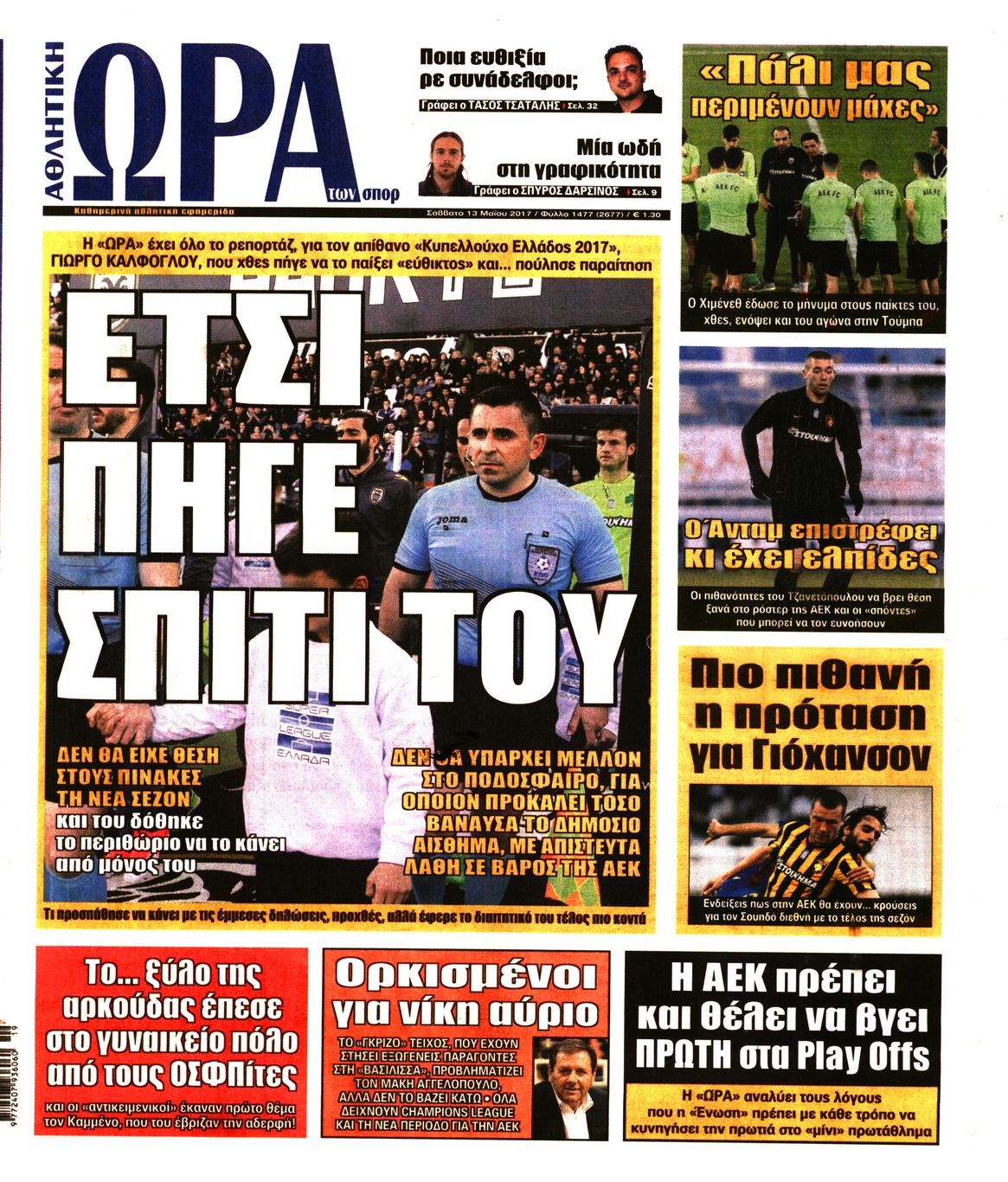 Οι αθλητικές εφημερίδες 13/5/2017 Enikos Newsroom 00:00, Δευτέρα 01 Ιανουαρίου 0001 Media Διαβάστε τα σημερινά πρωτοσέλιδα των αθλητικών εφημερίδων: ΑΘΛΗΤΙΚΕΣ ΕΦΗΜΕΡΙΔΕΣ ΠΡΩΤΟΣΕΛΙΔΑ Μοιράσου το: σχολίασε κι εσύ (0 σχόλια) Ακολουθήστε το enikos.gr στο Google News και μάθετε πρώτοι όλες τις ειδήσεις Δείτε όλες τις τελευταίες ειδήσεις από την Ελλάδα και τον Κόσμο στο enikos.gr Ειδήσεις Ροή Ειδήσεων 1 ώρα πριν Εκτός ευρωομάδας ΣΥΡΙΖΑ ο Νίκος Παππάς μετά την επίθεση στον δημοσιογράφο Νίκο Γιαννόπουλο – Η μήνυση και οι νέες δηλώσεις 2 ώρες πριν «Αγριεύουν» οι αγρότες: «Δεν συντρέχει λόγος συνάντησης με τον πρωθυπουργό» – Ώρα αποφάσεων στη σύσκεψη της Πέμπτης 2 ώρες πριν Κυψέλη: Χωρίς την οικογένειά της δίπλα της απολογήθηκε η 16χρονη – «Της είχε επιτεθεί κάποιος για να την βιάσει, φοβήθηκε και κυκλοφορούσε με μαχαίρι» 1 ώρα πριν Politico: Το πρόβλημα της Ευρώπης δεν είναι το Βέλγιο αλλά ο Ντόναλντ Τραμπ 3 ώρες πριν Αλεξανδρούπολη: Πολυοργανική ανεπάρκεια λόγω υποσιτισμού η αιτία θανάτου του 3χρονου αγοριού 2 ώρες πριν Μυστήριο με τεράστιες κυκλικές πέτρες 200 κιλών – Ανακαλύφθηκαν τυχαία κατά τη διάρκεια οδικών έργων και κανείς δεν ξέρει από πού προέρχονται 3 ώρες πριν Ύπνος: Ειδικός εξηγεί τον πραγματικό λόγο που ξυπνάτε στις 4 τα ξημερώματα – Ο ρόλος των ορμονών και του κιρκάδιου ρυθμού 4 ώρες πριν Αριθμολογία: Οι άνθρωποι που έχουν γεννηθεί αυτές τις 4 ημερομηνίες, είναι τρυφεροί και αγαπούν ανιδιοτελώς 15 ώρες πριν 20 χρόνια τα Χριστούγεννα ξεκινούν στα Public με μεγάλη ποικιλία σε δώρα! 8 λεπτά πριν Βέλγους πολιτικούς και επικεφαλής χρηματοπιστωτικών ιδρυμάτων στοχοποιεί η Μόσχα για τα κατασχεθέντα περιουσιακά στοιχεία 22 λεπτά πριν ΗΠΑ: Αναζητείται δεύτερος ύποπτος για την επίθεση στο πανεπιστήμιο Μπράουν 38 λεπτά πριν Λεωφόρος Αλεξάνδρας: Δεν εντοπίστηκε βόμβα έξω από το κολλέγιο – Προσήχθη άνδρας για το προειδοποιητικό σημείωμα 54 λεπτά πριν Ελένη Κρίτα για το reunion του «Παρά Πέντε»: «Ήταν πραγματικά σαν να μην είχαμε χαθεί ποτέ» 1 ώρα πριν Κύπελλο Ελλάδας: Αυτά είναι τα ζευγάρια στα νοκ-άουτ, οι διασταυρώσεις στους «8» κι ο δρόμος προς τον τελικό ENIKOS NETWORK Αϋπνία: Το κόλπο που θα σας βοηθήσει να κοιμηθείτε απόψε – Είναι απλό και έχει αποτέλεσμα 2,6 εκατομμύρια πολίτες έχουν ήδη εμβολιαστεί κατά της γρίπης ΕΛΣΤΑΤ: Τι δείχνουν τα νέα στοιχεία για τις ηλεκτρονικές παραγγελίες των επιχειρήσεων ΚΕΠΕ: Οι 3 διακριτές συμβολές των ΜμΕ και της μεταποίησης στην ελληνική οικονομία Χαρτογραφώντας το «σημείο χωρίς επιστροφή»: Για πρώτη φορά αποκαλύπτεται με λεπτομέρεια το ακανθώδες όριο της ατμόσφαιρας τ... Η Google καταργεί τη λειτουργία «dark web report» – Πώς θα μπορούν οι χρήστες να διαγράφουν τα δεδομένα τους περισσότερα 22:24 , Τετάρτη 17 Δεκεμβρίου 2025 Το Σπίτι Δίπλα Στο Ποτάμι: Σε κίνδυνο η υγεία του Απόστολου – Τι θα δούμε απόψε “Το Σπίτι Δίπλα στο Ποτάμι” ξετυλίγει το νήμα της ζωής των πέντε αδελφών με καταισ... 21:14 , Τετάρτη 17 Δεκεμβρίου 2025 Παιχνίδια Εκδίκησης: Θα καταφέρει ο Χρήστος να κλονίσει την εμπιστοσύνη της Μάγιας απέναντι στον Άγη; Τα «Παιχνίδια Εκδίκησης» έρχονται απόψε στις 22:30, στον Αντ1, με το τελευταίο επεισόδιο της χ... 20:57 , Τετάρτη 17 Δεκεμβρίου 2025 Άγιος Έρωτας: Η Χλόη καταθέτει εναντίον του πατέρα της και ο Χάρης αποκαλύπτει στον Κλεάνθη ότι δεν είναι ο βιολογικός του πατέρας. Γεμάτο αποκαλύψεις είναι το νέο επεισόδιο της σειράς “Άγιος Έρωτας” απόψε στις 21:... 20:15 , Τετάρτη 17 Δεκεμβρ
