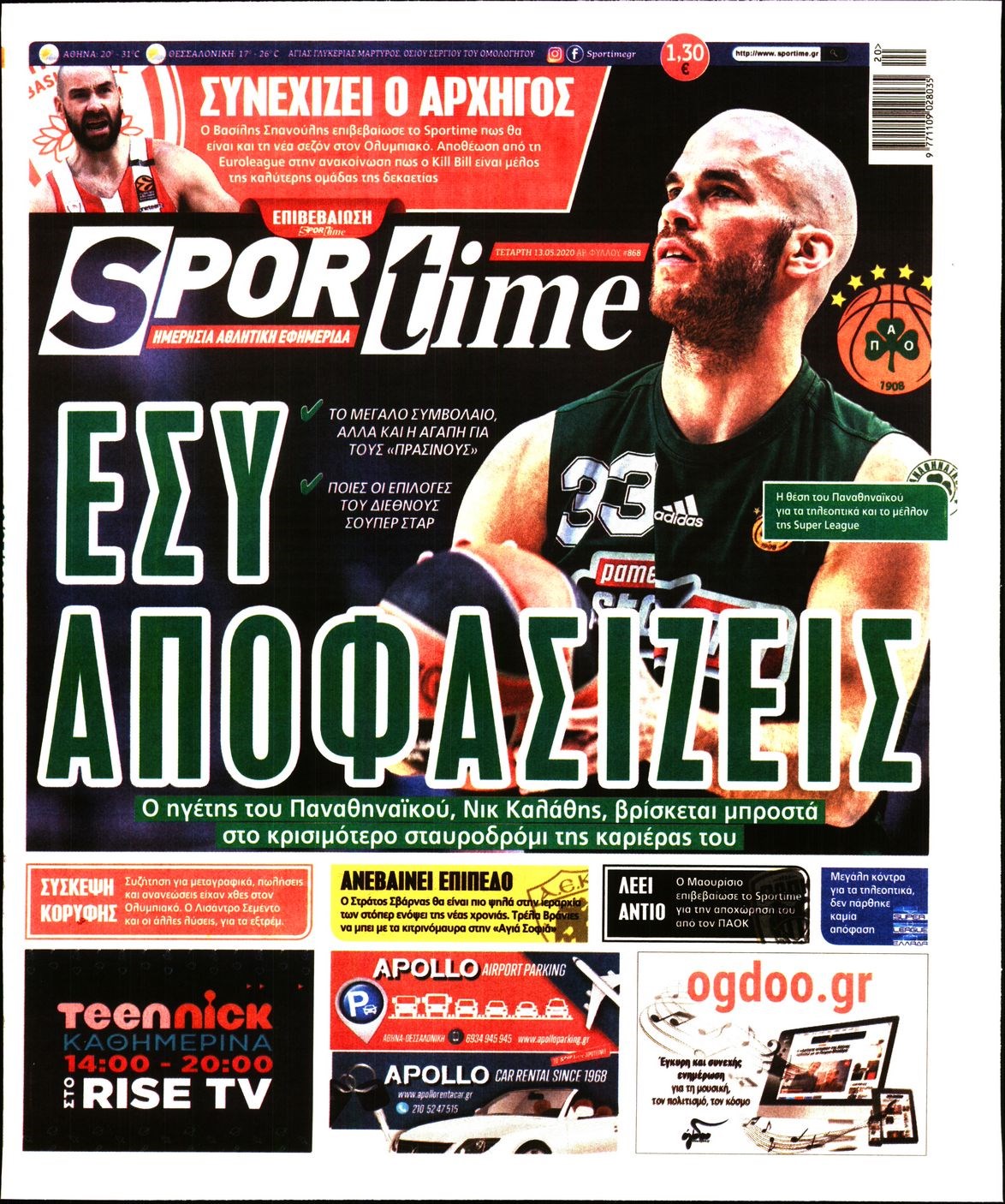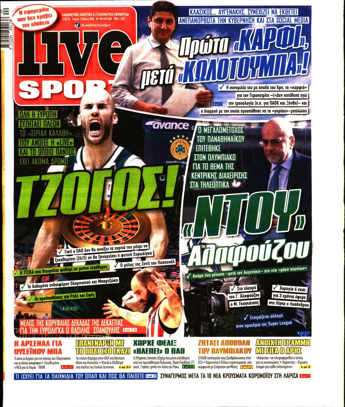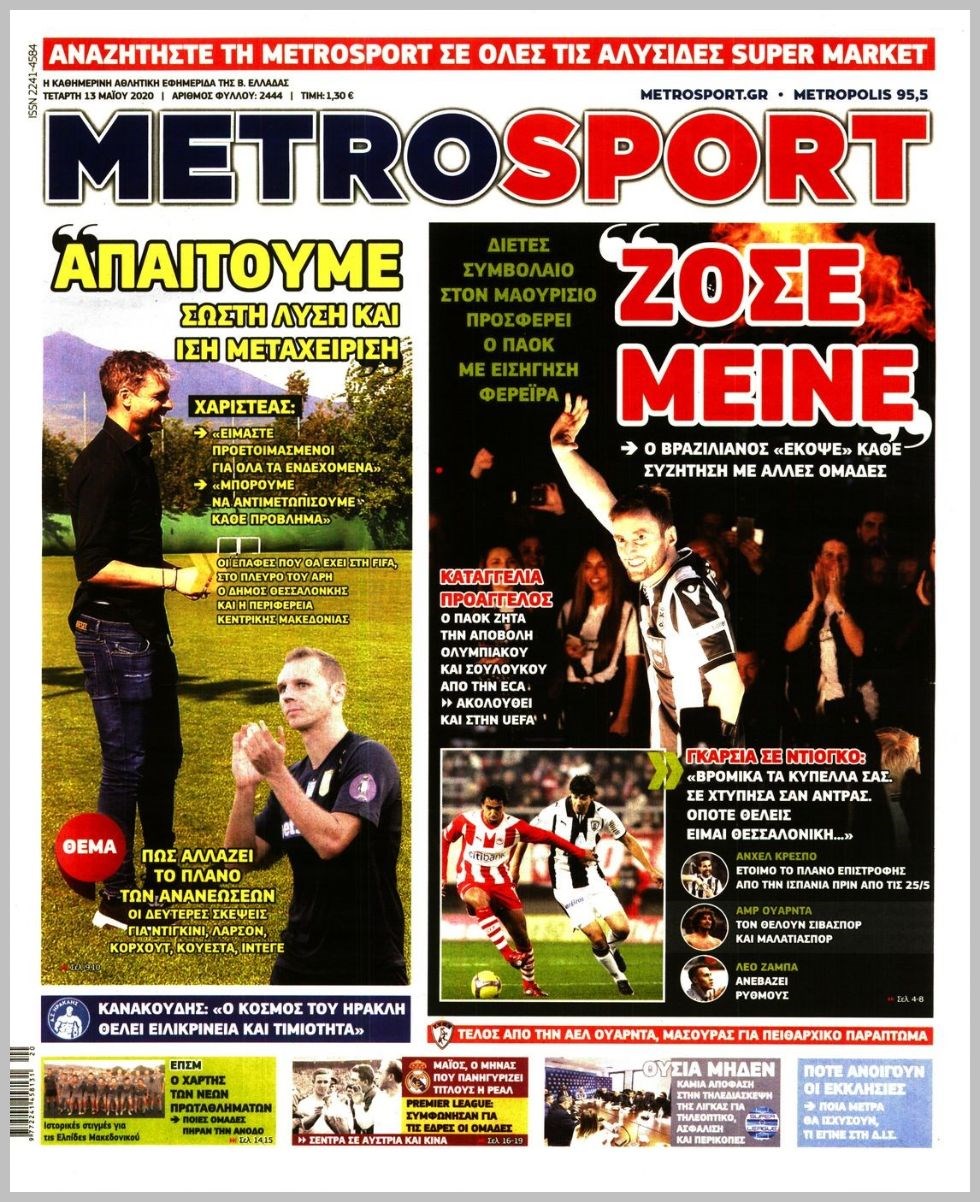 Οι αθλητικές εφημερίδες 13/5/2020 Διονύσης Νίκκας 06:44, Τετάρτη 13 Μαΐου 2020 Media Διαβάστε τα πρωτοσέλιδα των αθλητικών εφημερίδων… ΑΘΛΗΤΙΚΕΣ ΕΦΗΜΕΡΙΔΕΣ ΠΡΩΤΟΣΕΛΙΔΑ Μοιράσου το: σχολίασε κι εσύ (0 σχόλια) Ακολουθήστε το enikos.gr στο Google News και μάθετε πρώτοι όλες τις ειδήσεις Δείτε όλες τις τελευταίες ειδήσεις από την Ελλάδα και τον Κόσμο στο enikos.gr Ειδήσεις Ροή Ειδήσεων 41 λεπτά πριν Χριστούγεννα στα μπλόκα: Επιμένουν στις κινητοποιήσεις τους οι αγρότες – Ανοίγουν τα διόδια το Σαββατοκύριακο 1 ώρα πριν Ουκρανία: Η άνευ προηγουμένου επίθεση σε ρωσικό τάνκερ στη Μεσόγειο και το μήνυμα προς στον Πούτιν – Το «μακρύ χέρι» του Κιέβου 19 λεπτά πριν Πούτιν: Τα μηνύματα σε Ευρώπη και ΝΑΤΟ από το μαραθώνιο «σόου» του – Η απαίτηση για «σεβασμό» και η ειρήνη «με τους όρους» της Μόσχας 1 ώρα πριν Τραμπ: Δεν αποκλείει την πιθανότητα ενός πολέμου στη Βενεζουέλα – «Ο Μαδούρο ξέρει καλύτερα από τον καθένα τι ακριβώς θέλω» 2 ώρες πριν Συνεχίζει να προκαλεί ο Μίτσκοσκι: «Για μένα το όνομα Μακεδονία είναι ιερό» 4 ώρες πριν Πούτιν: «Ναι, είμαι ερωτευμένος» – Βίντεο από τη σπάνια προσωπική παραδοχή του 2 ώρες πριν Αριθμολογία: Οι άνθρωποι που έχουν γεννηθεί αυτές τις 4 ημερομηνίες, συχνά παρεξηγούνται – «Η καλοσύνη τους κρύβει τεράστια δύναμη» 1 ώρα πριν Ύπνος: Μια κρυφή κατάσταση του εγκεφάλου πριν από τον ύπνο μπορεί να είναι το “κλειδί” για υψηλή ευφυΐα και δημιουργικότητα 3 ώρες πριν Ξεχάστε το καθάρισμα το Σαββατοκύριακο: Ο «κανόνας των 20 λεπτών» που θα σας λύσει τα χέρια 20 λεπτά πριν Ανακαλύφθηκαν αρχαία χρυσά νομίσματα 2.200 ετών που απεικονίζουν τον θεό Απόλλωνα – Η άγνωστη σύνδεση με τον Φίλιππο Β΄ της Μακεδονίας 4 λεπτά πριν Ολυμπιακός – Βιλερμπάν 107-84: Επιστροφή στις νίκες με… προπόνηση 9 λεπτά πριν Νέος Κόσμος: Συνελήφθη 41χρονος με ένταλμα από την Τουρκία για εμπόριο ναρκωτικών και ληστεία 19 λεπτά πριν Πούτιν: Τα μηνύματα σε Ευρώπη και ΝΑΤΟ από το μαραθώνιο «σόου» του – Η απαίτηση για «σεβασμό» και η ειρήνη «με τους όρους» της Μόσχας 20 λεπτά πριν Ανακαλύφθηκαν αρχαία χρυσά νομίσματα 2.200 ετών που απεικονίζουν τον θεό Απόλλωνα – Η άγνωστη σύνδεση με τον Φίλιππο Β΄ της Μακεδονίας 24 λεπτά πριν Νίκος Ξυλούρης: Συγκινεί η χήρα του σπουδαίου καλλιτέχνη – «Ευχαριστώ όλο τον κόσμο που τον κρατάει ζωντανό 45 χρόνια» ENIKOS NETWORK Το ΕΚΑΒ τιμήθηκε από την Ακαδημία Αθηνών για τα 40 χρόνια προσφοράς του Έχετε πραγματικά μεγάλη καρδιά; 10 χαρακτηριστικά όσων έχουν καλοσύνη Πλήρης επάρκεια προϊόντων στις λαϊκές της Αττικής, παρά τις αγροτικές κινητοποιήσεις – Τι απαντούν οι πωλητές ΑΑΔΕ: Νέες αναβαθμίσεις στο Ψηφιακό Πελατολόγιο και την εφαρμογή myDATAapp – Τι πρέπει να γνωρίζετε Χαρτογραφώντας το «σημείο χωρίς επιστροφή»: Για πρώτη φορά αποκαλύπτεται με λεπτομέρεια το ακανθώδες όριο της ατμόσφαιρας τ... Η Google καταργεί τη λειτουργία «dark web report» – Πώς θα μπορούν οι χρήστες να διαγράφουν τα δεδομένα τους περισσότερα 22:42 , Παρασκευή 19 Δεκεμβρίου 2025 Γιώργος Γιαννόπουλος για “Το σόι σου”: “Είναι ευτυχία και ευλογία αυτή η σειρά” «Είναι ευτυχία και ευλογία η συγκυρία αυτής της σειράς», θα πει ο Γιώργος Γιαννόπουλος -ο αγαπ... 20:37 , Παρασκευή 19 Δεκεμβρίου 2025 Don’t Forget The Lyrics: Η Έλλη Κοκκίνου υποδέχεται 4 παίκτες που θα κάνουν τα πάντα για να μη χάσουν ούτε… μισή λέξη από τους στίχους Το «Don’t Forget The Lyrics» επιστρέφει απόψε, Παρασκευή 19 Δεκεμβρίου, στις 21:00 με νέο επει... 19:31 , Παρασκευή 19 Δεκεμβρίου 202