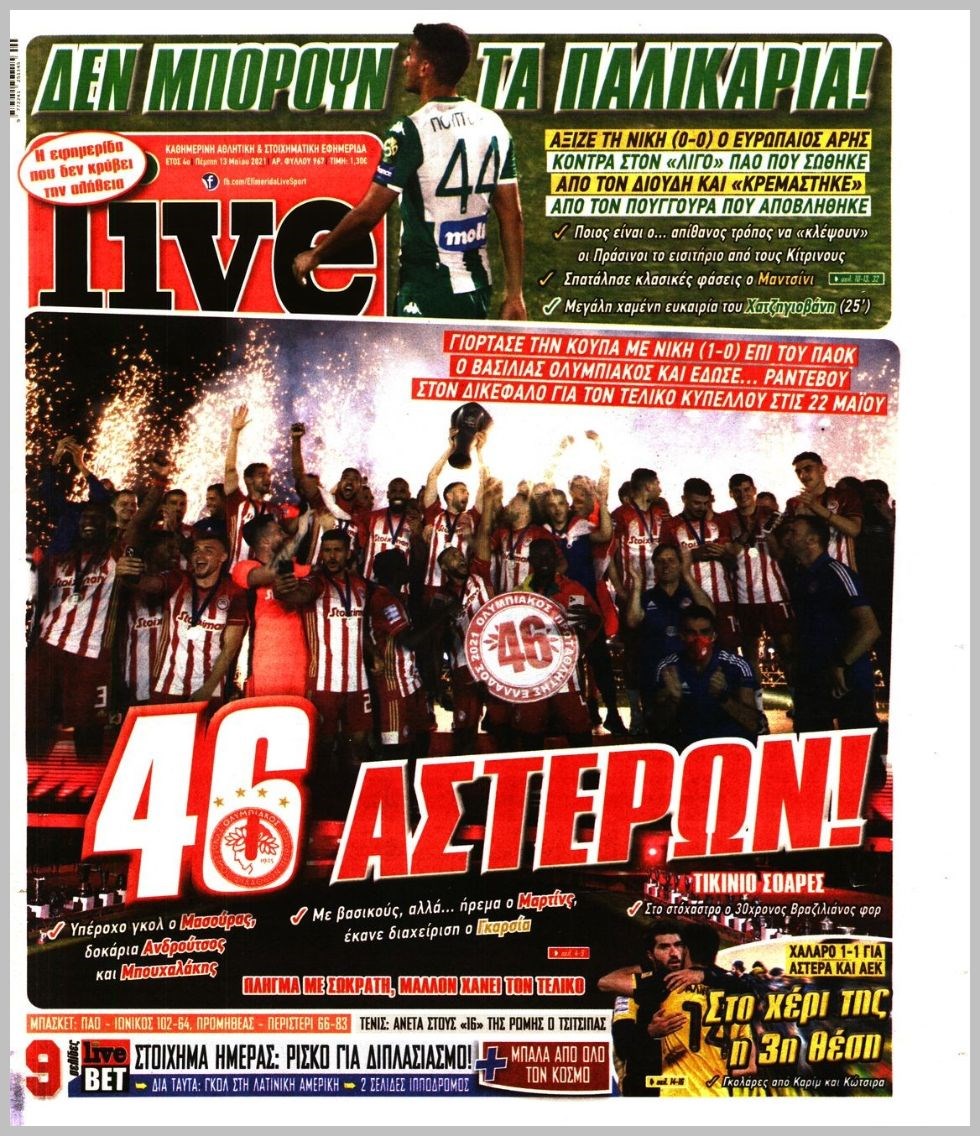 Οι αθλητικές εφημερίδες 13/5/2021 Διονύσης Νίκκας 06:57, Πέμπτη 13 Μαΐου 2021 Media Διαβάστε τα πρωτοσέλιδα των αθλητικών εφημερίδων… ΑΘΛΗΤΙΚΕΣ ΕΦΗΜΕΡΙΔΕΣ Μοιράσου το: σχολίασε κι εσύ (0 σχόλια) Ακολουθήστε το enikos.gr στο Google News και μάθετε πρώτοι όλες τις ειδήσεις Δείτε όλες τις τελευταίες ειδήσεις από την Ελλάδα και τον Κόσμο στο enikos.gr Ειδήσεις Ροή Ειδήσεων 3 ώρες πριν Χριστούγεννα στα μπλόκα: Επιμένουν στις κινητοποιήσεις τους οι αγρότες – Ανοίγουν τα διόδια το Σαββατοκύριακο 4 ώρες πριν Ουκρανία: Η άνευ προηγουμένου επίθεση σε ρωσικό τάνκερ στη Μεσόγειο και το μήνυμα προς στον Πούτιν – Το «μακρύ χέρι» του Κιέβου 3 ώρες πριν Πούτιν: Τα μηνύματα σε Ευρώπη και ΝΑΤΟ από το μαραθώνιο «σόου» του – Η απαίτηση για «σεβασμό» και η ειρήνη «με τους όρους» της Μόσχας 4 ώρες πριν Τραμπ: Δεν αποκλείει την πιθανότητα ενός πολέμου στη Βενεζουέλα – «Ο Μαδούρο ξέρει καλύτερα από τον καθένα τι ακριβώς θέλω» 4 ώρες πριν Συνεχίζει να προκαλεί ο Μίτσκοσκι: «Για μένα το όνομα Μακεδονία είναι ιερό» 3 ώρες πριν Ανακαλύφθηκαν αρχαία χρυσά νομίσματα 2.200 ετών που απεικονίζουν τον θεό Απόλλωνα – Η άγνωστη σύνδεση με τον Φίλιππο Β΄ της Μακεδονίας 4 ώρες πριν Ύπνος: Μια κρυφή κατάσταση του εγκεφάλου πριν από τον ύπνο μπορεί να είναι το “κλειδί” για υψηλή ευφυΐα και δημιουργικότητα 5 ώρες πριν Αριθμολογία: Οι άνθρωποι που έχουν γεννηθεί αυτές τις 4 ημερομηνίες, συχνά παρεξηγούνται – «Η καλοσύνη τους κρύβει τεράστια δύναμη» 6 ώρες πριν Ξεχάστε το καθάρισμα το Σαββατοκύριακο: Ο «κανόνας των 20 λεπτών» που θα σας λύσει τα χέρια 11 λεπτά πριν Πρόταση γάμου στο ΣΕΦ κατά την διάρκεια του αγώνα Ολυμπιακός-Βιλερμπάν – Δείτε βίντεο 26 λεπτά πριν Euroleague: Επέστρεψε στις νίκες ο Ολυμπιακός, πήρε την ματσάρα της χρονιάς η Μπάρτσα – Τα αποτελέσματα και η βαθμολογία 41 λεπτά πριν Συρία: Μαζικά πλήγματα των ΗΠΑ σε θέσεις του Ισλαμικού Κράτους – Χέγκσεθ: «Δεν είναι αρχή πολέμου, είναι μια δήλωση εκδίκησης» για το θάνατο των στρατιωτών μας 54 λεπτά πριν Ουκρανία: Ολοκληρώθηκαν οι συνομιλίες με τους Αμερικανούς κι Ευρωπαίους διαπραγματευτές 1 ώρα πριν Μπαρτσελόνα – Μπασκόνια 134-124: Οι «μπλαουγκράνα» πήραν το ματς της χρονιάς ύστερα από τρεις παρατάσεις ENIKOS NETWORK Το ΕΚΑΒ τιμήθηκε από την Ακαδημία Αθηνών για τα 40 χρόνια προσφοράς του Έχετε πραγματικά μεγάλη καρδιά; 10 χαρακτηριστικά όσων έχουν καλοσύνη Αναστολή μέτρων αναγκαστικής εκτέλεσης για κτηνοτρόφους που πλήττονται από την ευλογιά των αιγοπροβάτων Πλήρης επάρκεια προϊόντων στις λαϊκές της Αττικής, παρά τις αγροτικές κινητοποιήσεις – Τι απαντούν οι πωλητές Χαρτογραφώντας το «σημείο χωρίς επιστροφή»: Για πρώτη φορά αποκαλύπτεται με λεπτομέρεια το ακανθώδες όριο της ατμόσφαιρας τ... Η Google καταργεί τη λειτουργία «dark web report» – Πώς θα μπορούν οι χρήστες να διαγράφουν τα δεδομένα τους περισσότερα 22:42 , Παρασκευή 19 Δεκεμβρίου 2025 Γιώργος Γιαννόπουλος για “Το σόι σου”: “Είναι ευτυχία και ευλογία αυτή η σειρά” «Είναι ευτυχία και ευλογία η συγκυρία αυτής της σειράς», θα πει ο Γιώργος Γιαννόπουλος -ο αγαπ... 20:37 , Παρασκευή 19 Δεκεμβρίου 2025 Don’t Forget The Lyrics: Η Έλλη Κοκκίνου υποδέχεται 4 παίκτες που θα κάνουν τα πάντα για να μη χάσουν ούτε… μισή λέξη από τους στίχους Το «Don’t Forget The Lyrics» επιστρέφει απόψε, Παρασκευή 19 Δεκεμβρίου, στις 21:00 με νέο επει... 19:31 , Παρασκευή 19 Δεκεμβρίου 2025 GNTM: Απόψε ο μεγάλος τελικός για τους 4 φιναλίστ Έπειτα από μήνες γεμάτους μόδα, δημιο