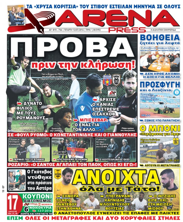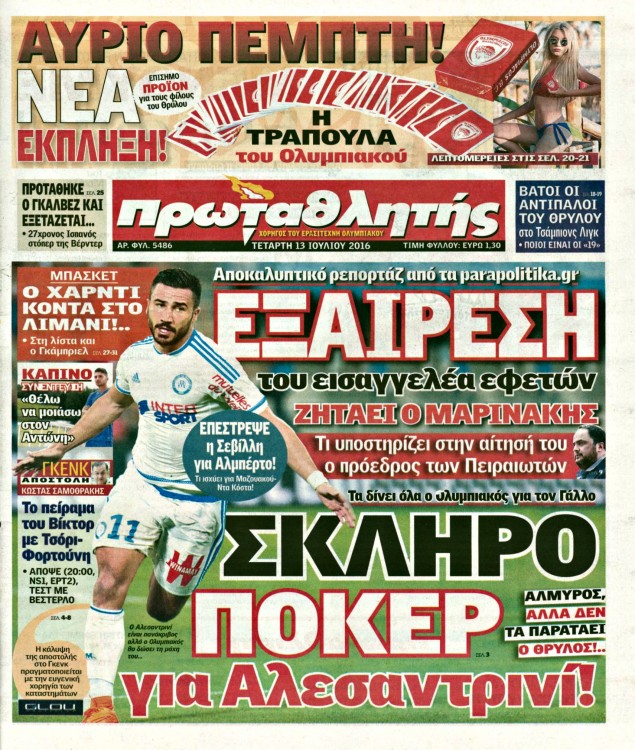 Οι αθλητικές εφημερίδες 13/7/2016 Enikos Newsroom 04:28, Τετάρτη 13 Ιουλίου 2016 Media Διαβάστε τα σημερινά πρωτοσέλιδα των αθλητικών εφημερίδων: ΑΘΛΗΤΙΚΕΣ ΕΦΗΜΕΡΙΔΕΣ ΠΡΩΤΟΣΕΛΙΔΑ Μοιράσου το: σχολίασε κι εσύ (0 σχόλια) Ακολουθήστε το enikos.gr στο Google News και μάθετε πρώτοι όλες τις ειδήσεις Δείτε όλες τις τελευταίες ειδήσεις από την Ελλάδα και τον Κόσμο στο enikos.gr Ειδήσεις Ροή Ειδήσεων 4 ώρες πριν Εκτός ευρωομάδας ΣΥΡΙΖΑ ο Νίκος Παππάς μετά την επίθεση στον δημοσιογράφο Νίκο Γιαννόπουλο – Η μήνυση και οι νέες δηλώσεις 5 ώρες πριν «Αγριεύουν» οι αγρότες: «Δεν συντρέχει λόγος συνάντησης με τον πρωθυπουργό» – Ώρα αποφάσεων στη σύσκεψη της Πέμπτης 5 ώρες πριν Κυψέλη: Χωρίς την οικογένειά της δίπλα της απολογήθηκε η 16χρονη – «Της είχε επιτεθεί κάποιος για να την βιάσει, φοβήθηκε και κυκλοφορούσε με μαχαίρι» 4 ώρες πριν Politico: Το πρόβλημα της Ευρώπης δεν είναι το Βέλγιο αλλά ο Ντόναλντ Τραμπ 6 ώρες πριν Αλεξανδρούπολη: Πολυοργανική ανεπάρκεια λόγω υποσιτισμού η αιτία θανάτου του 3χρονου αγοριού 4 ώρες πριν Μυστήριο με τεράστιες κυκλικές πέτρες 200 κιλών – Ανακαλύφθηκαν τυχαία κατά τη διάρκεια οδικών έργων και κανείς δεν ξέρει από πού προέρχονται 5 ώρες πριν Ύπνος: Ειδικός εξηγεί τον πραγματικό λόγο που ξυπνάτε στις 4 τα ξημερώματα – Ο ρόλος των ορμονών και του κιρκάδιου ρυθμού 6 ώρες πριν Αριθμολογία: Οι άνθρωποι που έχουν γεννηθεί αυτές τις 4 ημερομηνίες, είναι τρυφεροί και αγαπούν ανιδιοτελώς 18 ώρες πριν 20 χρόνια τα Χριστούγεννα ξεκινούν στα Public με μεγάλη ποικιλία σε δώρα! 12 λεπτά πριν Βραζιλία: Το Κογκρέσο ενέκρινε σχέδιο νόμου για τη μείωση της ποινής του πρώην προέδρου Μπολσονάρου 26 λεπτά πριν Ένταση στο περιφερειακό συμβούλιο Δυτικής Μακεδονίας: Φωνές, σπρωξιές και διακοπή – Δείτε βίντεο 41 λεπτά πριν Σουδάν: Επιδρομή drone σε χωριό του Νότιου Κορντοφάν – Οκτώ νεκροί 57 λεπτά πριν Αλ Τσαντίρι Νιουζ: Η κόρη της Πάολα στο κοινό – Η ατάκα Λαζόπουλου που την έκανε να «κοκκινήσει» 1 ώρα πριν Ρωσία: Ουκρανικές δυνάμεις έπληξαν πλοίο στο λιμάνι του Ροστόφ – Αναφορές για θύματα ENIKOS NETWORK Αϋπνία: Το κόλπο που θα σας βοηθήσει να κοιμηθείτε απόψε – Είναι απλό και έχει αποτέλεσμα 2,6 εκατομμύρια πολίτες έχουν ήδη εμβολιαστεί κατά της γρίπης ΕΛΣΤΑΤ: Τι δείχνουν τα νέα στοιχεία για τις ηλεκτρονικές παραγγελίες των επιχειρήσεων ΚΕΠΕ: Οι 3 διακριτές συμβολές των ΜμΕ και της μεταποίησης στην ελληνική οικονομία Χαρτογραφώντας το «σημείο χωρίς επιστροφή»: Για πρώτη φορά αποκαλύπτεται με λεπτομέρεια το ακανθώδες όριο της ατμόσφαιρας τ... Η Google καταργεί τη λειτουργία «dark web report» – Πώς θα μπορούν οι χρήστες να διαγράφουν τα δεδομένα τους περισσότερα 02:30 , Πέμπτη 18 Δεκεμβρίου 2025 Αλ Τσαντίρι Νιουζ: Η κόρη της Πάολα στο κοινό – Η ατάκα Λαζόπουλου που την έκανε να «κοκκινήσει» Γιορτινή διάθεση και ευχάριστες στιγμές γέμισε η αποψινή, τελευταία για το 2025, εκπομπή του «... 22:24 , Τετάρτη 17 Δεκεμβρίου 2025 Το Σπίτι Δίπλα Στο Ποτάμι: Σε κίνδυνο η υγεία του Απόστολου – Τι θα δούμε απόψε “Το Σπίτι Δίπλα στο Ποτάμι” ξετυλίγει το νήμα της ζωής των πέντε αδελφών με καταισ... 21:14 , Τετάρτη 17 Δεκεμβρίου 2025 Παιχνίδια Εκδίκησης: Θα καταφέρει ο Χρήστος να κλονίσει την εμπιστοσύνη της Μάγιας απέναντι στον Άγη; Τα «Παιχνίδια Εκδίκησης» έρχονται απόψε στις 22:30, στον Αντ1, με το τελευταίο επεισόδιο της χ... 20:57 , Τετάρτη 17 Δεκεμβρίου 2025 Άγιος Έρωτας: Η Χλόη καταθέτει εναντίον του πατέρα της και ο Χάρης αποκαλύπτει στον Κλ