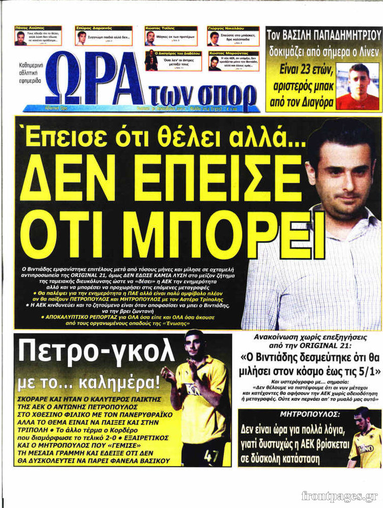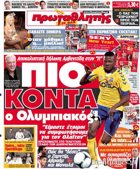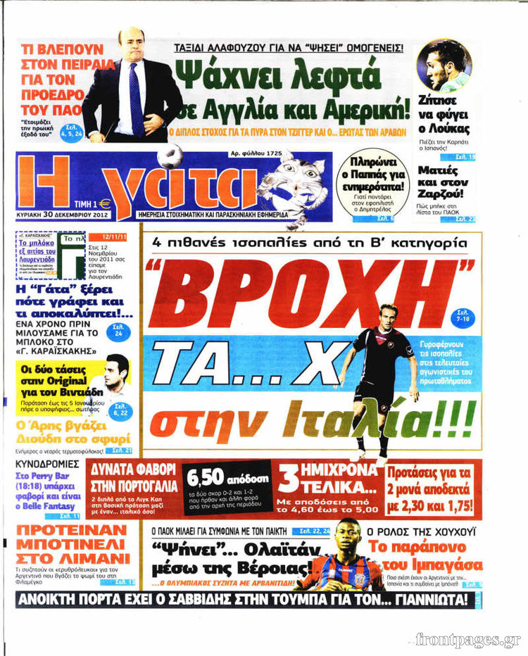 Οι αθλητικές εφημερίδες Enikos Newsroom 09:08, Κυριακή 30 Δεκεμβρίου 2012 Media Οι αθλητικές εφημερίδες Τα πρωτοσέλιδα των αθλητικών εφημερίδων. ΑΘΛΗΤΙΚΑ ΠΡΩΤΟΣΕΛΙΔΑ Μοιράσου το: σχολίασε κι εσύ (0 σχόλια) Ακολουθήστε το enikos.gr στο Google News και μάθετε πρώτοι όλες τις ειδήσεις Δείτε όλες τις τελευταίες ειδήσεις από την Ελλάδα και τον Κόσμο στο enikos.gr Ειδήσεις Ροή Ειδήσεων 2 ώρες πριν «Βιολάντα:» Οι ανατριχιαστικοί διάλογοι λίγες ώρες πριν από την φονική έκρηξη για «μυρωδιά σαν υγραέριο» – «Μου έλεγαν ότι δεν ήταν κάτι ανησυχητικό» κατέθεσε ο υπεύθυνος βάρδιας 3 ώρες πριν Ο Κυριάκος Μητσοτάκης ανοίγει τα χαρτιά του για τη Συνταγματική Αναθεώρηση – Στο τραπέζι και η μονιμότητα των δημοσίων υπαλλήλων 1 ώρα πριν Νέα Πέραμος: Προσπάθησαν να κάψουν το πτώμα του 27χρονου – Οι έρευνες στο εργασιακό του περιβάλλον και η εκτέλεση «καρμπόν» πριν από 2 χρόνια στη Μάνδρα 2 ώρες πριν Κακοκαιρία: Νέο έκτακτο δελτίο της ΕΜΥ – Σε ποιες περιοχές θα συνεχιστούν τα έντονα φαινόμενα 1 ώρα πριν Γκίλφοϊλ: Προανήγγειλε επίσκεψη Τραμπ στην Ελλάδα – «Ελπίζω να έρθει και η Μελάνια» 3 ώρες πριν Αριθμολογία: Οι 3 «καταραμένες» διευθύνσεις σπιτιού – «Τα νούμερα αυτά συνδέονται με αναταραχές και αρνητική ενέργεια» 4 ώρες πριν Τα 11 ψέματα που λένε πάντα οι άνδρες για να σας πείσουν ότι έχετε εσείς το πρόβλημα 2 ώρες πριν Ύπνος: Γιατί πρέπει να κοιμάστε με την πόρτα του υπνοδωματίου σας κλειστή 1 ώρα πριν Στο φως η θρυλική πόλη που ίδρυσε ο Μέγας Αλέξανδρος στο Ιράκ – Το «φάντασμα» του Τίγρη αποκαλύπτεται 15 λεπτά πριν Ο πρόεδρος Τραμπ βλέπει μια συμφωνία με την Κούβα μετά τις απειλές 36 λεπτά πριν ΑΕΚ – Ολυμπιακός 1-1: Ισοπαλία στο ντέρμπι με πέναλτυ στο 90+16′ για τους Πειραιώτες – Έντονες διαμαρτυρίες των γηπεδούχων 49 λεπτά πριν Επίδομα παιδιού 2026: Πότε ανοίγει η πλατφόρμα για τις νέες αιτήσεις – Τι πρέπει να γνωρίζετε 1 ώρα πριν Στο φως η θρυλική πόλη που ίδρυσε ο Μέγας Αλέξανδρος στο Ιράκ – Το «φάντασμα» του Τίγρη αποκαλύπτεται 1 ώρα πριν Νέα Πέραμος: Προσπάθησαν να κάψουν το πτώμα του 27χρονου – Οι έρευνες στο εργασιακό του περιβάλλον και η εκτέλεση «καρμπόν» πριν από 2 χρόνια στη Μάνδρα ENIKOS NETWORK Γελάτε, κλαίτε ή ανοίγει η μύτη σας μετά τον οργασμό – Πού οφείλεται, σύμφωνα με μελέτη; Πώς να ξεφορτωθείτε τις σακούλες κάτω από τα μάτια – Tips που δουλεύουν Τη Δευτέρα οι ανακοινώσεις του Κυριάκου Μητσοτάκη για τη συνταγματική αναθεώρηση – Ποια άρθρα θα προτείνει να αλλάξουν Ο καιρός της Δευτέρας: Ισχυρές καταιγίδες και χιονοπτώσεις – Σε ποιες περιοχές χρειάζεται προσοχή Σπαζοκεφαλιά: Βρες πόσα 9 υπάρχουν στην εικόνα σε 8 δευτερόλεπτα Τεστ IQ: Μπορείς να εντοπίσεις τον αριθμό 999 ανάμεσα στα 99Q σε 15 δευτερόλεπτα; περισσότερα 17:13 , Κυριακή 01 Φεβρουαρίου 2026 Σία Κοσιώνη: Το πρώτο μήνυμα μετά την περιπέτεια με την υγεία της – «Τα καταφέραμε» Για έναν δύσκολο Ιανουάριο που της φάνηκε σαν ένας ολόκληρος χρόνος κάνει λόγο η Σία Κοσιώνη σ... 15:05 , Κυριακή 01 Φεβρουαρίου 2026 Από Ήλιο σε Ήλιο: Πότε κάνει τελικά πρεμιέρα η νέα σειρά της ΕΡΤ1; Το αρχικό πλάνο και η μετακίνηση της προβολής. Της Νάντιας Ρηγάτου Μπορεί η Μεγάλη Χίμαιρα να ... 15:04 , Κυριακή 01 Φεβρουαρίου 2026 Στο real taste & style που κυκλοφορεί με τη Realnews Στο real taste & style που κυκλοφορεί με τη Realnews. Τον Φεβρουάριο, η πατάτα βγαίνει μπρ... 13:47 , Κυριακή 01 Φεβρουαρίου 2026 Άγιος Έρωτας: Ο πατέρας Νικόλαος και η Χλόη παραδίνονται στον έρωτα – ‘Ολες οι εξελίξεις Καταιγιστικές 