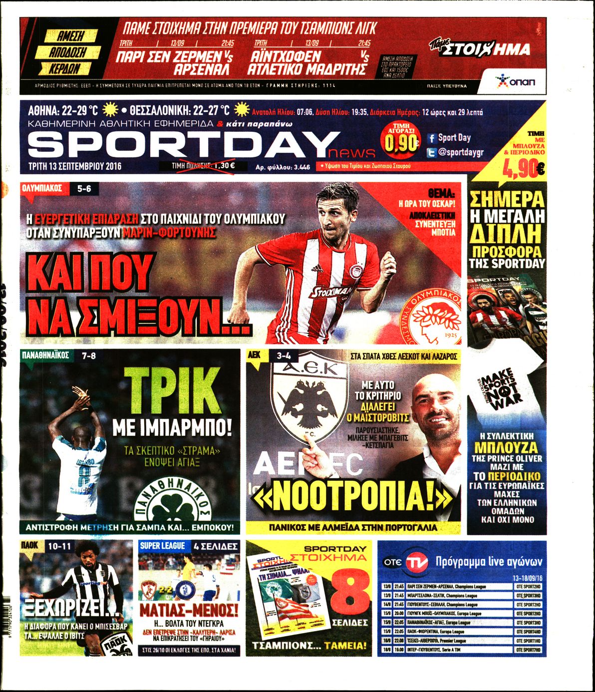 Οι αθλητικές εφημερίδες 13/9/2016 Enikos Newsroom 05:06, Τρίτη 13 Σεπτεμβρίου 2016 Media Διαβάστε τα σημερινά πρωτοσέλιδα των αθλητικών εφημερίδων: ΑΘΛΗΤΙΚΕΣ ΕΦΗΜΕΡΙΔΕΣ ΠΡΩΤΟΣΕΛΙΔΑ Μοιράσου το: σχολίασε κι εσύ (0 σχόλια) Ακολουθήστε το enikos.gr στο Google News και μάθετε πρώτοι όλες τις ειδήσεις Δείτε όλες τις τελευταίες ειδήσεις από την Ελλάδα και τον Κόσμο στο enikos.gr Ειδήσεις Ροή Ειδήσεων 3 ώρες πριν Αυξάνουν την πίεση προς την κυβέρνηση οι αγρότες: Κλείνουν παρακαμπτήριους και ανοίγουν διόδια – Τι θα γίνει τις γιορτές 2 ώρες πριν ΟΠΕΚΕΠΕ: Προφυλακιστέος ο φερόμενος αρχηγός και ο λογιστής της εγκληματικής οργάνωσης 3 ώρες πριν Φοινικούντα: Το Σάββατο απολογείται ο 30χρονος γιος γνωστού επιχειρηματία της Πλάκας που παραδόθηκε – Όσα είπε στους αστυνομικούς και ο ρόλος του στο έγκλημα 2 ώρες πριν Μπορεί ο Μαδούρο να αντέξει τον αποκλεισμό του Τραμπ; Τι θα χρειαστεί η Ουάσινγκτον για να τον ανατρέψει 4 ώρες πριν Πρίγκιπας Ουίλιαμ – Κέιτ: Η νέα οικογενειακή φωτογραφία για τις Χριστουγεννιάτικες κάρτες του 2025 3 ώρες πριν Ύπνος: Η απλή βραδινή ρουτίνα για να προστατεύσετε τα μαλλιά σας από το κρύο κατά τη διάρκεια του χειμώνα 4 ώρες πριν Manifesting: Πώς να συναντήσετε τον σύντροφο της ζωής σας, ανάλογα με τον μήνα γέννησής σας 2 ημέρες πριν 20 χρόνια τα Χριστούγεννα ξεκινούν στα Public με μεγάλη ποικιλία σε δώρα! 2 ώρες πριν Αρχαιολόγοι ανακάλυψαν ρωμαϊκά τεχνουργήματα από μια πόλη που δεν υπήρξε ποτέ – Τα τρία εντυπωσιακά κτίρια και ο αμφορέας με τις… σαρδέλες 4 λεπτά πριν ΟΗΕ: Την εκλογή του νέου ύπατου αρμοστή για τους Πρόσφυγες Μπαρχάμ Άχμεντ Σαλίχ χαιρέτησε ο Αντόνιο Γκουτέρες 8 λεπτά πριν Σύνοδος Κορυφής στις Βρυξέλλες: Ακόμη πιο κοντά σε διέξοδο για τη χρηματοδότηση της Ουκρανίας 16 λεπτά πριν ΟΗΕ: Iστορική επίσκεψη του Συμβουλίου Ασφαλείας στη Δαμασκό – Mήνυμα Ελλάδας για συμπερίληψη και λογοδοσία 23 λεπτά πριν Νέος πρέσβης της Μεγάλης Βρετανίας στις ΗΠΑ ο Κρίστιαν Τέρνερ 27 λεπτά πριν Conference League: Με Νόα, Ντρίτα, Άλκμααρ ή Τσέλιε στους «16» η ΑΕΚ ENIKOS NETWORK Σε περίοδο αυξημένης δραστηριότητας η γρίπη στην Ελλάδα-Μέτρα προστασίας από τον ΕΟΔΥ Σκέφτεστε συνέχεια συζητήσεις που έχετε κάνει; Τι σημαίνει αυτό, σύμφωνα με ειδικό Στεγαστικό: Τι λέει η ΠΟΜΙΔΑ για τα νέα μέτρα που ανακοίνωσε ο Κυριάκος Μητσοτάκης Λαγκάρντ: Αισιόδοξη για την ανάπτυξη της Ευρωζώνης, αβέβαιη για τον πληθωρισμό Χαρτογραφώντας το «σημείο χωρίς επιστροφή»: Για πρώτη φορά αποκαλύπτεται με λεπτομέρεια το ακανθώδες όριο της ατμόσφαιρας τ... Η Google καταργεί τη λειτουργία «dark web report» – Πώς θα μπορούν οι χρήστες να διαγράφουν τα δεδομένα τους περισσότερα 17:45 , Πέμπτη 18 Δεκεμβρίου 2025 ROUK ZOUK: Εορταστικό επεισόδιο με καλεσμένους τους πρωταγωνιστές του «Γιατί ρε πατέρα» Το Σάββατο 20 Δεκεμβρίου στις 21:00, η Ζέτα Μακρυπούλια υποδέχεται εκλεκτούς ηθοποιούς που όλο... 17:20 , Πέμπτη 18 Δεκεμβρίου 2025 Άγιος έρωτας: Η Χριστίνα εξομολογείται στον πατέρα Νικόλαο, απόψε στις 21:00 στον Alpha Η Νότα αποφασίζει να εκδικηθεί τον Πέτρο και τον Στέφανο, για χάρη του Λούη, όμως τα πράγματα ... 16:50 , Πέμπτη 18 Δεκεμβρίου 2025 Να μ’ αγαπάς: Ζωή και Φωτεινή συμφιλιώνονται ως μάνα με κόρη, απόψε στις 20:00 Η ταυτότητα του Άγγελου αποκαλύπτεται στο νέο επεισόδιο της σειράς “Να μ’ αγαπάς... 15:52 , Πέμπτη 18 Δεκεμβρίου 2025 Το Σπίτι Δίπλα Στο Ποτάμι: Το καθηλωτικό τελευταίο επεισόδιο για το 2025 απόψε στις 22:30 Καθηλώνει το σημερινό επεισόδιο της σειράς “Το Σπίτι Δίπλα Σ