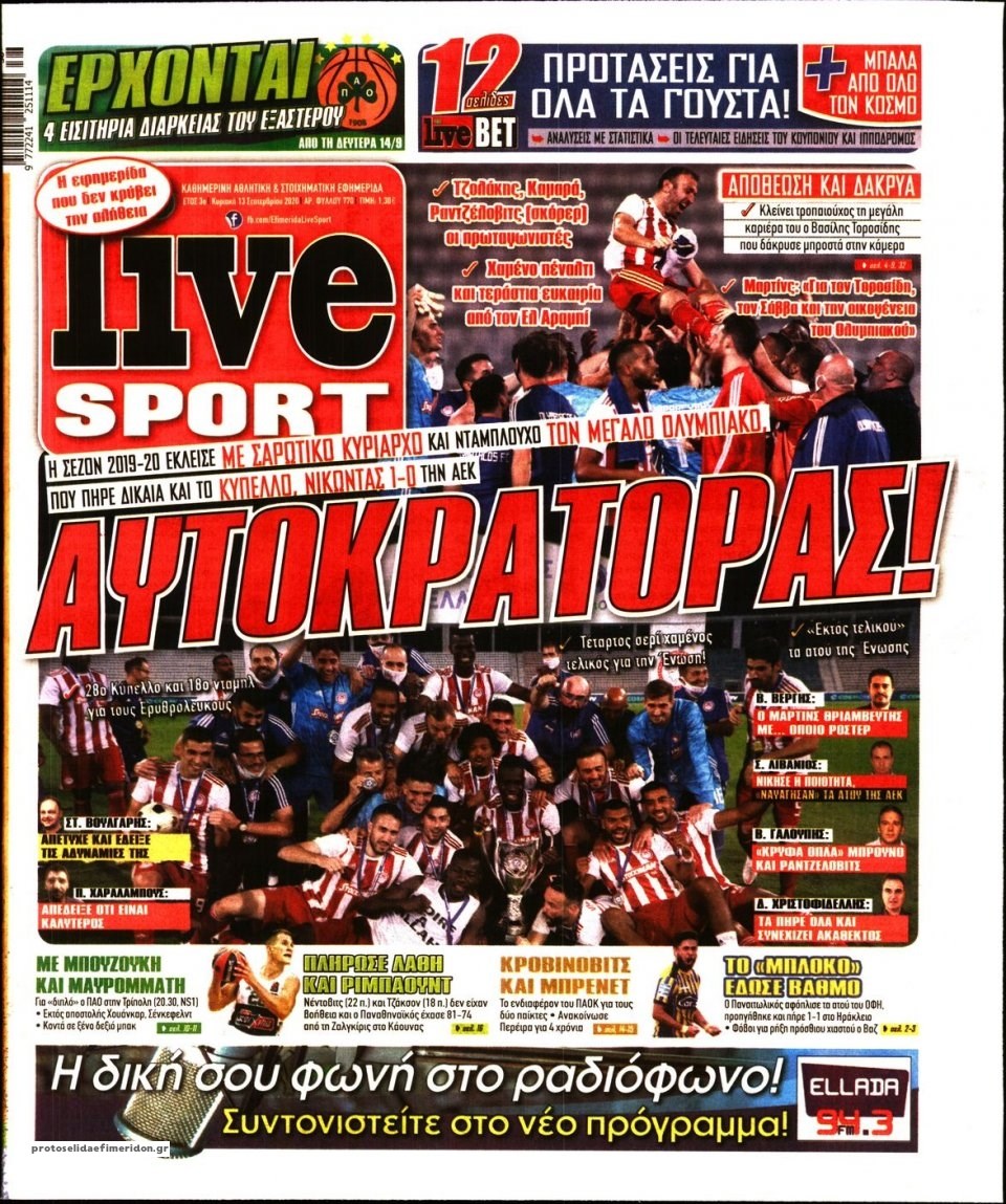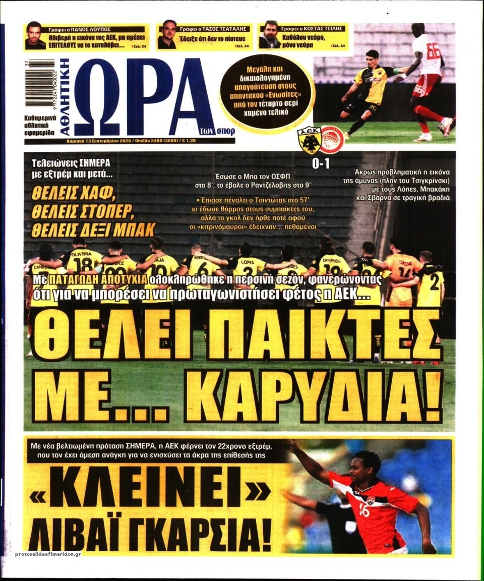 Οι αθλητικές εφημερίδες 13/9/2020 Σήφης Γαρυφαλάκης 07:39, Κυριακή 13 Σεπτεμβρίου 2020 Media Διαβάστε τα πρωτοσέλιδα των αθλητικών εφημερίδων… ΑΘΛΗΤΙΚΕΣ ΕΦΗΜΕΡΙΔΕΣ ΕΦΗΜΕΡΙΔΕΣ ΠΡΩΤΟΣΕΛΙΔΑ ΠΡΩΤΟΣΕΛΙΔΑ ΕΦΗΜΕΡΙΔΩΝ Μοιράσου το: σχολίασε κι εσύ (0 σχόλια) Ακολουθήστε το enikos.gr στο Google News και μάθετε πρώτοι όλες τις ειδήσεις Δείτε όλες τις τελευταίες ειδήσεις από την Ελλάδα και τον Κόσμο στο enikos.gr Ειδήσεις Ροή Ειδήσεων 3 ώρες πριν Αυξάνουν την πίεση προς την κυβέρνηση οι αγρότες: Κλείνουν παρακαμπτήριους και ανοίγουν διόδια – Τι θα γίνει τις γιορτές 1 ώρα πριν ΟΠΕΚΕΠΕ: Προφυλακιστέος ο φερόμενος αρχηγός και ο λογιστής της εγκληματικής οργάνωσης 2 ώρες πριν Φοινικούντα: Το Σάββατο απολογείται ο 30χρονος γιος γνωστού επιχειρηματία της Πλάκας που παραδόθηκε – Όσα είπε στους αστυνομικούς και ο ρόλος του στο έγκλημα 2 ώρες πριν Μπορεί ο Μαδούρο να αντέξει τον αποκλεισμό του Τραμπ; Τι θα χρειαστεί η Ουάσινγκτον για να τον ανατρέψει 4 ώρες πριν Πρίγκιπας Ουίλιαμ – Κέιτ: Η νέα οικογενειακή φωτογραφία για τις Χριστουγεννιάτικες κάρτες του 2025 3 ώρες πριν Ύπνος: Η απλή βραδινή ρουτίνα για να προστατεύσετε τα μαλλιά σας από το κρύο κατά τη διάρκεια του χειμώνα 4 ώρες πριν Manifesting: Πώς να συναντήσετε τον σύντροφο της ζωής σας, ανάλογα με τον μήνα γέννησής σας 2 ημέρες πριν 20 χρόνια τα Χριστούγεννα ξεκινούν στα Public με μεγάλη ποικιλία σε δώρα! 2 ώρες πριν Αρχαιολόγοι ανακάλυψαν ρωμαϊκά τεχνουργήματα από μια πόλη που δεν υπήρξε ποτέ – Τα τρία εντυπωσιακά κτίρια και ο αμφορέας με τις… σαρδέλες 3 λεπτά πριν Νέος πρέσβης της Μεγάλης Βρετανίας στις ΗΠΑ ο Κρίστιαν Τέρνερ 7 λεπτά πριν Conference League: Με Νόα, Ντρίτα, Άλκμααρ ή Τσέλιε στους «16» η ΑΕΚ 15 λεπτά πριν Conference League: Απευθείας στους «16» η ΑΕΚ Λάρνακας και η Ρακόβ των Σβάρνα και Κωνσταντόπουλου – Τα αποτελέσματα και η βαθμολογία, 3η η ΑΕΚ 25 λεπτά πριν Σε ομάδες που συνδέονται με το ρωσικό κράτος αποδίδει η Δανία δύο κυβερνοεπιθέσεις που δέχθηκε 40 λεπτά πριν Βαθμολογία UEFA: Η Πολωνία προσπέρασε την Ελλάδα ENIKOS NETWORK Σε περίοδο αυξημένης δραστηριότητας η γρίπη στην Ελλάδα-Μέτρα προστασίας από τον ΕΟΔΥ Σκέφτεστε συνέχεια συζητήσεις που έχετε κάνει; Τι σημαίνει αυτό, σύμφωνα με ειδικό Στεγαστικό: Τι λέει η ΠΟΜΙΔΑ για τα νέα μέτρα που ανακοίνωσε ο Κυριάκος Μητσοτάκης Λαγκάρντ: Αισιόδοξη για την ανάπτυξη της Ευρωζώνης, αβέβαιη για τον πληθωρισμό Χαρτογραφώντας το «σημείο χωρίς επιστροφή»: Για πρώτη φορά αποκαλύπτεται με λεπτομέρεια το ακανθώδες όριο της ατμόσφαιρας τ... Η Google καταργεί τη λειτουργία «dark web report» – Πώς θα μπορούν οι χρήστες να διαγράφουν τα δεδομένα τους περισσότερα 17:45 , Πέμπτη 18 Δεκεμβρίου 2025 ROUK ZOUK: Εορταστικό επεισόδιο με καλεσμένους τους πρωταγωνιστές του «Γιατί ρε πατέρα» Το Σάββατο 20 Δεκεμβρίου στις 21:00, η Ζέτα Μακρυπούλια υποδέχεται εκλεκτούς ηθοποιούς που όλο... 17:20 , Πέμπτη 18 Δεκεμβρίου 2025 Άγιος έρωτας: Η Χριστίνα εξομολογείται στον πατέρα Νικόλαο, απόψε στις 21:00 στον Alpha Η Νότα αποφασίζει να εκδικηθεί τον Πέτρο και τον Στέφανο, για χάρη του Λούη, όμως τα πράγματα ... 16:50 , Πέμπτη 18 Δεκεμβρίου 2025 Να μ’ αγαπάς: Ζωή και Φωτεινή συμφιλιώνονται ως μάνα με κόρη, απόψε στις 20:00 Η ταυτότητα του Άγγελου αποκαλύπτεται στο νέο επεισόδιο της σειράς “Να μ’ αγαπάς... 15:52 , Πέμπτη 18 Δεκεμβρίου 2025 Το Σπίτι Δίπλα Στο Ποτάμι: Το καθηλωτικό τελευταίο επεισόδιο για το 2025 απόψε στις 22:30 Καθηλώνει το σημερινό επεισόδιο της σειράς “Το Σπίτι Δίπλα Σ