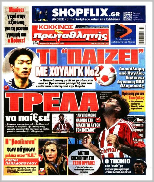 Οι αθλητικές εφημερίδες 14/8/2022 Σήφης Γαρυφαλάκης 07:37, Κυριακή 14 Αυγούστου 2022 Media Διαβάστε τα πρωτοσέλιδα από τις αθλητικές εφημερίδες, σήμερα 14/08/2022. ΑΘΛΗΤΙΚΕΣ ΕΦΗΜΕΡΙΔΕΣ ΕΦΗΜΕΡΙΔΕΣ ΠΡΩΤΟΣΕΛΙΔΑ Μοιράσου το: Οι αθλητικές εφημερίδες 13/8/2022 Οι αθλητικές εφημερίδες 12/8/2022 Οι αθλητικές εφημερίδες 11/8/2022 σχολίασε κι εσύ (0 σχόλια) Ακολουθήστε το enikos.gr στο Google News και μάθετε πρώτοι όλες τις ειδήσεις Δείτε όλες τις τελευταίες ειδήσεις από την Ελλάδα και τον Κόσμο στο enikos.gr Ειδήσεις Ροή Ειδήσεων 2 ώρες πριν Αυστραλία: Σχέσεις με το ISIS εκτιμάται πως είχαν οι δράστες της τρομοκρατικής επίθεσης στο Σίδνεϊ 2 ώρες πριν Αγρότες: Αμετακίνητοι από τα μπλόκα σε τελωνεία και εθνικές οδούς – Ο χάρτης των κινητοποιήσεων και τα αιτήματά τους 2 ώρες πριν Σοκ στο Χόλιγουντ: Νεκροί από μαχαιριές ο σκηνοθέτης Ρομπ Ράινερ και η σύζυγός του – Αναφορές ότι τους σκότωσε ο γιος τους 2 ώρες πριν Δολοφονία στη Φοινικούντα: Απολογούνται σήμερα οι δύο συλληφθέντες – Στο «κάδρο» και δύο γυναίκες 1 ώρα πριν Τρόμος στην Κηφισιά: Ανήλικος ληστής έκανε κεφαλοκλείδωμα σε γυναίκα υπάλληλο φούρνου και άρπαξε χρήματα – ΒΙΝΤΕΟ 1 ώρα πριν Κληρονόμησε 2,8 εκατ. ευρώ και φοβάται ότι οι άνδρες θα την πλησιάζουν για τα λεφτά – «Μήπως καλύτερα να το κρατήσω μυστικό;» 2 ώρες πριν Κάτω από παλάτι κρυβόταν ένα άλλο μνημειώδες ανάκτορο: Οι ανασκαφές σε αρχαία πόλη αποκάλυψαν τα ερείπια και τα μυστικά του 5 ώρες πριν Τα ζώδια σήμερα, Δευτέρα 15 Δεκεμβρίου: Ιχθύες, ξεκινήστε από εκεί που η παρουσία σας έχει σημασία 4 ώρες πριν Διατροφή: Γιατρός προειδοποιεί για 2 απλά λάθη που αυξάνουν τον κίνδυνο χρόνιων παθήσεων 2 λεπτά πριν Το χρυσό συμβόλαιο της THEON INTERNATIONAL 5 λεπτά πριν Τα 3 ζώδια που μπαίνουν σε μια νέα δυναμική εποχή – «Είστε έτοιμοι για όλα» 13 λεπτά πριν Αλλάζει το σκηνικό του καιρού την Παρασκευή: «Το ατμοσφαιρικό βουνό υποχωρεί και ανοίγει ο δρόμος για τις κακοκαιρίες» 18 λεπτά πριν Λίλα Μπακλέση – Νατάσα Εξηνταβελώνη: «Όταν πας μια Πατρινιά και μια Περιστεριώτισσα σε εστιατόριο με Michelin – Βίντεο από την έξοδό τους 23 λεπτά πριν Τσιάρας για αγροτικές κινητοποιήσεις: Μονόδρομος ο διάλογος – Διαφάνεια με τη μεταφορά του ΟΠΕΚΕΠΕ στην ΑΑΔΕ ENIKOS NETWORK Έλλειψη μαγνησίου: Ποια τα συμπτώματα που επηρεάζουν ύπνο, ενέργεια και διάθεση Έχετε καλή φυσική κατάσταση; Δείτε αν μπορείτε να κάνετε αυτές τις 5 κινήσεις Δάνεια σε ελβετικό φράγκο: Ανακοινώνεται η ρύθμιση- Ποιοι και πόσο θα έχουν όφελος – Όλες οι λεπτομέρειες Τέλος οι διώξεις για χρέη σε Εφορία και ΕΦΚΑ – Τι προβλέπει νέα διάταξη μετά την πτώχευση Σύγχρονος Νοστράδαμος: Προειδοποιεί για «μεγάλο γεγονός» τους επόμενους μήνες που θα συγκλονίσει τη Βρετανία και τον κόσμο Τεστ παρατηρητικότητας: Μπορείτε να βρείτε τις 3 διαφορές στις εικόνες με έναν πιγκουίνο σε 14 δευτερόλεπτα περισσότερα 09:15 , Δευτέρα 15 Δεκεμβρίου 2025 Την Κυριακή με τη Realnews: Ό,τι και αν αγοράσεις, σκανάρεις και κερδίζεις! Την Κυριακή με τη Realnews: Ό,τι και αν αγοράσεις, σκανάρεις και κερδίζεις! Με το PADU app, το... 07:42 , Δευτέρα 15 Δεκεμβρίου 2025 Την Κυριακή με τη Realnews: Δωροεπιταγή10€ Δωροεπιταγή αξίας 10€ για αγορές άνω των 60€ από τα πολυκαταστήματα FactoryOutlet H προσφορά ι... 07:17 , Δευτέρα 15 Δεκεμβρίου 2025 Αυτή την Κυριακή με τη Realnews: Instyle, μαζί Drive και Realnews Geopolitics Αυτή την Κυριακή με τη Realnews: Instyle, μαζί Drive και Realnews Geopolitics Instyle Η Άννα Ρ... 05:49 , Δευτέρα 15 Δεκεμβρίου 2025 Οι οικονομικές εφημερίδες 15/12/2025 Διαβάστε τα πρωτ