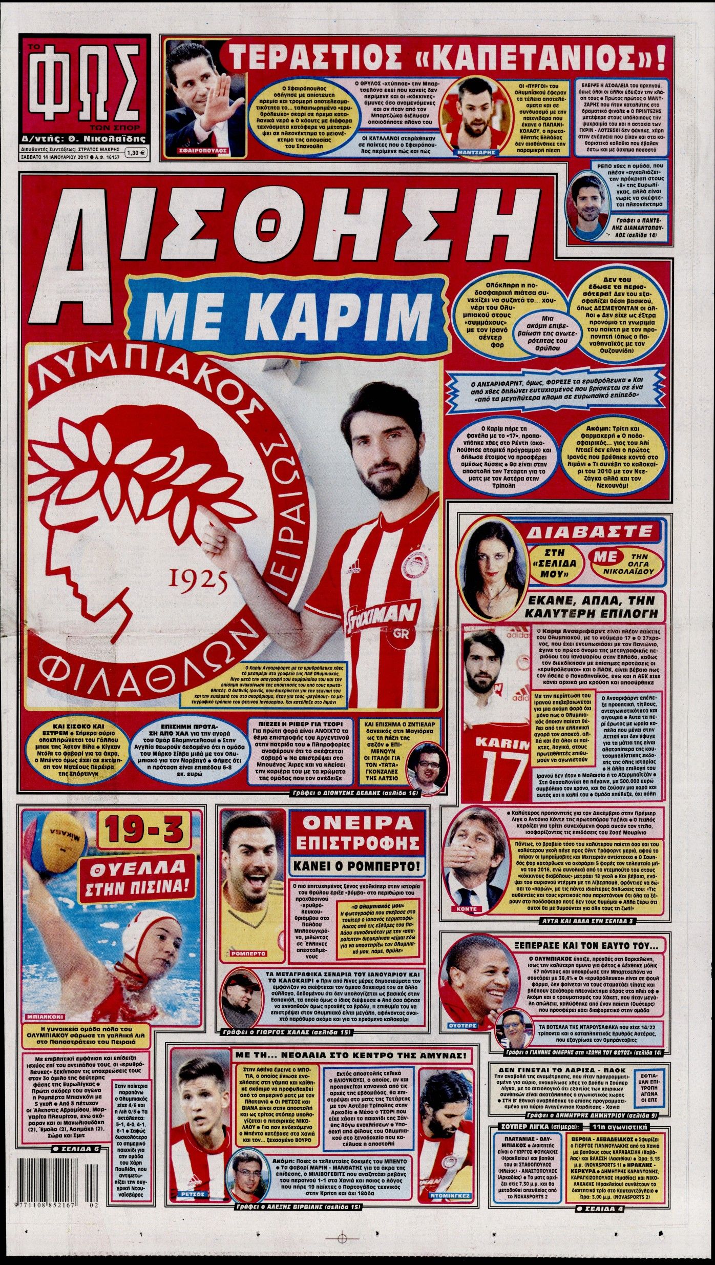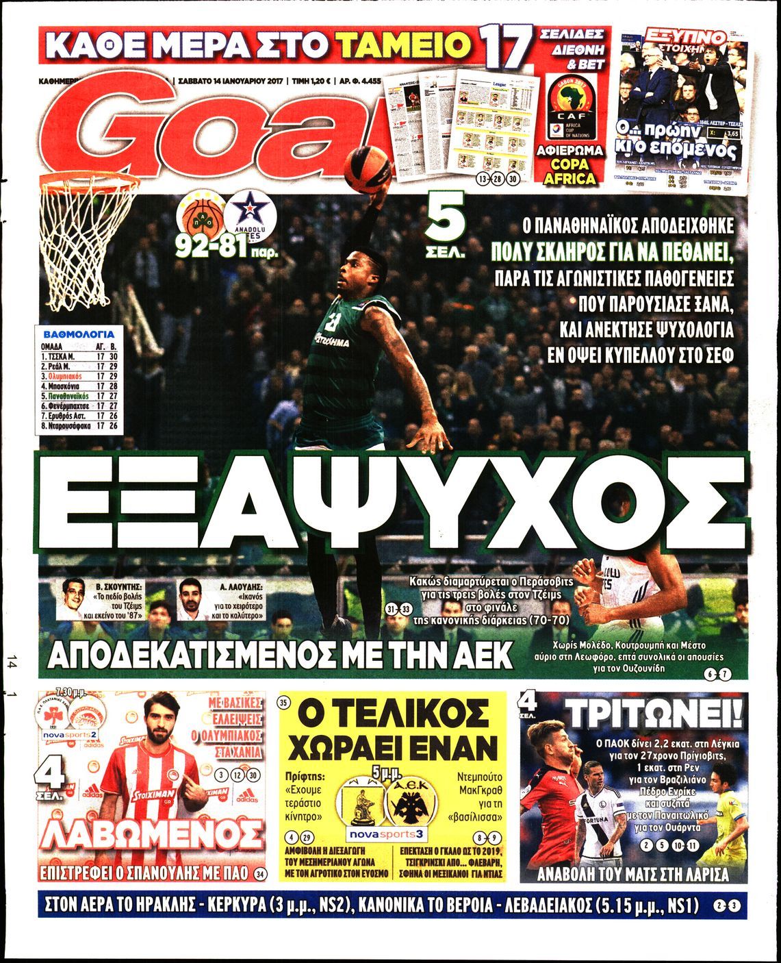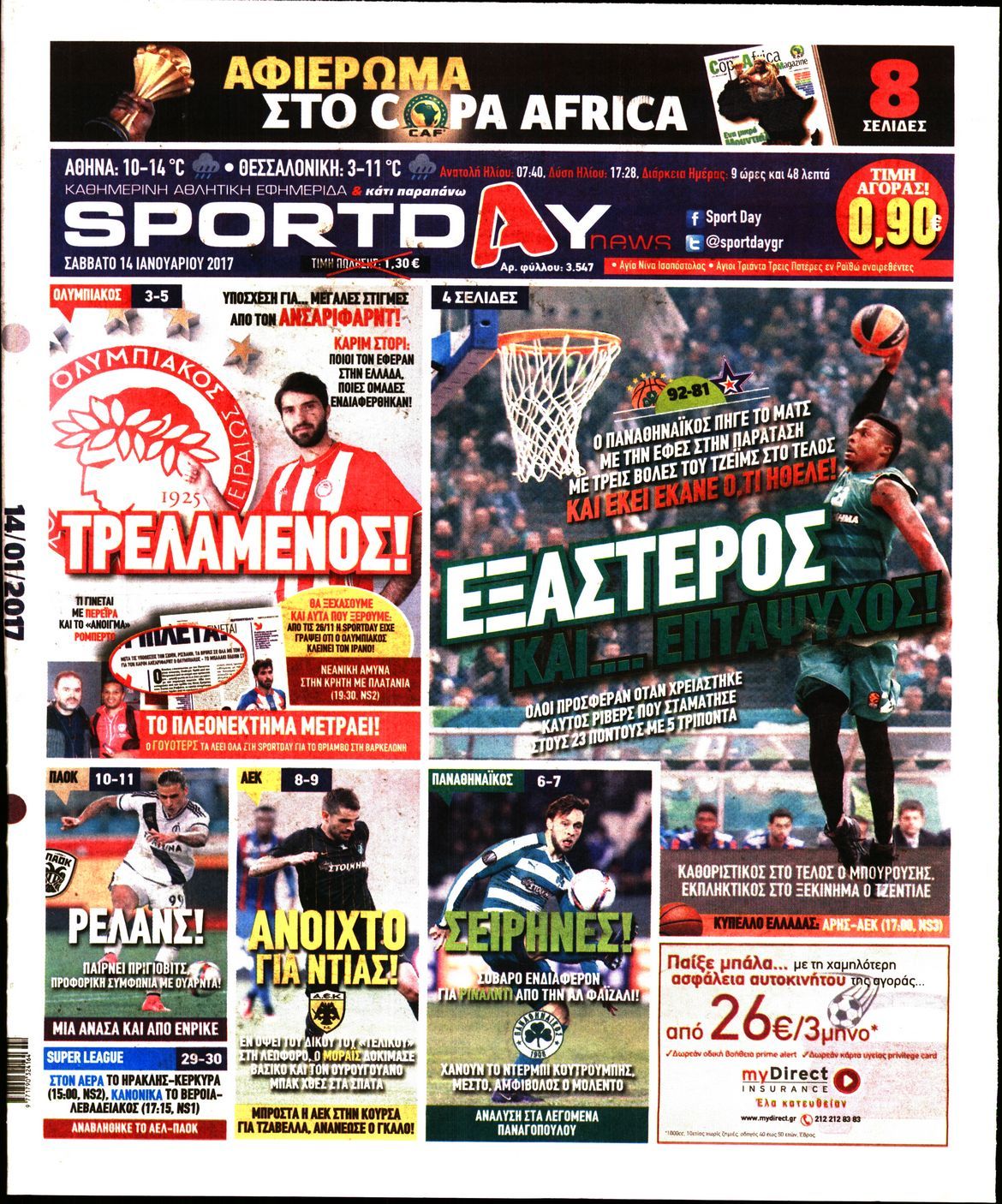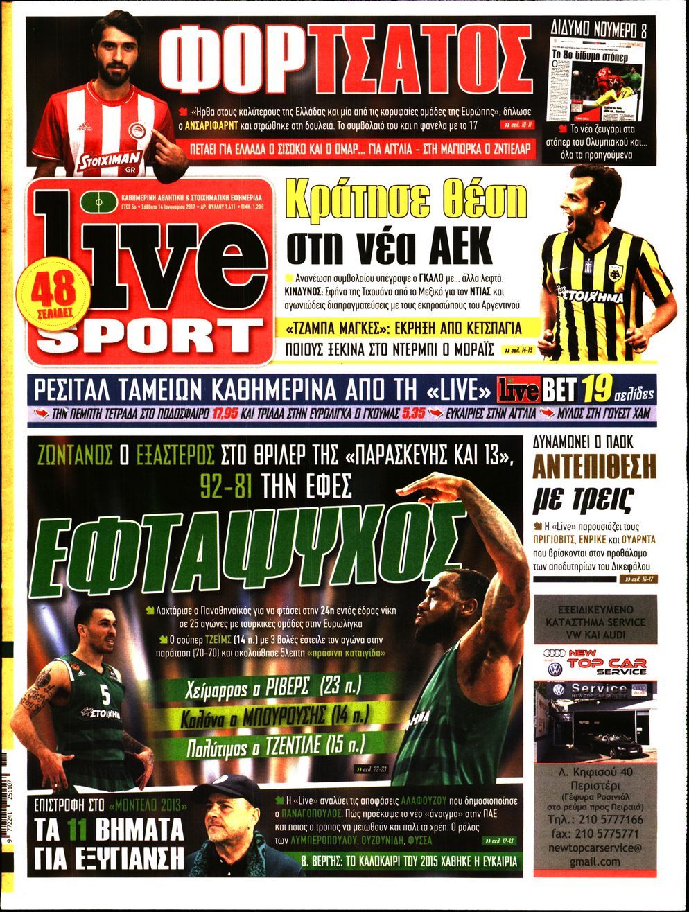 Οι αθλητικές εφημερίδες 14/01/2017 Enikos Newsroom 00:50, Σάββατο 14 Ιανουαρίου 2017 Media Διαβάστε τα σημερινά πρωτοσέλιδα των αθλητικών εφημερίδων: ΑΘΛΗΤΙΚΕΣ ΕΦΗΜΕΡΙΔΕΣ ΠΡΩΤΟΣΕΛΙΔΑ Μοιράσου το: σχολίασε κι εσύ (0 σχόλια) Ακολουθήστε το enikos.gr στο Google News και μάθετε πρώτοι όλες τις ειδήσεις Δείτε όλες τις τελευταίες ειδήσεις από την Ελλάδα και τον Κόσμο στο enikos.gr Ειδήσεις Ροή Ειδήσεων 5 ώρες πριν Εκτός ευρωομάδας ΣΥΡΙΖΑ ο Νίκος Παππάς μετά την επίθεση στον δημοσιογράφο Νίκο Γιαννόπουλο – Η μήνυση και οι νέες δηλώσεις 6 ώρες πριν «Αγριεύουν» οι αγρότες: «Δεν συντρέχει λόγος συνάντησης με τον πρωθυπουργό» – Ώρα αποφάσεων στη σύσκεψη της Πέμπτης 6 ώρες πριν Κυψέλη: Χωρίς την οικογένειά της δίπλα της απολογήθηκε η 16χρονη – «Της είχε επιτεθεί κάποιος για να την βιάσει, φοβήθηκε και κυκλοφορούσε με μαχαίρι» 5 ώρες πριν Politico: Το πρόβλημα της Ευρώπης δεν είναι το Βέλγιο αλλά ο Ντόναλντ Τραμπ 7 ώρες πριν Αλεξανδρούπολη: Πολυοργανική ανεπάρκεια λόγω υποσιτισμού η αιτία θανάτου του 3χρονου αγοριού 5 ώρες πριν Μυστήριο με τεράστιες κυκλικές πέτρες 200 κιλών – Ανακαλύφθηκαν τυχαία κατά τη διάρκεια οδικών έργων και κανείς δεν ξέρει από πού προέρχονται 6 ώρες πριν Ύπνος: Ειδικός εξηγεί τον πραγματικό λόγο που ξυπνάτε στις 4 τα ξημερώματα – Ο ρόλος των ορμονών και του κιρκάδιου ρυθμού 7 ώρες πριν Αριθμολογία: Οι άνθρωποι που έχουν γεννηθεί αυτές τις 4 ημερομηνίες, είναι τρυφεροί και αγαπούν ανιδιοτελώς 19 ώρες πριν 20 χρόνια τα Χριστούγεννα ξεκινούν στα Public με μεγάλη ποικιλία σε δώρα! 15 λεπτά πριν Νέο αμερικανικό πλήγμα σε σκάφος που φέρεται να μετέφερε ναρκωτικά στον Ειρηνικό – Τέσσερις νεκροί 30 λεπτά πριν Αλ Τσαντίρι Νιουζ: «Λύγισε» ο Δημήτρης Λάλος για τον Δημήτρη Ήμελλο – «Τον μνημονεύω, να ‘ναι καλά εκεί που είναι» 45 λεπτά πριν GNTM: Με δάκρυα τον αποχαιρέτησε η Ηλιάνα Παπαγεωργίου πριν από τον ημιτελικό – «Αισθάνομαι πολύ παράξενα» 1 ώρα πριν Αμερικανικά στρατεύματα στον Ισημερινό για «προσωρινή» επιχείρηση κατά των ναρκωτικών 1 ώρα πριν Βραζιλία: Το Κογκρέσο ενέκρινε σχέδιο νόμου για τη μείωση της ποινής του πρώην προέδρου Μπολσονάρου ENIKOS NETWORK Αϋπνία: Το κόλπο που θα σας βοηθήσει να κοιμηθείτε απόψε – Είναι απλό και έχει αποτέλεσμα 2,6 εκατομμύρια πολίτες έχουν ήδη εμβολιαστεί κατά της γρίπης ΕΛΣΤΑΤ: Τι δείχνουν τα νέα στοιχεία για τις ηλεκτρονικές παραγγελίες των επιχειρήσεων ΚΕΠΕ: Οι 3 διακριτές συμβολές των ΜμΕ και της μεταποίησης στην ελληνική οικονομία Χαρτογραφώντας το «σημείο χωρίς επιστροφή»: Για πρώτη φορά αποκαλύπτεται με λεπτομέρεια το ακανθώδες όριο της ατμόσφαιρας τ... Η Google καταργεί τη λειτουργία «dark web report» – Πώς θα μπορούν οι χρήστες να διαγράφουν τα δεδομένα τους περισσότερα 02:30 , Πέμπτη 18 Δεκεμβρίου 2025 Αλ Τσαντίρι Νιουζ: Η κόρη της Πάολα στο κοινό – Η ατάκα Λαζόπουλου που την έκανε να «κοκκινήσει» Γιορτινή διάθεση και ευχάριστες στιγμές γέμισε η αποψινή, τελευταία για το 2025, εκπομπή του «... 22:24 , Τετάρτη 17 Δεκεμβρίου 2025 Το Σπίτι Δίπλα Στο Ποτάμι: Σε κίνδυνο η υγεία του Απόστολου – Τι θα δούμε απόψε “Το Σπίτι Δίπλα στο Ποτάμι” ξετυλίγει το νήμα της ζωής των πέντε αδελφών με καταισ... 21:14 , Τετάρτη 17 Δεκεμβρίου 2025 Παιχνίδια Εκδίκησης: Θα καταφέρει ο Χρήστος να κλονίσει την εμπιστοσύνη της Μάγιας απέναντι στον Άγη; Τα «Παιχνίδια Εκδίκησης» έρχονται απόψε στις 22:30, στον Αντ1, με το τελευταίο επεισόδιο της χ... 20:57 , Τετάρτη 17 Δεκεμβρίου 2025 Άγιος Έρωτας: Η Χλόη 