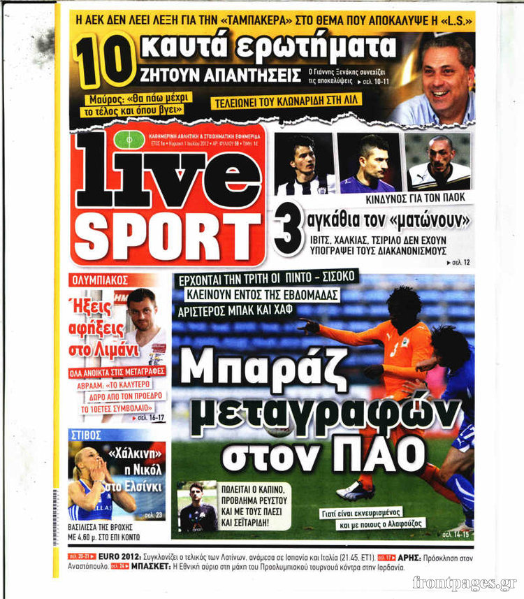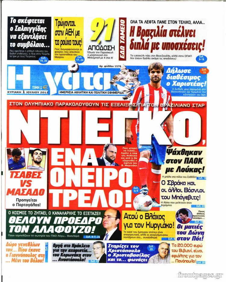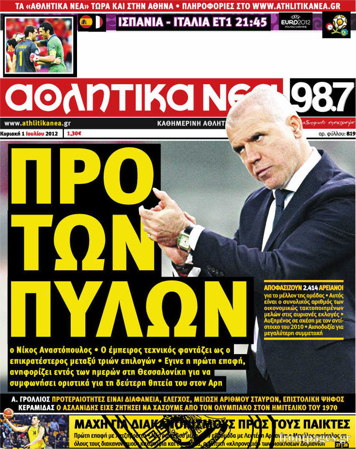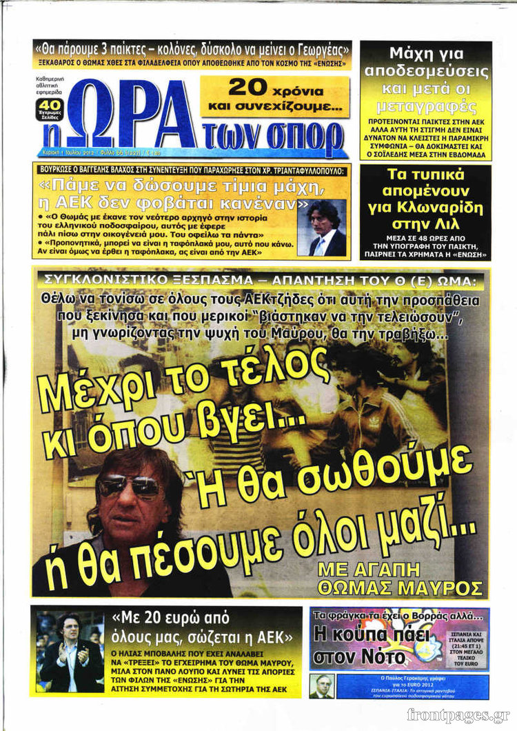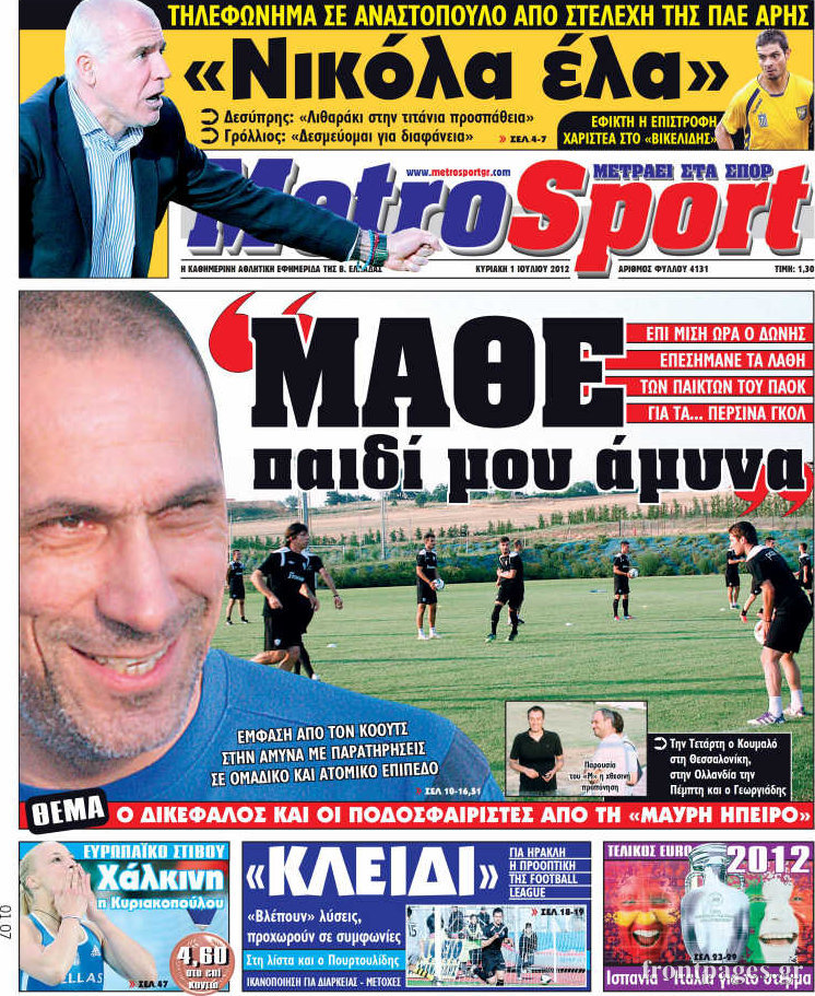 Οι αθλητικές εφημερίδες Enikos Newsroom 09:59, Κυριακή 01 Ιουλίου 2012 Media ΕΦΗΜΕΡΙΔΕΣ Μοιράσου το: σχολίασε κι εσύ (0 σχόλια) Ακολουθήστε το enikos.gr στο Google News και μάθετε πρώτοι όλες τις ειδήσεις Δείτε όλες τις τελευταίες ειδήσεις από την Ελλάδα και τον Κόσμο στο enikos.gr Ειδήσεις Ροή Ειδήσεων 5 ώρες πριν Χριστούγεννα στα μπλόκα: Επιμένουν στις κινητοποιήσεις τους οι αγρότες – Ανοίγουν τα διόδια το Σαββατοκύριακο 5 ώρες πριν Ουκρανία: Η άνευ προηγουμένου επίθεση σε ρωσικό τάνκερ στη Μεσόγειο και το μήνυμα προς στον Πούτιν – Το «μακρύ χέρι» του Κιέβου 4 ώρες πριν Πούτιν: Τα μηνύματα σε Ευρώπη και ΝΑΤΟ από το μαραθώνιο «σόου» του – Η απαίτηση για «σεβασμό» και η ειρήνη «με τους όρους» της Μόσχας 5 ώρες πριν Τραμπ: Δεν αποκλείει την πιθανότητα ενός πολέμου στη Βενεζουέλα – «Ο Μαδούρο ξέρει καλύτερα από τον καθένα τι ακριβώς θέλω» 6 ώρες πριν Συνεχίζει να προκαλεί ο Μίτσκοσκι: «Για μένα το όνομα Μακεδονία είναι ιερό» 4 ώρες πριν Ανακαλύφθηκαν αρχαία χρυσά νομίσματα 2.200 ετών που απεικονίζουν τον θεό Απόλλωνα – Η άγνωστη σύνδεση με τον Φίλιππο Β΄ της Μακεδονίας 5 ώρες πριν Ύπνος: Μια κρυφή κατάσταση του εγκεφάλου πριν από τον ύπνο μπορεί να είναι το “κλειδί” για υψηλή ευφυΐα και δημιουργικότητα 6 ώρες πριν Αριθμολογία: Οι άνθρωποι που έχουν γεννηθεί αυτές τις 4 ημερομηνίες, συχνά παρεξηγούνται – «Η καλοσύνη τους κρύβει τεράστια δύναμη» 7 ώρες πριν Ξεχάστε το καθάρισμα το Σαββατοκύριακο: Ο «κανόνας των 20 λεπτών» που θα σας λύσει τα χέρια 11 λεπτά πριν Η Ελλάδα προσχωρεί στη Διεθνή Επιτροπή Αποζημιώσεων για την Ουκρανία 26 λεπτά πριν GNTM: Η Ξένια Τσίρκοβα αναδείχθηκε μεγάλη νικήτρια και πήρε τις 50.000 ευρώ – Ποιος βρέθηκε σε απόσταση αναπνοής; 41 λεπτά πριν Θεσσαλονίκη: Εξαφανίστηκε 13χρονος από χώρο φιλοξενίας ασυνόδευτων ανηλίκων στο Ωραιόκαστρο 51 λεπτά πριν Ντόναλντ Τραμπ: «Πολύ βαριά αντίποινα» στη Συρία – «Πλήττουμε πολύ δυνατά οχυρά του Ισλαμικού Κράτους» 1 ώρα πριν Εξάρχεια: Ένταση με μολότοφ, χημικά και κρότου λάμψης ENIKOS NETWORK Το ΕΚΑΒ τιμήθηκε από την Ακαδημία Αθηνών για τα 40 χρόνια προσφοράς του Έχετε πραγματικά μεγάλη καρδιά; 10 χαρακτηριστικά όσων έχουν καλοσύνη Αναστολή μέτρων αναγκαστικής εκτέλεσης για κτηνοτρόφους που πλήττονται από την ευλογιά των αιγοπροβάτων Πλήρης επάρκεια προϊόντων στις λαϊκές της Αττικής, παρά τις αγροτικές κινητοποιήσεις – Τι απαντούν οι πωλητές Χαρτογραφώντας το «σημείο χωρίς επιστροφή»: Για πρώτη φορά αποκαλύπτεται με λεπτομέρεια το ακανθώδες όριο της ατμόσφαιρας τ... Η Google καταργεί τη λειτουργία «dark web report» – Πώς θα μπορούν οι χρήστες να διαγράφουν τα δεδομένα τους περισσότερα 02:50 , Σάββατο 20 Δεκεμβρίου 2025 GNTM: Η Ξένια Τσίρκοβα αναδείχθηκε μεγάλη νικήτρια και πήρε τις 50.000 ευρώ – Ποιος βρέθηκε σε απόσταση αναπνοής; Με φαντασμαγορικό τρόπο ολοκληρώθηκε το βράδυ της Παρασκευής ο μεγάλος τελικός του GNTM, μέσα ... 22:42 , Παρασκευή 19 Δεκεμβρίου 2025 Γιώργος Γιαννόπουλος για “Το σόι σου”: “Είναι ευτυχία και ευλογία αυτή η σειρά” «Είναι ευτυχία και ευλογία η συγκυρία αυτής της σειράς», θα πει ο Γιώργος Γιαννόπουλος -ο αγαπ... 20:37 , Παρασκευή 19 Δεκεμβρίου 2025 Don’t Forget The Lyrics: Η Έλλη Κοκκίνου υποδέχεται 4 παίκτες που θα κάνουν τα πάντα για να μη χάσουν ούτε… μισή λέξη από τους στίχους Το «Don’t Forget The Lyrics» επιστρέφει απόψε, Παρασκευή 19 Δεκεμβρίου, στις 21:00 με νέο επει... 19:31 , Παρασκευή 19 Δεκεμβρίου 2025 GNTM: Απόψε ο μεγάλος τελικός για τους 4 φιναλίστ Έπ