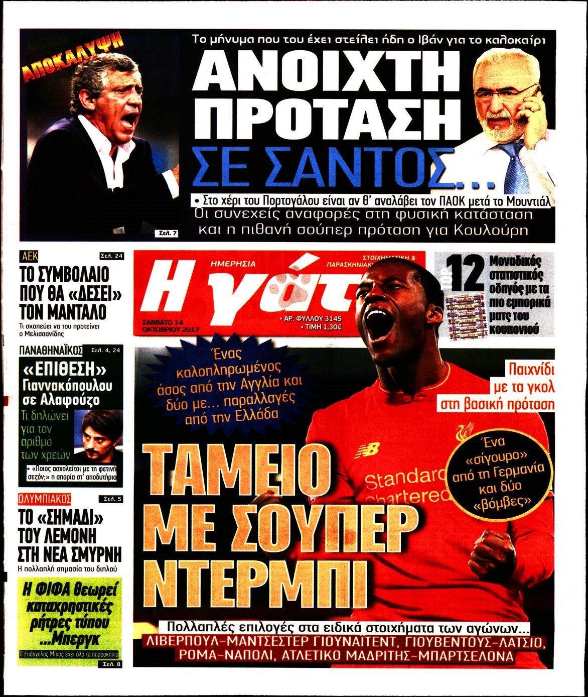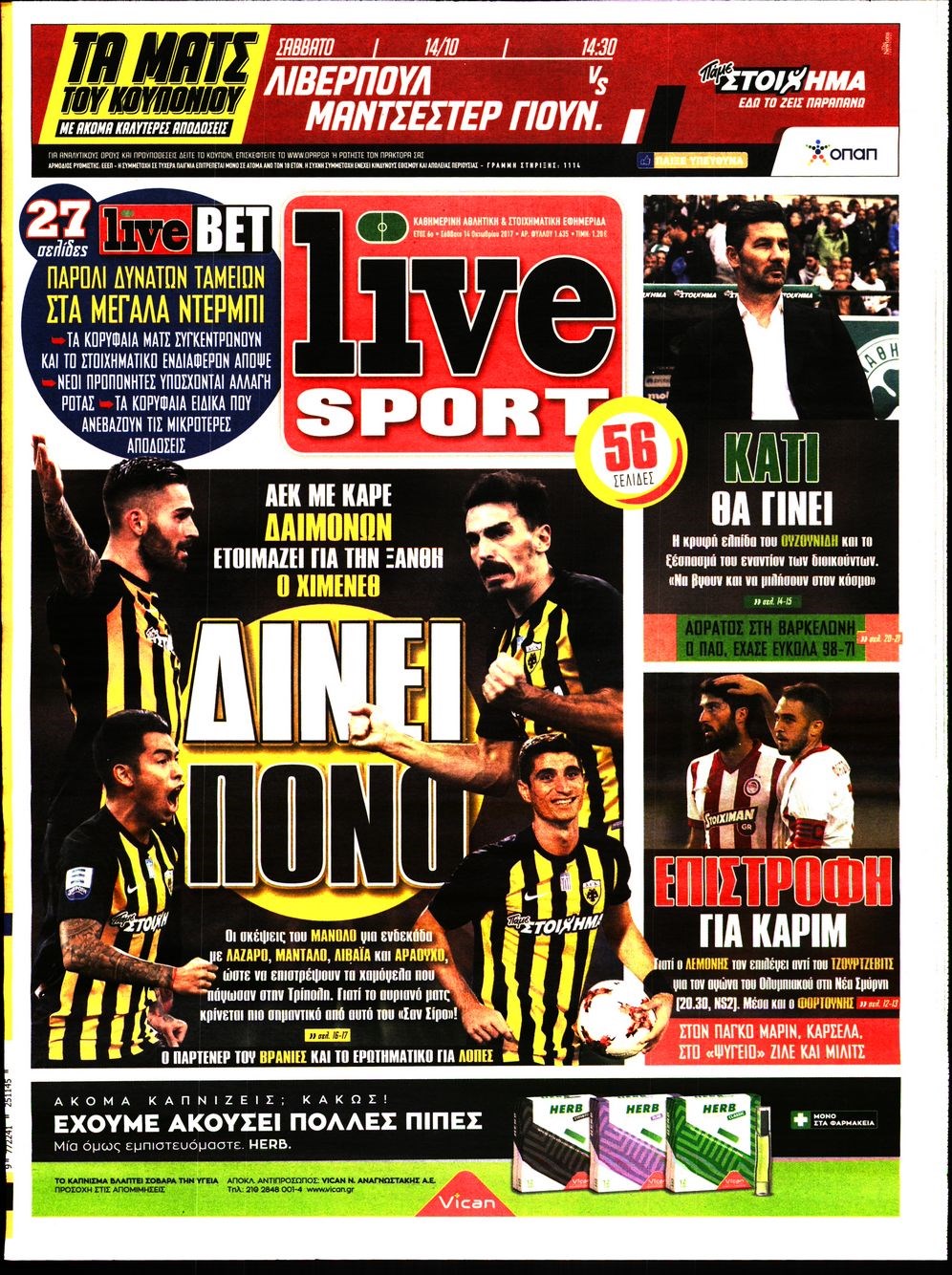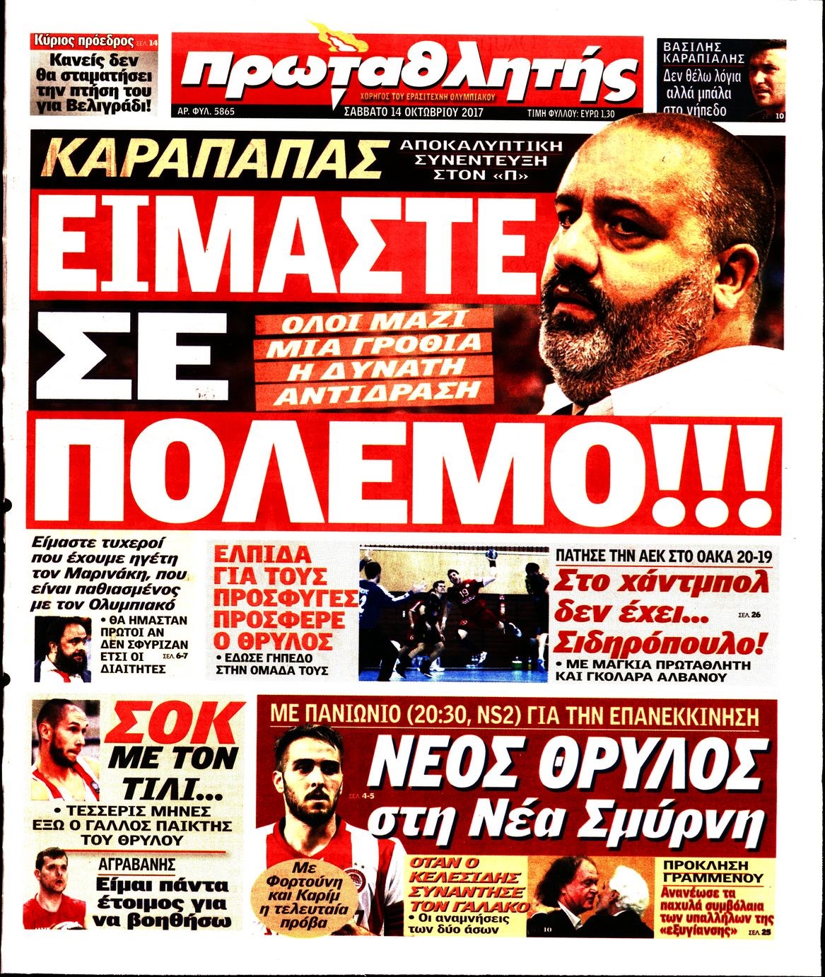 Οι αθλητικές εφημερίδες 14/10/2017 Enikos Newsroom 07:41, Σάββατο 14 Οκτωβρίου 2017 Media Διαβάστε τα σημερινά πρωτοσέλιδα των αθλητικών εφημερίδων: ΑΘΛΗΤΙΚΕΣ ΕΦΗΜΕΡΙΔΕΣ ΠΡΩΤΟΣΕΛΙΔΑ Μοιράσου το: σχολίασε κι εσύ (0 σχόλια) Ακολουθήστε το enikos.gr στο Google News και μάθετε πρώτοι όλες τις ειδήσεις Δείτε όλες τις τελευταίες ειδήσεις από την Ελλάδα και τον Κόσμο στο enikos.gr Ειδήσεις Ροή Ειδήσεων 3 ώρες πριν Η Ουκρανία χτύπησε τάνκερ του σκιώδους στόλου της Ρωσίας στη Μεσόγειο – Έπλεε νότια της Κρήτης 1 ώρα πριν Πούτιν: Σαρκαστικά μηνύματα, παράπονα και απρόοπτα στη συνέντευξη Τύπου – Η πρόταση γάμου on air και οι ερωτήσεις για τα αγγούρια και τους… εξωγήινους 1 ώρα πριν Η απάντηση της κυβέρνησης στα αιτήματα των αγροτών: 16+4 υλοποιούνται ή βρίσκονται υπό επεξεργασία για να βρεθεί λύση – 7 δεν μπορούν να επιλυθούν 2 ώρες πριν Θεσσαλονίκη: Στη φυλακή ο 44χρονος που κατηγορείται ότι προσπάθησε να πνίξει με κορδόνι την 34χρονη σύντροφό του 2 ώρες πριν Εξώδικο επιχειρηματία στον Γιώργο Μαζωνάκη – Τι απαντά στις καταγγελίες του τραγουδιστή 46 λεπτά πριν Τα 5 ζώδια που ευνοούνται στην ερωτική ζωή τους την επόμενη εβδομάδα – «Η ενέργεια του Αιγόκερου φέρνει αγάπη και σταθερότητα» 6 ώρες πριν Γεμάτος νεροχύτης; 5 σοβαρές ευθύνες που «φοβίζουν» όσους αφήνουν άπλυτα πιάτα 5 ώρες πριν Ειδικός μοιράζεται 6 κόλπα για να διατηρείστε σε φόρμα με πάνω από 40 ώρες εργασίας την εβδομάδα: «Προπονηθείτε πριν από τη δουλειά, όχι μετά» 2 ημέρες πριν 20 χρόνια τα Χριστούγεννα ξεκινούν στα Public με μεγάλη ποικιλία σε δώρα! 5 λεπτά πριν Τραγωδία στη Λάρισα: Νεκρή γυναίκα που παρασύρθηκε από φορτηγό 10 λεπτά πριν Κασπία Θάλασσα: Ουκρανικά πλήγματα με drones σε ρωσική εξέδρα άντλησης πετρελαίου 14 λεπτά πριν Μαρινάκης για το «όχι» του ΠΑΣΟΚ στην ένταξη του ΟΠΕΚΕΠΕ στην ΑΑΔΕ: «Εκτεθειμένος ο κ. Ανδρουλάκης απέναντι στους αγρότες» 19 λεπτά πριν Γιώργος Καπουτζίδης για Γιώργο Μαζωνάκη: «Όλο αυτό φαντάζομαι ότι θα φανεί σε ένα δικαστήριο…» 24 λεπτά πριν Τσουκαλάς: Ο πρωθυπουργός επιλέγει τη ρήξη με τον αγροτικό κόσμο ENIKOS NETWORK Τάξη στις ιατρικές διαφημίσεις για την προστασία των πολιτών βάζει ο ΙΣΑ Μακροζωία: Τι παίζει πιο σημαντικό ρόλο ακόμα και από την διατροφή και την άσκηση, σύμφωνα με μελέτη Παπαθανάσης για νέο Εθνικό Πρόγραμμα Ανάπτυξης 2026-2030: Είναι υπερδιπλάσιο από αυτό της προηγούμενης προγραμματικής περιό... Βουλή: Υπερψηφίστηκε το νομοσχέδιο για τη μετάβαση του ΟΠΕΚΕΠΕ στην ΑΑΔΕ Χαρτογραφώντας το «σημείο χωρίς επιστροφή»: Για πρώτη φορά αποκαλύπτεται με λεπτομέρεια το ακανθώδες όριο της ατμόσφαιρας τ... Η Google καταργεί τη λειτουργία «dark web report» – Πώς θα μπορούν οι χρήστες να διαγράφουν τα δεδομένα τους περισσότερα 15:15 , Παρασκευή 19 Δεκεμβρίου 2025 Την Κυριακή με τη Realnews: Ό,τι και αν αγοράσεις, σκανάρεις και κερδίζεις! Την Κυριακή με τη Realnews: Ό,τι και αν αγοράσεις, σκανάρεις και κερδίζεις! Με το PADU app, το... 08:00 , Παρασκευή 19 Δεκεμβρίου 2025 Την Κυριακή με τη Realnews: Δωροεπιταγή 10€ Δωροεπιταγή αξίας 10€ για αγορές άνω των 60€ από τα πολυκαταστήματα FactoryOutlet H προσφορά ι... 05:48 , Παρασκευή 19 Δεκεμβρίου 2025 Οι οικονομικές εφημερίδες 19/12/2025 Διαβάστε τα πρωτοσέλιδα από τις οικονομικές εφημερίδες, σήμερα 19/12/2025. 05:43 , Παρασκευή 19 Δεκεμβρίου 2025 Οι αθλητικές εφημερίδες 19/12/2025 Διαβάστε τα πρωτοσέλιδα από τις αθλητικές εφημερίδες, σήμερα 19/12/2025. ΤΕΛΕΥΤΑΙΕΣ ΕΙΔΗΣΕΙΣ 5 λεπτά πριν Τραγωδία στη Λάρισα: Νεκρή γυναίκα που παρασύρθηκε... 10 λεπτά