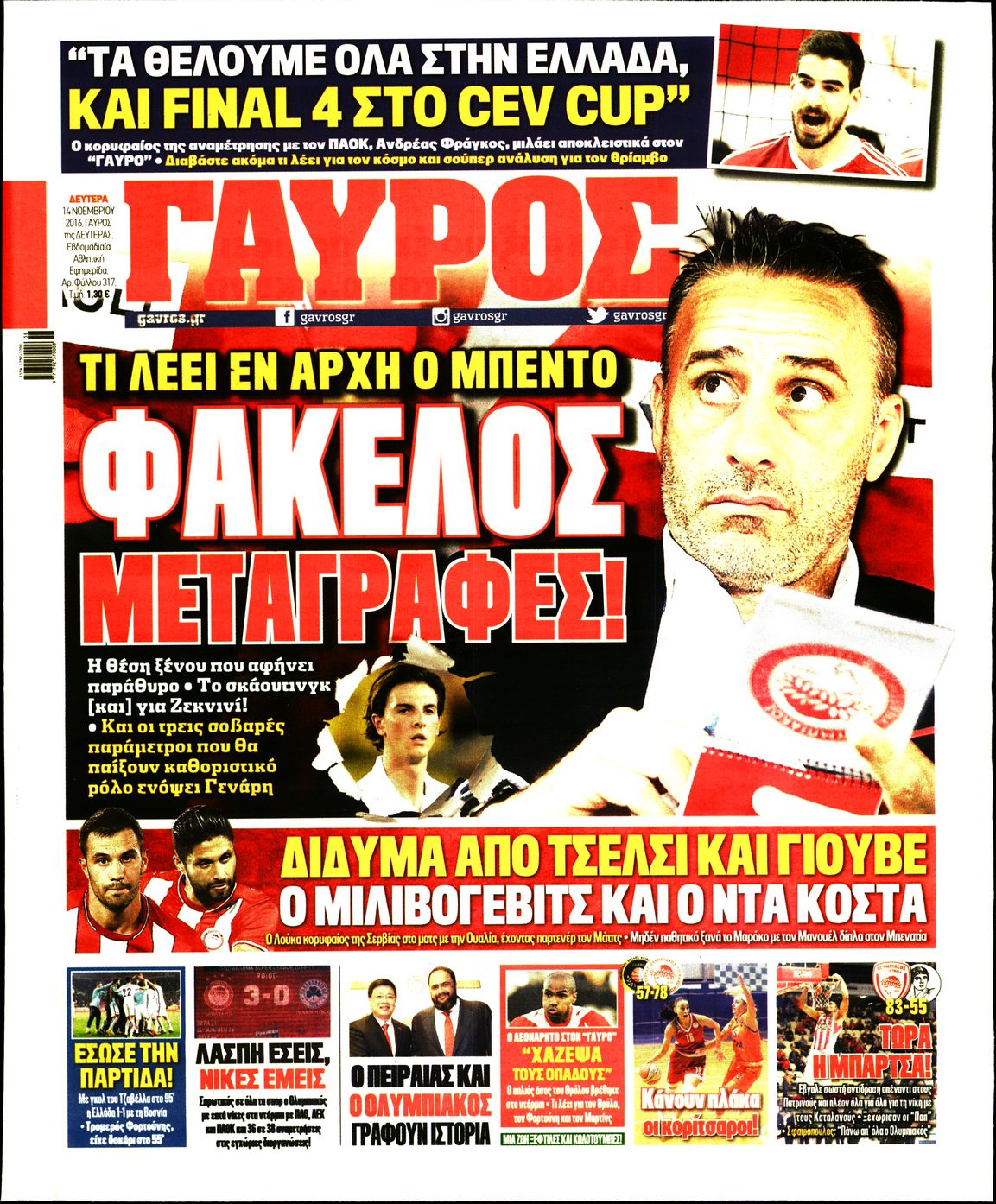 Οι αθλητικές εφημερίδες 14/11/2016 Enikos Newsroom 06:03, Δευτέρα 14 Νοεμβρίου 2016 Media Διαβάστε τα σημερινά πρωτοσέλιδα των αθλητικών εφημερίδων: ΑΘΛΗΤΙΚΕΣ ΕΦΗΜΕΡΙΔΕΣ ΠΡΩΤΟΣΕΛΙΔΑ Μοιράσου το: σχολίασε κι εσύ (0 σχόλια) Ακολουθήστε το enikos.gr στο Google News και μάθετε πρώτοι όλες τις ειδήσεις Δείτε όλες τις τελευταίες ειδήσεις από την Ελλάδα και τον Κόσμο στο enikos.gr Ειδήσεις Ροή Ειδήσεων 2 ώρες πριν Εκτός ευρωομάδας ΣΥΡΙΖΑ ο Νίκος Παππάς μετά την επίθεση στον δημοσιογράφο Νίκο Γιαννόπουλο – Η μήνυση και οι νέες δηλώσεις 2 ώρες πριν «Αγριεύουν» οι αγρότες: «Δεν συντρέχει λόγος συνάντησης με τον πρωθυπουργό» – Ώρα αποφάσεων στη σύσκεψη της Πέμπτης 2 ώρες πριν Κυψέλη: Χωρίς την οικογένειά της δίπλα της απολογήθηκε η 16χρονη – «Της είχε επιτεθεί κάποιος για να την βιάσει, φοβήθηκε και κυκλοφορούσε με μαχαίρι» 2 ώρες πριν Politico: Το πρόβλημα της Ευρώπης δεν είναι το Βέλγιο αλλά ο Ντόναλντ Τραμπ 3 ώρες πριν Αλεξανδρούπολη: Πολυοργανική ανεπάρκεια λόγω υποσιτισμού η αιτία θανάτου του 3χρονου αγοριού 2 ώρες πριν Μυστήριο με τεράστιες κυκλικές πέτρες 200 κιλών – Ανακαλύφθηκαν τυχαία κατά τη διάρκεια οδικών έργων και κανείς δεν ξέρει από πού προέρχονται 3 ώρες πριν Ύπνος: Ειδικός εξηγεί τον πραγματικό λόγο που ξυπνάτε στις 4 τα ξημερώματα – Ο ρόλος των ορμονών και του κιρκάδιου ρυθμού 4 ώρες πριν Αριθμολογία: Οι άνθρωποι που έχουν γεννηθεί αυτές τις 4 ημερομηνίες, είναι τρυφεροί και αγαπούν ανιδιοτελώς 15 ώρες πριν 20 χρόνια τα Χριστούγεννα ξεκινούν στα Public με μεγάλη ποικιλία σε δώρα! 16 λεπτά πριν Βέλγους πολιτικούς και επικεφαλής χρηματοπιστωτικών ιδρυμάτων στοχοποιεί η Μόσχα για τα κατασχεθέντα περιουσιακά στοιχεία 31 λεπτά πριν ΗΠΑ: Αναζητείται δεύτερος ύποπτος για την επίθεση στο πανεπιστήμιο Μπράουν 46 λεπτά πριν Λεωφόρος Αλεξάνδρας: Δεν εντοπίστηκε βόμβα έξω από το κολλέγιο – Προσήχθη άνδρας για το προειδοποιητικό σημείωμα 1 ώρα πριν Ελένη Κρίτα για το reunion του «Παρά Πέντε»: «Ήταν πραγματικά σαν να μην είχαμε χαθεί ποτέ» 1 ώρα πριν Κύπελλο Ελλάδας: Αυτά είναι τα ζευγάρια στα νοκ-άουτ, οι διασταυρώσεις στους «8» κι ο δρόμος προς τον τελικό ENIKOS NETWORK Αϋπνία: Το κόλπο που θα σας βοηθήσει να κοιμηθείτε απόψε – Είναι απλό και έχει αποτέλεσμα 2,6 εκατομμύρια πολίτες έχουν ήδη εμβολιαστεί κατά της γρίπης ΕΛΣΤΑΤ: Τι δείχνουν τα νέα στοιχεία για τις ηλεκτρονικές παραγγελίες των επιχειρήσεων ΚΕΠΕ: Οι 3 διακριτές συμβολές των ΜμΕ και της μεταποίησης στην ελληνική οικονομία Χαρτογραφώντας το «σημείο χωρίς επιστροφή»: Για πρώτη φορά αποκαλύπτεται με λεπτομέρεια το ακανθώδες όριο της ατμόσφαιρας τ... Η Google καταργεί τη λειτουργία «dark web report» – Πώς θα μπορούν οι χρήστες να διαγράφουν τα δεδομένα τους περισσότερα 22:24 , Τετάρτη 17 Δεκεμβρίου 2025 Το Σπίτι Δίπλα Στο Ποτάμι: Σε κίνδυνο η υγεία του Απόστολου – Τι θα δούμε απόψε “Το Σπίτι Δίπλα στο Ποτάμι” ξετυλίγει το νήμα της ζωής των πέντε αδελφών με καταισ... 21:14 , Τετάρτη 17 Δεκεμβρίου 2025 Παιχνίδια Εκδίκησης: Θα καταφέρει ο Χρήστος να κλονίσει την εμπιστοσύνη της Μάγιας απέναντι στον Άγη; Τα «Παιχνίδια Εκδίκησης» έρχονται απόψε στις 22:30, στον Αντ1, με το τελευταίο επεισόδιο της χ... 20:57 , Τετάρτη 17 Δεκεμβρίου 2025 Άγιος Έρωτας: Η Χλόη καταθέτει εναντίον του πατέρα της και ο Χάρης αποκαλύπτει στον Κλεάνθη ότι δεν είναι ο βιολογικός του πατέρας. Γεμάτο αποκαλύψεις είναι το νέο επεισόδιο της σειράς “Άγιος Έρωτας” απόψε στις 21:... 20:15 , Τετάρτη 17 Δεκεμβρ