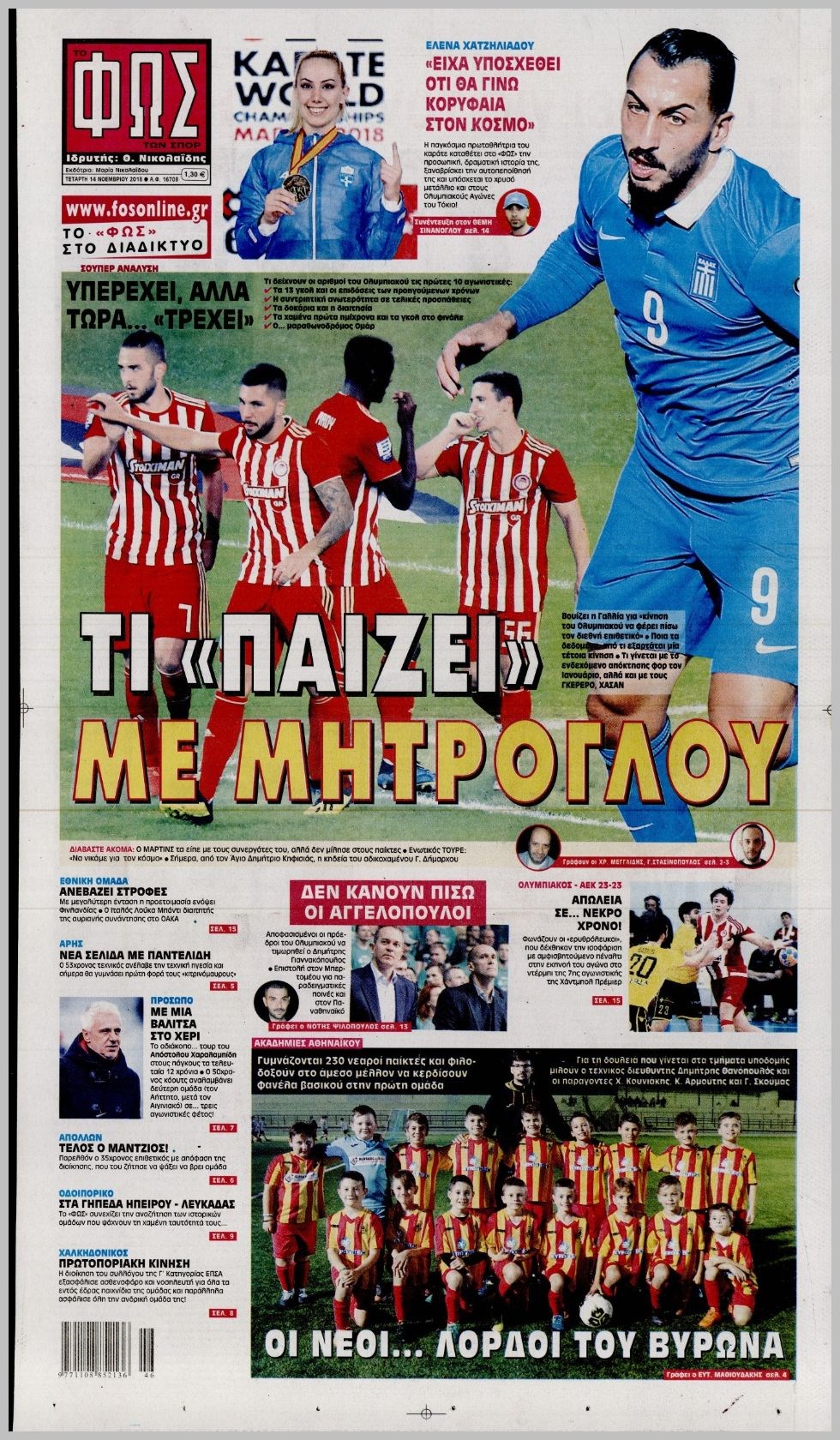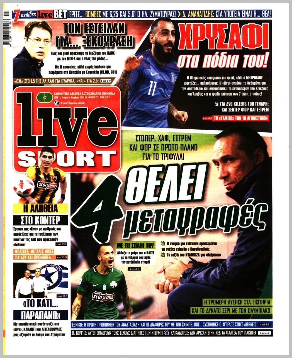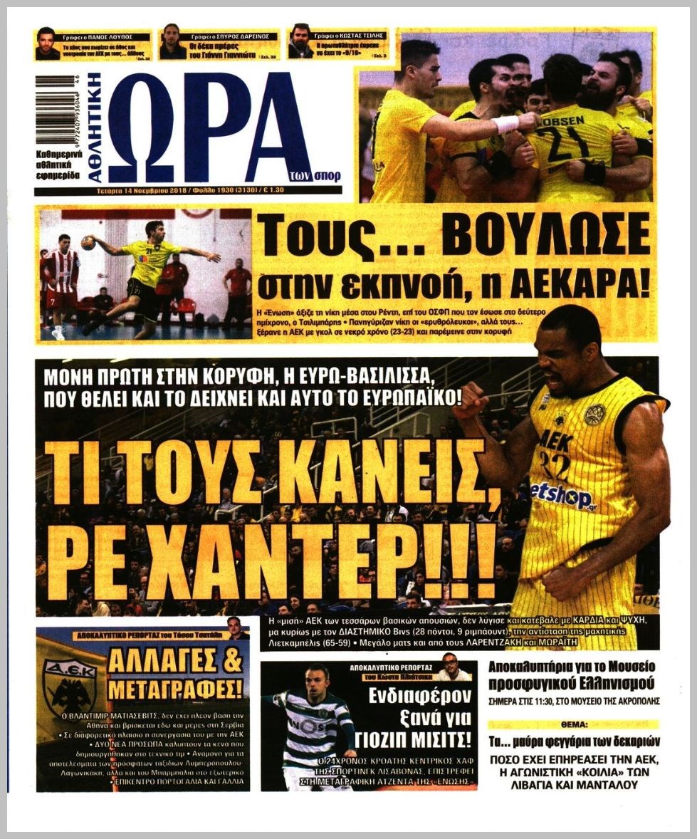 Οι αθλητικές εφημερίδες 14/11/2018 Enikos Newsroom 06:32, Τετάρτη 14 Νοεμβρίου 2018 Media Διαβάστε τα πρωτοσέλιδα: ΑΘΛΗΤΙΚΕΣ ΕΦΗΜΕΡΙΔΕΣ ΠΡΩΤΟΣΕΛΙΔΑ Μοιράσου το: σχολίασε κι εσύ (0 σχόλια) Ακολουθήστε το enikos.gr στο Google News και μάθετε πρώτοι όλες τις ειδήσεις Δείτε όλες τις τελευταίες ειδήσεις από την Ελλάδα και τον Κόσμο στο enikos.gr Ειδήσεις Ροή Ειδήσεων 3 ώρες πριν Πώς δρούσε το κύκλωμα που διακινούσε ναρκωτικά σε σχολεία – Υπέβαλαν σε βασανιστήρια όσους δεν τηρούσαν τους «κανόνες πειθαρχίας» 4 ώρες πριν Αγρότες: Γιορτές στα μπλόκα με ανοιχτά διόδια – Δικογραφία στα Ιωάννινα για το σήκωμα των μπαρών 3 ώρες πριν Ζελένσκι: Οι Αμερικανοί πρότειναν συνάντηση Ουκρανίας, ΗΠΑ, Ρωσίας στο Μαϊάμι 2 ώρες πριν Τραμπ: Πώς περνάει τις γιορτές των Χριστουγέννων – Τα δώρα που κάνει στα εγγόνια του 2 ώρες πριν Μικαέλα Μπέντχαους: Ο πρώτος άνθρωπος σε αναπηρικό αμαξίδιο που ταξίδεψε στο διάστημα – ΒΙΝΤΕΟ 4 ώρες πριν Η τύχη χαμογελά σε 3 ζώδια έως τις 28 Δεκεμβρίου – «Προσέξτε τις επιλογές σας και η επιμονή σας θα ανταμειφθεί» 5 ώρες πριν Μία ανεκμετάλλευτη πηγή θα μπορούσε να προσφέρει ανεξάντλητη ενέργεια – Οι επιστήμονες ίσως γνωρίζουν πώς να την ξεκλειδώσουν 1 ώρα πριν Μήπως οι γιορτές σας δεν είναι τόσο τέλειες; 7 χριστουγεννιάτικες συνήθειες που μαρτυρούν ότι μια οικογένεια είναι δυσλειτουργική 11 ώρες πριν Enerwave: Το νέο «ρεύμα» στη λιανική ενέργειας που αλλάζει την εμπειρία του καταναλωτή 9 λεπτά πριν Πώς να απαλλαγείτε από τη μυρωδιά του τηγανητού φαγητού: Το μυστικό βρίσκεται στην κουζίνα σας 14 λεπτά πριν Βλαχοδήμος: «Νιώθω καλά που είμαι σημαντικός για τη Σεβίλλη» – Τι είπε για τη Ρεάλ Μαδρίτης και τον Μπαπέ 23 λεπτά πριν Πρίγκιπας Ουίλιαμ: Μαγείρεψε παρέα με τον πρίγκιπα Τζορτζ για τους αστέγους – ΦΩΤΟ και ΒΙΝΤΕΟ 32 λεπτά πριν Επιχείρηση της Τροχαίας κατά της παράνομης στάθμευσης στο Νέο Ψυχικό – Τέσσερις συλλήψεις 41 λεπτά πριν Κυριάκος Μητσοτάκης: Στην Ιερουσαλήμ την Τρίτη ο Πρωθυπουργός για την τριμερή Ελλάδας, Κύπρου, Ισραήλ – Θα συναντηθεί και με τον Αμπάς ENIKOS NETWORK Οι γυναίκες αποκαλύπτουν το πιο ελκυστικό πράγμα που μπορεί να κάνει ένας άνδρας Ομορφιά και αντιγήρανση: Ειδικοί μιλούν για συσκευές περιποίησης του δέρματος Θεοδωρικάκος: Εθνική στρατηγική για τους ημιαγωγούς – Πρώτο βήμα η χρηματοδότηση του πρώτου Κέντρου Ικανοτήτων, με 3,63 εκα... Επίδομα θέρμανσης: Μπαίνει η πρώτη δόση την Τρίτη – Οι επόμενες πληρωμές Χαρτογραφώντας το «σημείο χωρίς επιστροφή»: Για πρώτη φορά αποκαλύπτεται με λεπτομέρεια το ακανθώδες όριο της ατμόσφαιρας τ... Η Google καταργεί τη λειτουργία «dark web report» – Πώς θα μπορούν οι χρήστες να διαγράφουν τα δεδομένα τους περισσότερα 18:19 , Σάββατο 20 Δεκεμβρίου 2025 HOTΕΛ ΕΛVIRA: Η Ελβίρα μαθαίνει πως ο Χάρι μένει κρυφά στο ξενοδοχείο του Παντελή Συνεχίζονται οι εκλογές για πρόεδρο, στο νέο επεισόδιο της κωμικής σειράς του MEGA, HOTΕΛ ΕΛVI... 14:04 , Σάββατο 20 Δεκεμβρίου 2025 Η Realnews αυτής της Κυριακής (21/12/2025) Με τίτλο: «Ασπίδα προστασίας για την Ελλάδα» κυκλοφορεί, αυτήν την Κυριακή, η Realnews. Σημαντ... 12:53 , Σάββατο 20 Δεκεμβρίου 2025 Να μ’ αγαπάς: Το παρελθόν έρχεται στο φως – Καταιγιστικές εξελίξεις στα τελευταία επεισόδια του 2025 Ο Άγγελος αποκαλύπτεται, η Φωτεινή ανησυχεί για τον Λευτέρη και η Ζωή έρχεται αντιμέτωπη με το... 11:41 , Σάββατο 20 Δεκεμβρίου 2025 «Η αγάπη δεν χάνεται ποτέ»: Η μικρού μήκους ταινία κινουμένων σχεδίων που θέτει ερωτήματα για τη ζωή και τον θάνατο Ο θ