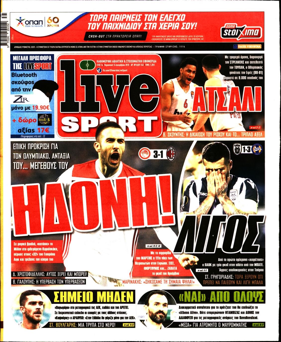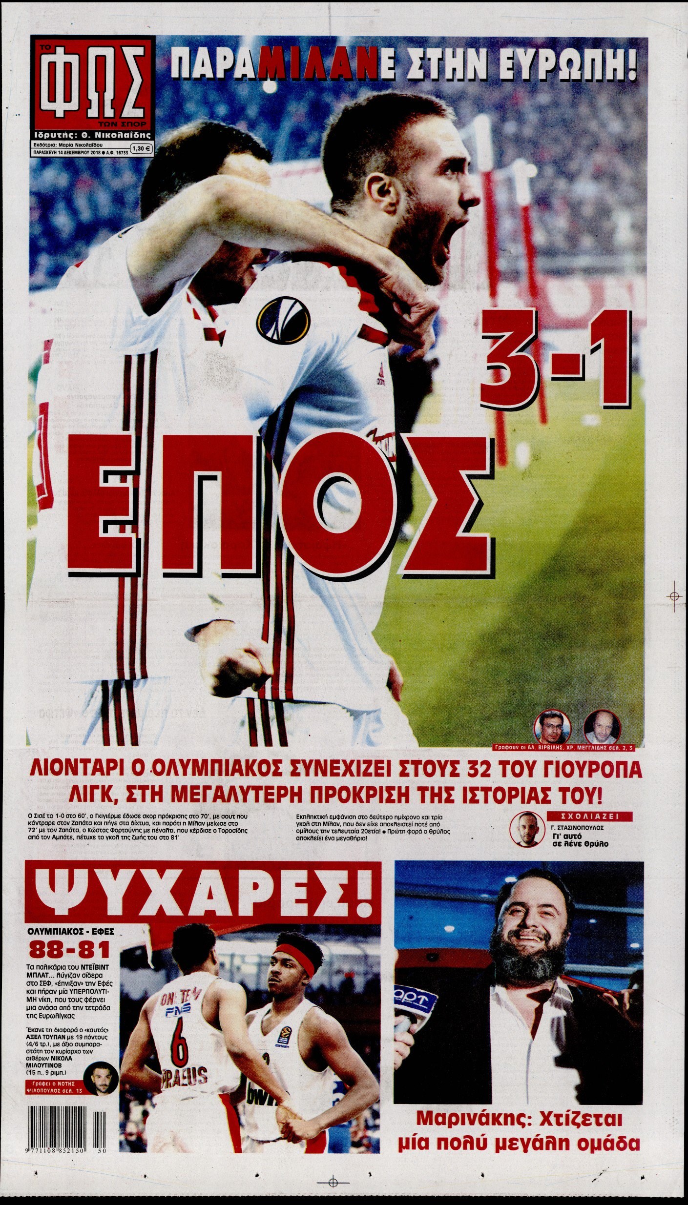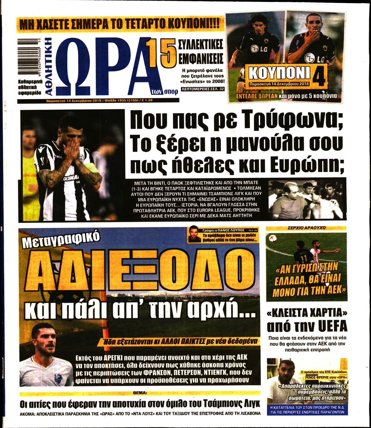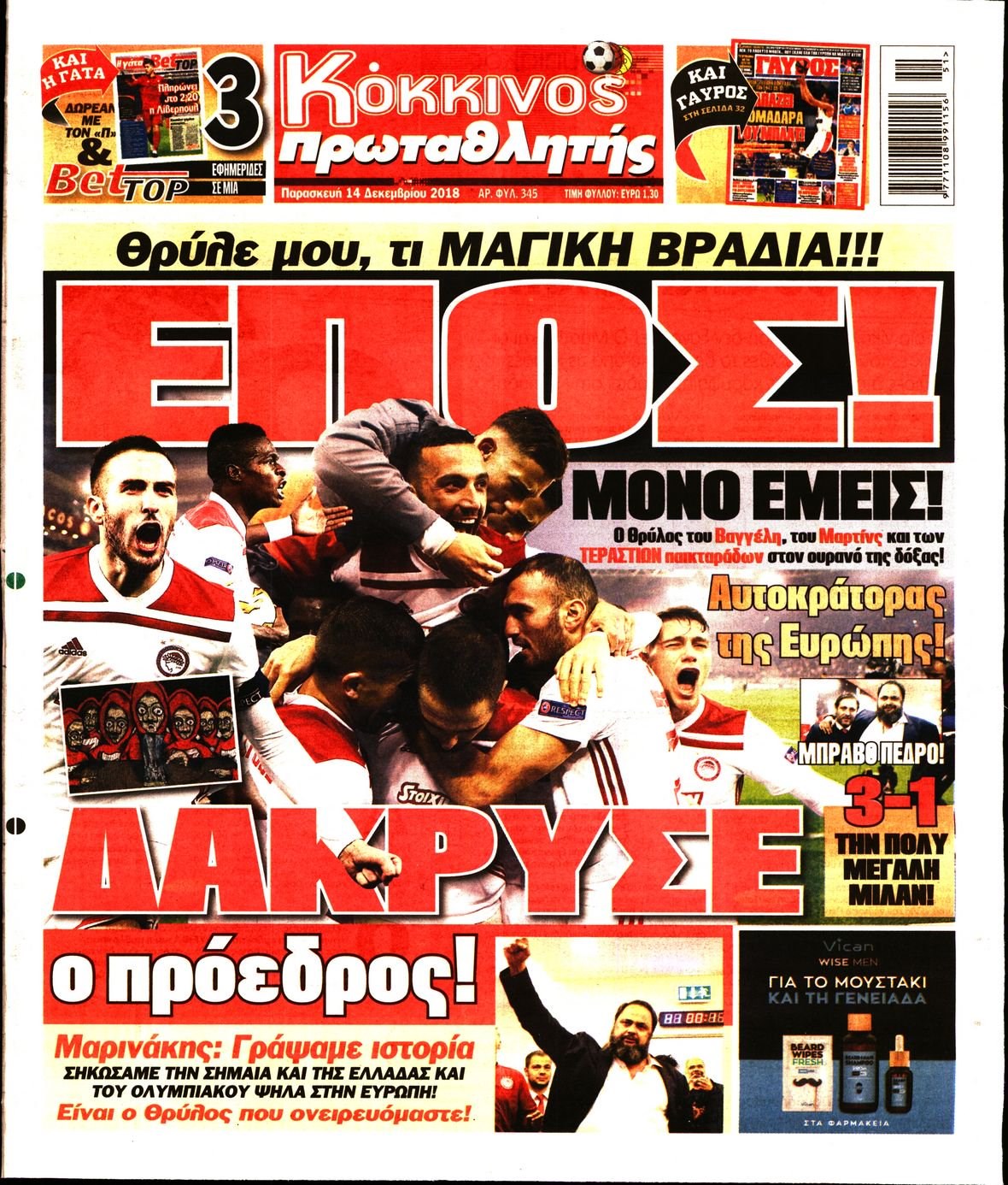 Οι αθλητικές εφημερίδες 14/12/18 Enikos Newsroom 06:20, Παρασκευή 14 Δεκεμβρίου 2018 Media Διαβάστε τα πρωτοσέλιδα: ΑΘΛΗΤΙΚΕΣ ΕΦΗΜΕΡΙΔΕΣ ΠΡΩΤΟΣΕΛΙΔΑ Μοιράσου το: σχολίασε κι εσύ (0 σχόλια) Ακολουθήστε το enikos.gr στο Google News και μάθετε πρώτοι όλες τις ειδήσεις Δείτε όλες τις τελευταίες ειδήσεις από την Ελλάδα και τον Κόσμο στο enikos.gr Ειδήσεις Ροή Ειδήσεων 36 λεπτά πριν Χριστούγεννα στα μπλόκα: Επιμένουν στις κινητοποιήσεις τους οι αγρότες – Ανοίγουν τα διόδια το Σαββατοκύριακο 58 λεπτά πριν Ουκρανία: Η άνευ προηγουμένου επίθεση σε ρωσικό τάνκερ στη Μεσόγειο και το μήνυμα προς στον Πούτιν – Το «μακρύ χέρι» του Κιέβου 13 λεπτά πριν Πούτιν: Τα μηνύματα σε Ευρώπη και ΝΑΤΟ από το μαραθώνιο «σόου» του – Η απαίτηση για «σεβασμό» και η ειρήνη «με τους όρους» της Μόσχας 1 ώρα πριν Τραμπ: Δεν αποκλείει την πιθανότητα ενός πολέμου στη Βενεζουέλα – «Ο Μαδούρο ξέρει καλύτερα από τον καθένα τι ακριβώς θέλω» 2 ώρες πριν Συνεχίζει να προκαλεί ο Μίτσκοσκι: «Για μένα το όνομα Μακεδονία είναι ιερό» 3 ώρες πριν Πούτιν: «Ναι, είμαι ερωτευμένος» – Βίντεο από τη σπάνια προσωπική παραδοχή του 2 ώρες πριν Αριθμολογία: Οι άνθρωποι που έχουν γεννηθεί αυτές τις 4 ημερομηνίες, συχνά παρεξηγούνται – «Η καλοσύνη τους κρύβει τεράστια δύναμη» 1 ώρα πριν Ύπνος: Μια κρυφή κατάσταση του εγκεφάλου πριν από τον ύπνο μπορεί να είναι το “κλειδί” για υψηλή ευφυΐα και δημιουργικότητα 3 ώρες πριν Ξεχάστε το καθάρισμα το Σαββατοκύριακο: Ο «κανόνας των 20 λεπτών» που θα σας λύσει τα χέρια 14 λεπτά πριν Ανακαλύφθηκαν αρχαία χρυσά νομίσματα 2.200 ετών που απεικονίζουν τον θεό Απόλλωνα – Η άγνωστη σύνδεση με τον Φίλιππο Β΄ της Μακεδονίας 4 λεπτά πριν Νέος Κόσμος: Συνελήφθη 41χρονος με ένταλμα από την Τουρκία για εμπόριο ναρκωτικών και ληστεία 13 λεπτά πριν Πούτιν: Τα μηνύματα σε Ευρώπη και ΝΑΤΟ από το μαραθώνιο «σόου» του – Η απαίτηση για «σεβασμό» και η ειρήνη «με τους όρους» της Μόσχας 14 λεπτά πριν Ανακαλύφθηκαν αρχαία χρυσά νομίσματα 2.200 ετών που απεικονίζουν τον θεό Απόλλωνα – Η άγνωστη σύνδεση με τον Φίλιππο Β΄ της Μακεδονίας 19 λεπτά πριν Νίκος Ξυλούρης: Συγκινεί η χήρα του σπουδαίου καλλιτέχνη – «Ευχαριστώ όλο τον κόσμο που τον κρατάει ζωντανό 45 χρόνια» 26 λεπτά πριν Παναθηναϊκός: «Μέσα» οι Σφιντέρσκι και Τουμπά για το ματς με τον ΠΑΟΚ – Τι έδειξε η μαγνητική του Πάντοβιτς ENIKOS NETWORK Το ΕΚΑΒ τιμήθηκε από την Ακαδημία Αθηνών για τα 40 χρόνια προσφοράς του Έχετε πραγματικά μεγάλη καρδιά; 10 χαρακτηριστικά όσων έχουν καλοσύνη Πλήρης επάρκεια προϊόντων στις λαϊκές της Αττικής, παρά τις αγροτικές κινητοποιήσεις – Τι απαντούν οι πωλητές ΑΑΔΕ: Νέες αναβαθμίσεις στο Ψηφιακό Πελατολόγιο και την εφαρμογή myDATAapp – Τι πρέπει να γνωρίζετε Χαρτογραφώντας το «σημείο χωρίς επιστροφή»: Για πρώτη φορά αποκαλύπτεται με λεπτομέρεια το ακανθώδες όριο της ατμόσφαιρας τ... Η Google καταργεί τη λειτουργία «dark web report» – Πώς θα μπορούν οι χρήστες να διαγράφουν τα δεδομένα τους περισσότερα 22:42 , Παρασκευή 19 Δεκεμβρίου 2025 Γιώργος Γιαννόπουλος για “Το σόι σου”: “Είναι ευτυχία και ευλογία αυτή η σειρά” «Είναι ευτυχία και ευλογία η συγκυρία αυτής της σειράς», θα πει ο Γιώργος Γιαννόπουλος -ο αγαπ... 20:37 , Παρασκευή 19 Δεκεμβρίου 2025 Don’t Forget The Lyrics: Η Έλλη Κοκκίνου υποδέχεται 4 παίκτες που θα κάνουν τα πάντα για να μη χάσουν ούτε… μισή λέξη από τους στίχους Το «Don’t Forget The Lyrics» επιστρέφει απόψε, Παρασκευή 19 Δεκεμβρίου, στις 21:00 με νέο επει... 19:31 , Παρασ