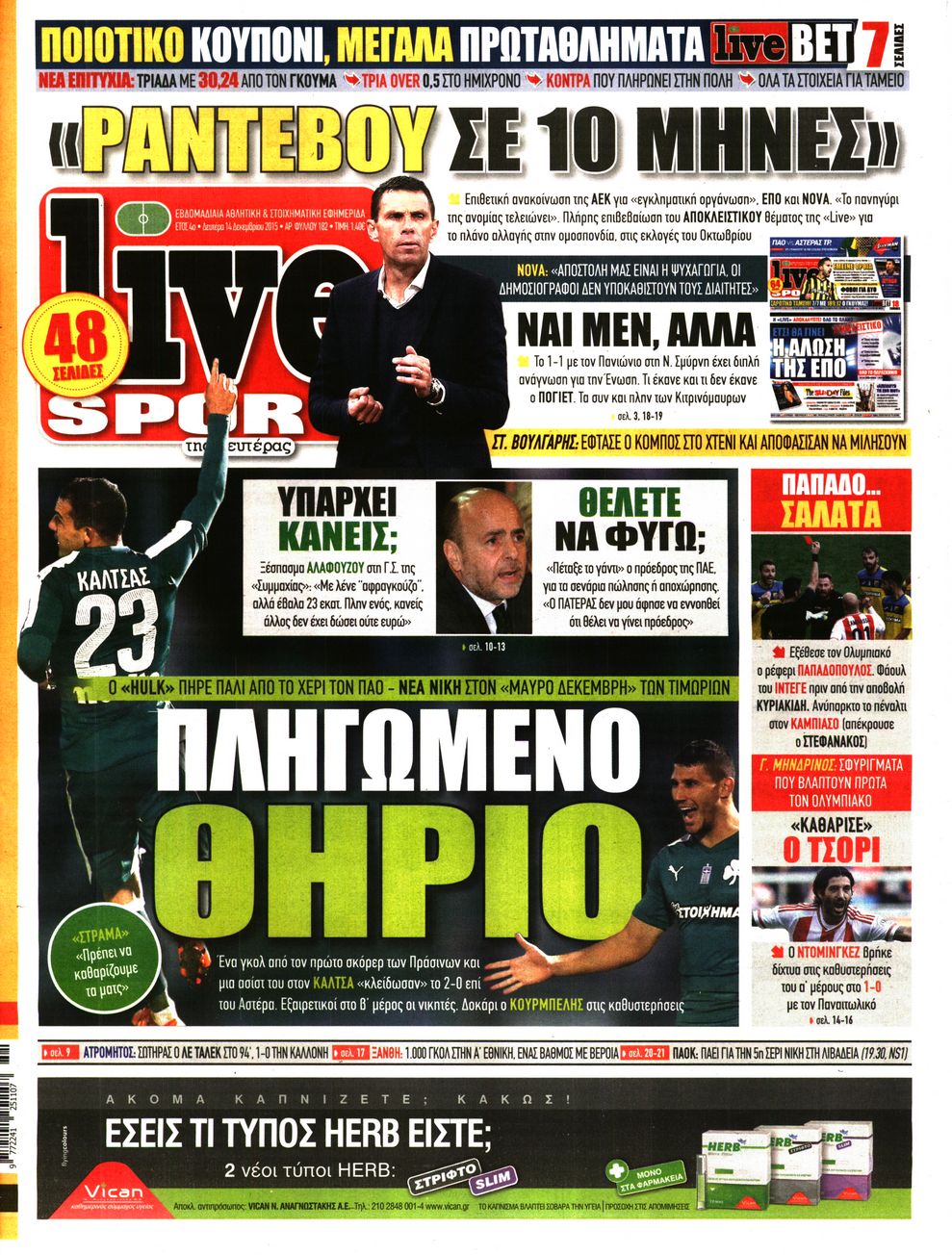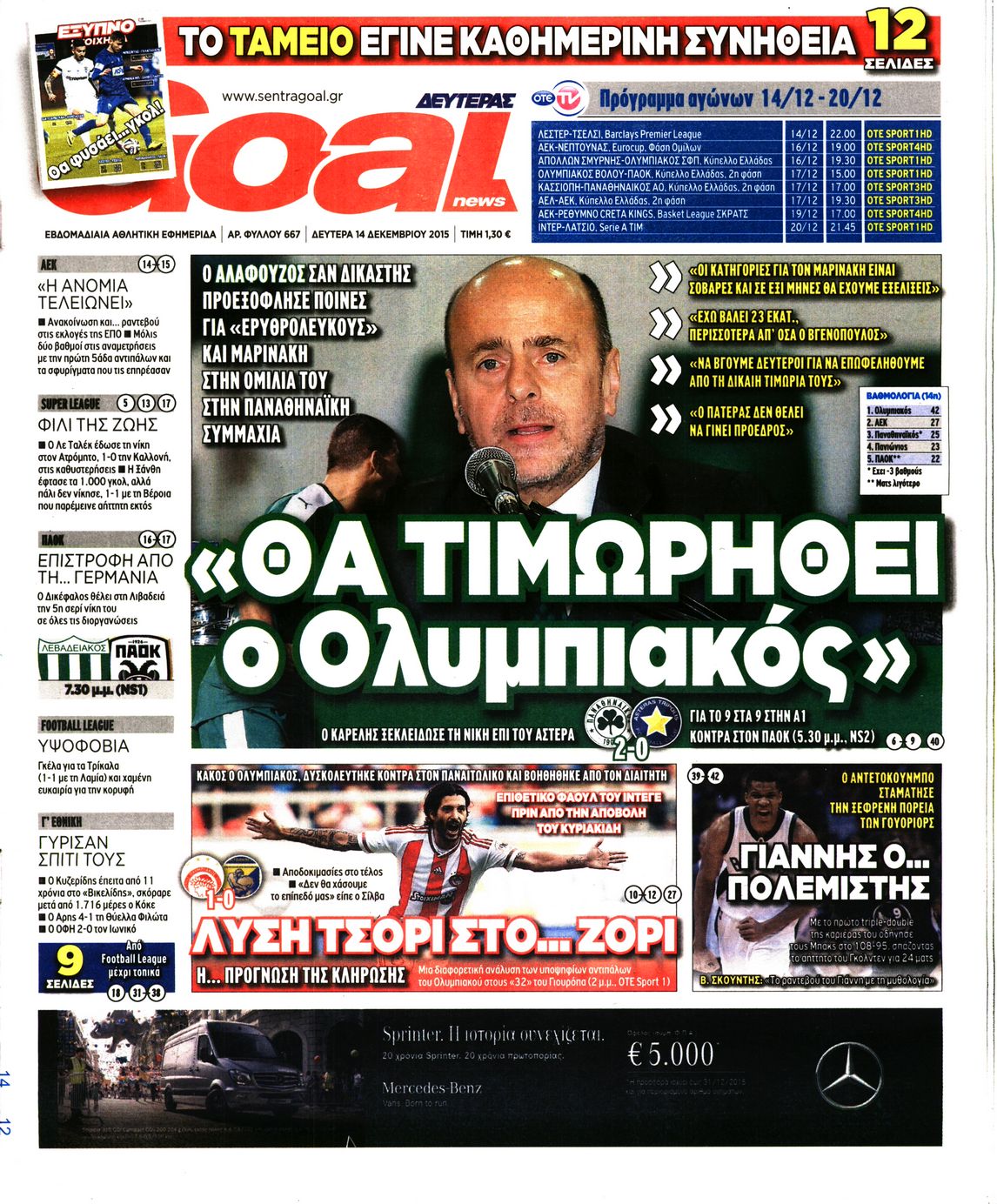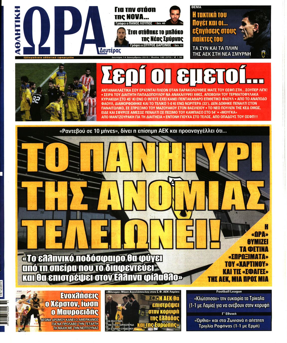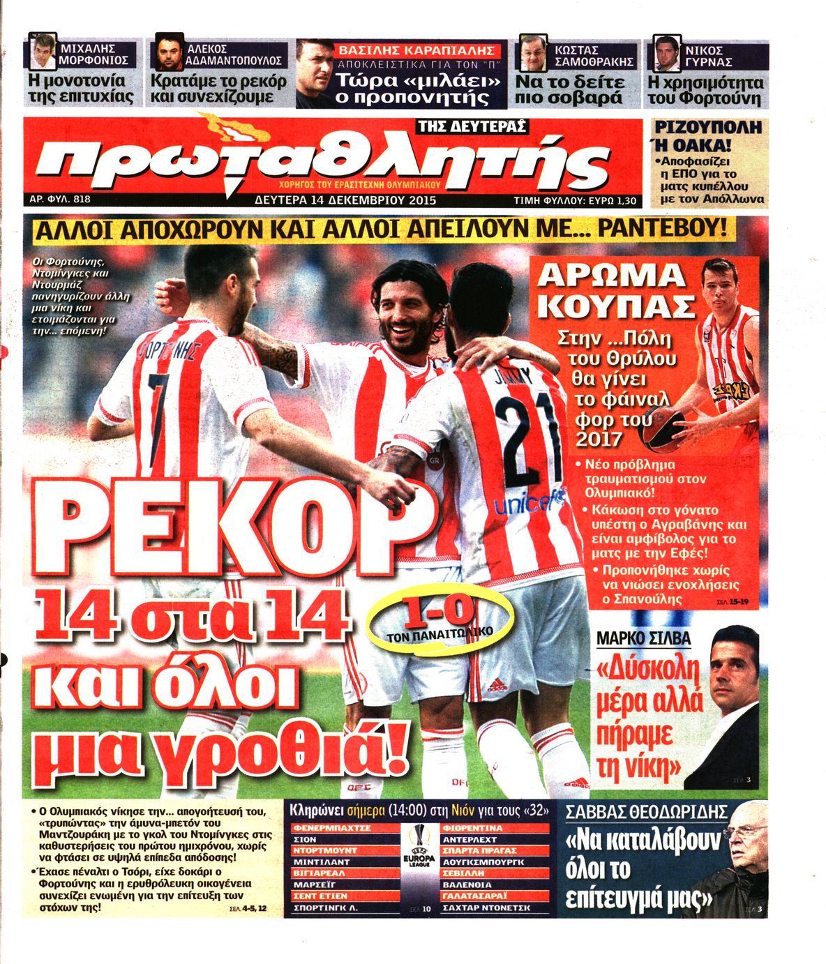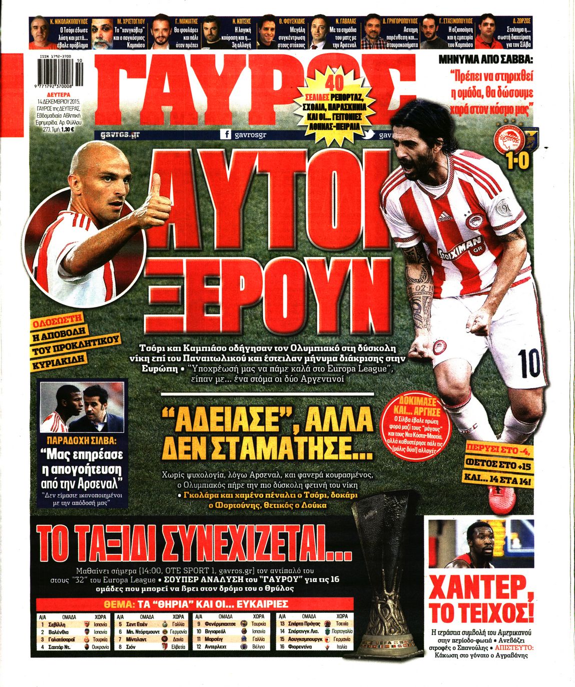 Οι αθλητικές εφημερίδες 14/12/2015 Enikos Newsroom 06:16, Δευτέρα 14 Δεκεμβρίου 2015 Media Διαβάστε τα σημερινά πρωτοσέλιδα των αθλητικών εφημερίδων: ΑΘΛΗΤΙΚΕΣ ΕΦΗΜΕΡΙΔΕΣ ΠΡΩΤΟΣΕΛΙΔΑ Μοιράσου το: σχολίασε κι εσύ (0 σχόλια) Ακολουθήστε το enikos.gr στο Google News και μάθετε πρώτοι όλες τις ειδήσεις Δείτε όλες τις τελευταίες ειδήσεις από την Ελλάδα και τον Κόσμο στο enikos.gr Ειδήσεις Ροή Ειδήσεων 1 ώρα πριν Ευρωπαϊκή Ένωση: Συμφωνία για δάνειο 90 δισ. ευρώ στην Ουκρανία τη διετία 2026-2027 6 ώρες πριν ΟΠΕΚΕΠΕ: Προφυλακιστέος ο φερόμενος αρχηγός και ο λογιστής της εγκληματικής οργάνωσης 7 ώρες πριν Αυξάνουν την πίεση προς την κυβέρνηση οι αγρότες: Κλείνουν παρακαμπτήριους και ανοίγουν διόδια – Τι θα γίνει τις γιορτές 7 ώρες πριν Φοινικούντα: Το Σάββατο απολογείται ο 30χρονος γιος γνωστού επιχειρηματία της Πλάκας που παραδόθηκε – Όσα είπε στους αστυνομικούς και ο ρόλος του στο έγκλημα 5 ώρες πριν ΑΕΚ – Κραϊόβα 3-2: Επική ανατροπή και πρόκριση στους «16» του Conference League η Ένωση 6 ώρες πριν Αρχαιολόγοι ανακάλυψαν ρωμαϊκά τεχνουργήματα από μια πόλη που δεν υπήρξε ποτέ – Τα τρία εντυπωσιακά κτίρια και ο αμφορέας με τις… σαρδέλες 7 ώρες πριν Ύπνος: Η απλή βραδινή ρουτίνα για να προστατεύσετε τα μαλλιά σας από το κρύο κατά τη διάρκεια του χειμώνα 8 ώρες πριν Manifesting: Πώς να συναντήσετε τον σύντροφο της ζωής σας, ανάλογα με τον μήνα γέννησής σας 2 ημέρες πριν 20 χρόνια τα Χριστούγεννα ξεκινούν στα Public με μεγάλη ποικιλία σε δώρα! 1 λεπτό πριν Εφημερεύοντα φαρμακεία σε Αθήνα και Θεσσαλονίκη (19/12) 8 λεπτά πριν Η TikTok στις ΗΠΑ πωλείται σε Oracle, Silver Lake και MGX – Οι λεπτομέρειες του «deal» 16 λεπτά πριν Αλεξάντερ Λουκασένκο: Η Λευκορωσία βρίσκεται κοντά στην αποκατάσταση των σχέσεών της με τις ΗΠΑ 32 λεπτά πριν Αυστραλία: Κήρυξε την Κυριακή (21/12) ημέρα εθνικού πένθους για τη φονική επίθεση στην παραλία Μπόνταϊ 42 λεπτά πριν Ρόδος: Δάσκαλος καράτε καταδικάστηκε για ασέλγεια σε ανήλικες αθλήτριες – Μαρτυρίες για αγγίγματα σε ευαίσθητα σημεία ENIKOS NETWORK Σε περίοδο αυξημένης δραστηριότητας η γρίπη στην Ελλάδα-Μέτρα προστασίας από τον ΕΟΔΥ Σκέφτεστε συνέχεια συζητήσεις που έχετε κάνει; Τι σημαίνει αυτό, σύμφωνα με ειδικό Στεγαστικό: Τι λέει η ΠΟΜΙΔΑ για τα νέα μέτρα που ανακοίνωσε ο Κυριάκος Μητσοτάκης Λαγκάρντ: Αισιόδοξη για την ανάπτυξη της Ευρωζώνης, αβέβαιη για τον πληθωρισμό Χαρτογραφώντας το «σημείο χωρίς επιστροφή»: Για πρώτη φορά αποκαλύπτεται με λεπτομέρεια το ακανθώδες όριο της ατμόσφαιρας τ... Η Google καταργεί τη λειτουργία «dark web report» – Πώς θα μπορούν οι χρήστες να διαγράφουν τα δεδομένα τους περισσότερα 02:50 , Παρασκευή 19 Δεκεμβρίου 2025 GNTM: «Κλείδωσαν» οι τέσσερις φιναλίστ – Μεγάλη ανατροπή στις τελευταίες αποχωρήσεις Για προτελευταία φορά εμφανίστηκαν στο πλατό του GNTM οι φιναλίστ του φετινού κύκλου, το βράδυ... 17:45 , Πέμπτη 18 Δεκεμβρίου 2025 ROUK ZOUK: Εορταστικό επεισόδιο με καλεσμένους τους πρωταγωνιστές του «Γιατί ρε πατέρα» Το Σάββατο 20 Δεκεμβρίου στις 21:00, η Ζέτα Μακρυπούλια υποδέχεται εκλεκτούς ηθοποιούς που όλο... 17:20 , Πέμπτη 18 Δεκεμβρίου 2025 Άγιος έρωτας: Η Χριστίνα εξομολογείται στον πατέρα Νικόλαο, απόψε στις 21:00 στον Alpha Η Νότα αποφασίζει να εκδικηθεί τον Πέτρο και τον Στέφανο, για χάρη του Λούη, όμως τα πράγματα ... 16:50 , Πέμπτη 18 Δεκεμβρίου 2025 Να μ’ αγαπάς: Ζωή και Φωτεινή συμφιλιώνονται ως μάνα με κόρη, απόψε στις 20:00 Η ταυτότητα του Άγγελου αποκαλύπτεται στο νέο επεισόδιο της σειράς “Να μ’ αγαπάς... ΤΕΛ