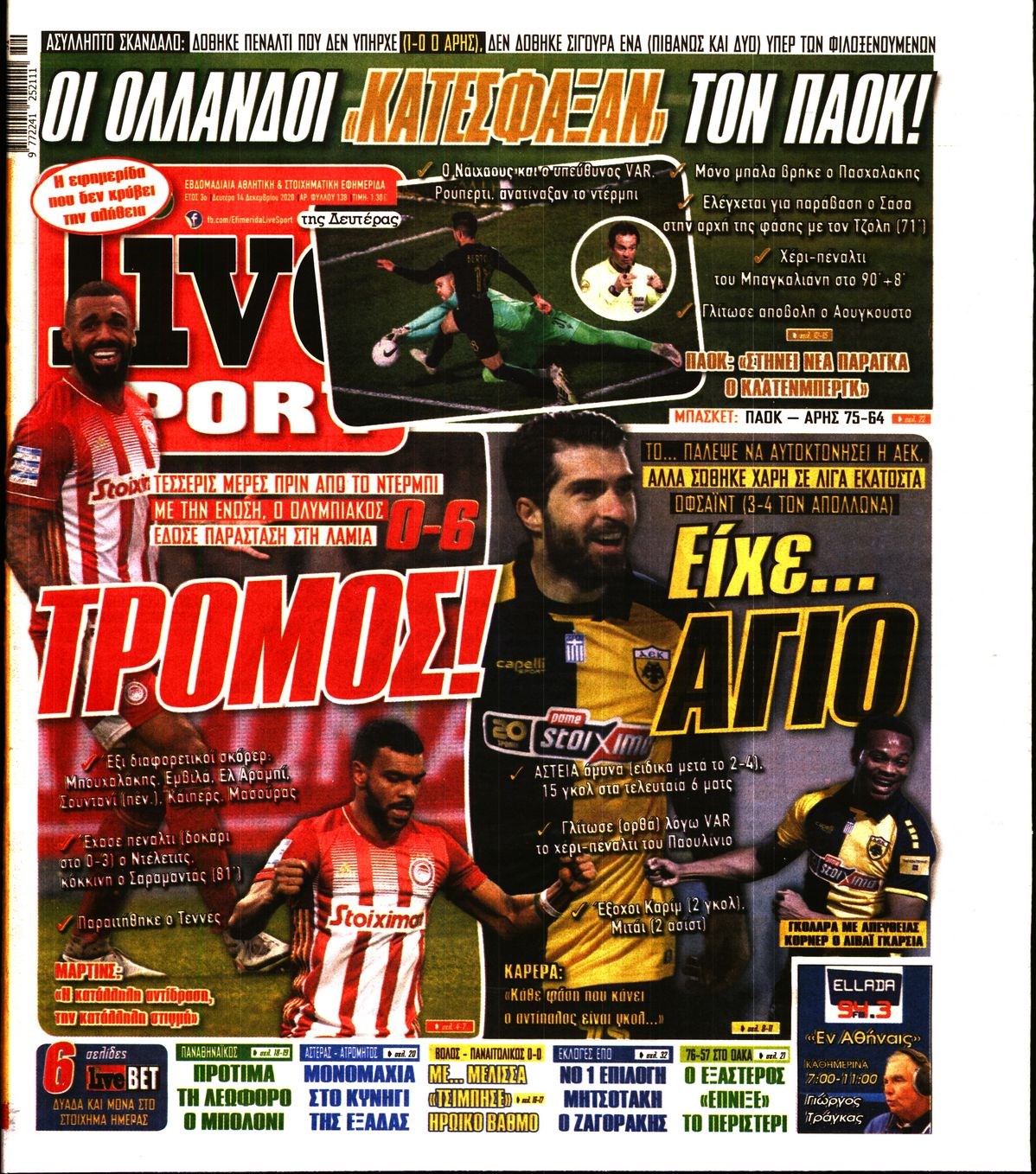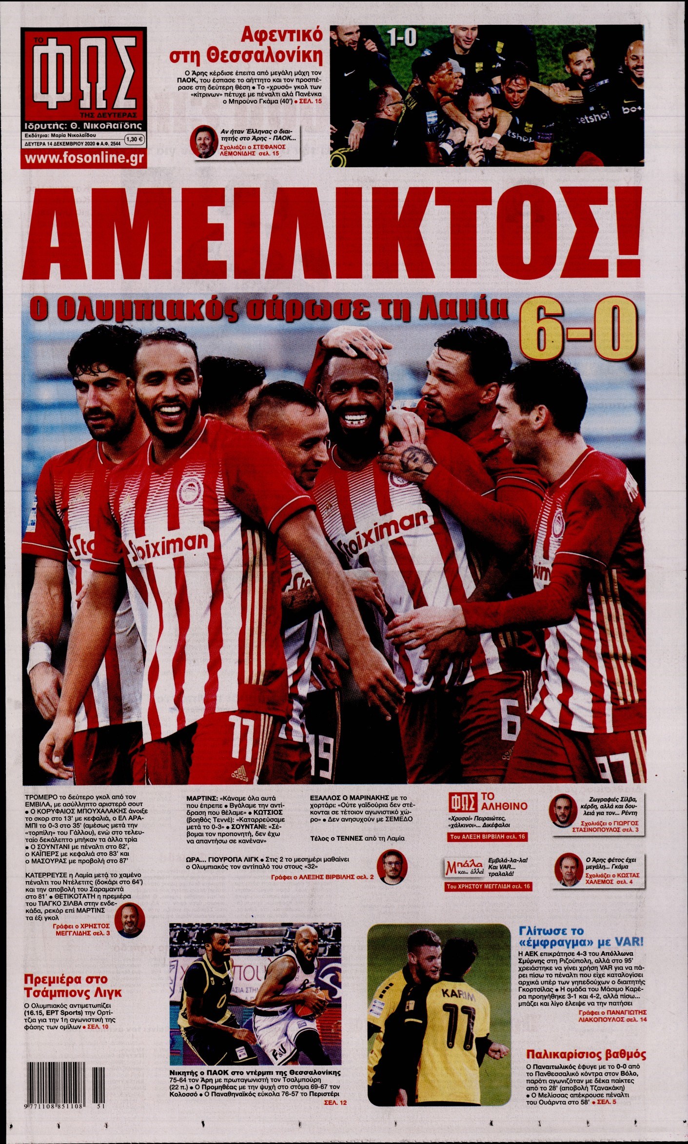 Οι αθλητικές εφημερίδες 14/12/2020 Διονύσης Νίκκας 06:53, Δευτέρα 14 Δεκεμβρίου 2020 Media Διαβάστε τα πρωτοσέλιδα των αθλητικών εφημερίδων… ΑΘΛΗΤΙΚΕΣ ΕΦΗΜΕΡΙΔΕΣ Μοιράσου το: σχολίασε κι εσύ (0 σχόλια) Ακολουθήστε το enikos.gr στο Google News και μάθετε πρώτοι όλες τις ειδήσεις Δείτε όλες τις τελευταίες ειδήσεις από την Ελλάδα και τον Κόσμο στο enikos.gr Ειδήσεις Ροή Ειδήσεων 5 ώρες πριν Χριστούγεννα στα μπλόκα: Επιμένουν στις κινητοποιήσεις τους οι αγρότες – Ανοίγουν τα διόδια το Σαββατοκύριακο 6 ώρες πριν Ουκρανία: Η άνευ προηγουμένου επίθεση σε ρωσικό τάνκερ στη Μεσόγειο και το μήνυμα προς στον Πούτιν – Το «μακρύ χέρι» του Κιέβου 5 ώρες πριν Πούτιν: Τα μηνύματα σε Ευρώπη και ΝΑΤΟ από το μαραθώνιο «σόου» του – Η απαίτηση για «σεβασμό» και η ειρήνη «με τους όρους» της Μόσχας 6 ώρες πριν Τραμπ: Δεν αποκλείει την πιθανότητα ενός πολέμου στη Βενεζουέλα – «Ο Μαδούρο ξέρει καλύτερα από τον καθένα τι ακριβώς θέλω» 6 ώρες πριν Συνεχίζει να προκαλεί ο Μίτσκοσκι: «Για μένα το όνομα Μακεδονία είναι ιερό» 5 ώρες πριν Ανακαλύφθηκαν αρχαία χρυσά νομίσματα 2.200 ετών που απεικονίζουν τον θεό Απόλλωνα – Η άγνωστη σύνδεση με τον Φίλιππο Β΄ της Μακεδονίας 6 ώρες πριν Ύπνος: Μια κρυφή κατάσταση του εγκεφάλου πριν από τον ύπνο μπορεί να είναι το “κλειδί” για υψηλή ευφυΐα και δημιουργικότητα 7 ώρες πριν Αριθμολογία: Οι άνθρωποι που έχουν γεννηθεί αυτές τις 4 ημερομηνίες, συχνά παρεξηγούνται – «Η καλοσύνη τους κρύβει τεράστια δύναμη» 8 ώρες πριν Ξεχάστε το καθάρισμα το Σαββατοκύριακο: Ο «κανόνας των 20 λεπτών» που θα σας λύσει τα χέρια 2 λεπτά πριν Φως στο Τούνελ: Έφτασε η ώρα της αλήθειας για την δολοφονία της χήρας του πρώην υπουργού στο Κολωνάκι 17 λεπτά πριν Ντόναλντ Τραμπ: Προστέθηκε το όνομά του στην πρόσοψη του Κέντρου Κένεντι – Οργισμένη αντίδραση των συγγενών του JFK 32 λεπτά πριν Ταμίλα Κουλίεβα: «Δεν θέλω να είμαι κάποια που πορεύεται συνεχώς με τις ίδιες αναφορές» 47 λεπτά πριν Η Ελλάδα προσχωρεί στη Διεθνή Επιτροπή Αποζημιώσεων για την Ουκρανία 1 ώρα πριν GNTM: Η Ξένια Τσίρκοβα αναδείχθηκε μεγάλη νικήτρια και πήρε τις 50.000 ευρώ – Ποιος βρέθηκε σε απόσταση αναπνοής; ENIKOS NETWORK Το ΕΚΑΒ τιμήθηκε από την Ακαδημία Αθηνών για τα 40 χρόνια προσφοράς του Έχετε πραγματικά μεγάλη καρδιά; 10 χαρακτηριστικά όσων έχουν καλοσύνη Αναστολή μέτρων αναγκαστικής εκτέλεσης για κτηνοτρόφους που πλήττονται από την ευλογιά των αιγοπροβάτων Πλήρης επάρκεια προϊόντων στις λαϊκές της Αττικής, παρά τις αγροτικές κινητοποιήσεις – Τι απαντούν οι πωλητές Χαρτογραφώντας το «σημείο χωρίς επιστροφή»: Για πρώτη φορά αποκαλύπτεται με λεπτομέρεια το ακανθώδες όριο της ατμόσφαιρας τ... Η Google καταργεί τη λειτουργία «dark web report» – Πώς θα μπορούν οι χρήστες να διαγράφουν τα δεδομένα τους περισσότερα 02:50 , Σάββατο 20 Δεκεμβρίου 2025 GNTM: Η Ξένια Τσίρκοβα αναδείχθηκε μεγάλη νικήτρια και πήρε τις 50.000 ευρώ – Ποιος βρέθηκε σε απόσταση αναπνοής; Με φαντασμαγορικό τρόπο ολοκληρώθηκε το βράδυ της Παρασκευής ο μεγάλος τελικός του GNTM, μέσα ... 22:42 , Παρασκευή 19 Δεκεμβρίου 2025 Γιώργος Γιαννόπουλος για “Το σόι σου”: “Είναι ευτυχία και ευλογία αυτή η σειρά” «Είναι ευτυχία και ευλογία η συγκυρία αυτής της σειράς», θα πει ο Γιώργος Γιαννόπουλος -ο αγαπ... 20:37 , Παρασκευή 19 Δεκεμβρίου 2025 Don’t Forget The Lyrics: Η Έλλη Κοκκίνου υποδέχεται 4 παίκτες που θα κάνουν τα πάντα για να μη χάσουν ούτε… μισή λέξη από τους στίχους Το «Don’t Forget The Lyrics» επιστρέφει 