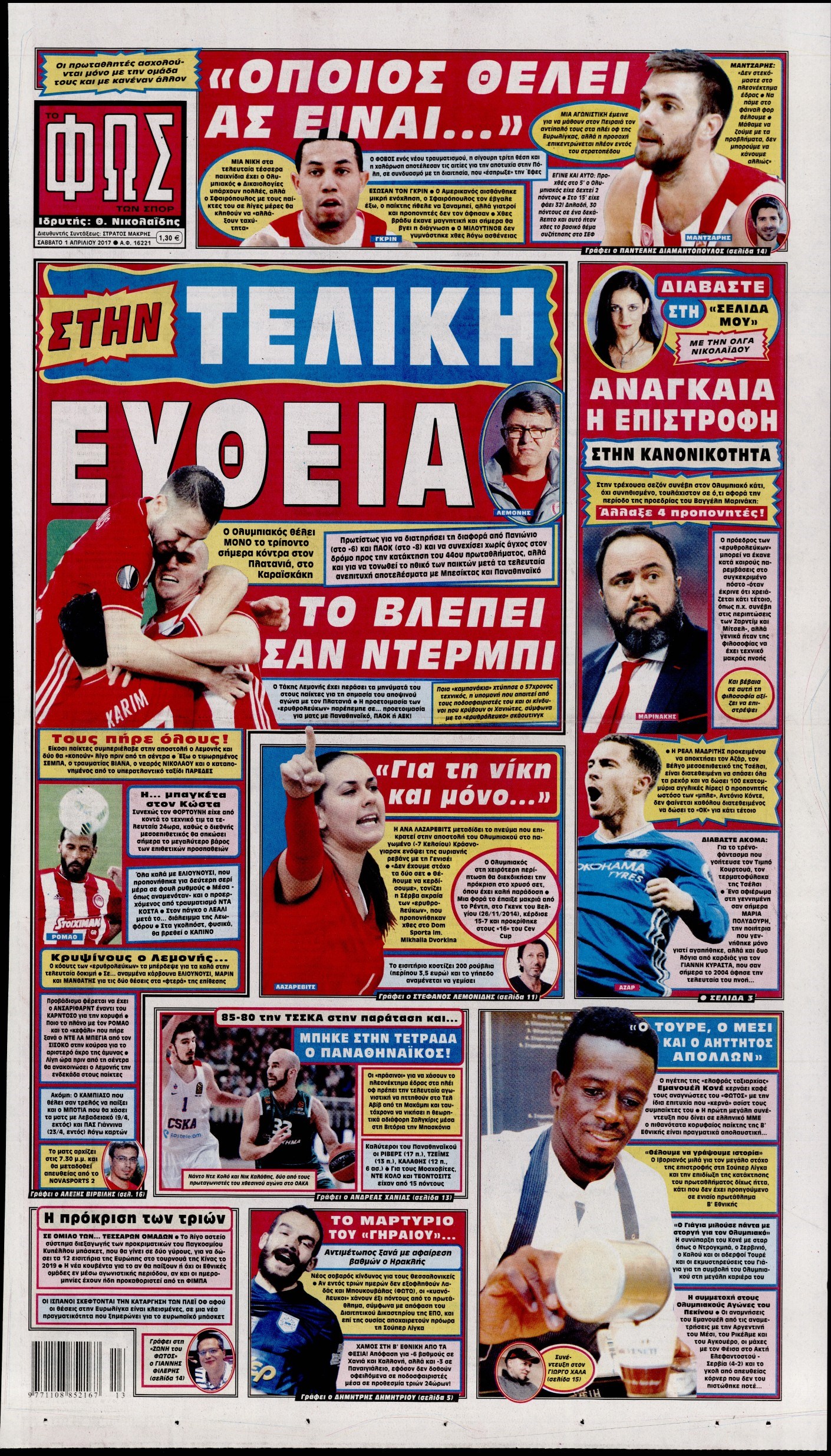 Οι αθλητικές εφημερίδες 1/4/2017 Enikos Newsroom 06:30, Σάββατο 01 Απριλίου 2017 Media Διαβάστε τα σημερινά πρωτοσέλιδα των αθλητικών εφημερίδων: ΑΘΛΗΤΙΚΕΣ ΕΦΗΜΕΡΙΔΕΣ ΠΡΩΤΟΣΕΛΙΔΑ Μοιράσου το: σχολίασε κι εσύ (0 σχόλια) Ακολουθήστε το enikos.gr στο Google News και μάθετε πρώτοι όλες τις ειδήσεις Δείτε όλες τις τελευταίες ειδήσεις από την Ελλάδα και τον Κόσμο στο enikos.gr Ειδήσεις Ροή Ειδήσεων 3 ώρες πριν Νίκος Παππάς: «Είχα λάθος αντίδραση στη δική του δράση-πρόκληση – Δεν θα αναλύσω σε τι κατάσταση ήταν ο δημοσιογράφος» 50 λεπτά πριν Νίκος Γιαννόπουλος για Νίκο Παππά: «Είναι επικίνδυνος, θα του κάνω ασφαλιστικά» – ΒΙΝΤΕΟ 2 ώρες πριν Αλεξανδρούπολη: Πολυοργανική ανεπάρκεια λόγω υποσιτισμού η αιτία θανάτου του 3χρονου αγοριού 2 ώρες πριν Δημοσκόπηση Pulse: Η διαφορά ΝΔ-ΠΑΣΟΚ – Με ποια κριτήρια θα ψηφίσουν οι πολίτες στις επόμενες εκλογές 4 ώρες πριν Συγκλονιστικό βίντεο: Τρόμος για τουρίστες που σώθηκαν την τελευταία στιγμή από λεωφορείο που κατρακυλούσε σε φαράγγι 1 ώρα πριν Ύπνος: Ειδικός εξηγεί τον πραγματικό λόγο που ξυπνάτε στις 4 τα ξημερώματα – Ο ρόλος των ορμονών και του κιρκάδιου ρυθμού 2 ώρες πριν Αριθμολογία: Οι άνθρωποι που έχουν γεννηθεί αυτές τις 4 ημερομηνίες, είναι τρυφεροί και αγαπούν ανιδιοτελώς 3 ώρες πριν Καθρέφτες μπάνιου: Το απλό κόλπο με την οδοντόκρεμα για να μην θολώνουν 14 ώρες πριν 20 χρόνια τα Χριστούγεννα ξεκινούν στα Public με μεγάλη ποικιλία σε δώρα! 4 λεπτά πριν Μυστήριο με τεράστιες κυκλικές πέτρες 200 κιλών – Ανακαλύφθηκαν τυχαία κατά τη διάρκεια οδικών έργων και κανείς δεν ξέρει από πού προέρχονται 7 λεπτά πριν Τάκης Ζαχαράτος και Έλενα Παπαρίζου μαζί στη σκηνή – Πότε κάνουν πρεμιέρα; 15 λεπτά πριν Κυψέλη: Χωρίς την οικογένειά της δίπλα της απολογήθηκε η 16χρονη – «Της είχε επιτεθεί κάποιος για να την βιάσει, φοβήθηκε και κυκλοφορούσε με μαχαίρι» 20 λεπτά πριν «Αγριεύουν» οι αγρότες: «Δεν συντρέχει λόγος συνάντησης με τον πρωθυπουργό» – Ώρα αποφάσεων στη σύσκεψη της Πέμπτης 25 λεπτά πριν Χρίστος Αντωνιάδης: «Όποιος δεν έχει κάνει δίδυμα, δεν δικαιούται διά να ομιλεί» ENIKOS NETWORK Αϋπνία: Το κόλπο που θα σας βοηθήσει να κοιμηθείτε απόψε – Είναι απλό και έχει αποτέλεσμα 2,6 εκατομμύρια πολίτες έχουν ήδη εμβολιαστεί κατά της γρίπης ΚΕΠΕ: Οι 3 διακριτές συμβολές των ΜμΕ και της μεταποίησης στην ελληνική οικονομία Χειμερινές εκπτώσεις: Πότε αρχίζουν και τι πρέπει να προσέξουν οι καταναλωτές Χαρτογραφώντας το «σημείο χωρίς επιστροφή»: Για πρώτη φορά αποκαλύπτεται με λεπτομέρεια το ακανθώδες όριο της ατμόσφαιρας τ... Η Google καταργεί τη λειτουργία «dark web report» – Πώς θα μπορούν οι χρήστες να διαγράφουν τα δεδομένα τους περισσότερα 22:24 , Τετάρτη 17 Δεκεμβρίου 2025 Το Σπίτι Δίπλα Στο Ποτάμι: Σε κίνδυνο η υγεία του Απόστολου – Τι θα δούμε απόψε “Το Σπίτι Δίπλα στο Ποτάμι” ξετυλίγει το νήμα της ζωής των πέντε αδελφών με καταισ... 21:14 , Τετάρτη 17 Δεκεμβρίου 2025 Παιχνίδια Εκδίκησης: Θα καταφέρει ο Χρήστος να κλονίσει την εμπιστοσύνη της Μάγιας απέναντι στον Άγη; Τα «Παιχνίδια Εκδίκησης» έρχονται απόψε στις 22:30, στον Αντ1, με το τελευταίο επεισόδιο της χ... 20:57 , Τετάρτη 17 Δεκεμβρίου 2025 Άγιος Έρωτας: Η Χλόη καταθέτει εναντίον του πατέρα της και ο Χάρης αποκαλύπτει στον Κλεάνθη ότι δεν είναι ο βιολογικός του πατέρας. Γεμάτο αποκαλύψεις είναι το νέο επεισόδιο της σειράς “Άγιος Έρωτας” απόψε στις 21:... 20:15 , Τετάρτη 17 Δεκεμβρίου 2025 Η ανακοίνωση της ΕΣΗΕΑ για την επίθεση του Ευρωβο