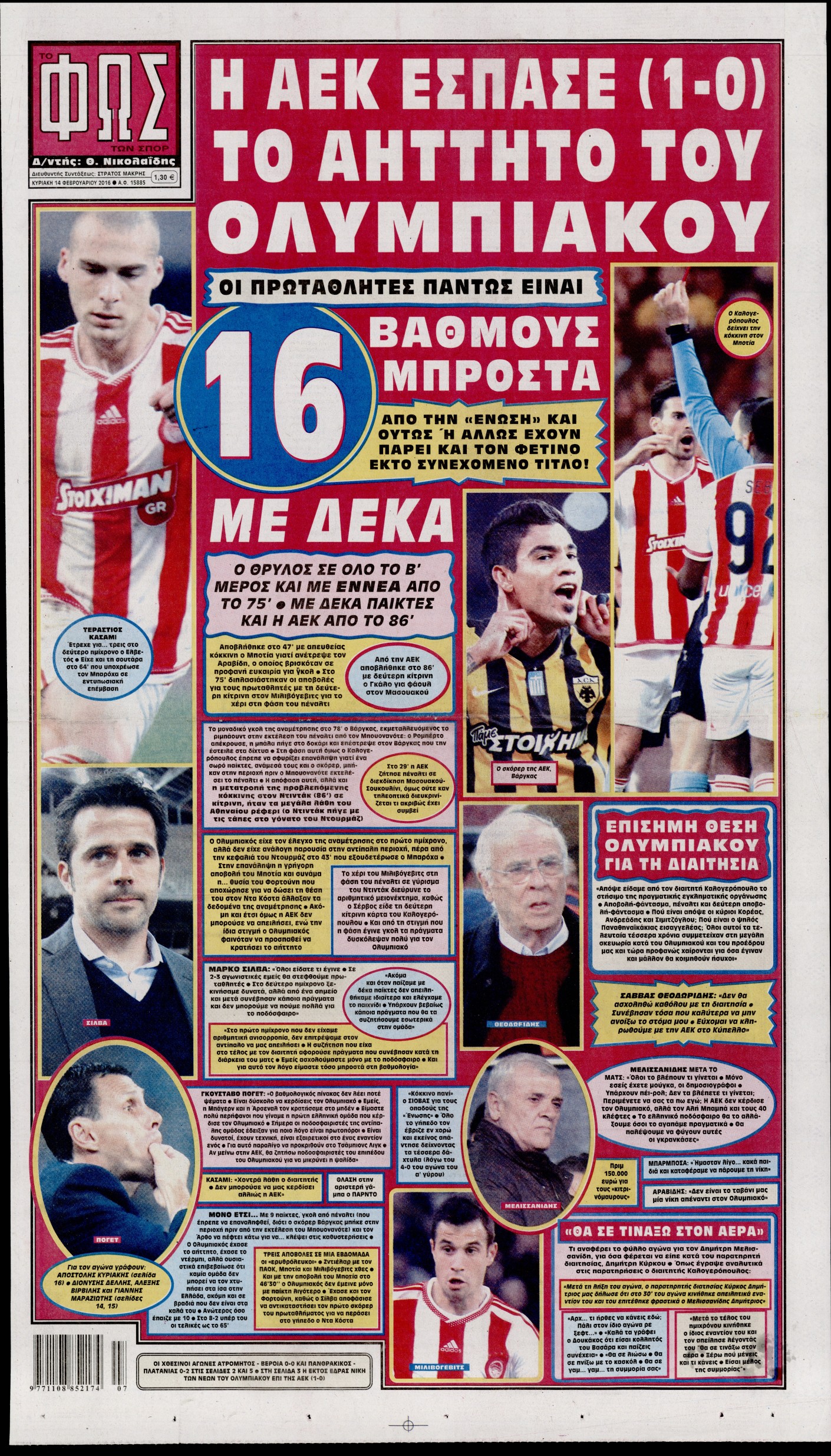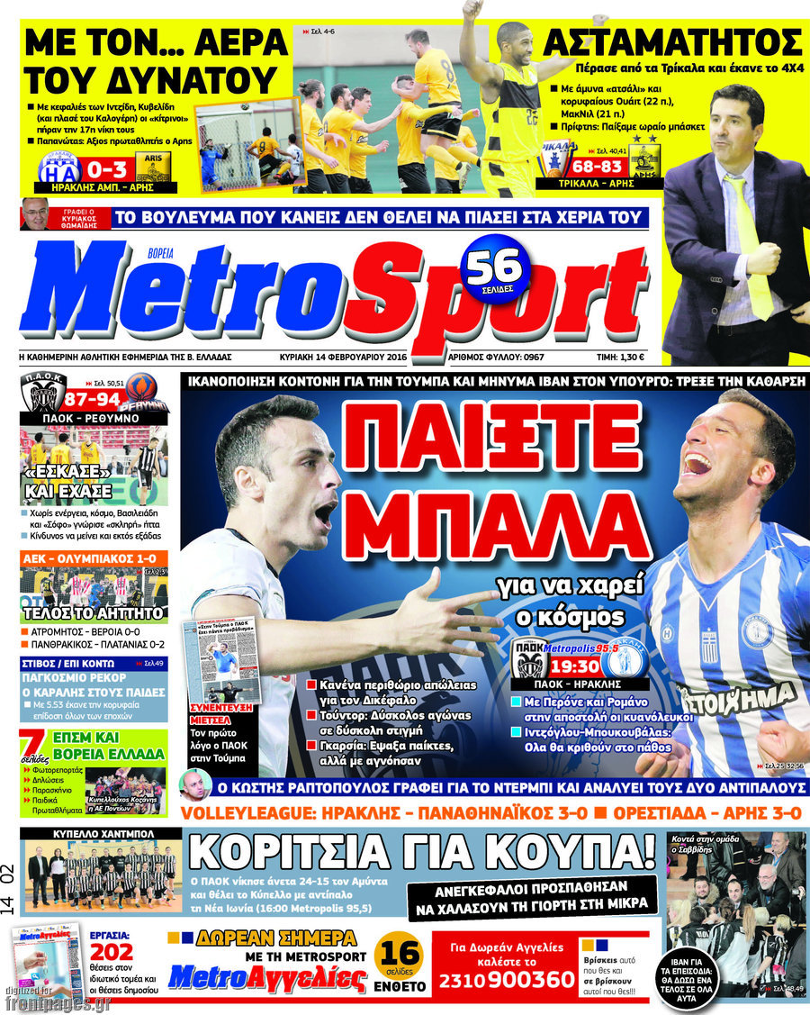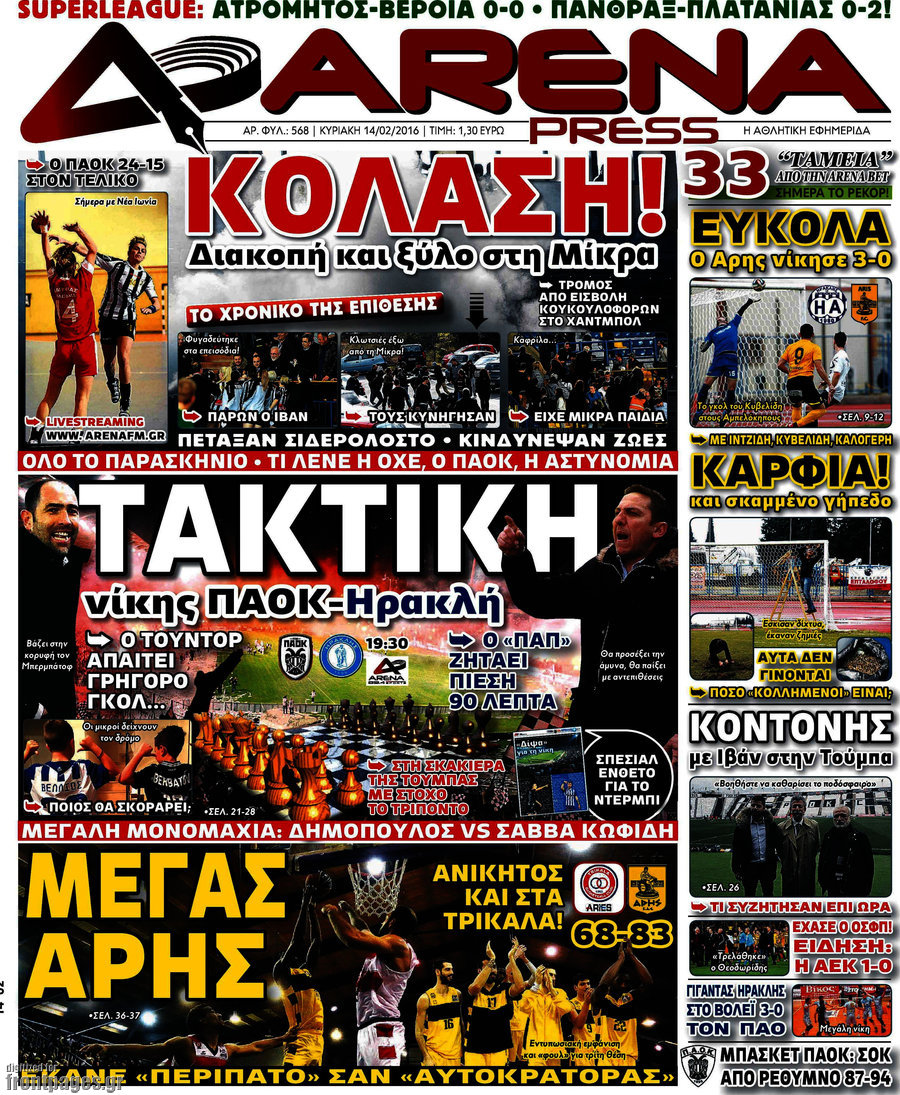 Οι αθλητικές εφημερίδες 14/2/2016 Enikos Newsroom 06:12, Κυριακή 14 Φεβρουαρίου 2016 Media ΑΘΛΗΤΙΚΕΣ ΕΦΗΜΕΡΙΔΕΣ Μοιράσου το: σχολίασε κι εσύ (0 σχόλια) Ακολουθήστε το enikos.gr στο Google News και μάθετε πρώτοι όλες τις ειδήσεις Δείτε όλες τις τελευταίες ειδήσεις από την Ελλάδα και τον Κόσμο στο enikos.gr Ειδήσεις Ροή Ειδήσεων 2 ώρες πριν Καιρός: Νέο έκτακτο δελτίο επιδείνωσης από την ΕΜΥ – Ποιες περιοχές θα «χτυπήσει» η κακοκαιρία τα Χριστούγεννα 3 ώρες πριν Live – Έξοδος Χριστουγέννων: Αυξημένη η κίνηση στις Εθνικές Οδούς – Εικόνα αποσυμφόρησης με νέες λωρίδες κυκλοφορίας στα αγροτικά μπλόκα 3 ώρες πριν Αεροπορικό δυστύχημα στην Τουρκία: Στο μικροσκόπιο ο καταγραφέας ήχου και το μαύρο κουτί – Η αεροσυνοδός Maria Pappa ανάμεσα στα θύματα 4 ώρες πριν Ο Ζελένσκι παρουσίασε νέο ειρηνευτικό σχέδιο 20 σημείων για τον τερματισμό του πολέμου στην Ουκρανία 5 ώρες πριν Φρίκη στη Θεσσαλονίκη: 13χρονη κατήγγειλε ότι έπεσε θύμα ομαδικού βιασμού από 6 αγόρια 4 ώρες πριν Η ζωή για 3 ζώδια γίνεται πολύ πιο εύκολη από εδώ και πέρα – «Εμπιστευτείτε τη διαίσθηση σας για να πάρετε αποφάσεις» 3 ώρες πριν Γυναίκα που έχασε 30 κιλά αποκαλύπτει τα μυστικά της επιτυχίας της – «Οι υδατάνθρακες είναι καύσιμο του οργανισμού, όχι εχθρός» 2 ώρες πριν Οι άνθρωποι που αποφεύγουν να γιορτάσουν τα Χριστούγεννα με την οικογένειά τους, συνήθως είχαν αυτές τις 8 εμπειρίες στην παιδική ηλικία 1 ημέρα πριν Η Coca-Cola και ο Ελληνικός Ερυθρός Σταυρός μαζί αυτά τα Χριστούγεννα: Μια μεγάλη αγκαλιά για τους συνανθρώπους μας που έχουν ανάγκη 9 λεπτά πριν Θεσσαλονίκη: Εντοπίστηκε οβίδα του Β’ Παγκοσμίου Πολέμου στον 6ο προβλήτα στο λιμάνι 15 λεπτά πριν Η Πειραιώς έγινε ξανά … ποτάμι από τη βροχή – Βίντεο αναγνώστη 22 λεπτά πριν Χριστουγεννιάτικα κάλαντα από την Πανηπειρωτική Συνομοσπονδία στον Σωκράτη Φάμελλο – Ο χορός του προέδρου του ΣΥΡΙΖΑ 31 λεπτά πριν Ιταλία: Κατασχέθηκαν 435 κιλά κοκαΐνης αξίας περίπου 70 εκατ. ευρώ 38 λεπτά πριν Κρεμλίνο: Ενήμερος ο Πούτιν για τις προτάσεις των ΗΠΑ για το ειρηνευτικό σχέδιο ENIKOS NETWORK Χριστουγεννιάτικα κάλαντα από εθελοντές του Ερυθρού Σταυρού στον Υπουργό Υγείας Άδωνι Γεωργιάδη Σύνδρομο ευερέθιστου εντέρου: Το Νο1 εορταστικό τρόφιμο που πρέπει να παραλείψετε για να αποφύγετε τα αέρια Χρυσός: Το φράγμα των 4.500 δολαρίων ανά ουγγιά έσπασε η τιμή του – Πώς θα διαμορφωθεί τους επόμενους μήνες Σχολές ΔΥΠΑ: Βγήκαν τα αποτελέσματα για τους προσωρινούς αναπληρωτές και ωρομίσθιους εκπαιδευτικούς Ο Google Assistant θα παραμείνει λίγο περισσότερο για ορισμένους χρήστες Android Τεστ προσωπικότητας: Το βάζο που θα επιλέξετε αποκαλύπτει πώς λύνετε προβλήματα στη ζωή σας περισσότερα 13:27 , Τετάρτη 24 Δεκεμβρίου 2025 Ο Χριστουγεννιάτικος Τηλεμαραθώνιος του ΑΝΤ1 ένωσε τους πολιτικούς αρχηγούς – Τα εγκωμιαστικά σχόλια για τον Θοδωρή Κυριακού Σπάνια ομοφωνία: Όλοι οι πολιτικοί αρχηγοί αποθεώνουν τον Θοδωρή Κυριακού Ο Χριστουγεννιάτικος... 12:05 , Τετάρτη 24 Δεκεμβρίου 2025 Έξοδος εκδρομέων για τα Χριστούγεννα: Στείλε βίντεο ή φωτογραφίες στο enikos.gr – Αποθήκευσε τον αριθμό 6944 05 05 05 Πολλοί έχουν επιλέξει να περάσουν τις γιορτές εκτός πόλης, ωστόσο και φέτος η μαζική έξοδος απ... 10:36 , Τετάρτη 24 Δεκεμβρίου 2025 Τηλεθέαση (23/12): Ποιες πρωινές εκπομπές της ψυχαγωγικής ζώνης πήραν προβάδισμα; Με αμείωτη ένταση συνεχίστηκε η «μάχη» στην πρωινή ζώνη την Τρίτη 23 Δεκεμβρίου, όπως φαίνεται... 10:09 , Τετάρτη 24 Δεκεμβρίου 2025 Την Κυριακή με τη