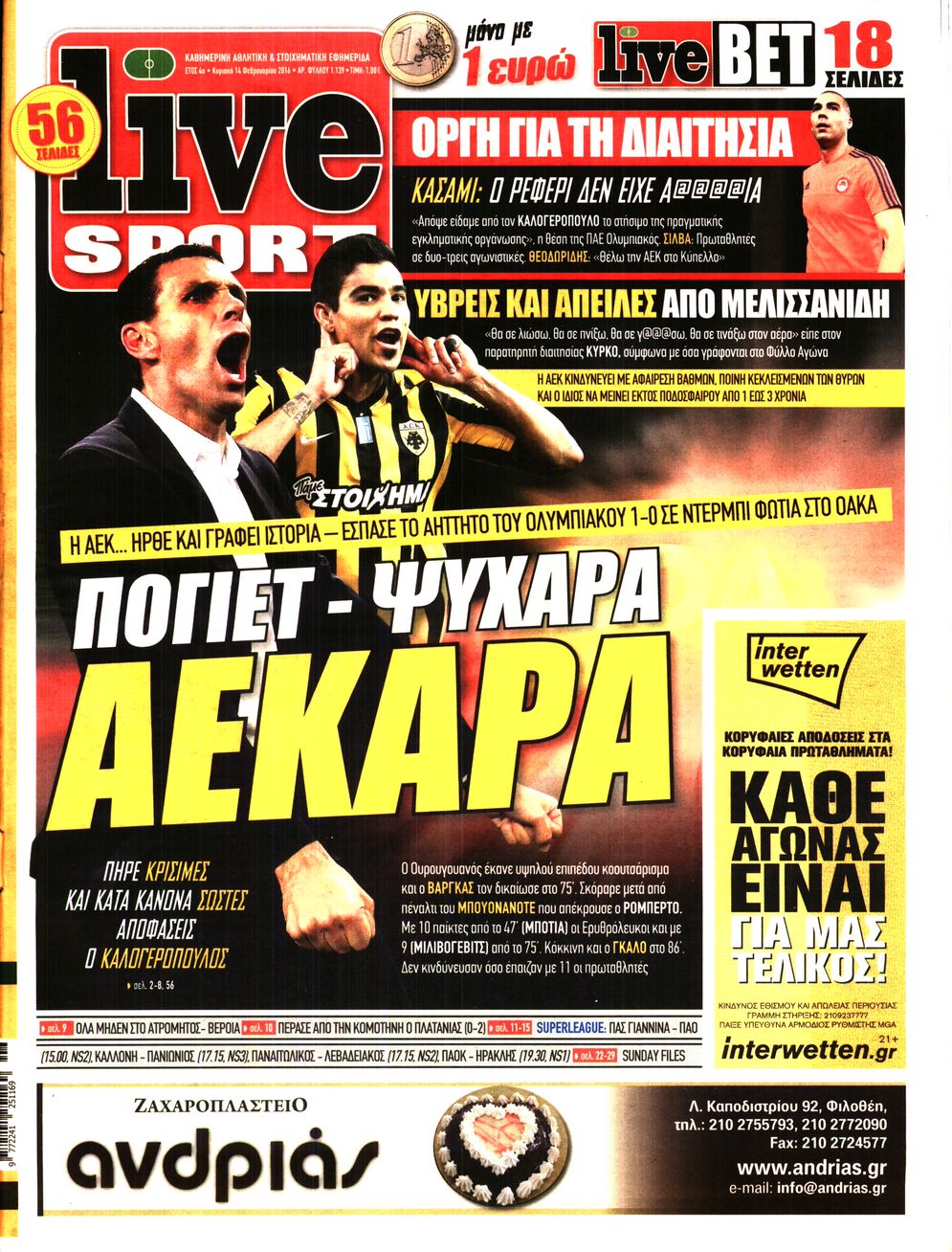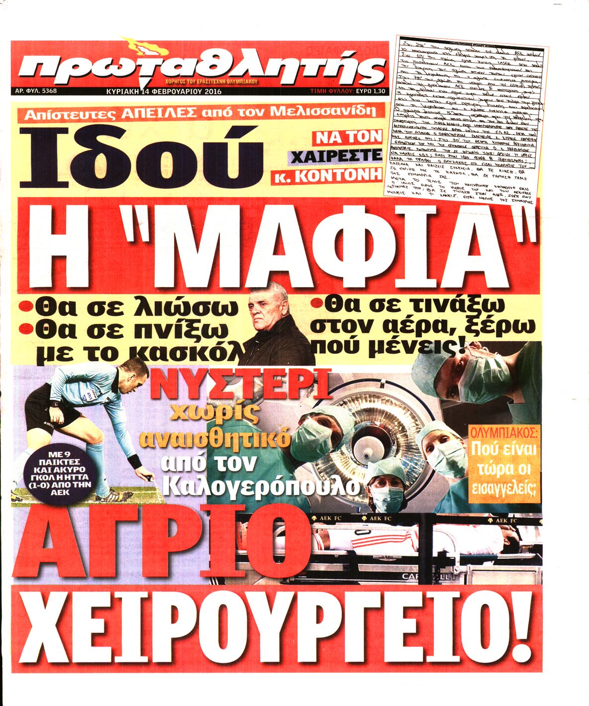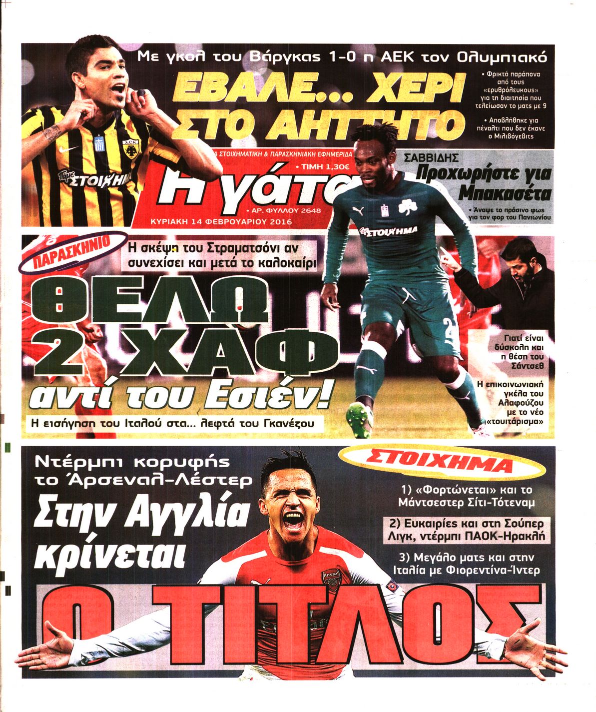 Οι αθλητικές εφημερίδες 14/2/2016 Enikos Newsroom 06:12, Κυριακή 14 Φεβρουαρίου 2016 Media ΑΘΛΗΤΙΚΕΣ ΕΦΗΜΕΡΙΔΕΣ Μοιράσου το: σχολίασε κι εσύ (0 σχόλια) Ακολουθήστε το enikos.gr στο Google News και μάθετε πρώτοι όλες τις ειδήσεις Δείτε όλες τις τελευταίες ειδήσεις από την Ελλάδα και τον Κόσμο στο enikos.gr Ειδήσεις Ροή Ειδήσεων 2 ώρες πριν Καιρός: Νέο έκτακτο δελτίο επιδείνωσης από την ΕΜΥ – Ποιες περιοχές θα «χτυπήσει» η κακοκαιρία τα Χριστούγεννα 3 ώρες πριν Live – Έξοδος Χριστουγέννων: Αυξημένη η κίνηση στις Εθνικές Οδούς – Εικόνα αποσυμφόρησης με νέες λωρίδες κυκλοφορίας στα αγροτικά μπλόκα 3 ώρες πριν Αεροπορικό δυστύχημα στην Τουρκία: Στο μικροσκόπιο ο καταγραφέας ήχου και το μαύρο κουτί – Η αεροσυνοδός Maria Pappa ανάμεσα στα θύματα 4 ώρες πριν Ο Ζελένσκι παρουσίασε νέο ειρηνευτικό σχέδιο 20 σημείων για τον τερματισμό του πολέμου στην Ουκρανία 5 ώρες πριν Φρίκη στη Θεσσαλονίκη: 13χρονη κατήγγειλε ότι έπεσε θύμα ομαδικού βιασμού από 6 αγόρια 4 ώρες πριν Η ζωή για 3 ζώδια γίνεται πολύ πιο εύκολη από εδώ και πέρα – «Εμπιστευτείτε τη διαίσθηση σας για να πάρετε αποφάσεις» 3 ώρες πριν Γυναίκα που έχασε 30 κιλά αποκαλύπτει τα μυστικά της επιτυχίας της – «Οι υδατάνθρακες είναι καύσιμο του οργανισμού, όχι εχθρός» 2 ώρες πριν Οι άνθρωποι που αποφεύγουν να γιορτάσουν τα Χριστούγεννα με την οικογένειά τους, συνήθως είχαν αυτές τις 8 εμπειρίες στην παιδική ηλικία 1 ημέρα πριν Η Coca-Cola και ο Ελληνικός Ερυθρός Σταυρός μαζί αυτά τα Χριστούγεννα: Μια μεγάλη αγκαλιά για τους συνανθρώπους μας που έχουν ανάγκη 9 λεπτά πριν Θεσσαλονίκη: Εντοπίστηκε οβίδα του Β’ Παγκοσμίου Πολέμου στον 6ο προβλήτα στο λιμάνι 15 λεπτά πριν Η Πειραιώς έγινε ξανά … ποτάμι από τη βροχή – Βίντεο αναγνώστη 22 λεπτά πριν Χριστουγεννιάτικα κάλαντα από την Πανηπειρωτική Συνομοσπονδία στον Σωκράτη Φάμελλο – Ο χορός του προέδρου του ΣΥΡΙΖΑ 31 λεπτά πριν Ιταλία: Κατασχέθηκαν 435 κιλά κοκαΐνης αξίας περίπου 70 εκατ. ευρώ 38 λεπτά πριν Κρεμλίνο: Ενήμερος ο Πούτιν για τις προτάσεις των ΗΠΑ για το ειρηνευτικό σχέδιο ENIKOS NETWORK Χριστουγεννιάτικα κάλαντα από εθελοντές του Ερυθρού Σταυρού στον Υπουργό Υγείας Άδωνι Γεωργιάδη Σύνδρομο ευερέθιστου εντέρου: Το Νο1 εορταστικό τρόφιμο που πρέπει να παραλείψετε για να αποφύγετε τα αέρια Χρυσός: Το φράγμα των 4.500 δολαρίων ανά ουγγιά έσπασε η τιμή του – Πώς θα διαμορφωθεί τους επόμενους μήνες Σχολές ΔΥΠΑ: Βγήκαν τα αποτελέσματα για τους προσωρινούς αναπληρωτές και ωρομίσθιους εκπαιδευτικούς Ο Google Assistant θα παραμείνει λίγο περισσότερο για ορισμένους χρήστες Android Τεστ προσωπικότητας: Το βάζο που θα επιλέξετε αποκαλύπτει πώς λύνετε προβλήματα στη ζωή σας περισσότερα 13:27 , Τετάρτη 24 Δεκεμβρίου 2025 Ο Χριστουγεννιάτικος Τηλεμαραθώνιος του ΑΝΤ1 ένωσε τους πολιτικούς αρχηγούς – Τα εγκωμιαστικά σχόλια για τον Θοδωρή Κυριακού Σπάνια ομοφωνία: Όλοι οι πολιτικοί αρχηγοί αποθεώνουν τον Θοδωρή Κυριακού Ο Χριστουγεννιάτικος... 12:05 , Τετάρτη 24 Δεκεμβρίου 2025 Έξοδος εκδρομέων για τα Χριστούγεννα: Στείλε βίντεο ή φωτογραφίες στο enikos.gr – Αποθήκευσε τον αριθμό 6944 05 05 05 Πολλοί έχουν επιλέξει να περάσουν τις γιορτές εκτός πόλης, ωστόσο και φέτος η μαζική έξοδος απ... 10:36 , Τετάρτη 24 Δεκεμβρίου 2025 Τηλεθέαση (23/12): Ποιες πρωινές εκπομπές της ψυχαγωγικής ζώνης πήραν προβάδισμα; Με αμείωτη ένταση συνεχίστηκε η «μάχη» στην πρωινή ζώνη την Τρίτη 23 Δεκεμβρίου, όπως φαίνεται... 10:09 , Τετάρτη 24 Δεκεμβρίου 2025 Την Κυριακή με τη