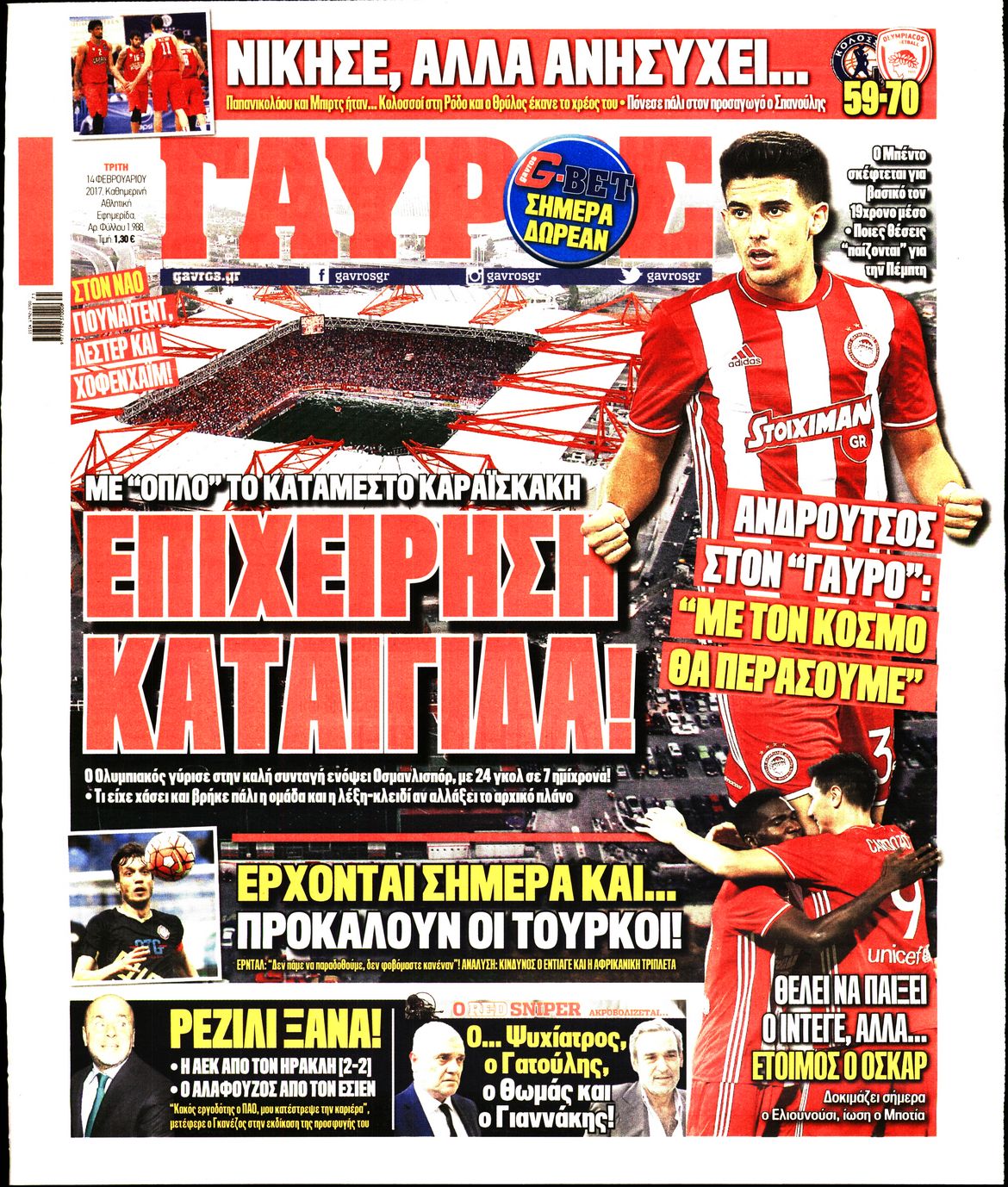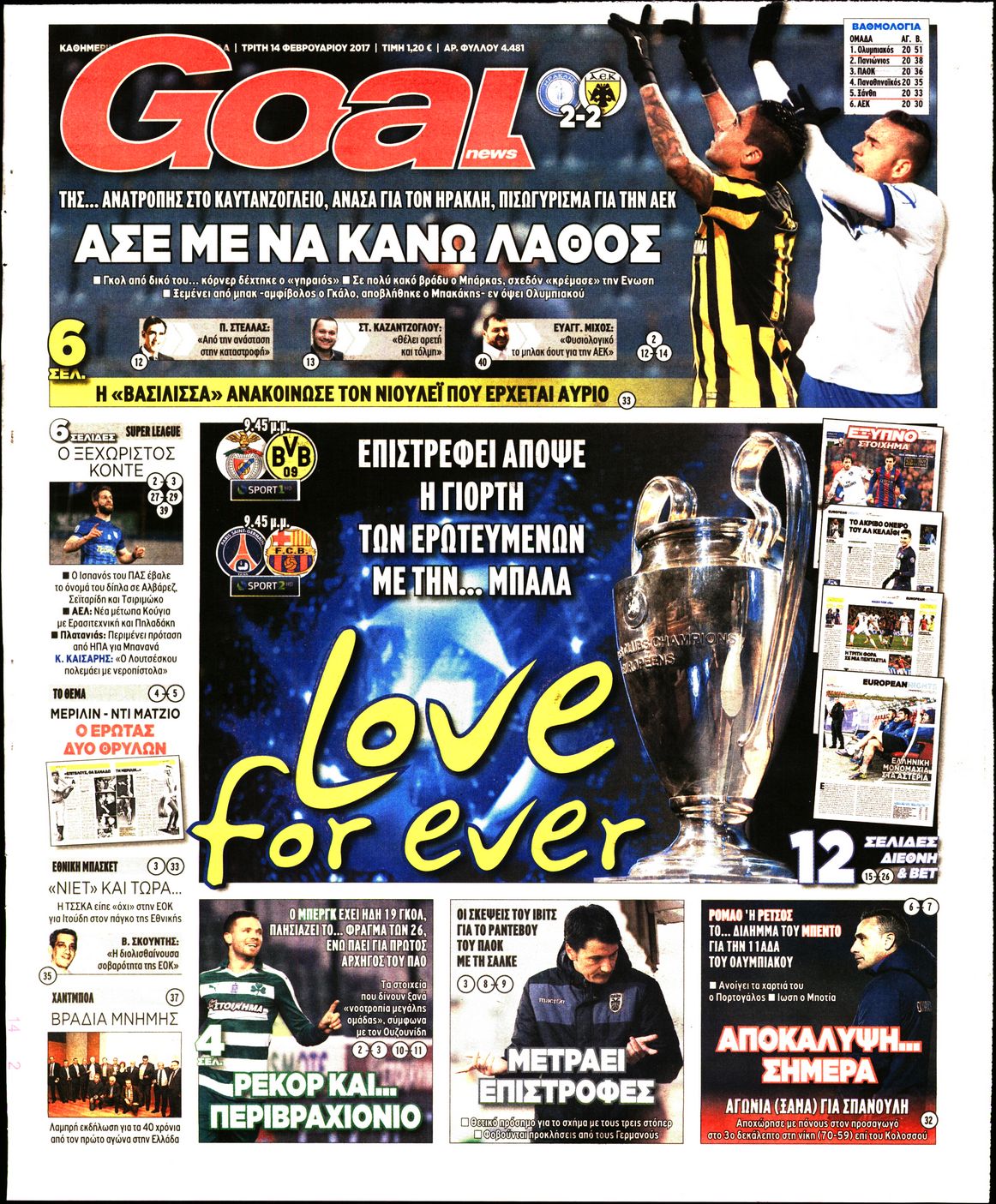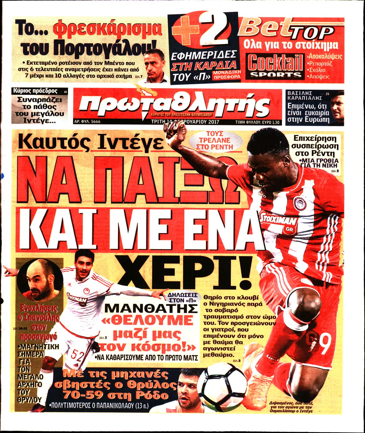 Οι αθλητικές εφημερίδες 14/2/2017 Enikos Newsroom 02:04, Τρίτη 14 Φεβρουαρίου 2017 Media Διαβάστε τα σημερινά πρωτοσέλιδα των αθλητικών εφημερίδων: ΑΘΛΗΤΙΚΕΣ ΕΦΗΜΕΡΙΔΕΣ ΠΡΩΤΟΣΕΛΙΔΑ Μοιράσου το: σχολίασε κι εσύ (0 σχόλια) Ακολουθήστε το enikos.gr στο Google News και μάθετε πρώτοι όλες τις ειδήσεις Δείτε όλες τις τελευταίες ειδήσεις από την Ελλάδα και τον Κόσμο στο enikos.gr Ειδήσεις Ροή Ειδήσεων 41 λεπτά πριν Ευρωπαϊκή Ένωση: Συμφωνία για δάνειο 90 δισ. ευρώ στην Ουκρανία τη διετία 2026-2027 5 ώρες πριν ΟΠΕΚΕΠΕ: Προφυλακιστέος ο φερόμενος αρχηγός και ο λογιστής της εγκληματικής οργάνωσης 6 ώρες πριν Αυξάνουν την πίεση προς την κυβέρνηση οι αγρότες: Κλείνουν παρακαμπτήριους και ανοίγουν διόδια – Τι θα γίνει τις γιορτές 6 ώρες πριν Φοινικούντα: Το Σάββατο απολογείται ο 30χρονος γιος γνωστού επιχειρηματία της Πλάκας που παραδόθηκε – Όσα είπε στους αστυνομικούς και ο ρόλος του στο έγκλημα 5 ώρες πριν ΑΕΚ – Κραϊόβα 3-2: Επική ανατροπή και πρόκριση στους «16» του Conference League η Ένωση 6 ώρες πριν Αρχαιολόγοι ανακάλυψαν ρωμαϊκά τεχνουργήματα από μια πόλη που δεν υπήρξε ποτέ – Τα τρία εντυπωσιακά κτίρια και ο αμφορέας με τις… σαρδέλες 7 ώρες πριν Ύπνος: Η απλή βραδινή ρουτίνα για να προστατεύσετε τα μαλλιά σας από το κρύο κατά τη διάρκεια του χειμώνα 8 ώρες πριν Manifesting: Πώς να συναντήσετε τον σύντροφο της ζωής σας, ανάλογα με τον μήνα γέννησής σας 2 ημέρες πριν 20 χρόνια τα Χριστούγεννα ξεκινούν στα Public με μεγάλη ποικιλία σε δώρα! 5 λεπτά πριν Αυστραλία: Κήρυξε την Κυριακή (21/12) ημέρα εθνικού πένθους για τη φονική επίθεση στην παραλία Μπόνταϊ 15 λεπτά πριν Ρόδος: Δάσκαλος καράτε καταδικάστηκε για ασέλγεια σε ανήλικες αθλήτριες – Μαρτυρίες για αγγίγματα σε ευαίσθητα σημεία 29 λεπτά πριν Γουατεμάλα: Εξαρθρώθηκε κύκλωμα διακίνησης μεταναστών προς τις ΗΠΑ – Συνελήφθησαν 14 άτομα 34 λεπτά πριν Βουλγαρία: Χιλιάδες πολίτες στους δρόμους κατά της απερχόμενης κυβέρνησης και της διαφθοράς 41 λεπτά πριν Ευρωπαϊκή Ένωση: Συμφωνία για δάνειο 90 δισ. ευρώ στην Ουκρανία τη διετία 2026-2027 ENIKOS NETWORK Σε περίοδο αυξημένης δραστηριότητας η γρίπη στην Ελλάδα-Μέτρα προστασίας από τον ΕΟΔΥ Σκέφτεστε συνέχεια συζητήσεις που έχετε κάνει; Τι σημαίνει αυτό, σύμφωνα με ειδικό Στεγαστικό: Τι λέει η ΠΟΜΙΔΑ για τα νέα μέτρα που ανακοίνωσε ο Κυριάκος Μητσοτάκης Λαγκάρντ: Αισιόδοξη για την ανάπτυξη της Ευρωζώνης, αβέβαιη για τον πληθωρισμό Χαρτογραφώντας το «σημείο χωρίς επιστροφή»: Για πρώτη φορά αποκαλύπτεται με λεπτομέρεια το ακανθώδες όριο της ατμόσφαιρας τ... Η Google καταργεί τη λειτουργία «dark web report» – Πώς θα μπορούν οι χρήστες να διαγράφουν τα δεδομένα τους περισσότερα 02:50 , Παρασκευή 19 Δεκεμβρίου 2025 GNTM: «Κλείδωσαν» οι τέσσερις φιναλίστ – Μεγάλη ανατροπή στις τελευταίες αποχωρήσεις Για προτελευταία φορά εμφανίστηκαν στο πλατό του GNTM οι φιναλίστ του φετινού κύκλου, το βράδυ... 17:45 , Πέμπτη 18 Δεκεμβρίου 2025 ROUK ZOUK: Εορταστικό επεισόδιο με καλεσμένους τους πρωταγωνιστές του «Γιατί ρε πατέρα» Το Σάββατο 20 Δεκεμβρίου στις 21:00, η Ζέτα Μακρυπούλια υποδέχεται εκλεκτούς ηθοποιούς που όλο... 17:20 , Πέμπτη 18 Δεκεμβρίου 2025 Άγιος έρωτας: Η Χριστίνα εξομολογείται στον πατέρα Νικόλαο, απόψε στις 21:00 στον Alpha Η Νότα αποφασίζει να εκδικηθεί τον Πέτρο και τον Στέφανο, για χάρη του Λούη, όμως τα πράγματα ... 16:50 , Πέμπτη 18 Δεκεμβρίου 2025 Να μ’ αγαπάς: Ζωή και Φωτεινή συμφιλιώνονται ως μάνα με κόρη, απόψε στις 20:00 Η ταυτότητα του Άγγελου αποκαλύπτεται στο ν