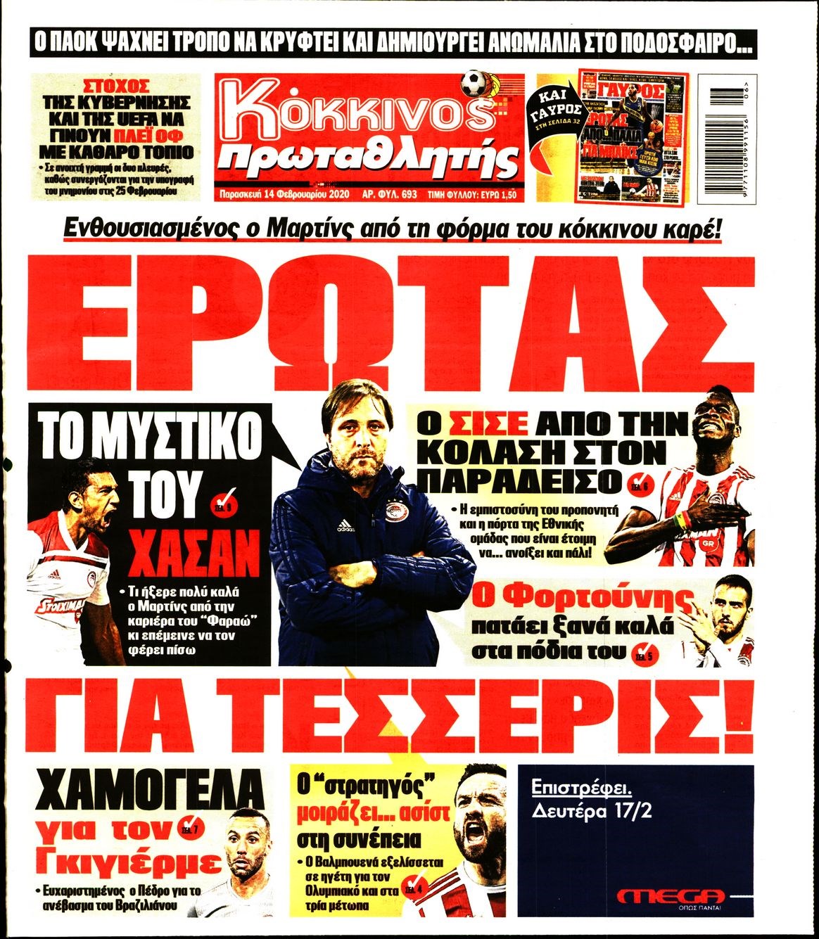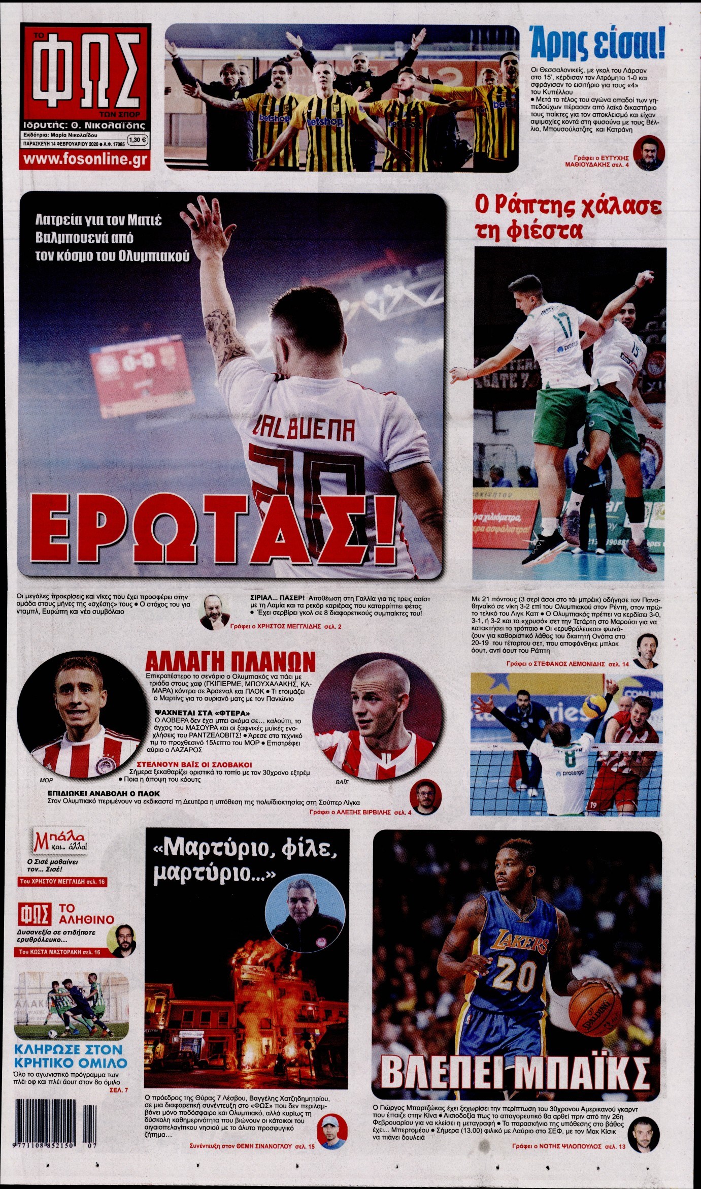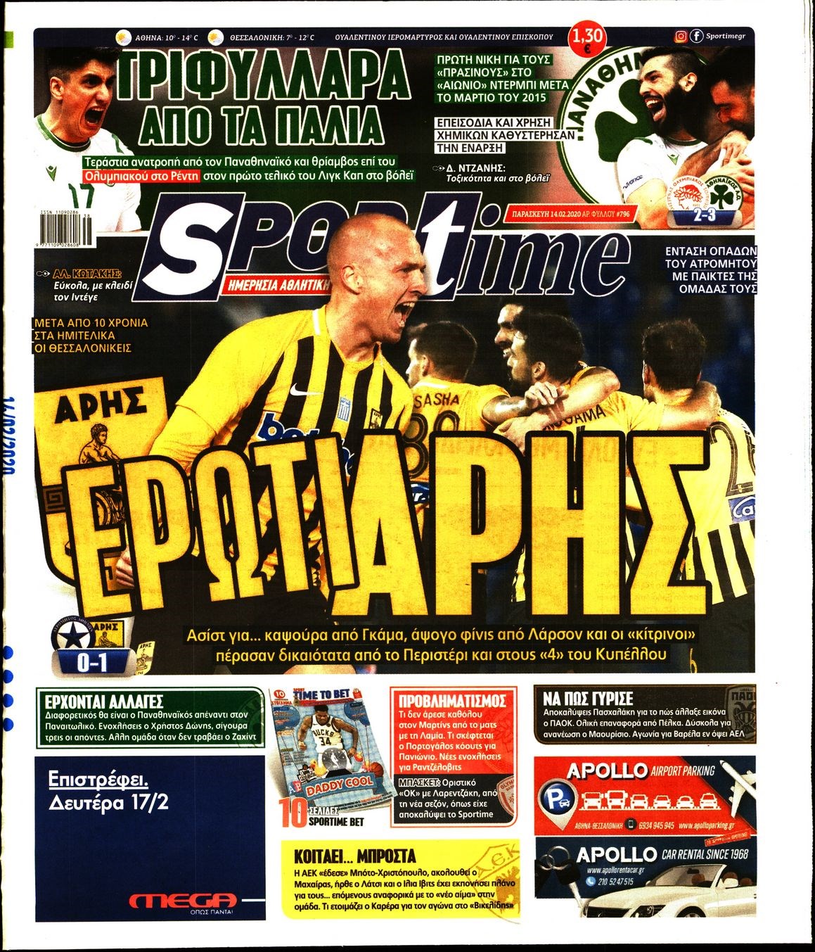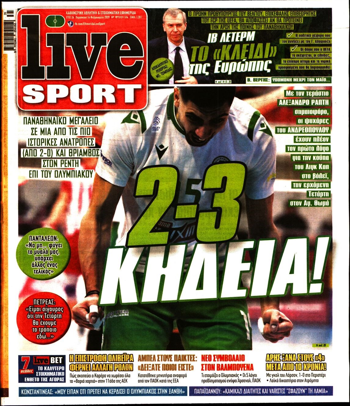 Οι αθλητικές εφημερίδες 14/2/2020 Διονύσης Νίκκας 06:44, Παρασκευή 14 Φεβρουαρίου 2020 Media Διαβάστε τα πρωτοσέλιδα των αθλητικών εφημερίδων… ΑΘΛΗΤΙΚΕΣ ΕΦΗΜΕΡΙΔΕΣ ΠΡΩΤΟΣΕΛΙΔΑ Μοιράσου το: σχολίασε κι εσύ (0 σχόλια) Ακολουθήστε το enikos.gr στο Google News και μάθετε πρώτοι όλες τις ειδήσεις Δείτε όλες τις τελευταίες ειδήσεις από την Ελλάδα και τον Κόσμο στο enikos.gr Ειδήσεις Ροή Ειδήσεων 4 ώρες πριν Μεσόγειος: Η διαδρομή του ρωσικού τάνκερ «Qendil» και η στοχευμένη επίθεση της Ουκρανίας με drone – Ο Πούτιν προειδοποίησε για αντίποινα 46 λεπτά πριν Αγρότες: Έκλεισαν για μία ώρα την παρακαμπτήρια της Ιόνιας Οδού στη θέση Χαλίκι 2 ώρες πριν Εμπλοκή και αερομαχίες με οπλισμένα τουρκικά F-16 στο Αιγαίο 2 ώρες πριν Πούτιν: «Ναι, είμαι ερωτευμένος» – Βίντεο από τη σπάνια προσωπική παραδοχή του 50 λεπτά πριν Ανδρέας Λυκουρέντζος: Υπέβαλε την παραίτησή του ο πρόεδρος του ΕΛΓΑ, αλλά δεν έγινε δεκτή – Όλο το παρασκήνιο 60 λεπτά πριν Αριθμολογία: Οι άνθρωποι που έχουν γεννηθεί αυτές τις 4 ημερομηνίες, συχνά παρεξηγούνται – «Η καλοσύνη τους κρύβει τεράστια δύναμη» 3 ώρες πριν Μήπως έχετε χάσει τον εαυτό σας στη σχέση σας; 7 «αθόρυβες» υποχωρήσεις που μάλλον κάνατε, χωρίς να το συνειδητοποιήσετε 2 ώρες πριν Ξεχάστε το καθάρισμα το Σαββατοκύριακο: Ο «κανόνας των 20 λεπτών» που θα σας λύσει τα χέρια 5 ώρες πριν Κουίζ για την παλιά Αθήνα: Αναγνωρίζετε την περιοχή; Έχετε περάσει 100% από εκεί 6 λεπτά πριν ΕΕ: «Κάποια στιγμή θα χρησιμοποιήσουμε τα ρωσικά περιουσιακά στοιχεία» δήλωσε ο πρόεδρος του ΕΛΚ 9 λεπτά πριν Conference League: Καλύτερη επίθεση η ΑΕΚ στη διοργάνωση και 2η σε προσπάθειες στην εστία – Ξεχωρίζουν Πινέδα, Ελίασον και Ρότα 11 λεπτά πριν Έγκυος η Άννα Κορακάκη: «Η οικογένειά μας μεγαλώνει…» – Η αποκάλυψη για το φύλο του μωρού 19 λεπτά πριν Τραγωδία στο Βελεστίνο: Πέθανε ο αντιδήμαρχος Γιάννης Παπαϊωάννου 23 λεπτά πριν Ολυμπιακός – Βιλερμπάν: Μάτωσε στο πρόσωπο ο Παπανικολάου έπειτα από αγκωνιά του Βοτιέ – ΦΩΤΟ ENIKOS NETWORK Το ΕΚΑΒ τιμήθηκε από την Ακαδημία Αθηνών για τα 40 χρόνια προσφοράς του Έχετε πραγματικά μεγάλη καρδιά; 10 χαρακτηριστικά όσων έχουν καλοσύνη Όμιλος ΔΕΗ: Νέα ορόσημα και ενισχυμένη διαφάνεια στην ετήσια Έκθεση Βιώσιμης Ανάπτυξης Έρχονται νέες προσλήψεις σε Δήμο – Όλες οι λεπτομέρειες Χαρτογραφώντας το «σημείο χωρίς επιστροφή»: Για πρώτη φορά αποκαλύπτεται με λεπτομέρεια το ακανθώδες όριο της ατμόσφαιρας τ... Η Google καταργεί τη λειτουργία «dark web report» – Πώς θα μπορούν οι χρήστες να διαγράφουν τα δεδομένα τους περισσότερα 20:37 , Παρασκευή 19 Δεκεμβρίου 2025 Don’t Forget The Lyrics: Η Έλλη Κοκκίνου υποδέχεται 4 παίκτες που θα κάνουν τα πάντα για να μη χάσουν ούτε… μισή λέξη από τους στίχους Το «Don’t Forget The Lyrics» επιστρέφει απόψε, Παρασκευή 19 Δεκεμβρίου, στις 21:00 με νέο επει... 19:31 , Παρασκευή 19 Δεκεμβρίου 2025 GNTM: Απόψε ο μεγάλος τελικός για τους 4 φιναλίστ Έπειτα από μήνες γεμάτους μόδα, δημιουργία και έντονες αναμετρήσεις, το GNTM 2025 κορυφώνεται,... 18:11 , Παρασκευή 19 Δεκεμβρίου 2025 Το σόι σου: Ο Άρης έρχεται στην Ελλάδα για τις γιορτές των Χριστουγέννων – Τι θα δούμε στο αποψινό εορταστικό επεισόδιο Ένα απολαυστικό, εορταστικό επεισόδιο της σειράς “Το σόι σου”, γεμάτο ευτράπελα αλ... 15:15 , Παρασκευή 19 Δεκεμβρίου 2025 Την Κυριακή με τη Realnews: Ό,τι και αν αγοράσεις, σκανάρεις και κερδίζεις! Την Κυριακή με τη Realnews: Ό,τι και αν αγοράσεις, σκανάρεις και κερδίζεις! Με το PADU app, το... ΤΕΛΕΥΤΑΙΕΣ ΕΙΔΗΣΕΙΣ 6 λεπτά πριν Ε