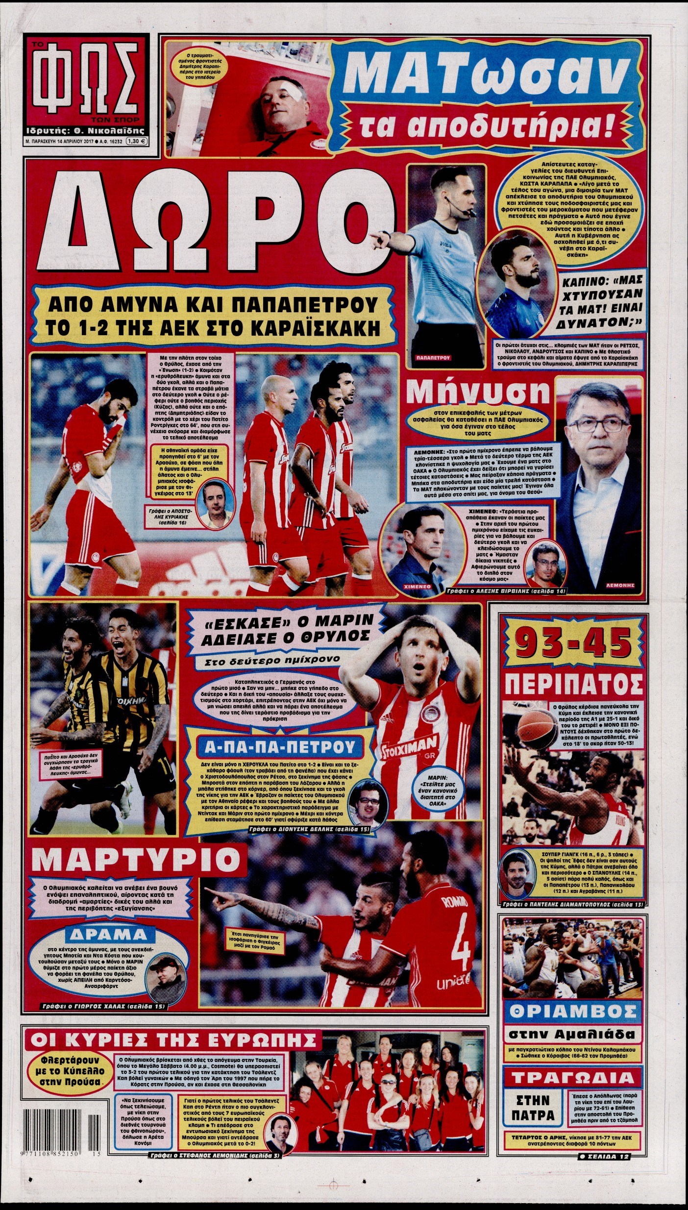 Διαβάστε τα σημερινά πρωτοσέλιδα των αθλητικών εφημερίδων: