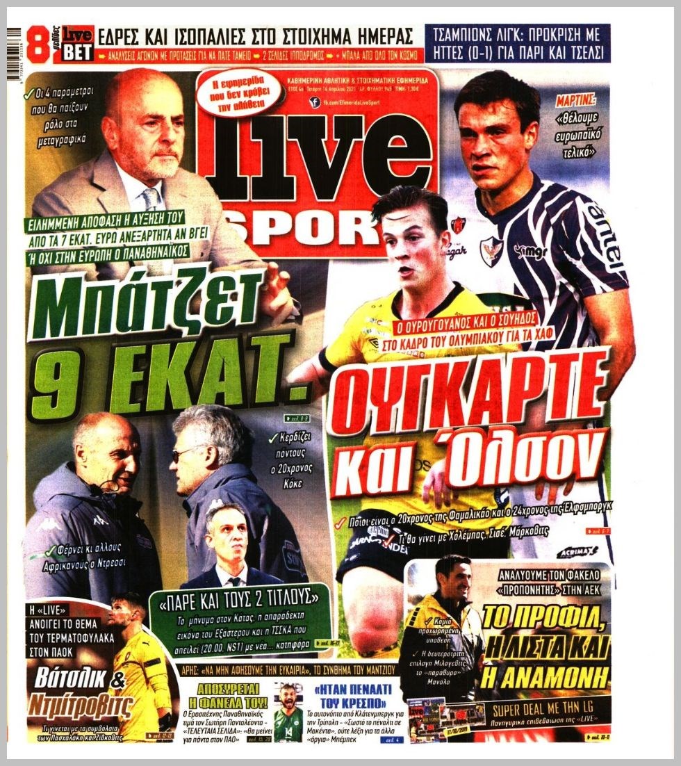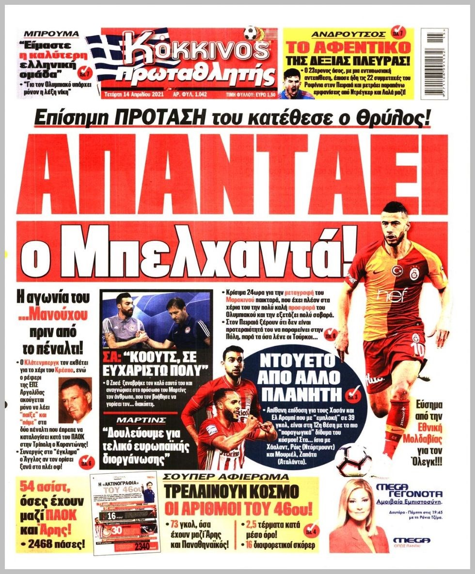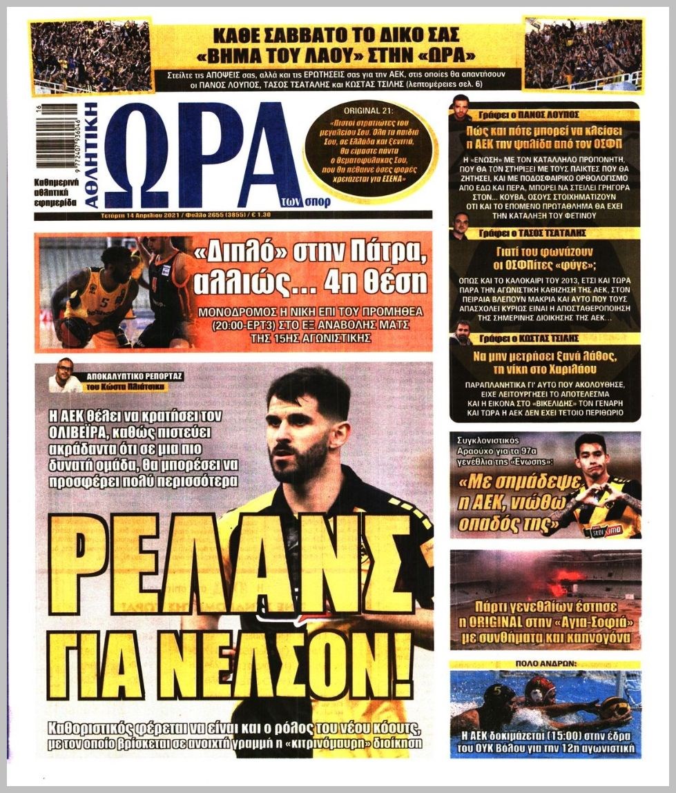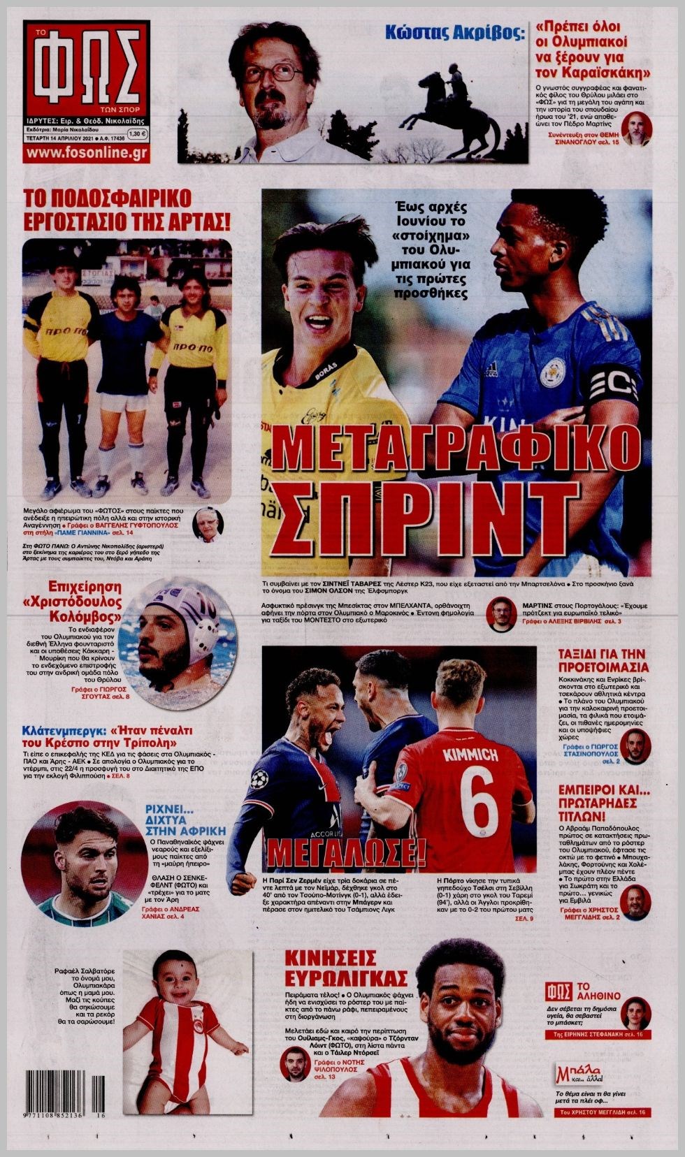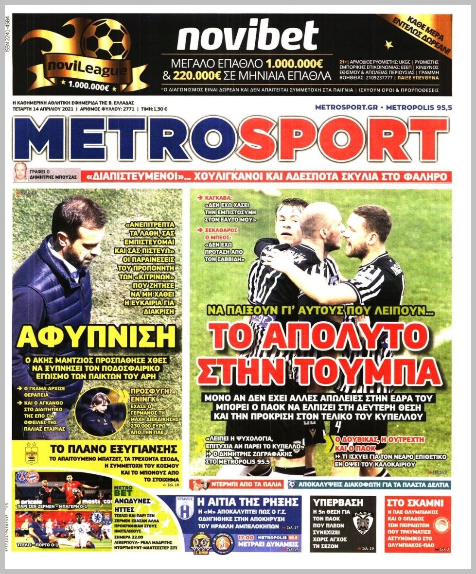 Οι αθλητικές εφημερίδες 14/4/2021 Διονύσης Νίκκας 06:50, Τετάρτη 14 Απριλίου 2021 Media Διαβάστε τα πρωτοσέλιδα των αθλητικών εφημερίδων… ΑΘΛΗΤΙΚΕΣ ΕΦΗΜΕΡΙΔΕΣ Μοιράσου το: σχολίασε κι εσύ (0 σχόλια) Ακολουθήστε το enikos.gr στο Google News και μάθετε πρώτοι όλες τις ειδήσεις Δείτε όλες τις τελευταίες ειδήσεις από την Ελλάδα και τον Κόσμο στο enikos.gr Ειδήσεις Ροή Ειδήσεων 4 ώρες πριν Από το Ορμένιο ως τα Μάλγαρα κι από τη Σιάτιστα μέχρι τη Νίκαια: Μπλόκα σε όλη την Ελλάδα – Το Σάββατο ανοίγουν τα διόδια οι αγρότες 1 ώρα πριν Εμπλοκή και αερομαχίες με οπλισμένα τουρκικά F-16 στο Αιγαίο 3 ώρες πριν Αττική: Θρίλερ με νεκρό βρέφος 5 μηνών – Κοιμόταν στο ίδιο κρεβάτι με τους γονείς του 58 λεπτά πριν Πούτιν: «Ναι, είμαι ερωτευμένος» – Βίντεο από τη σπάνια προσωπική παραδοχή του 3 ώρες πριν Μεσόγειος: Η διαδρομή του ρωσικού τάνκερ «Qendil» και η στοχευμένη επίθεση της Ουκρανίας με drone – Ο Πούτιν προειδοποίησε για αντίποινα 5 ώρες πριν Τα 5 ζώδια που ευνοούνται στην ερωτική ζωή τους την επόμενη εβδομάδα – «Η ενέργεια του Αιγόκερου φέρνει αγάπη και σταθερότητα» 6 ώρες πριν Αυτό το έξυπνο μαθηματικό κόλπο θα μπορούσε να αλλάξει τον τρόπο με τον οποίο οι επιστήμονες μελετούν τους σεισμούς 2 ώρες πριν Μήπως έχετε χάσει τον εαυτό σας στη σχέση σας; 7 «αθόρυβες» υποχωρήσεις που μάλλον κάνατε, χωρίς να το συνειδητοποιήσετε 4 ώρες πριν Κουίζ για την παλιά Αθήνα: Αναγνωρίζετε την περιοχή; Έχετε περάσει 100% από εκεί 5 λεπτά πριν Μπαράκ Ομπάμα: Τα βιβλία, οι ταινίες και τα τραγούδια που ξεχώρισε το 2025 – Πλήρης λίστα 9 λεπτά πριν Don’t Forget The Lyrics: Η Έλλη Κοκκίνου υποδέχεται 4 παίκτες που θα κάνουν τα πάντα για να μη χάσουν ούτε… μισή λέξη από τους στίχους 15 λεπτά πριν Πλεύρης στον ΑΝΤ1: Η βασική πολιτική που ψηφίστηκε από τους υπουργούς Μετανάστευσης είναι η δημιουργία κέντρων κράτησης μεταναστών στην Αφρική – ΒΙΝΤΕΟ 20 λεπτά πριν Η εξομολόγηση της Νίκης Σερέτη: «Δεν κρύβω ότι ήταν πάρα πολύ δύσκολο όλο αυτό που βίωσα» 25 λεπτά πριν Αγρότες: Κλειστό ξανά το ρεύμα εισόδου στα Μάλγαρα – Άνοιξαν τον κόμβο της Χαλκηδόνας ENIKOS NETWORK Έχετε πραγματικά μεγάλη καρδιά; 10 χαρακτηριστικά όσων έχουν καλοσύνη «Η σούπερ» γρίπη εξαπλώνεται στην Ευρώπη-Στοιχεία από το ECDC για την αποτελεσματικότητα του εμβολίου Επίδομα παιδιού: Πότε ανοίγει ξανά η πλατφόρμα για τις αιτήσεις Προκήρυξη ΑΣΕΠ για 397 μόνιμες προσλήψεις στο Δημόσιο: Βγήκαν τα προσωρινά αποτελέσματα – Πότε αρχίζει η υποβολή ενστάσεων Χαρτογραφώντας το «σημείο χωρίς επιστροφή»: Για πρώτη φορά αποκαλύπτεται με λεπτομέρεια το ακανθώδες όριο της ατμόσφαιρας τ... Η Google καταργεί τη λειτουργία «dark web report» – Πώς θα μπορούν οι χρήστες να διαγράφουν τα δεδομένα τους περισσότερα 20:37 , Παρασκευή 19 Δεκεμβρίου 2025 Don’t Forget The Lyrics: Η Έλλη Κοκκίνου υποδέχεται 4 παίκτες που θα κάνουν τα πάντα για να μη χάσουν ούτε… μισή λέξη από τους στίχους Το «Don’t Forget The Lyrics» επιστρέφει απόψε, Παρασκευή 19 Δεκεμβρίου, στις 21:00 με νέο επει... 19:31 , Παρασκευή 19 Δεκεμβρίου 2025 GNTM: Απόψε ο μεγάλος τελικός για τους 4 φιναλίστ Έπειτα από μήνες γεμάτους μόδα, δημιουργία και έντονες αναμετρήσεις, το GNTM 2025 κορυφώνεται,... 18:11 , Παρασκευή 19 Δεκεμβρίου 2025 Το σόι σου: Ο Άρης έρχεται στην Ελλάδα για τις γιορτές των Χριστουγέννων – Τι θα δούμε στο αποψινό εορταστικό επεισόδιο Ένα απολαυστικό, εορταστικό επεισόδιο της σειράς “Το σόι σου”, γεμάτο ευτράπελα αλ... 15:15 , Παρασκευή 19 Δεκεμβρίου 2025 Την Κυριακή με τη Realnews: