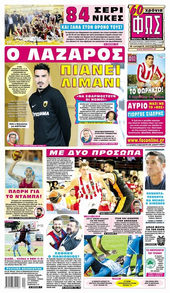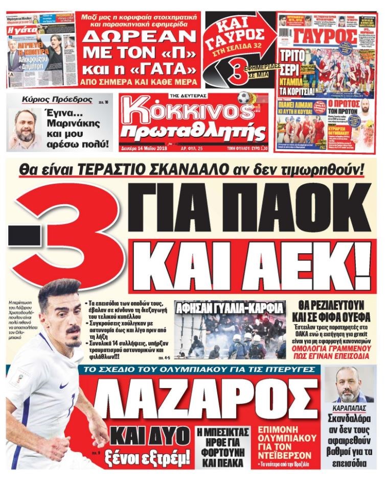 Οι αθλητικές εφημερίδες 14/5/2018 Κώστας Τεό 06:56, Δευτέρα 14 Μαΐου 2018 Media Διαβάστε τα σημερινά πρωτοσέλιδα των αθλητικών εφημερίδων: ΑΘΛΗΤΙΚΕΣ ΕΦΗΜΕΡΙΔΕΣ ΠΡΩΤΟΣΕΛΙΔΑ Μοιράσου το: σχολίασε κι εσύ (0 σχόλια) Ακολουθήστε το enikos.gr στο Google News και μάθετε πρώτοι όλες τις ειδήσεις Δείτε όλες τις τελευταίες ειδήσεις από την Ελλάδα και τον Κόσμο στο enikos.gr Ειδήσεις Ροή Ειδήσεων 14 λεπτά πριν Χριστούγεννα στα μπλόκα: Επιμένουν στις κινητοποιήσεις τους οι αγρότες – Ανοίγουν τα διόδια το Σαββατοκύριακο 43 λεπτά πριν Τραμπ: Δεν αποκλείει την πιθανότητα ενός πολέμου στη Βενεζουέλα – «Ο Μαδούρο ξέρει καλύτερα από τον καθένα τι ακριβώς θέλω» 37 λεπτά πριν Ουκρανία: Η άνευ προηγουμένου επίθεση σε ρωσικό τάνκερ στη Μεσόγειο και το μήνυμα προς στον Πούτιν – Το «μακρύ χέρι» του Κιέβου 3 ώρες πριν Πούτιν: «Ναι, είμαι ερωτευμένος» – Βίντεο από τη σπάνια προσωπική παραδοχή του 1 ώρα πριν Συνεχίζει να προκαλεί ο Μίτσκοσκι: «Για μένα το όνομα Μακεδονία είναι ιερό» 2 ώρες πριν Αριθμολογία: Οι άνθρωποι που έχουν γεννηθεί αυτές τις 4 ημερομηνίες, συχνά παρεξηγούνται – «Η καλοσύνη τους κρύβει τεράστια δύναμη» 4 ώρες πριν Μήπως έχετε χάσει τον εαυτό σας στη σχέση σας; 7 «αθόρυβες» υποχωρήσεις που μάλλον κάνατε, χωρίς να το συνειδητοποιήσετε 3 ώρες πριν Ξεχάστε το καθάρισμα το Σαββατοκύριακο: Ο «κανόνας των 20 λεπτών» που θα σας λύσει τα χέρια 52 λεπτά πριν Ύπνος: Μια κρυφή κατάσταση του εγκεφάλου πριν από τον ύπνο μπορεί να είναι το “κλειδί” για υψηλή ευφυΐα και δημιουργικότητα 4 λεπτά πριν Παναθηναϊκός: «Μέσα» οι Σφιντέρσκι και Τουμπά για το ματς με τον ΠΑΟΚ – Τι έδειξε η μαγνητική του Πάντοβιτς 10 λεπτά πριν Γιώργος Γιαννόπουλος για “Το σόι σου”: “Είναι ευτυχία και ευλογία αυτή η σειρά” 14 λεπτά πριν Χριστούγεννα στα μπλόκα: Επιμένουν στις κινητοποιήσεις τους οι αγρότες – Ανοίγουν τα διόδια το Σαββατοκύριακο 26 λεπτά πριν Χάρι και Μέγκαν: Η σπάνια οικογενειακή φωτογραφία με τον Άρτσι και τη Λίλιμπετ – Τι σχεδιάζουν για τα Χριστούγεννα 33 λεπτά πριν Βασίλης Καρράς: «Είναι πάντα δίπλα μου, δεν έφυγε…», λέει ο αδελφός του ENIKOS NETWORK Το ΕΚΑΒ τιμήθηκε από την Ακαδημία Αθηνών για τα 40 χρόνια προσφοράς του Έχετε πραγματικά μεγάλη καρδιά; 10 χαρακτηριστικά όσων έχουν καλοσύνη Πλήρης επάρκεια προϊόντων στις λαϊκές της Αττικής, παρά τις αγροτικές κινητοποιήσεις – Τι απαντούν οι πωλητές ΑΑΔΕ: Νέες αναβαθμίσεις στο Ψηφιακό Πελατολόγιο και την εφαρμογή myDATAapp – Τι πρέπει να γνωρίζετε Χαρτογραφώντας το «σημείο χωρίς επιστροφή»: Για πρώτη φορά αποκαλύπτεται με λεπτομέρεια το ακανθώδες όριο της ατμόσφαιρας τ... Η Google καταργεί τη λειτουργία «dark web report» – Πώς θα μπορούν οι χρήστες να διαγράφουν τα δεδομένα τους περισσότερα 22:42 , Παρασκευή 19 Δεκεμβρίου 2025 Γιώργος Γιαννόπουλος για “Το σόι σου”: “Είναι ευτυχία και ευλογία αυτή η σειρά” «Είναι ευτυχία και ευλογία η συγκυρία αυτής της σειράς», θα πει ο Γιώργος Γιαννόπουλος -ο αγαπ... 20:37 , Παρασκευή 19 Δεκεμβρίου 2025 Don’t Forget The Lyrics: Η Έλλη Κοκκίνου υποδέχεται 4 παίκτες που θα κάνουν τα πάντα για να μη χάσουν ούτε… μισή λέξη από τους στίχους Το «Don’t Forget The Lyrics» επιστρέφει απόψε, Παρασκευή 19 Δεκεμβρίου, στις 21:00 με νέο επει... 19:31 , Παρασκευή 19 Δεκεμβρίου 2025 GNTM: Απόψε ο μεγάλος τελικός για τους 4 φιναλίστ Έπειτα από μήνες γεμάτους μόδα, δημιουργία και έντονες αναμετρήσεις, το GNTM 2025 κορυφώνεται,... 18:11 , Παρασκευή 19 Δεκεμβρίου 2025 Το σόι σου: Ο Άρης έρχεται στην Ελλά