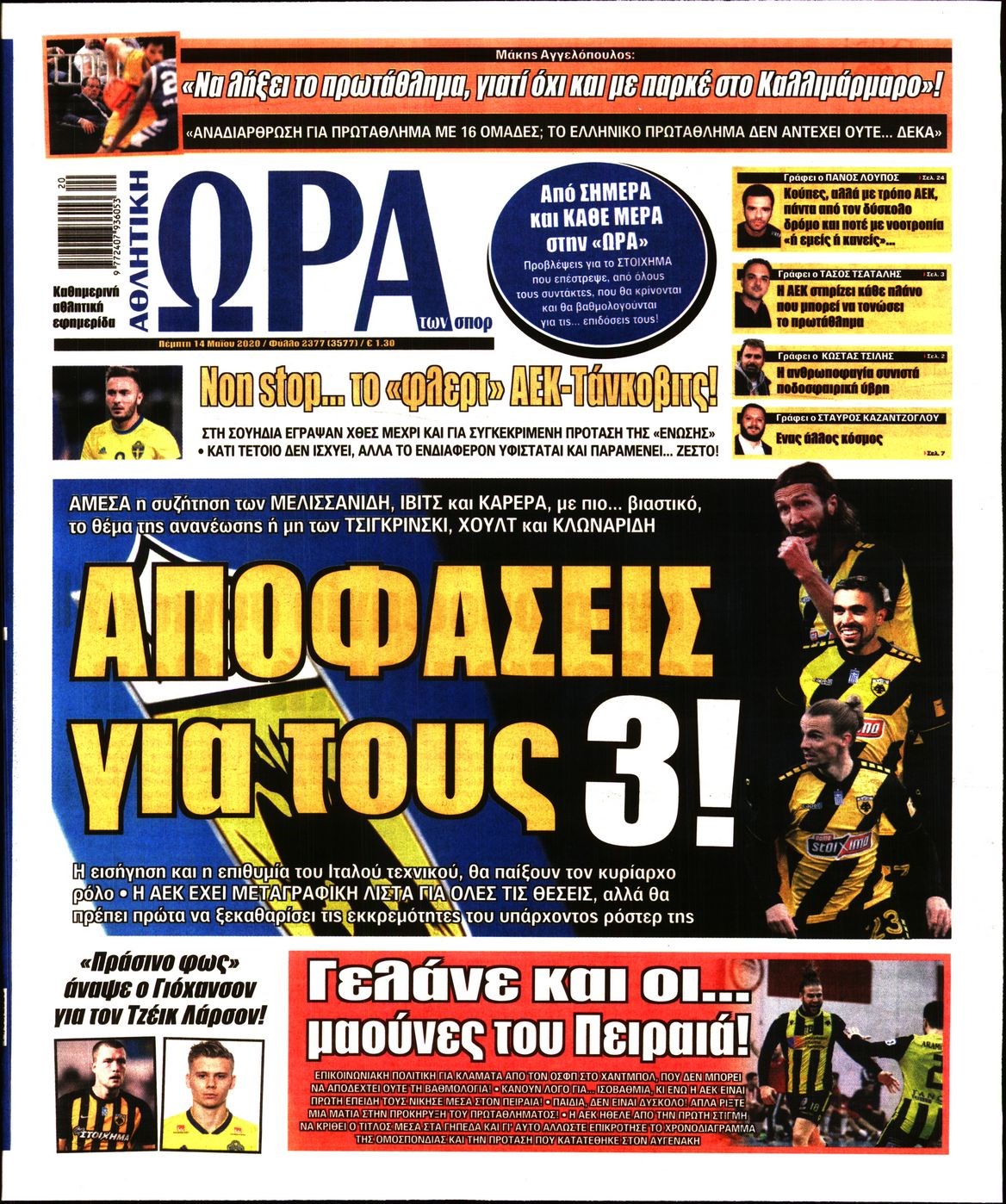 Οι αθλητικές εφημερίδες 14/5/2020 Διονύσης Νίκκας 06:34, Πέμπτη 14 Μαΐου 2020 Media Διαβάστε τα πρωτοσέλιδα των αθλητικών εφημερίδων… ΑΘΛΗΤΙΚΕΣ ΕΦΗΜΕΡΙΔΕΣ ΠΡΩΤΟΣΕΛΙΔΑ Μοιράσου το: σχολίασε κι εσύ (0 σχόλια) Ακολουθήστε το enikos.gr στο Google News και μάθετε πρώτοι όλες τις ειδήσεις Δείτε όλες τις τελευταίες ειδήσεις από την Ελλάδα και τον Κόσμο στο enikos.gr Ειδήσεις Ροή Ειδήσεων 4 ώρες πριν Μεσόγειος: Η διαδρομή του ρωσικού τάνκερ «Qendil» και η στοχευμένη επίθεση της Ουκρανίας με drone – Ο Πούτιν προειδοποίησε για αντίποινα 42 λεπτά πριν Αγρότες: Έκλεισαν για μία ώρα την παρακαμπτήρια της Ιόνιας Οδού στη θέση Χαλίκι 2 ώρες πριν Εμπλοκή και αερομαχίες με οπλισμένα τουρκικά F-16 στο Αιγαίο 2 ώρες πριν Πούτιν: «Ναι, είμαι ερωτευμένος» – Βίντεο από τη σπάνια προσωπική παραδοχή του 46 λεπτά πριν Ανδρέας Λυκουρέντζος: Υπέβαλε την παραίτησή του ο πρόεδρος του ΕΛΓΑ, αλλά δεν έγινε δεκτή – Όλο το παρασκήνιο 56 λεπτά πριν Αριθμολογία: Οι άνθρωποι που έχουν γεννηθεί αυτές τις 4 ημερομηνίες, συχνά παρεξηγούνται – «Η καλοσύνη τους κρύβει τεράστια δύναμη» 3 ώρες πριν Μήπως έχετε χάσει τον εαυτό σας στη σχέση σας; 7 «αθόρυβες» υποχωρήσεις που μάλλον κάνατε, χωρίς να το συνειδητοποιήσετε 2 ώρες πριν Ξεχάστε το καθάρισμα το Σαββατοκύριακο: Ο «κανόνας των 20 λεπτών» που θα σας λύσει τα χέρια 5 ώρες πριν Κουίζ για την παλιά Αθήνα: Αναγνωρίζετε την περιοχή; Έχετε περάσει 100% από εκεί 2 λεπτά πριν ΕΕ: «Κάποια στιγμή θα χρησιμοποιήσουμε τα ρωσικά περιουσιακά στοιχεία» δήλωσε ο πρόεδρος του ΕΛΚ 6 λεπτά πριν Conference League: Καλύτερη επίθεση η ΑΕΚ στη διοργάνωση και 2η σε προσπάθειες στην εστία – Ξεχωρίζουν Πινέδα, Ελίασον και Ρότα 7 λεπτά πριν Έγκυος η Άννα Κορακάκη: «Η οικογένειά μας μεγαλώνει…» – Η αποκάλυψη για το φύλο του μωρού 15 λεπτά πριν Τραγωδία στο Βελεστίνο: Πέθανε ο αντιδήμαρχος Γιάννης Παπαϊωάννου 19 λεπτά πριν Ολυμπιακός – Βιλερμπάν: Μάτωσε στο πρόσωπο ο Παπανικολάου έπειτα από αγκωνιά του Βοτιέ – ΦΩΤΟ ENIKOS NETWORK Το ΕΚΑΒ τιμήθηκε από την Ακαδημία Αθηνών για τα 40 χρόνια προσφοράς του Έχετε πραγματικά μεγάλη καρδιά; 10 χαρακτηριστικά όσων έχουν καλοσύνη Έρχονται νέες προσλήψεις σε Δήμο – Όλες οι λεπτομέρειες Επίδομα παιδιού: Πότε ανοίγει ξανά η πλατφόρμα για τις αιτήσεις Χαρτογραφώντας το «σημείο χωρίς επιστροφή»: Για πρώτη φορά αποκαλύπτεται με λεπτομέρεια το ακανθώδες όριο της ατμόσφαιρας τ... Η Google καταργεί τη λειτουργία «dark web report» – Πώς θα μπορούν οι χρήστες να διαγράφουν τα δεδομένα τους περισσότερα 20:37 , Παρασκευή 19 Δεκεμβρίου 2025 Don’t Forget The Lyrics: Η Έλλη Κοκκίνου υποδέχεται 4 παίκτες που θα κάνουν τα πάντα για να μη χάσουν ούτε… μισή λέξη από τους στίχους Το «Don’t Forget The Lyrics» επιστρέφει απόψε, Παρασκευή 19 Δεκεμβρίου, στις 21:00 με νέο επει... 19:31 , Παρασκευή 19 Δεκεμβρίου 2025 GNTM: Απόψε ο μεγάλος τελικός για τους 4 φιναλίστ Έπειτα από μήνες γεμάτους μόδα, δημιουργία και έντονες αναμετρήσεις, το GNTM 2025 κορυφώνεται,... 18:11 , Παρασκευή 19 Δεκεμβρίου 2025 Το σόι σου: Ο Άρης έρχεται στην Ελλάδα για τις γιορτές των Χριστουγέννων – Τι θα δούμε στο αποψινό εορταστικό επεισόδιο Ένα απολαυστικό, εορταστικό επεισόδιο της σειράς “Το σόι σου”, γεμάτο ευτράπελα αλ... 15:15 , Παρασκευή 19 Δεκεμβρίου 2025 Την Κυριακή με τη Realnews: Ό,τι και αν αγοράσεις, σκανάρεις και κερδίζεις! Την Κυριακή με τη Realnews: Ό,τι και αν αγοράσεις, σκανάρεις και κερδίζεις! Με το PADU app, το... ΤΕΛΕΥΤΑΙΕΣ ΕΙΔΗΣΕΙΣ 2 λεπτά πριν ΕΕ: «Κάποια στιγμή θα χρησιμοποιήσο
