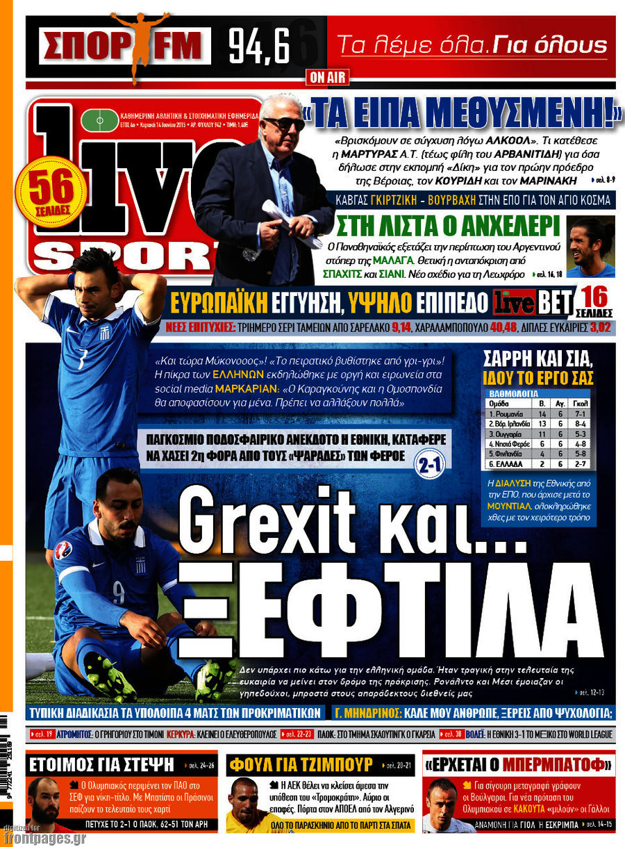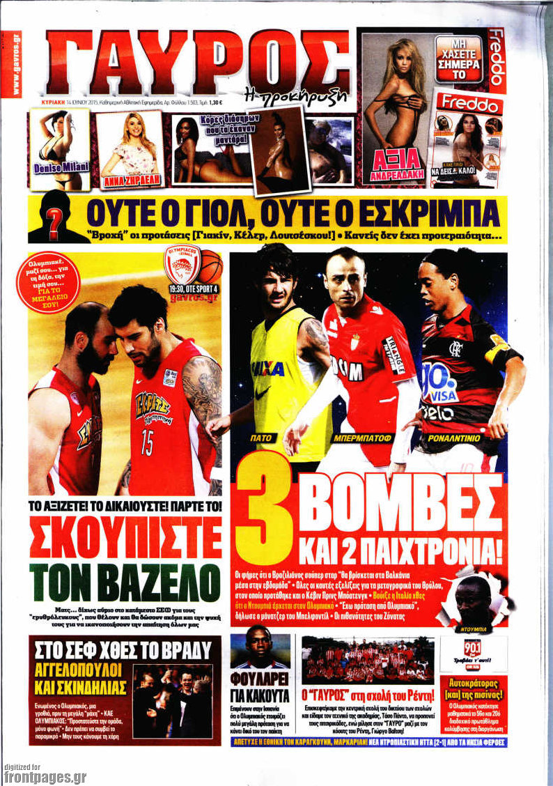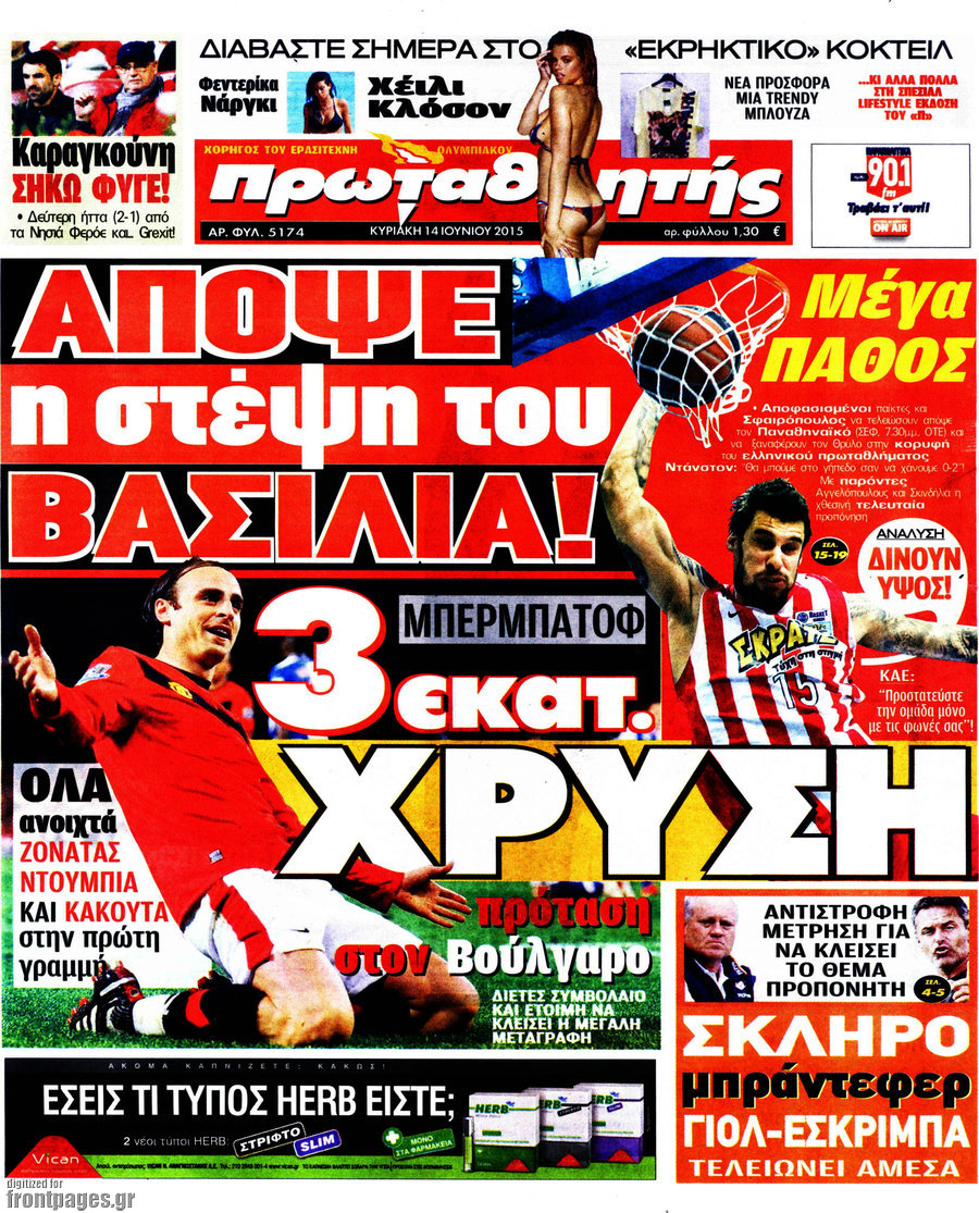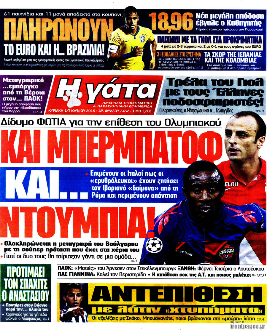Οι αθλητικές εφημερίδες 14/6/2015 Enikos Newsroom 07:36, Κυριακή 14 Ιουνίου 2015 Media Διαβάστε τα σημερινά πρωτοσέλιδα των αθλητικών εφημερίδων: ΑΘΛΗΤΙΚΕΣ ΕΦΗΜΕΡΙΔΕΣ ΠΡΩΤΟΣΕΛΙΔΑ Μοιράσου το: σχολίασε κι εσύ (0 σχόλια) Ακολουθήστε το enikos.gr στο Google News και μάθετε πρώτοι όλες τις ειδήσεις Δείτε όλες τις τελευταίες ειδήσεις από την Ελλάδα και τον Κόσμο στο enikos.gr Ειδήσεις Ροή Ειδήσεων 2 ώρες πριν Χριστούγεννα στα μπλόκα: Επιμένουν στις κινητοποιήσεις τους οι αγρότες – Ανοίγουν τα διόδια το Σαββατοκύριακο 2 ώρες πριν Ουκρανία: Η άνευ προηγουμένου επίθεση σε ρωσικό τάνκερ στη Μεσόγειο και το μήνυμα προς στον Πούτιν – Το «μακρύ χέρι» του Κιέβου 2 ώρες πριν Πούτιν: Τα μηνύματα σε Ευρώπη και ΝΑΤΟ από το μαραθώνιο «σόου» του – Η απαίτηση για «σεβασμό» και η ειρήνη «με τους όρους» της Μόσχας 2 ώρες πριν Τραμπ: Δεν αποκλείει την πιθανότητα ενός πολέμου στη Βενεζουέλα – «Ο Μαδούρο ξέρει καλύτερα από τον καθένα τι ακριβώς θέλω» 3 ώρες πριν Συνεχίζει να προκαλεί ο Μίτσκοσκι: «Για μένα το όνομα Μακεδονία είναι ιερό» 2 ώρες πριν Ανακαλύφθηκαν αρχαία χρυσά νομίσματα 2.200 ετών που απεικονίζουν τον θεό Απόλλωνα – Η άγνωστη σύνδεση με τον Φίλιππο Β΄ της Μακεδονίας 3 ώρες πριν Ύπνος: Μια κρυφή κατάσταση του εγκεφάλου πριν από τον ύπνο μπορεί να είναι το “κλειδί” για υψηλή ευφυΐα και δημιουργικότητα 4 ώρες πριν Αριθμολογία: Οι άνθρωποι που έχουν γεννηθεί αυτές τις 4 ημερομηνίες, συχνά παρεξηγούνται – «Η καλοσύνη τους κρύβει τεράστια δύναμη» 5 ώρες πριν Ξεχάστε το καθάρισμα το Σαββατοκύριακο: Ο «κανόνας των 20 λεπτών» που θα σας λύσει τα χέρια 11 λεπτά πριν Φαίη Σκορδά: «Παλιότερα τα κομπλιμέντα τα προσπερνούσα, τώρα τα έχω ανάγκη» 27 λεπτά πριν Βασίλης Σπανούλης: Δεν εμφανίστηκε ούτε ένας δημοσιογράφος στην συνέντευξη Τύπου – «Καλησπέρα στον… κανέναν», δείτε βίντεο 38 λεπτά πριν Πόλεμος στην Ουκρανία: Εφτά νεκροί από ρωσική πυραυλική επίθεση στο λιμάνι της Οδησσού 41 λεπτά πριν ΗΠΑ: Η κυβέρνηση του Ντόναλντ Τραμπ άρχισε να δημοσιοποιεί τα αρχεία Έπσταϊν 53 λεπτά πριν Σάμος: Άνοιξε το μπλόκο των αγροτών στον κόμβο Κοκκαρίου – Σε νέα συνεδρίαση θα καθορίσουν την στάση τους ENIKOS NETWORK Το ΕΚΑΒ τιμήθηκε από την Ακαδημία Αθηνών για τα 40 χρόνια προσφοράς του Έχετε πραγματικά μεγάλη καρδιά; 10 χαρακτηριστικά όσων έχουν καλοσύνη Αναστολή μέτρων αναγκαστικής εκτέλεσης για κτηνοτρόφους που πλήττονται από την ευλογιά των αιγοπροβάτων Πλήρης επάρκεια προϊόντων στις λαϊκές της Αττικής, παρά τις αγροτικές κινητοποιήσεις – Τι απαντούν οι πωλητές Χαρτογραφώντας το «σημείο χωρίς επιστροφή»: Για πρώτη φορά αποκαλύπτεται με λεπτομέρεια το ακανθώδες όριο της ατμόσφαιρας τ... Η Google καταργεί τη λειτουργία «dark web report» – Πώς θα μπορούν οι χρήστες να διαγράφουν τα δεδομένα τους περισσότερα 22:42 , Παρασκευή 19 Δεκεμβρίου 2025 Γιώργος Γιαννόπουλος για “Το σόι σου”: “Είναι ευτυχία και ευλογία αυτή η σειρά” «Είναι ευτυχία και ευλογία η συγκυρία αυτής της σειράς», θα πει ο Γιώργος Γιαννόπουλος -ο αγαπ... 20:37 , Παρασκευή 19 Δεκεμβρίου 2025 Don’t Forget The Lyrics: Η Έλλη Κοκκίνου υποδέχεται 4 παίκτες που θα κάνουν τα πάντα για να μη χάσουν ούτε… μισή λέξη από τους στίχους Το «Don’t Forget The Lyrics» επιστρέφει απόψε, Παρασκευή 19 Δεκεμβρίου, στις 21:00 με νέο επει... 19:31 , Παρασκευή 19 Δεκεμβρίου 2025 GNTM: Απόψε ο μεγάλος τελικός για τους 4 φιναλίστ Έπειτα από μήνες γεμάτους μόδα, δημιουργία και έντονες αναμετρήσεις, το GNTM 2025 κορυφώνεται,... 18:11 , Παρα
