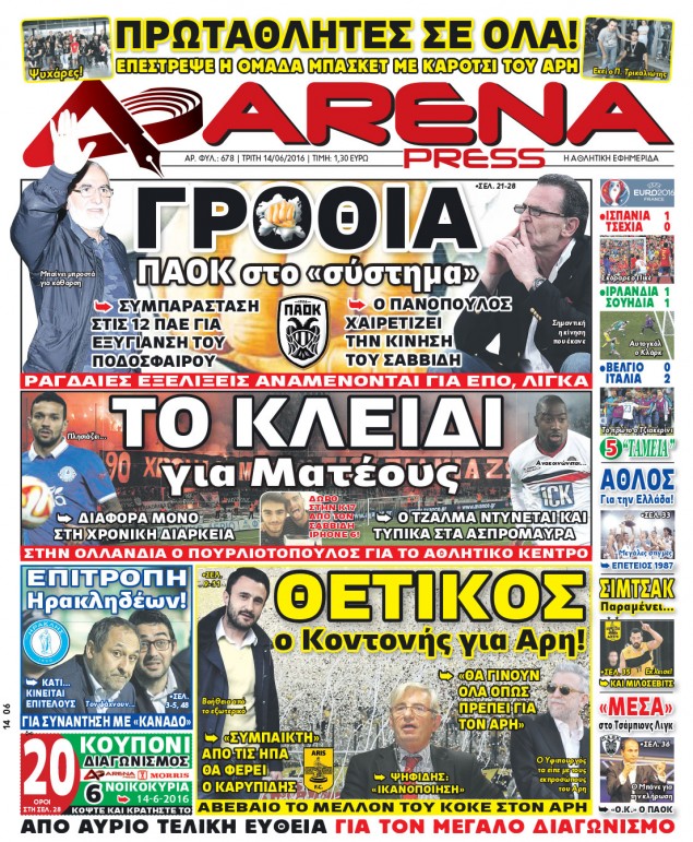 Οι αθλητικές εφημερίδες 14/6/2016 Enikos Newsroom 05:13, Τρίτη 14 Ιουνίου 2016 Media Διαβάστε τα σημερινά πρωτοσέλιδα των αθλητικών εφημερίδων: ΑΘΛΗΤΙΚΕΣ ΕΦΗΜΕΡΙΔΕΣ ΠΡΩΤΟΣΕΛΙΔΑ Μοιράσου το: σχολίασε κι εσύ (0 σχόλια) Ακολουθήστε το enikos.gr στο Google News και μάθετε πρώτοι όλες τις ειδήσεις Δείτε όλες τις τελευταίες ειδήσεις από την Ελλάδα και τον Κόσμο στο enikos.gr Ειδήσεις Ροή Ειδήσεων 4 ώρες πριν Αυξάνουν την πίεση προς την κυβέρνηση οι αγρότες: Κλείνουν παρακαμπτήριους και ανοίγουν διόδια – Τι θα γίνει τις γιορτές 3 ώρες πριν ΟΠΕΚΕΠΕ: Προφυλακιστέος ο φερόμενος αρχηγός και ο λογιστής της εγκληματικής οργάνωσης 4 ώρες πριν Φοινικούντα: Το Σάββατο απολογείται ο 30χρονος γιος γνωστού επιχειρηματία της Πλάκας που παραδόθηκε – Όσα είπε στους αστυνομικούς και ο ρόλος του στο έγκλημα 4 ώρες πριν Μπορεί ο Μαδούρο να αντέξει τον αποκλεισμό του Τραμπ; Τι θα χρειαστεί η Ουάσινγκτον για να τον ανατρέψει 2 ώρες πριν ΑΕΚ – Κραϊόβα 3-2: Επική ανατροπή και πρόκριση στους «16» του Conference League η Ένωση 4 ώρες πριν Αρχαιολόγοι ανακάλυψαν ρωμαϊκά τεχνουργήματα από μια πόλη που δεν υπήρξε ποτέ – Τα τρία εντυπωσιακά κτίρια και ο αμφορέας με τις… σαρδέλες 5 ώρες πριν Ύπνος: Η απλή βραδινή ρουτίνα για να προστατεύσετε τα μαλλιά σας από το κρύο κατά τη διάρκεια του χειμώνα 6 ώρες πριν Manifesting: Πώς να συναντήσετε τον σύντροφο της ζωής σας, ανάλογα με τον μήνα γέννησής σας 2 ημέρες πριν 20 χρόνια τα Χριστούγεννα ξεκινούν στα Public με μεγάλη ποικιλία σε δώρα! 15 λεπτά πριν Πόλεμος στην Ουκρανία: Ρωσικά drones έπληξαν την Οδησσό – Μία νεκρή και ζημιές σε ενεργειακές υποδομές 23 λεπτά πριν ΑΕΚ-Κραϊόβα: Τα highlights της μυθικής ανατροπής της «Ένωσης» 38 λεπτά πριν Μιχάλης Χρυσοχοΐδης από την Κωνσταντινούπολη: Κοινές επιχειρήσεις Ελλάδας – Τουρκίας ενάντια στο οργανωμένο έγκλημα 60 λεπτά πριν Μάρκο Νίκολιτς: «Είμαι περήφανος για τους παίκτες μου, όποιος αντίπαλος και να έρθει θα προετοιμαστούμε» 1 ώρα πριν ΟΗΕ: Την εκλογή του νέου ύπατου αρμοστή για τους Πρόσφυγες Μπαρχάμ Άχμεντ Σαλίχ χαιρέτησε ο Αντόνιο Γκουτέρες ENIKOS NETWORK Σε περίοδο αυξημένης δραστηριότητας η γρίπη στην Ελλάδα-Μέτρα προστασίας από τον ΕΟΔΥ Σκέφτεστε συνέχεια συζητήσεις που έχετε κάνει; Τι σημαίνει αυτό, σύμφωνα με ειδικό Στεγαστικό: Τι λέει η ΠΟΜΙΔΑ για τα νέα μέτρα που ανακοίνωσε ο Κυριάκος Μητσοτάκης Λαγκάρντ: Αισιόδοξη για την ανάπτυξη της Ευρωζώνης, αβέβαιη για τον πληθωρισμό Χαρτογραφώντας το «σημείο χωρίς επιστροφή»: Για πρώτη φορά αποκαλύπτεται με λεπτομέρεια το ακανθώδες όριο της ατμόσφαιρας τ... Η Google καταργεί τη λειτουργία «dark web report» – Πώς θα μπορούν οι χρήστες να διαγράφουν τα δεδομένα τους περισσότερα 17:45 , Πέμπτη 18 Δεκεμβρίου 2025 ROUK ZOUK: Εορταστικό επεισόδιο με καλεσμένους τους πρωταγωνιστές του «Γιατί ρε πατέρα» Το Σάββατο 20 Δεκεμβρίου στις 21:00, η Ζέτα Μακρυπούλια υποδέχεται εκλεκτούς ηθοποιούς που όλο... 17:20 , Πέμπτη 18 Δεκεμβρίου 2025 Άγιος έρωτας: Η Χριστίνα εξομολογείται στον πατέρα Νικόλαο, απόψε στις 21:00 στον Alpha Η Νότα αποφασίζει να εκδικηθεί τον Πέτρο και τον Στέφανο, για χάρη του Λούη, όμως τα πράγματα ... 16:50 , Πέμπτη 18 Δεκεμβρίου 2025 Να μ’ αγαπάς: Ζωή και Φωτεινή συμφιλιώνονται ως μάνα με κόρη, απόψε στις 20:00 Η ταυτότητα του Άγγελου αποκαλύπτεται στο νέο επεισόδιο της σειράς “Να μ’ αγαπάς... 15:52 , Πέμπτη 18 Δεκεμβρίου 2025 Το Σπίτι Δίπλα Στο Ποτάμι: Το καθηλωτικό τελευταίο επεισόδιο για το 2025 απόψε στις 22:30 Καθηλώνει το σημερινό επεισό