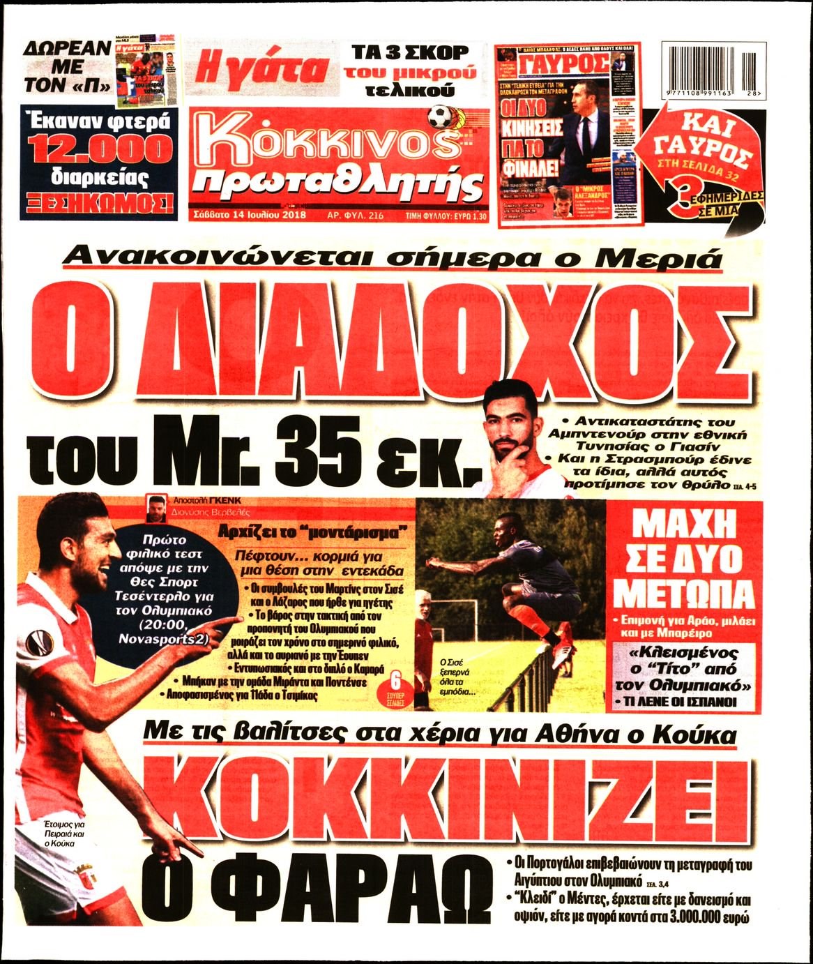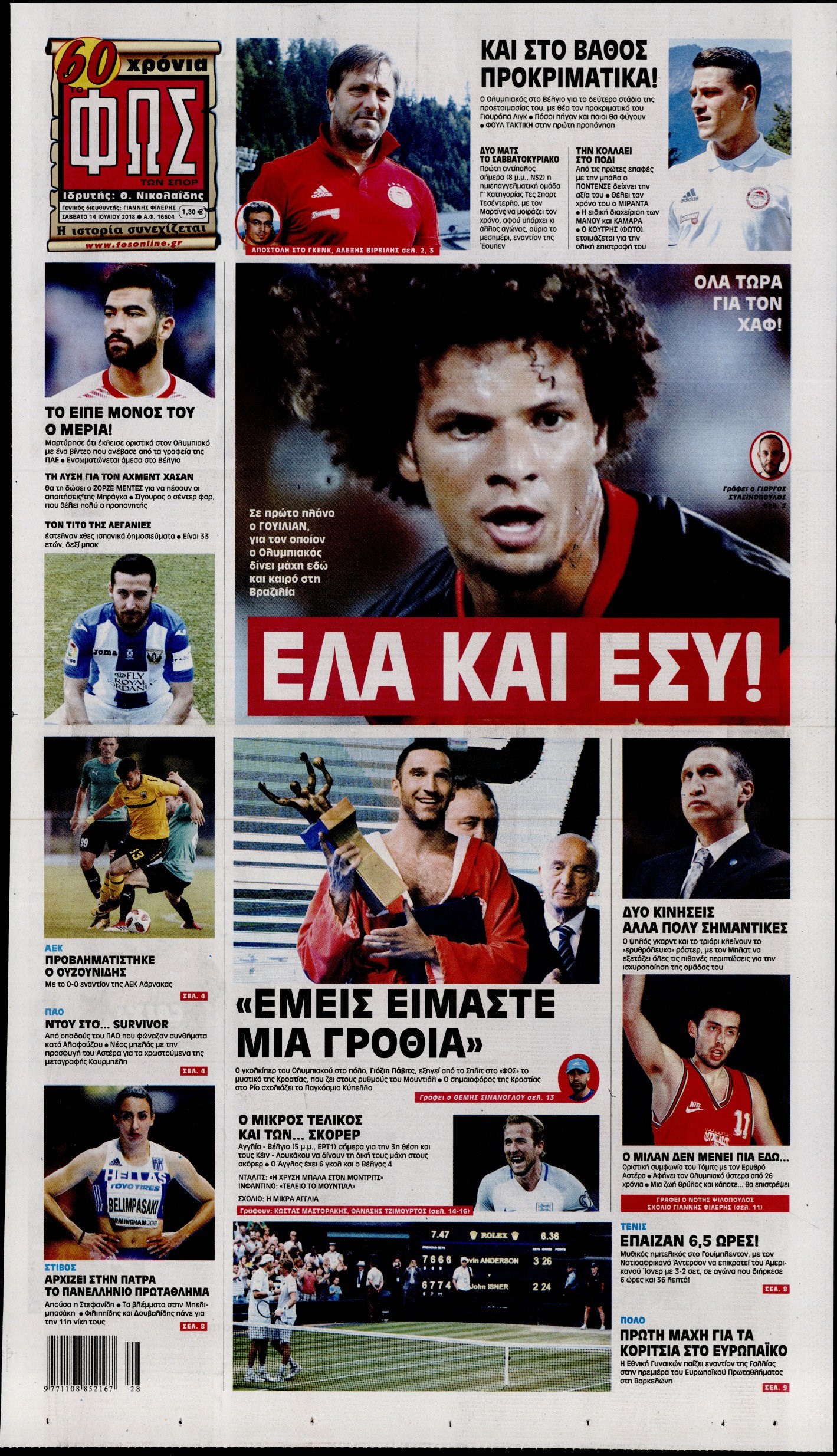 Οι αθλητικές εφημερίδες 14/7/2018 Enikos Newsroom 06:14, Σάββατο 14 Ιουλίου 2018 Media Διαβάστε τα σημερινά πρωτοσέλιδα των αθλητικών εφημερίδων. ΑΘΛΗΤΙΚΕΣ ΕΦΗΜΕΡΙΔΕΣ ΠΡΩΤΟΣΕΛΙΔΑ Μοιράσου το: σχολίασε κι εσύ (0 σχόλια) Ακολουθήστε το enikos.gr στο Google News και μάθετε πρώτοι όλες τις ειδήσεις Δείτε όλες τις τελευταίες ειδήσεις από την Ελλάδα και τον Κόσμο στο enikos.gr Ειδήσεις Ροή Ειδήσεων 4 ώρες πριν Από το Ορμένιο ως τα Μάλγαρα κι από τη Σιάτιστα μέχρι τη Νίκαια: Μπλόκα σε όλη την Ελλάδα – Το Σάββατο ανοίγουν τα διόδια οι αγρότες 1 ώρα πριν Εμπλοκή και αερομαχίες με οπλισμένα τουρκικά F-16 στο Αιγαίο 3 ώρες πριν Αττική: Θρίλερ με νεκρό βρέφος 5 μηνών – Κοιμόταν στο ίδιο κρεβάτι με τους γονείς του 60 λεπτά πριν Πούτιν: «Ναι, είμαι ερωτευμένος» – Βίντεο από τη σπάνια προσωπική παραδοχή του 3 ώρες πριν Μεσόγειος: Η διαδρομή του ρωσικού τάνκερ «Qendil» και η στοχευμένη επίθεση της Ουκρανίας με drone – Ο Πούτιν προειδοποίησε για αντίποινα 5 ώρες πριν Τα 5 ζώδια που ευνοούνται στην ερωτική ζωή τους την επόμενη εβδομάδα – «Η ενέργεια του Αιγόκερου φέρνει αγάπη και σταθερότητα» 6 ώρες πριν Αυτό το έξυπνο μαθηματικό κόλπο θα μπορούσε να αλλάξει τον τρόπο με τον οποίο οι επιστήμονες μελετούν τους σεισμούς 2 ώρες πριν Μήπως έχετε χάσει τον εαυτό σας στη σχέση σας; 7 «αθόρυβες» υποχωρήσεις που μάλλον κάνατε, χωρίς να το συνειδητοποιήσετε 4 ώρες πριν Κουίζ για την παλιά Αθήνα: Αναγνωρίζετε την περιοχή; Έχετε περάσει 100% από εκεί 7 λεπτά πριν Μπαράκ Ομπάμα: Τα βιβλία, οι ταινίες και τα τραγούδια που ξεχώρισε το 2025 – Πλήρης λίστα 11 λεπτά πριν Don’t Forget The Lyrics: Η Έλλη Κοκκίνου υποδέχεται 4 παίκτες που θα κάνουν τα πάντα για να μη χάσουν ούτε… μισή λέξη από τους στίχους 17 λεπτά πριν Πλεύρης στον ΑΝΤ1: Η βασική πολιτική που ψηφίστηκε από τους υπουργούς Μετανάστευσης είναι η δημιουργία κέντρων κράτησης μεταναστών στην Αφρική – ΒΙΝΤΕΟ 22 λεπτά πριν Η εξομολόγηση της Νίκης Σερέτη: «Δεν κρύβω ότι ήταν πάρα πολύ δύσκολο όλο αυτό που βίωσα» 27 λεπτά πριν Αγρότες: Κλειστό ξανά το ρεύμα εισόδου στα Μάλγαρα – Άνοιξαν τον κόμβο της Χαλκηδόνας ENIKOS NETWORK Έχετε πραγματικά μεγάλη καρδιά; 10 χαρακτηριστικά όσων έχουν καλοσύνη «Η σούπερ» γρίπη εξαπλώνεται στην Ευρώπη-Στοιχεία από το ECDC για την αποτελεσματικότητα του εμβολίου Επίδομα παιδιού: Πότε ανοίγει ξανά η πλατφόρμα για τις αιτήσεις Προκήρυξη ΑΣΕΠ για 397 μόνιμες προσλήψεις στο Δημόσιο: Βγήκαν τα προσωρινά αποτελέσματα – Πότε αρχίζει η υποβολή ενστάσεων Χαρτογραφώντας το «σημείο χωρίς επιστροφή»: Για πρώτη φορά αποκαλύπτεται με λεπτομέρεια το ακανθώδες όριο της ατμόσφαιρας τ... Η Google καταργεί τη λειτουργία «dark web report» – Πώς θα μπορούν οι χρήστες να διαγράφουν τα δεδομένα τους περισσότερα 20:37 , Παρασκευή 19 Δεκεμβρίου 2025 Don’t Forget The Lyrics: Η Έλλη Κοκκίνου υποδέχεται 4 παίκτες που θα κάνουν τα πάντα για να μη χάσουν ούτε… μισή λέξη από τους στίχους Το «Don’t Forget The Lyrics» επιστρέφει απόψε, Παρασκευή 19 Δεκεμβρίου, στις 21:00 με νέο επει... 19:31 , Παρασκευή 19 Δεκεμβρίου 2025 GNTM: Απόψε ο μεγάλος τελικός για τους 4 φιναλίστ Έπειτα από μήνες γεμάτους μόδα, δημιουργία και έντονες αναμετρήσεις, το GNTM 2025 κορυφώνεται,... 18:11 , Παρασκευή 19 Δεκεμβρίου 2025 Το σόι σου: Ο Άρης έρχεται στην Ελλάδα για τις γιορτές των Χριστουγέννων – Τι θα δούμε στο αποψινό εορταστικό επεισόδιο Ένα απολαυστικό, εορταστικό επεισόδιο της σειράς “Το σόι σου”, γεμάτο ευτράπελα αλ... 15:15 , Παρασκευή 19 Δεκεμβρίου 2025 Την Κυρια