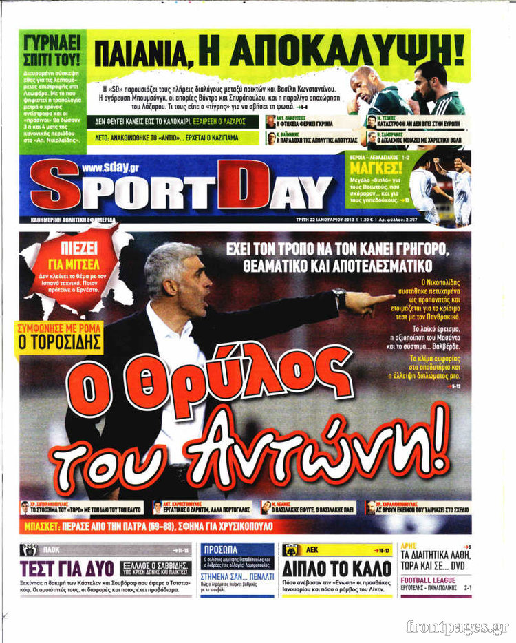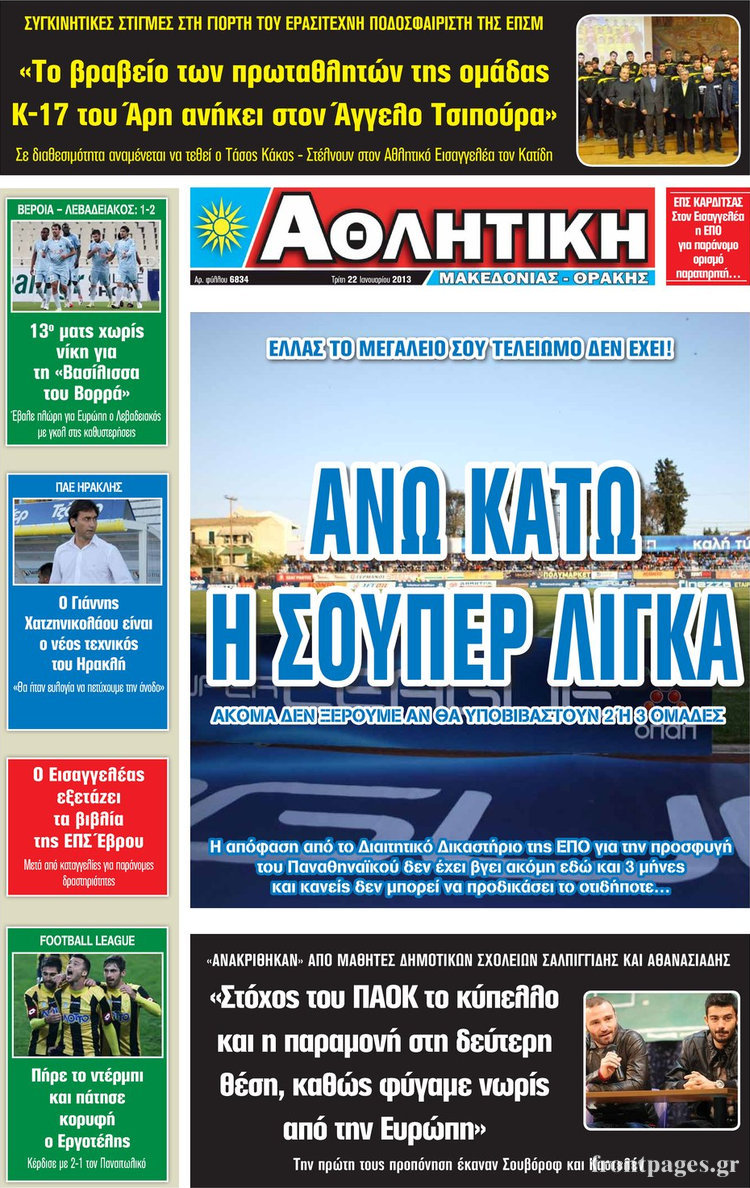 Οι αθλητικές εφημερίδες Enikos Newsroom 09:17, Τρίτη 22 Ιανουαρίου 2013 Media Οι αθλητικές εφημερίδες ΑΘΛΗΤΙΚΑ ΑΘΛΗΤΙΚΕΣ ΕΦΗΜΕΡΙΔΕΣ ΕΦΗΜΕΡΙΔΕΣ ΠΡΩΤΟΣΕΛΙΔΑ Μοιράσου το: σχολίασε κι εσύ (0 σχόλια) Ακολουθήστε το enikos.gr στο Google News και μάθετε πρώτοι όλες τις ειδήσεις Δείτε όλες τις τελευταίες ειδήσεις από την Ελλάδα και τον Κόσμο στο enikos.gr Ειδήσεις Ροή Ειδήσεων 3 ώρες πριν Ακίλα Σάλεχ: «Άκυρο» το τουρκολιβυκό μνημόνιο λέει ο πρόεδρος της λιβυκής Βουλής – Ανοίγει ο διάλογος με Ελλάδα, Αίγυπτο και Τουρκία 7 ώρες πριν Αγρότες: Την Τρίτη η απόφαση για διάλογο ή κλιμάκωση των κινητοποιήσεών τους – Πώς χαρακτηρίζουν τις ανακοινώσεις Τσιάρα και οι επόμενες κινήσεις 7 ώρες πριν Τραμπ για Ουκρανία: «Είμαστε πιο κοντά σε συμφωνία από ποτέ» – «Πολυεθνική δύναμη» προτείνουν οι Ευρωπαίοι 7 ώρες πριν Κυψέλη: Η 16χρονη που μαχαίρωσε την 14χρονη είχε συλληφθεί 3 φορές στο παρελθόν – Έβριζε καθηγητές, έβαζε φωτιές σε κάδους και εκβίαζε συμμαθητές της 6 ώρες πριν Τρομοκρατική επίθεση στο Σίδνεϊ: Θλίψη για τα 15 θύματα – Οργή στην εβραϊκή κοινότητα που προειδοποιούσε επί δύο χρόνια 7 ώρες πριν Επιστήμονες ίσως έλυσαν το μυστήριο γύρω από τα Χόμπιτ – Νέα έρευνα αποκαλύπτει πώς εξαφανίστηκαν 8 ώρες πριν Ύπνος: Η αρχαία μορφή άσκησης που αποδεικνύεται αποτελεσματική στην αντιμετώπιση της αϋπνίας, σύμφωνα με μελέτη 9 ώρες πριν Αριθμολογία: Ο τυχερός σας αριθμός, ανάλογα με τον μήνα γέννησής σας 10 ώρες πριν Πώς να μην μαραίνονται γρήγορα τα κομμένα λουλούδια: Το λάθος στην τοποθέτηση του βάζου που πρέπει να αποφεύγετε 3 λεπτά πριν Οι αθλητικές εφημερίδες 16/12/2025 8 λεπτά πριν Οι πολιτικές εφημερίδες 16/12/2025 16 λεπτά πριν Τα ζώδια σήμερα, Τρίτη 16 Δεκεμβρίου: Ιχθύες, δεν χρειάζεται να έχετε όλες τις απαντήσεις 24 λεπτά πριν Εφημερεύοντα φαρμακεία σε Αθήνα και Θεσσαλονίκη (16/12) 31 λεπτά πριν Οκτώ νεκροί σε πλήγματα των ΗΠΑ κατά τριών σκαφών που φέρεται να μετέφεραν ναρκωτικά στον Ανατολικό Ειρηνικό ENIKOS NETWORK Πότε το χρόνιο ροχαλητό να αποτελέσει ένδειξη κινδύνου για την καρδιά; Τι λένε οι ειδικοί Μάριος Θεμιστοκλέους: Το ΕΣΥ ενισχύεται, εκσυγχρονίζεται, αλλάζει ΕΒΕΠ για αγροτικές κινητοποιήσεις: Κάθε επιπλέον εβδομάδα προσθέτει περίπου 200 εκατ. ευρώ ζημιά Τι προβλέπει το νομοσχέδιο του υπουργείου Εθνικής Άμυνας – Oι αλλαγές στους μισθούς Σύγχρονος Νοστράδαμος: Προειδοποιεί για «μεγάλο γεγονός» τους επόμενους μήνες που θα συγκλονίσει τη Βρετανία και τον κόσμο Τεστ παρατηρητικότητας: Μπορείτε να βρείτε τις 3 διαφορές στις εικόνες με έναν πιγκουίνο σε 14 δευτερόλεπτα περισσότερα 05:43 , Τρίτη 16 Δεκεμβρίου 2025 Οι αθλητικές εφημερίδες 16/12/2025 Διαβάστε τα πρωτοσέλιδα από τις αθλητικές εφημερίδες, σήμερα 16/12/2025. 05:38 , Τρίτη 16 Δεκεμβρίου 2025 Οι πολιτικές εφημερίδες 16/12/2025 Διαβάστε τα πρωτοσέλιδα από τις πολιτικές εφημερίδες, σήμερα 16/12/2025. 21:35 , Δευτέρα 15 Δεκεμβρίου 2025 Το Σπίτι Δίπλα Στο Ποτάμι: Η Ιουλία και ο Φωκάς μετακομίζουν στη Ρόδο – Δύο νέοι χαρακτήρες μπαίνουν στη σειρά Δύο νέοι, κομβικοί χαρακτήρες κάνουν την εμφάνισή τους αυτή την εβδομάδα στην αγαπημένη σειρά ... 19:46 , Δευτέρα 15 Δεκεμβρίου 2025 Άγιος έρωτας: Η Χριστίνα λέει την αλήθεια στον Αντρέα Ο Βασίλης δέχεται επίθεση από τους συμμαθητές του, η Αναστασία είναι συντετριμμένη με την απώλ... ΤΕΛΕΥΤΑΙΕΣ ΕΙΔΗΣΕΙΣ 3 λεπτά πριν Οι αθλητικές εφημερίδες 16/12/2025 8 λεπτά πριν Οι πολιτικές εφημερίδες 16/12/2025 16 λεπτά πριν Τα ζώδια σήμερα, Τρίτη 16 Δεκεμβρίου: Ιχθ