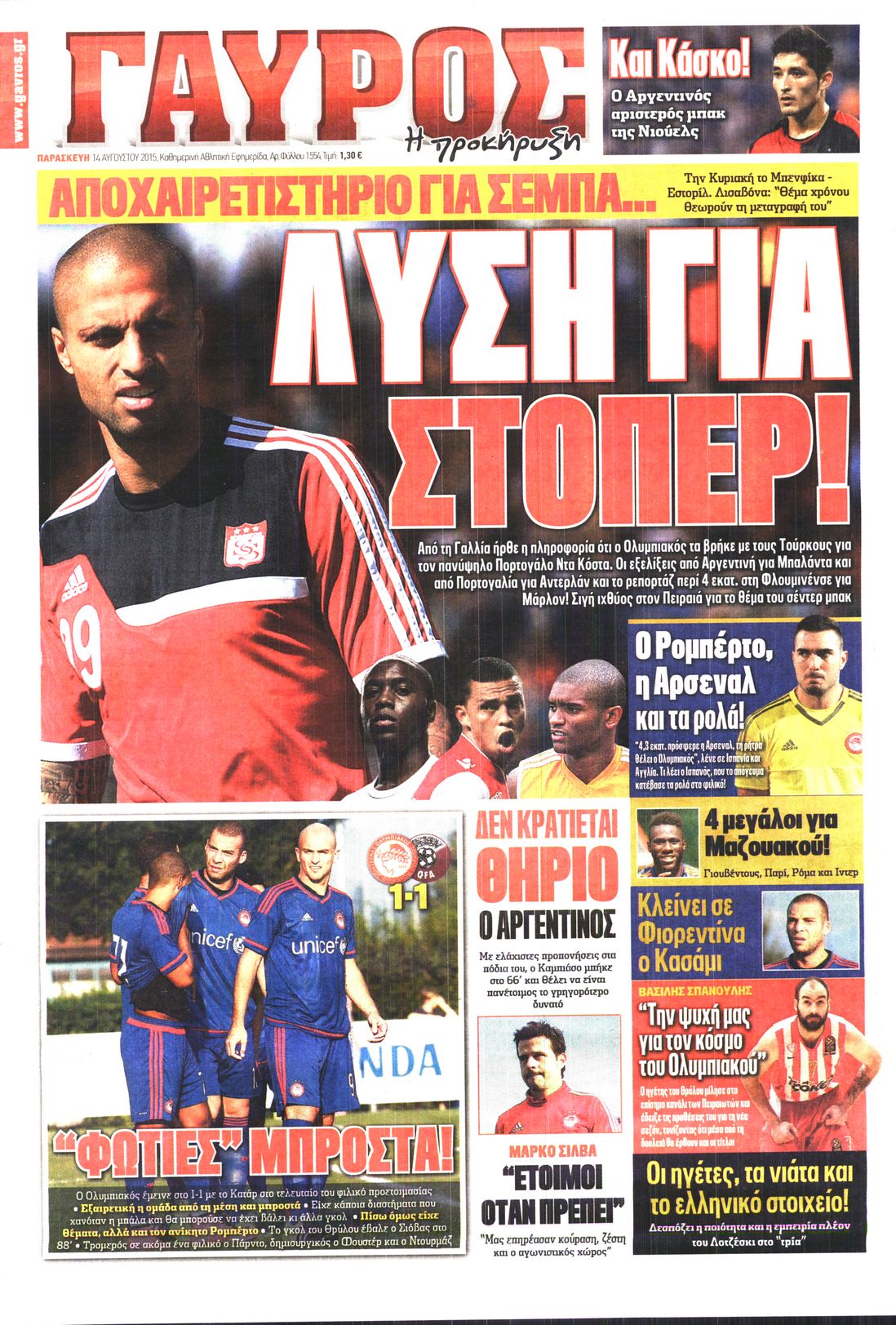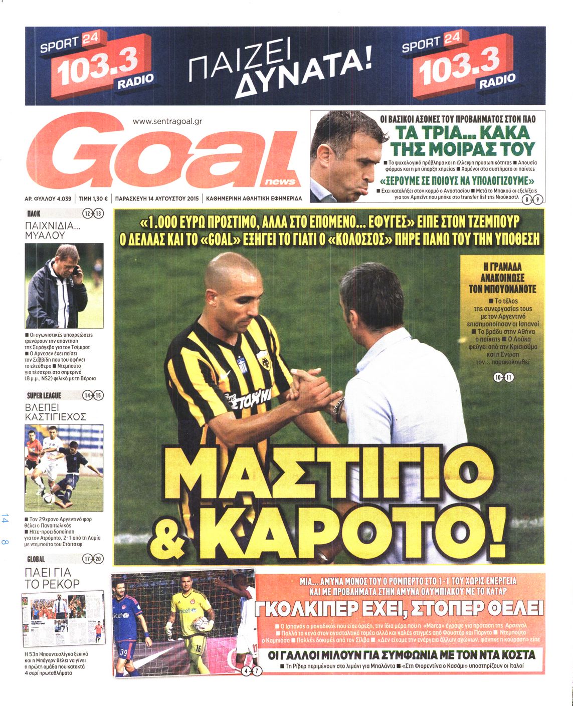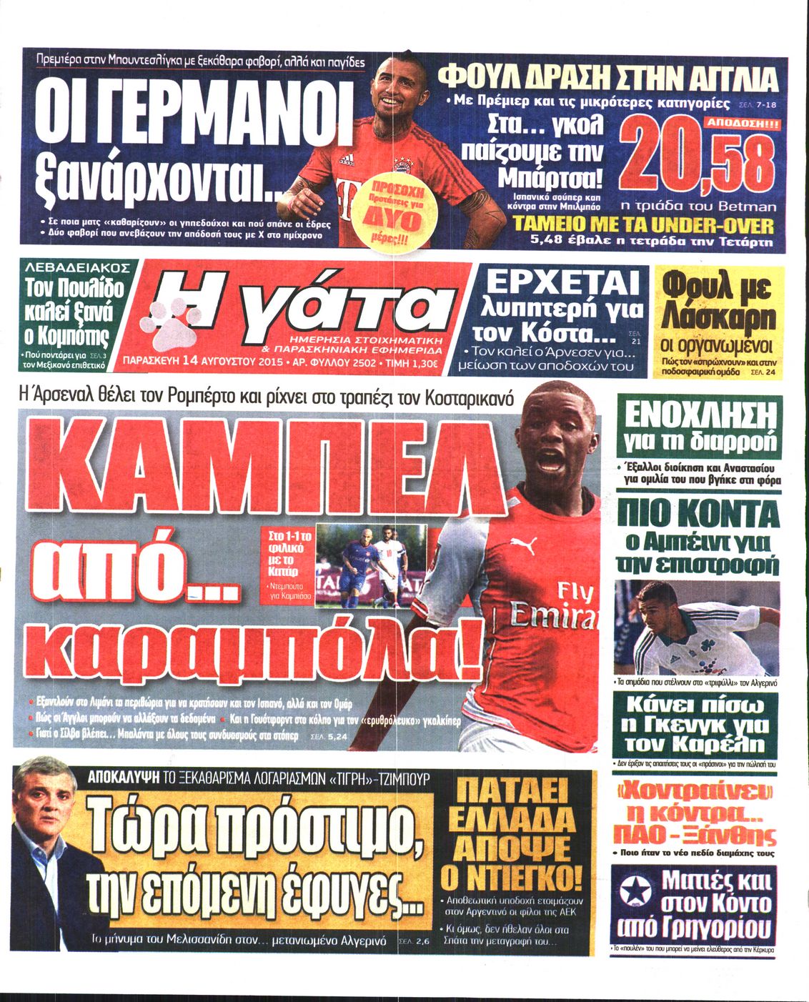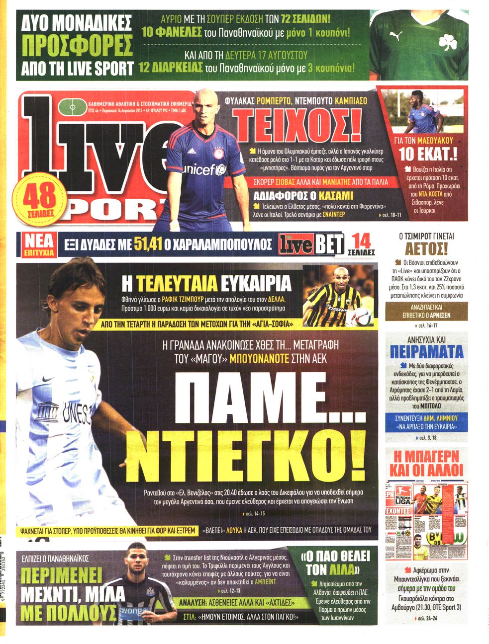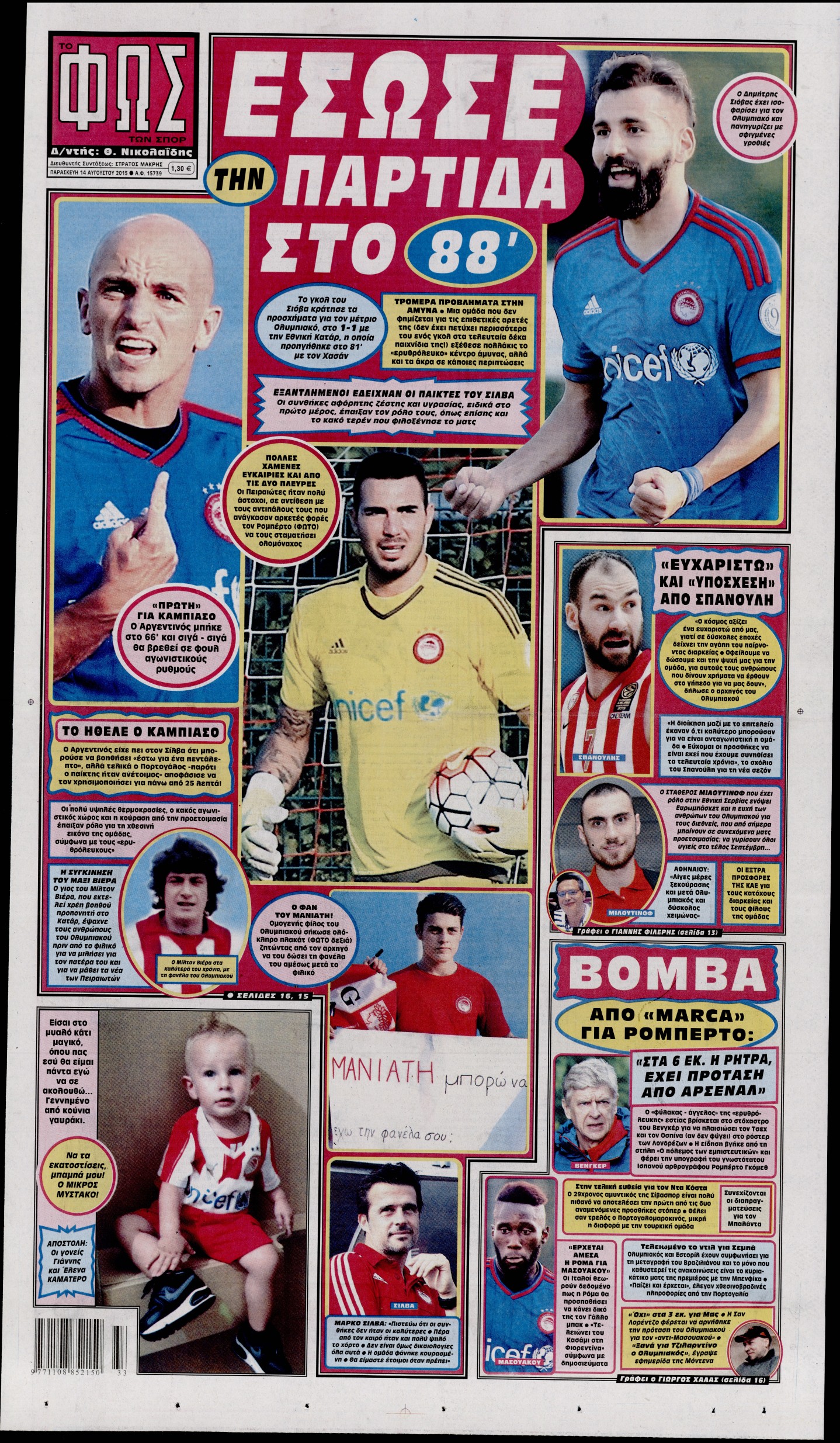 Οι αθλητικές εφημερίδες 14/8/2015 Enikos Newsroom 07:21, Παρασκευή 14 Αυγούστου 2015 Media Διαβάστε τα σημερινά πρωτοσέλιδα των αθλητικών εφημερίδων: ΑΘΛΗΤΙΚΕΣ ΕΦΗΜΕΡΙΔΕΣ ΠΡΩΤΟΣΕΛΙΔΑ Μοιράσου το: σχολίασε κι εσύ (0 σχόλια) Ακολουθήστε το enikos.gr στο Google News και μάθετε πρώτοι όλες τις ειδήσεις Δείτε όλες τις τελευταίες ειδήσεις από την Ελλάδα και τον Κόσμο στο enikos.gr Ειδήσεις Ροή Ειδήσεων 2 ώρες πριν Χριστούγεννα στα μπλόκα: Επιμένουν στις κινητοποιήσεις τους οι αγρότες – Ανοίγουν τα διόδια το Σαββατοκύριακο 2 ώρες πριν Ουκρανία: Η άνευ προηγουμένου επίθεση σε ρωσικό τάνκερ στη Μεσόγειο και το μήνυμα προς στον Πούτιν – Το «μακρύ χέρι» του Κιέβου 2 ώρες πριν Πούτιν: Τα μηνύματα σε Ευρώπη και ΝΑΤΟ από το μαραθώνιο «σόου» του – Η απαίτηση για «σεβασμό» και η ειρήνη «με τους όρους» της Μόσχας 2 ώρες πριν Τραμπ: Δεν αποκλείει την πιθανότητα ενός πολέμου στη Βενεζουέλα – «Ο Μαδούρο ξέρει καλύτερα από τον καθένα τι ακριβώς θέλω» 3 ώρες πριν Συνεχίζει να προκαλεί ο Μίτσκοσκι: «Για μένα το όνομα Μακεδονία είναι ιερό» 2 ώρες πριν Ανακαλύφθηκαν αρχαία χρυσά νομίσματα 2.200 ετών που απεικονίζουν τον θεό Απόλλωνα – Η άγνωστη σύνδεση με τον Φίλιππο Β΄ της Μακεδονίας 3 ώρες πριν Ύπνος: Μια κρυφή κατάσταση του εγκεφάλου πριν από τον ύπνο μπορεί να είναι το “κλειδί” για υψηλή ευφυΐα και δημιουργικότητα 4 ώρες πριν Αριθμολογία: Οι άνθρωποι που έχουν γεννηθεί αυτές τις 4 ημερομηνίες, συχνά παρεξηγούνται – «Η καλοσύνη τους κρύβει τεράστια δύναμη» 5 ώρες πριν Ξεχάστε το καθάρισμα το Σαββατοκύριακο: Ο «κανόνας των 20 λεπτών» που θα σας λύσει τα χέρια 12 λεπτά πριν Φαίη Σκορδά: «Παλιότερα τα κομπλιμέντα τα προσπερνούσα, τώρα τα έχω ανάγκη» 27 λεπτά πριν Βασίλης Σπανούλης: Δεν εμφανίστηκε ούτε ένας δημοσιογράφος στην συνέντευξη Τύπου – «Καλησπέρα στον… κανέναν», δείτε βίντεο 39 λεπτά πριν Πόλεμος στην Ουκρανία: Εφτά νεκροί από ρωσική πυραυλική επίθεση στο λιμάνι της Οδησσού 42 λεπτά πριν ΗΠΑ: Η κυβέρνηση του Ντόναλντ Τραμπ άρχισε να δημοσιοποιεί τα αρχεία Έπσταϊν 54 λεπτά πριν Σάμος: Άνοιξε το μπλόκο των αγροτών στον κόμβο Κοκκαρίου – Σε νέα συνεδρίαση θα καθορίσουν την στάση τους ENIKOS NETWORK Το ΕΚΑΒ τιμήθηκε από την Ακαδημία Αθηνών για τα 40 χρόνια προσφοράς του Έχετε πραγματικά μεγάλη καρδιά; 10 χαρακτηριστικά όσων έχουν καλοσύνη Αναστολή μέτρων αναγκαστικής εκτέλεσης για κτηνοτρόφους που πλήττονται από την ευλογιά των αιγοπροβάτων Πλήρης επάρκεια προϊόντων στις λαϊκές της Αττικής, παρά τις αγροτικές κινητοποιήσεις – Τι απαντούν οι πωλητές Χαρτογραφώντας το «σημείο χωρίς επιστροφή»: Για πρώτη φορά αποκαλύπτεται με λεπτομέρεια το ακανθώδες όριο της ατμόσφαιρας τ... Η Google καταργεί τη λειτουργία «dark web report» – Πώς θα μπορούν οι χρήστες να διαγράφουν τα δεδομένα τους περισσότερα 22:42 , Παρασκευή 19 Δεκεμβρίου 2025 Γιώργος Γιαννόπουλος για “Το σόι σου”: “Είναι ευτυχία και ευλογία αυτή η σειρά” «Είναι ευτυχία και ευλογία η συγκυρία αυτής της σειράς», θα πει ο Γιώργος Γιαννόπουλος -ο αγαπ... 20:37 , Παρασκευή 19 Δεκεμβρίου 2025 Don’t Forget The Lyrics: Η Έλλη Κοκκίνου υποδέχεται 4 παίκτες που θα κάνουν τα πάντα για να μη χάσουν ούτε… μισή λέξη από τους στίχους Το «Don’t Forget The Lyrics» επιστρέφει απόψε, Παρασκευή 19 Δεκεμβρίου, στις 21:00 με νέο επει... 19:31 , Παρασκευή 19 Δεκεμβρίου 2025 GNTM: Απόψε ο μεγάλος τελικός για τους 4 φιναλίστ Έπειτα από μήνες γεμάτους μόδα, δημιουργία και έντονες αναμετρήσεις, το GNTM 2025 κορυφώνεται,... 18:11 , 