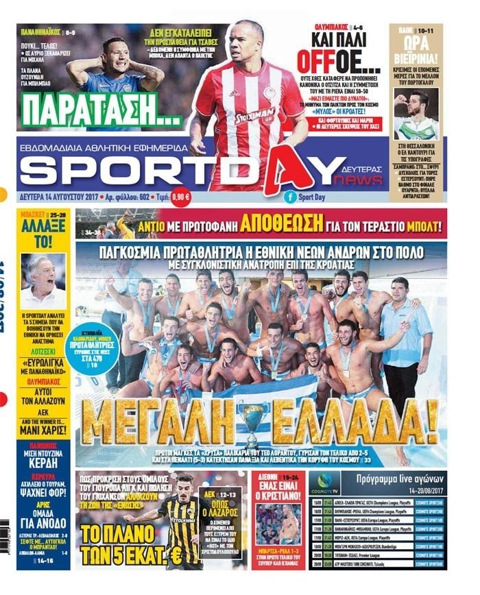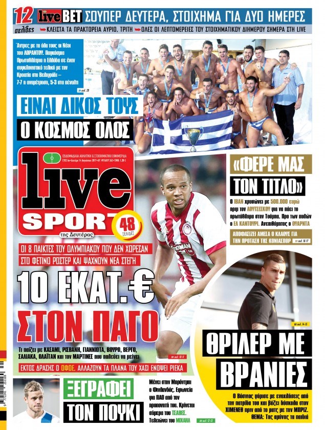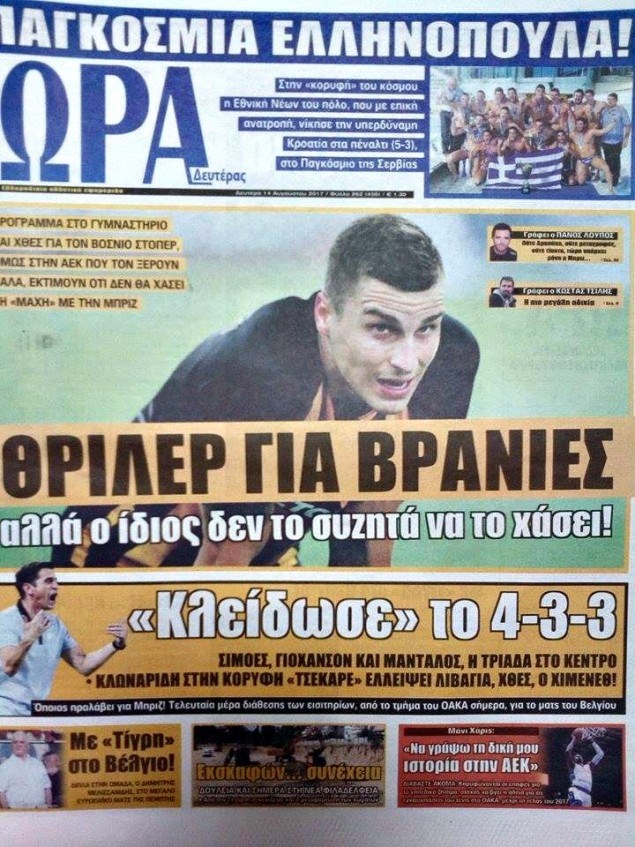 Οι αθλητικές εφημερίδες 14/8/2017 Κώστας Τεό 06:39, Δευτέρα 14 Αυγούστου 2017 Media Διαβάστε τα σημερινά πρωτοσέλιδα των αθλητικών εφημερίδων: ΑΘΛΗΤΙΚΕΣ ΕΦΗΜΕΡΙΔΕΣ ΠΡΩΤΟΣΕΛΙΔΑ Μοιράσου το: σχολίασε κι εσύ (0 σχόλια) Ακολουθήστε το enikos.gr στο Google News και μάθετε πρώτοι όλες τις ειδήσεις Δείτε όλες τις τελευταίες ειδήσεις από την Ελλάδα και τον Κόσμο στο enikos.gr Ειδήσεις Ροή Ειδήσεων 1 ώρα πριν Μεσόγειος: Η διαδρομή του ρωσικού τάνκερ «Qendil» και η στοχευμένη επίθεση της Ουκρανίας με drone – Ο Πούτιν προειδοποίησε για αντίποινα 1 ώρα πριν Αττική: Θρίλερ με νεκρό βρέφος 5 μηνών – Κοιμόταν στο ίδιο κρεβάτι με τους γονείς του 2 ώρες πριν Από το Ορμένιο ως τα Μάλγαρα κι από τη Σιάτιστα μέχρι τη Νίκαια: Μπλόκα σε όλη την Ελλάδα – Το Σάββατο ανοίγουν τα διόδια οι αγρότες 2 ώρες πριν «Έλληνας Εσκομπάρ»: Φωτογραφίες με τους 4 τόνους κοκαΐνης που κατασχέθηκαν από το σκάφος «Ουρανία» 4 ώρες πριν Πούτιν: Σαρκαστικά μηνύματα, παράπονα και απρόοπτα στη συνέντευξη Τύπου – Η πρόταση γάμου on air και οι ερωτήσεις για τα αγγούρια και τους… εξωγήινους 3 ώρες πριν Τα 5 ζώδια που ευνοούνται στην ερωτική ζωή τους την επόμενη εβδομάδα – «Η ενέργεια του Αιγόκερου φέρνει αγάπη και σταθερότητα» 7 ώρες πριν Ειδικός μοιράζεται 6 κόλπα για να διατηρείστε σε φόρμα με πάνω από 40 ώρες εργασίας την εβδομάδα: «Προπονηθείτε πριν από τη δουλειά, όχι μετά» 4 ώρες πριν Αυτό το έξυπνο μαθηματικό κόλπο θα μπορούσε να αλλάξει τον τρόπο με τον οποίο οι επιστήμονες μελετούν τους σεισμούς 2 ώρες πριν Κουίζ για την παλιά Αθήνα: Αναγνωρίζετε την περιοχή; Έχετε περάσει 100% από εκεί 5 λεπτά πριν ΗΠΑ: Νέος γύρος συνομιλιών στο Μαϊάμι – Σήμερα συνάντηση Γουίτκοφ με Ουκρανούς και Ευρωπαίους διαπραγματευτές, το Σαββατοκύριακο με Ρώσους αξιωματούχους 10 λεπτά πριν Νέα σειρά γραμματοσήμων «ΕΛΠΙΔΑ-Μαριάννα Β. Βαρδινογιάννη» 14 λεπτά πριν Ιταλία: Με εισιτήριο από την 1η Φεβρουαρίου 2026 η πρόσβαση στη Φοντάνα ντι Τρέβι – Πόσο θα κοστίζει 22 λεπτά πριν Μήπως έχετε χάσει τον εαυτό σας στη σχέση σας; 7 «αθόρυβες» υποχωρήσεις που μάλλον κάνατε, χωρίς να το συνειδητοποιήσετε 28 λεπτά πριν Λάρισα: Ασθενοφόρο έπεσε πάνω σε κλούβα της ΕΛ.ΑΣ στον Πλατύκαμπο – Τραυματίστηκε ο συνοδηγός – ΒΙΝΤΕΟ ENIKOS NETWORK «Η σούπερ» γρίπη εξαπλώνεται στην Ευρώπη-Στοιχεία από το ECDC για την αποτελεσματικότητα του εμβολίου ΕΛΣΤΑΤ: Αύξηση κατά 1,7% των επαγγελματιών υγείας το 2024 Προκήρυξη ΑΣΕΠ για 397 μόνιμες προσλήψεις στο Δημόσιο: Βγήκαν τα προσωρινά αποτελέσματα – Πότε αρχίζει η υποβολή ενστάσεων Η απάντηση της κυβέρνησης στα αιτήματα των αγροτών: 16 έχουν ικανοποιηθεί, 4 βρίσκονται υπό επεξεργασία και 7 δεν είναι εφι... Χαρτογραφώντας το «σημείο χωρίς επιστροφή»: Για πρώτη φορά αποκαλύπτεται με λεπτομέρεια το ακανθώδες όριο της ατμόσφαιρας τ... Η Google καταργεί τη λειτουργία «dark web report» – Πώς θα μπορούν οι χρήστες να διαγράφουν τα δεδομένα τους περισσότερα 18:11 , Παρασκευή 19 Δεκεμβρίου 2025 Το σόι σου: Ο Άρης έρχεται στην Ελλάδα για τις γιορτές των Χριστουγέννων – Τι θα δούμε στο αποψινό εορταστικό επεισόδιο Ένα απολαυστικό, εορταστικό επεισόδιο της σειράς “Το σόι σου”, γεμάτο ευτράπελα αλ... 15:15 , Παρασκευή 19 Δεκεμβρίου 2025 Την Κυριακή με τη Realnews: Ό,τι και αν αγοράσεις, σκανάρεις και κερδίζεις! Την Κυριακή με τη Realnews: Ό,τι και αν αγοράσεις, σκανάρεις και κερδίζεις! Με το PADU app, το... 08:00 , Παρασκευή 19 Δεκεμβρίου 2025 Την Κυριακή με τη Realnews: Δωροεπιταγή 10€ Δωροεπιταγή αξίας 