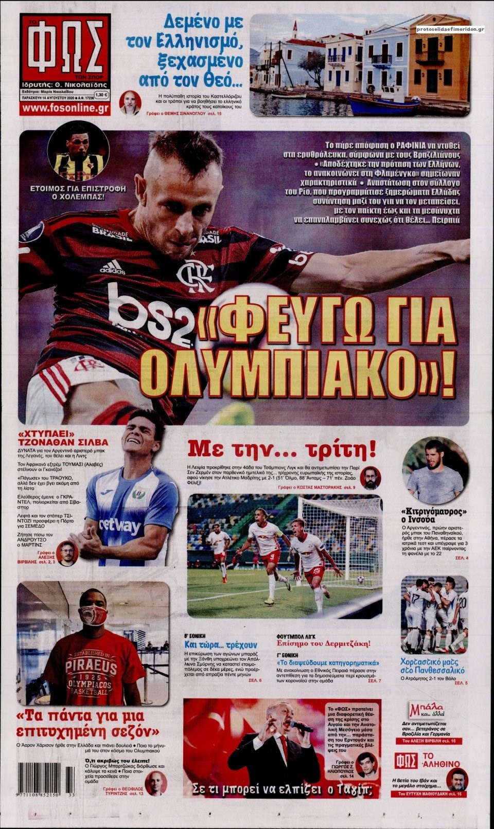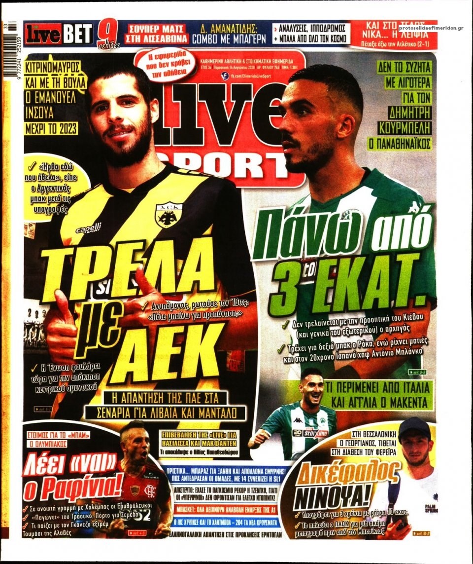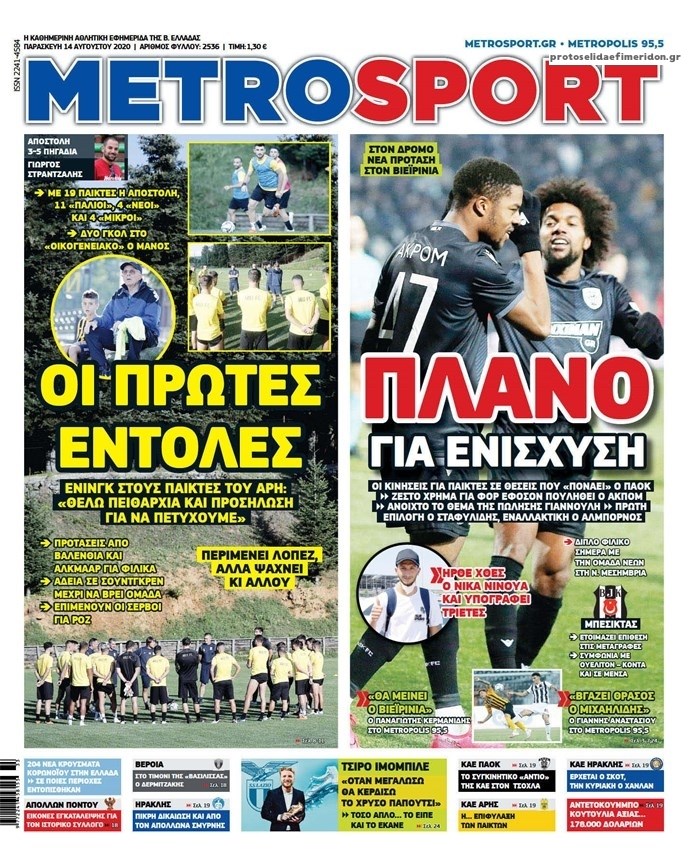 Οι αθλητικές εφημερίδες 14/8/2020 Σήφης Γαρυφαλάκης 06:20, Παρασκευή 14 Αυγούστου 2020 Media Διαβάστε τα πρωτοσέλιδα των αθλητικών εφημερίδων… ΑΘΛΗΤΙΚΕΣ ΕΦΗΜΕΡΙΔΕΣ ΕΦΗΜΕΡΙΔΕΣ ΠΡΩΤΟΣΕΛΙΔΑ ΠΡΩΤΟΣΕΛΙΔΑ ΕΦΗΜΕΡΙΔΩΝ Μοιράσου το: σχολίασε κι εσύ (0 σχόλια) Ακολουθήστε το enikos.gr στο Google News και μάθετε πρώτοι όλες τις ειδήσεις Δείτε όλες τις τελευταίες ειδήσεις από την Ελλάδα και τον Κόσμο στο enikos.gr Ειδήσεις Ροή Ειδήσεων 3 ώρες πριν Αυξάνουν την πίεση προς την κυβέρνηση οι αγρότες: Κλείνουν παρακαμπτήριους και ανοίγουν διόδια – Τι θα γίνει τις γιορτές 1 ώρα πριν ΟΠΕΚΕΠΕ: Προφυλακιστέος ο φερόμενος αρχηγός και ο λογιστής της εγκληματικής οργάνωσης 2 ώρες πριν Φοινικούντα: Το Σάββατο απολογείται ο 30χρονος γιος γνωστού επιχειρηματία της Πλάκας που παραδόθηκε – Όσα είπε στους αστυνομικούς και ο ρόλος του στο έγκλημα 2 ώρες πριν Μπορεί ο Μαδούρο να αντέξει τον αποκλεισμό του Τραμπ; Τι θα χρειαστεί η Ουάσινγκτον για να τον ανατρέψει 4 ώρες πριν Πρίγκιπας Ουίλιαμ – Κέιτ: Η νέα οικογενειακή φωτογραφία για τις Χριστουγεννιάτικες κάρτες του 2025 3 ώρες πριν Ύπνος: Η απλή βραδινή ρουτίνα για να προστατεύσετε τα μαλλιά σας από το κρύο κατά τη διάρκεια του χειμώνα 4 ώρες πριν Manifesting: Πώς να συναντήσετε τον σύντροφο της ζωής σας, ανάλογα με τον μήνα γέννησής σας 2 ημέρες πριν 20 χρόνια τα Χριστούγεννα ξεκινούν στα Public με μεγάλη ποικιλία σε δώρα! 2 ώρες πριν Αρχαιολόγοι ανακάλυψαν ρωμαϊκά τεχνουργήματα από μια πόλη που δεν υπήρξε ποτέ – Τα τρία εντυπωσιακά κτίρια και ο αμφορέας με τις… σαρδέλες 3 λεπτά πριν Νέος πρέσβης της Μεγάλης Βρετανίας στις ΗΠΑ ο Κρίστιαν Τέρνερ 7 λεπτά πριν Conference League: Με Νόα, Ντρίτα, Άλκμααρ ή Τσέλιε στους «16» η ΑΕΚ 16 λεπτά πριν Conference League: Απευθείας στους «16» η ΑΕΚ Λάρνακας και η Ρακόβ των Σβάρνα και Κωνσταντόπουλου – Τα αποτελέσματα και η βαθμολογία, 3η η ΑΕΚ 25 λεπτά πριν Σε ομάδες που συνδέονται με το ρωσικό κράτος αποδίδει η Δανία δύο κυβερνοεπιθέσεις που δέχθηκε 40 λεπτά πριν Βαθμολογία UEFA: Η Πολωνία προσπέρασε την Ελλάδα ENIKOS NETWORK Σε περίοδο αυξημένης δραστηριότητας η γρίπη στην Ελλάδα-Μέτρα προστασίας από τον ΕΟΔΥ Σκέφτεστε συνέχεια συζητήσεις που έχετε κάνει; Τι σημαίνει αυτό, σύμφωνα με ειδικό Στεγαστικό: Τι λέει η ΠΟΜΙΔΑ για τα νέα μέτρα που ανακοίνωσε ο Κυριάκος Μητσοτάκης Λαγκάρντ: Αισιόδοξη για την ανάπτυξη της Ευρωζώνης, αβέβαιη για τον πληθωρισμό Χαρτογραφώντας το «σημείο χωρίς επιστροφή»: Για πρώτη φορά αποκαλύπτεται με λεπτομέρεια το ακανθώδες όριο της ατμόσφαιρας τ... Η Google καταργεί τη λειτουργία «dark web report» – Πώς θα μπορούν οι χρήστες να διαγράφουν τα δεδομένα τους περισσότερα 17:45 , Πέμπτη 18 Δεκεμβρίου 2025 ROUK ZOUK: Εορταστικό επεισόδιο με καλεσμένους τους πρωταγωνιστές του «Γιατί ρε πατέρα» Το Σάββατο 20 Δεκεμβρίου στις 21:00, η Ζέτα Μακρυπούλια υποδέχεται εκλεκτούς ηθοποιούς που όλο... 17:20 , Πέμπτη 18 Δεκεμβρίου 2025 Άγιος έρωτας: Η Χριστίνα εξομολογείται στον πατέρα Νικόλαο, απόψε στις 21:00 στον Alpha Η Νότα αποφασίζει να εκδικηθεί τον Πέτρο και τον Στέφανο, για χάρη του Λούη, όμως τα πράγματα ... 16:50 , Πέμπτη 18 Δεκεμβρίου 2025 Να μ’ αγαπάς: Ζωή και Φωτεινή συμφιλιώνονται ως μάνα με κόρη, απόψε στις 20:00 Η ταυτότητα του Άγγελου αποκαλύπτεται στο νέο επεισόδιο της σειράς “Να μ’ αγαπάς... 15:52 , Πέμπτη 18 Δεκεμβρίου 2025 Το Σπίτι Δίπλα Στο Ποτάμι: Το καθηλωτικό τελευταίο επεισόδιο για το 2025 απόψε στις 22:30 Καθηλώνει το σημερινό επεισόδιο της σειράς “Το Σπίτι Δίπλα Σ