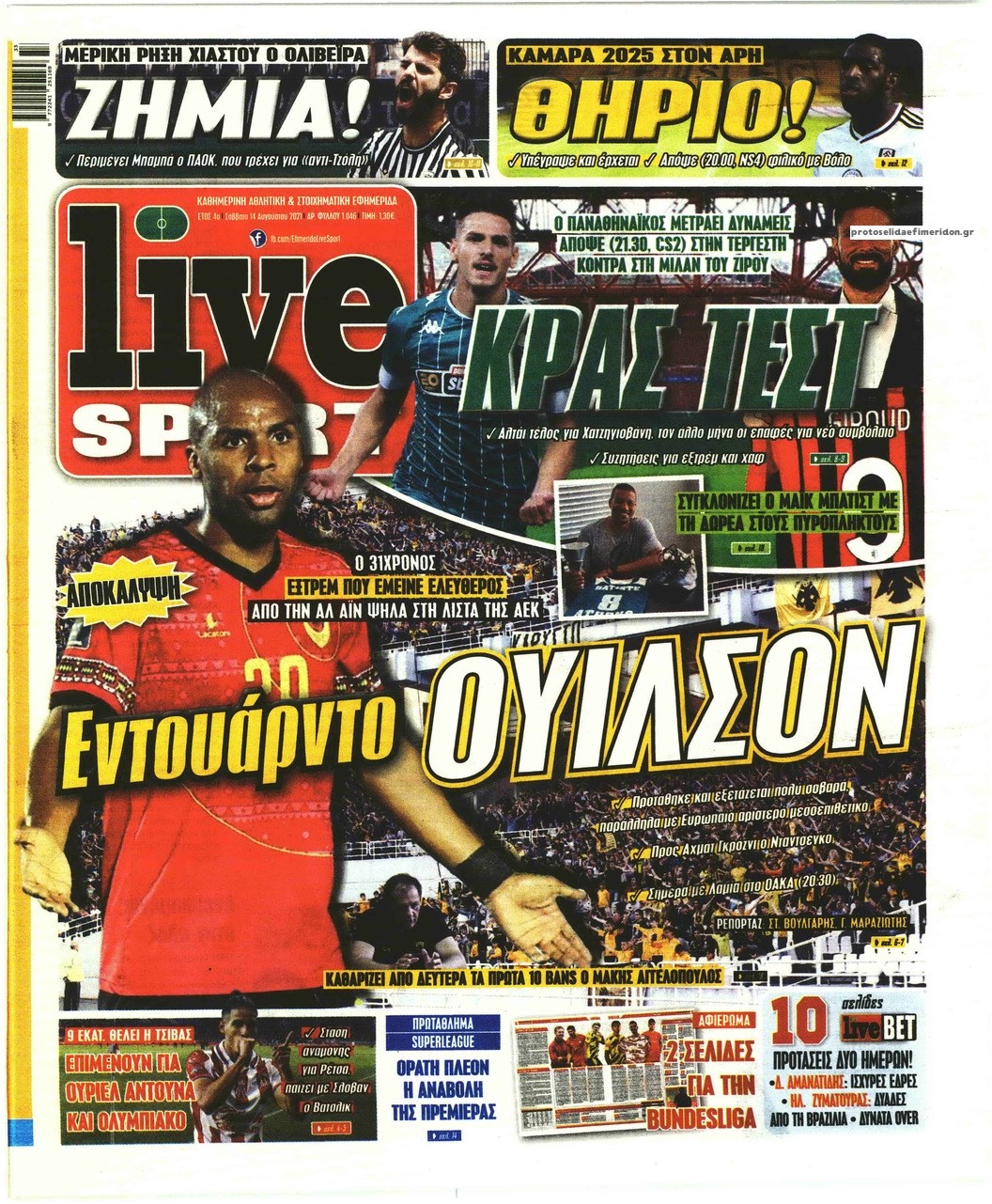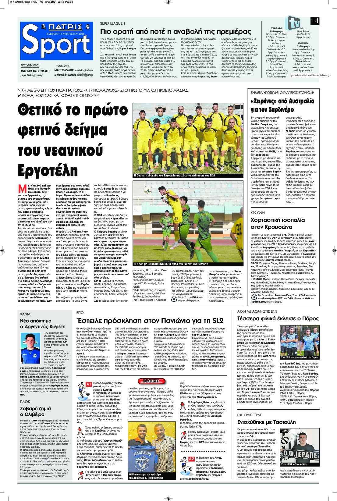 Οι αθλητικές εφημερίδες 14/8/2021 Σήφης Γαρυφαλάκης 07:24, Σάββατο 14 Αυγούστου 2021 Media Διαβάστε τα πρωτοσέλιδα των αθλητικών εφημερίδων. ΑΘΛΗΤΙΚΕΣ ΕΦΗΜΕΡΙΔΕΣ ΕΦΗΜΕΡΙΔΕΣ ΠΡΩΤΟΣΕΛΙΔΑ ΠΡΩΤΟΣΕΛΙΔΑ ΕΦΗΜΕΡΙΔΩΝ Μοιράσου το: σχολίασε κι εσύ (0 σχόλια) Ακολουθήστε το enikos.gr στο Google News και μάθετε πρώτοι όλες τις ειδήσεις Δείτε όλες τις τελευταίες ειδήσεις από την Ελλάδα και τον Κόσμο στο enikos.gr Ειδήσεις Ροή Ειδήσεων 14 λεπτά πριν Μητσοτάκης σε αγρότες: Είμαστε ανοιχτοί στον διάλογο, αλλά όχι στο παράλογο – Η διεκδίκηση αιτημάτων οφείλει να γίνεται με σεβασμό στο κοινωνικό σύνολο 30 λεπτά πριν Γρίπη: «Καμπανάκι» από τους επιστήμονες για έξαρση κρουσμάτων στις γιορτές – Ποιοι κινδυνεύουν και πώς προστατευόμαστε 2 ώρες πριν Γαλλία: Έτοιμοι για Χριστούγεννα στους δρόμους οι αγρότες – «Οι δεσμεύσεις της κυβέρνησης δεν είναι αρκετές» 1 ώρα πριν Φοροδιαφυγή και «κενό ΦΠΑ»: Πώς τα ψηφιακά εργαλεία έφεραν δισεκατομμύρια στα ταμεία του Δημοσίου 3 ώρες πριν Τζορτζ Κλούνεϊ: Πέθανε η αδελφή του, Άντα Ζάιντλερ – «Η ηρωίδα μου» 24 λεπτά πριν Τα άστρα ευνοούν σκανδαλωδώς 4 ζώδια – «Εμφανίζονται ξαφνικά ευκαιρίες γιατί αποφασίζετε να αφήσετε πίσω το παρελθόν» 1 ώρα πριν Οι γονείς της θέλουν να έχουν πρόσβαση στον τραπεζικό της λογαριασμό – «Επιμένουν πως στις οικογένειες δεν υπάρχουν μυστικά» 2 ώρες πριν Αρχαιολόγοι ανακάλυψαν κάτι που δεν περίμεναν: Τα μαθηματικά υπήρχαν πριν από τους αριθμούς – Το μυστικό που κρύβεται πίσω από περίεργα αγγεία 8.000 ετών 1 ημέρα πριν Enerwave: Το νέο «ρεύμα» στη λιανική ενέργειας που αλλάζει την εμπειρία του καταναλωτή 6 λεπτά πριν Πώς «ακούγονται» το Δέλτα του Αξιού και η λίμνη Ορεστιάδα; Οι πρώτες ηχογραφήσεις των επιστημόνων δείχνουν κάτι απρόσμενο 14 λεπτά πριν Μητσοτάκης σε αγρότες: Είμαστε ανοιχτοί στον διάλογο, αλλά όχι στο παράλογο – Η διεκδίκηση αιτημάτων οφείλει να γίνεται με σεβασμό στο κοινωνικό σύνολο 14 λεπτά πριν Πρίγκιπας Χάρι: Το αμφιλεγόμενο σχόλιο τα Χριστούγεννα που πυροδότησε την έντονη οικογενειακή διαμάχη της Μέγκαν Μαρκλ 21 λεπτά πριν «Ενεργή Μάχη»: Τι αλλάζει με το νέο νομοσχέδιο της Πολιτικής Προστασίας – Τα 10 βασικά σημεία 24 λεπτά πριν Τα άστρα ευνοούν σκανδαλωδώς 4 ζώδια – «Εμφανίζονται ξαφνικά ευκαιρίες γιατί αποφασίζετε να αφήσετε πίσω το παρελθόν» ENIKOS NETWORK Έχετε καταρροή και φαγούρα στα μάτια στις γιορτές; Μπορεί να ευθύνεται το σύνδρομο χριστουγεννιάτικου δέντρου Η Danielle Fishel μετά τη διάγνωση καρκίνου του μαστού: «Είμαι καλά και νιώθω ευγνωμοσύνη» Πρωτοχρονιά 2026: Πόσο θα κοστίσει φέτος η βασιλόπιτα – Οι τιμές σε ζαχαροπλαστεία, φούρνους και σούπερ μάρκετ «Πολεμική» προετοιμασία από την ευρωπαϊκή βιομηχανία ενέργειας – Η Eurelectric ζητεί «ομπρέλα» προστασίας για τις υποδομές Χαρτογραφώντας το «σημείο χωρίς επιστροφή»: Για πρώτη φορά αποκαλύπτεται με λεπτομέρεια το ακανθώδες όριο της ατμόσφαιρας τ... Η Google καταργεί τη λειτουργία «dark web report» – Πώς θα μπορούν οι χρήστες να διαγράφουν τα δεδομένα τους περισσότερα 09:43 , Κυριακή 21 Δεκεμβρίου 2025 Το λάθος στην ταινία Die Hard που άφησε άναυδους τους θαυμαστές του Μπρους Γουίλις Ένας φανατικός των ταινιών άφησε άναυδους τους θαυμαστές του Die Hard, επισημαίνοντας τρία βασ... 08:13 , Κυριακή 21 Δεκεμβρίου 2025 Άγιος έρωτας: Ένας καταστροφικός σεισμός χτυπά τη Στέρνα Καταιγιστικές είναι οι εξελίξεις στα δυο τελευταία, συγκλονιστικά επεισόδια του 2025 της σειρά... 08:00 , Κυριακή 21 Δεκ