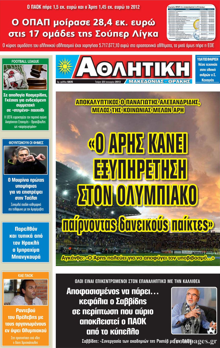 Οι αθλητικές εφημερίδες Enikos Newsroom 09:03, Τετάρτη 23 Ιανουαρίου 2013 Media Οι αθλητικές εφημερίδες ΑΘΛΗΤΙΚΑ ΑΘΛΗΤΙΚΕΣ ΕΦΗΜΕΡΙΔΕΣ ΕΦΗΜΕΡΙΔΕΣ ΕΦΗΜΕΡΙΔΕΣ ΠΡΩΤΟΣΕΛΙΔΑ ΠΡΩΤΟΣΕΛΙΔΑ Μοιράσου το: σχολίασε κι εσύ (0 σχόλια) Ακολουθήστε το enikos.gr στο Google News και μάθετε πρώτοι όλες τις ειδήσεις Δείτε όλες τις τελευταίες ειδήσεις από την Ελλάδα και τον Κόσμο στο enikos.gr Ειδήσεις Ροή Ειδήσεων 52 λεπτά πριν Σίδνεϊ: Τουλάχιστον 10 νεκροί και 16 τραυματίες σε ένοπλη επίθεση – Βίντεο από «ήρωα» περαστικό που αφόπλισε έναν δράστη 40 λεπτά πριν Σκληραίνουν τη στάση τους οι αγρότες: Αποφασίζουν τις δράσεις της εβδομάδας – Αύριο το συλλαλητήριο στα δικαστήρια της Λάρισας 1 ώρα πριν Στιγμές τρόμου για επιβάτες λεωφορείου στη Θεσσαλονίκη: Ο οδηγός πέρασε με κόκκινο σε σιδηροδρομική διάβαση ενώ ερχόταν τρένο και έσπασε την μπάρα 3 ώρες πριν Κυριάκος Μητσοτάκης μετά το «όχι» των αγροτών: Διάλογος δεν γίνεται με τελεσίγραφα και οι λύσεις προκύπτουν μόνο από συζήτηση 5 ώρες πριν ΟΠΕΚΕΠΕ – Κρήτη: Στην Ευρωπαϊκή Εισαγγελία οι 15 από τους 16 συλληφθέντες για τις παράνομες επιδοτήσεις 55 λεπτά πριν Προπονήτρια ευεξίας που έχασε 24 κιλά αποκαλύπτει: «Αυτά είναι τα 6 ανησυχητικά σημάδια της υψηλής κορτιζόλης» 3 ώρες πριν Η ζωή γίνεται πολύ καλύτερη για 3 ζώδια – «Ίσως έχει έρθει η ώρα να κάνετε μια πραγματική και μόνιμη αλλαγή» 2 ώρες πριν Τα 8 πράγματα που τα ευτυχισμένα ζευγάρια δεν κάνουν ποτέ μπροστά στα παιδιά τους 4 ώρες πριν Ξέσπασε σε κλάματα με το χριστουγεννιάτικο δώρο του άνδρα της – «Μου είπε ότι είμαι το πιο αχάριστο άτομο που έχει γνωρίσει» 7 λεπτά πριν Ρωσία: Κατέλαβε το χωριό Βαρβαρίβκα στην Ανατολική Ουκρανία, σύμφωνα με το υπουργείο Άμυνας 9 λεπτά πριν Η Realnews στο www.pressreader.com 20 λεπτά πριν Πρωταθλήτρια η Ελλάδα στη μείωση της φοροδιαφυγής: Κάτω από 10% το «κενό» ΦΠΑ το 2024 – Πόσο μειώθηκε σε μια 5ετία 29 λεπτά πριν Έλενα Ασημακοπούλου – Μπρούνο Τσιρίλο: Ξανά μαζί για τα 15α γενέθλια της κόρης τους – Η κοινή φωτογραφία 40 λεπτά πριν Σκληραίνουν τη στάση τους οι αγρότες: Αποφασίζουν τις δράσεις της εβδομάδας – Αύριο το συλλαλητήριο στα δικαστήρια της Λάρισας ENIKOS NETWORK Σπλαχνικό λίπος: 3 υδατάνθρακες που μπορεί να σας βοηθήσουν να το χάσετε, σύμφωνα με ειδικό «Πίσω από τις ειδήσεις υπάρχουν άνθρωποι»- Η υπόθεση του δότη σπέρματος και το όριο της ενημέρωσης Επενδυτική έκρηξη στον κλάδο των Σούπερ Μάρκετ – Τι σχεδιάζουν οι «μεγάλοι» της αγοράς Επίδομα 10.000 ευρώ: Η λίστα με τις Περιφέρειες που θα το δώσουν για μετεγκατάσταση – Τι ισχύει για τα κριτήρια Σύγχρονος Νοστράδαμος: Προειδοποιεί για «μεγάλο γεγονός» τους επόμενους μήνες που θα συγκλονίσει τη Βρετανία και τον κόσμο Τεστ παρατηρητικότητας: Μπορείτε να βρείτε τις 3 διαφορές στις εικόνες με έναν πιγκουίνο σε 14 δευτερόλεπτα περισσότερα 12:46 , Κυριακή 14 Δεκεμβρίου 2025 Η Realnews στο www.pressreader.com Διαβάστε την ψηφιακή έκδοση της εφημερίδας στην οθόνη του κινητού, του tablet και του υπολογισ... 10:07 , Κυριακή 14 Δεκεμβρίου 2025 Η γη της ελιάς: Η αρχή του τέλους του Δημοσθένη πλησιάζει Η δραματική σειρά του MEGA «Η γη της ελιάς» επιφυλάσσει ακόμα μεγαλύτερες ανατροπές. Κάθε επει... 08:15 , Κυριακή 14 Δεκεμβρίου 2025 Σήμερα με τη Realnews: Food & Travel μαζί Beaute και Μαστορέματα Σήμερα με τη Realnews: Food & Travel μαζί Beaute και Μαστορέματα Food & Travel Ετοιμάζ... 07:46 , Κυριακή 14 Δεκεμβρίου 2025 Σήμερα με τη Realnews: Σκάναρε & κέρδισε με το PaduApp Τo κορυφαίο app επιβράβευσης στην Ελλάδα που σε ανταμείβει
