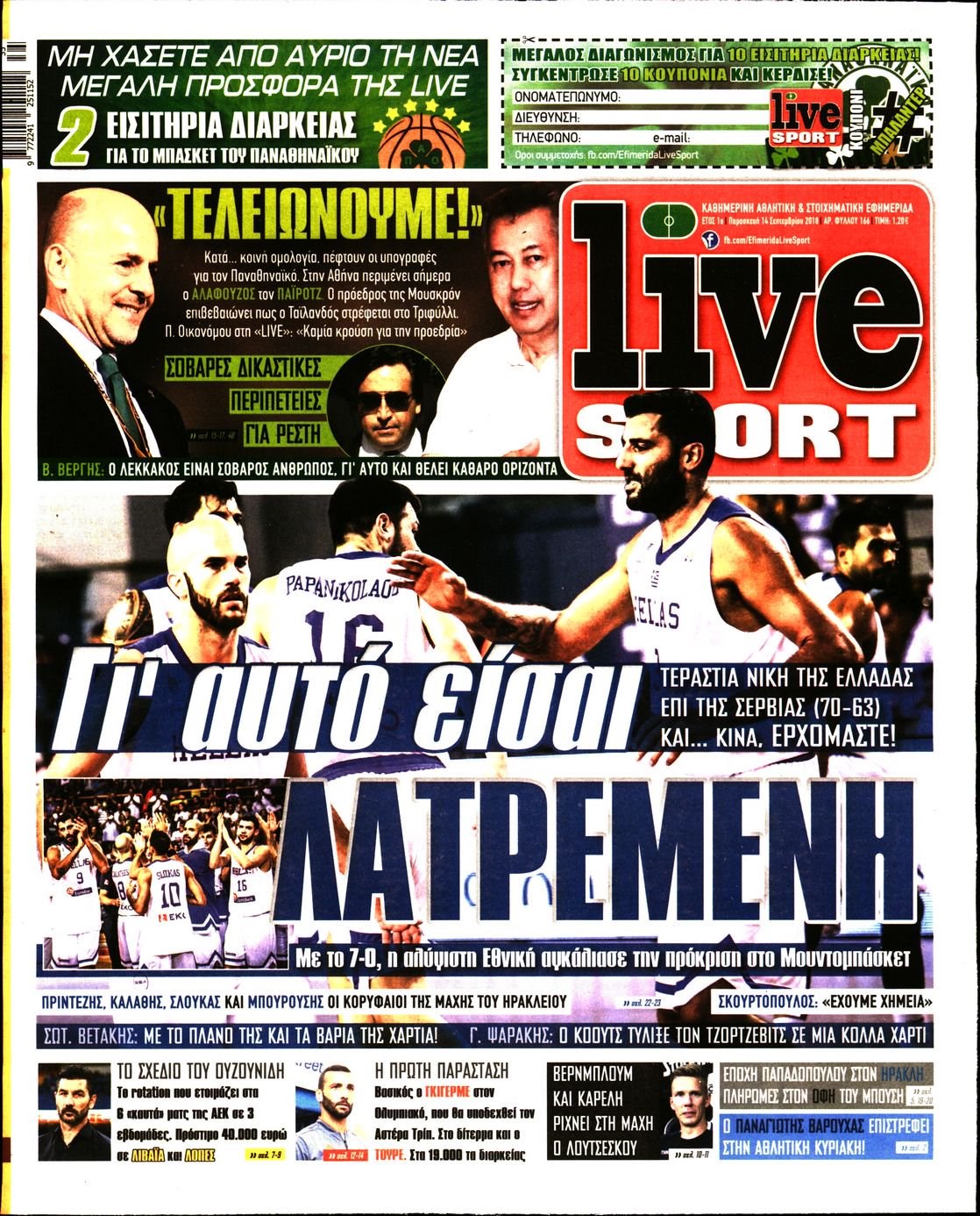 Οι αθλητικές εφημερίδες 14/9/2018 Enikos Newsroom 06:21, Παρασκευή 14 Σεπτεμβρίου 2018 Media Διαβάστε τα πρωτοσέλιδα: ΑΘΛΗΤΙΚΕΣ ΕΦΗΜΕΡΙΔΕΣ ΠΡΩΤΟΣΕΛΙΔΑ Μοιράσου το: σχολίασε κι εσύ (0 σχόλια) Ακολουθήστε το enikos.gr στο Google News και μάθετε πρώτοι όλες τις ειδήσεις Δείτε όλες τις τελευταίες ειδήσεις από την Ελλάδα και τον Κόσμο στο enikos.gr Ειδήσεις Ροή Ειδήσεων 3 ώρες πριν Μεσόγειος: Η διαδρομή του ρωσικού τάνκερ «Qendil» και η στοχευμένη επίθεση της Ουκρανίας με drone – Ο Πούτιν προειδοποίησε για αντίποινα 5 λεπτά πριν Αγρότες: Έκλεισαν την παρακαμπτήρια της Ιόνιας Οδού στη θέση Χαλίκι 2 ώρες πριν Εμπλοκή και αερομαχίες με οπλισμένα τουρκικά F-16 στο Αιγαίο 3 ώρες πριν Αττική: Θρίλερ με νεκρό βρέφος 5 μηνών – Κοιμόταν στο ίδιο κρεβάτι με τους γονείς του 2 ώρες πριν Πούτιν: «Ναι, είμαι ερωτευμένος» – Βίντεο από τη σπάνια προσωπική παραδοχή του 19 λεπτά πριν Αριθμολογία: Οι άνθρωποι που έχουν γεννηθεί αυτές τις 4 ημερομηνίες, συχνά παρεξηγούνται – «Η καλοσύνη τους κρύβει τεράστια δύναμη» 2 ώρες πριν Μήπως έχετε χάσει τον εαυτό σας στη σχέση σας; 7 «αθόρυβες» υποχωρήσεις που μάλλον κάνατε, χωρίς να το συνειδητοποιήσετε 1 ώρα πριν Ξεχάστε το καθάρισμα το Σαββατοκύριακο: Ο «κανόνας των 20 λεπτών» που θα σας λύσει τα χέρια 4 ώρες πριν Κουίζ για την παλιά Αθήνα: Αναγνωρίζετε την περιοχή; Έχετε περάσει 100% από εκεί 5 λεπτά πριν Αγρότες: Έκλεισαν την παρακαμπτήρια της Ιόνιας Οδού στη θέση Χαλίκι 9 λεπτά πριν Ανδρέας Λυκουρέντζος: Υπέβαλε την παραίτησή του ο πρόεδρος του ΕΛΓΑ, αλλά δεν έγινε δεκτή – Όλο το παρασκήνιο 14 λεπτά πριν Ηράκλειο: «Ιπτάμενοι» Άγιοι Βασίληδες μοίρασαν δώρα και χαμόγελα στα παιδιά στο ΠΑΓΝΗ – Δείτε βίντεο 19 λεπτά πριν Αριθμολογία: Οι άνθρωποι που έχουν γεννηθεί αυτές τις 4 ημερομηνίες, συχνά παρεξηγούνται – «Η καλοσύνη τους κρύβει τεράστια δύναμη» 26 λεπτά πριν Ρύθμιση του ΥΠΑΑΤ για τους αγρότες που δεν έλαβαν τη βασική ενίσχυση λόγω εκκρεμοτήτων στο Κτηματολόγιο ENIKOS NETWORK Το ΕΚΑΒ τιμήθηκε από την Ακαδημία Αθηνών για τα 40 χρόνια προσφοράς του Έχετε πραγματικά μεγάλη καρδιά; 10 χαρακτηριστικά όσων έχουν καλοσύνη Έρχονται νέες προσλήψεις σε Δήμο – Όλες οι λεπτομέρειες Επίδομα παιδιού: Πότε ανοίγει ξανά η πλατφόρμα για τις αιτήσεις Χαρτογραφώντας το «σημείο χωρίς επιστροφή»: Για πρώτη φορά αποκαλύπτεται με λεπτομέρεια το ακανθώδες όριο της ατμόσφαιρας τ... Η Google καταργεί τη λειτουργία «dark web report» – Πώς θα μπορούν οι χρήστες να διαγράφουν τα δεδομένα τους περισσότερα 20:37 , Παρασκευή 19 Δεκεμβρίου 2025 Don’t Forget The Lyrics: Η Έλλη Κοκκίνου υποδέχεται 4 παίκτες που θα κάνουν τα πάντα για να μη χάσουν ούτε… μισή λέξη από τους στίχους Το «Don’t Forget The Lyrics» επιστρέφει απόψε, Παρασκευή 19 Δεκεμβρίου, στις 21:00 με νέο επει... 19:31 , Παρασκευή 19 Δεκεμβρίου 2025 GNTM: Απόψε ο μεγάλος τελικός για τους 4 φιναλίστ Έπειτα από μήνες γεμάτους μόδα, δημιουργία και έντονες αναμετρήσεις, το GNTM 2025 κορυφώνεται,... 18:11 , Παρασκευή 19 Δεκεμβρίου 2025 Το σόι σου: Ο Άρης έρχεται στην Ελλάδα για τις γιορτές των Χριστουγέννων – Τι θα δούμε στο αποψινό εορταστικό επεισόδιο Ένα απολαυστικό, εορταστικό επεισόδιο της σειράς “Το σόι σου”, γεμάτο ευτράπελα αλ... 15:15 , Παρασκευή 19 Δεκεμβρίου 2025 Την Κυριακή με τη Realnews: Ό,τι και αν αγοράσεις, σκανάρεις και κερδίζεις! Την Κυριακή με τη Realnews: Ό,τι και αν αγοράσεις, σκανάρεις και κερδίζεις! Με το PADU app, το... ΤΕΛΕΥΤΑΙΕΣ ΕΙΔΗΣΕΙΣ 5 λεπτά πριν Αγρότες: Έκλεισαν την παρακαμπτήρια της Ιόνιας Οδο