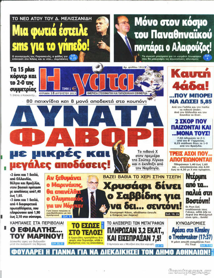 Οι αθλητικές εφημερίδες Enikos Newsroom 08:32, Κυριακή 18 Αυγούστου 2013 Media Οι αθλητικές εφημερίδες ΑΘΛΗΤΙΚΕΣ ΕΦΗΜΕΡΙΔΕΣ ΕΦΗΜΕΡΙΔΕΣ Μοιράσου το: σχολίασε κι εσύ (0 σχόλια) Ακολουθήστε το enikos.gr στο Google News και μάθετε πρώτοι όλες τις ειδήσεις Δείτε όλες τις τελευταίες ειδήσεις από την Ελλάδα και τον Κόσμο στο enikos.gr Ειδήσεις Ροή Ειδήσεων 3 ώρες πριν Αγρότες: «Όχι στον διάλογο, μας εμπαίζει η κυβέρνηση» – Αποφάσισαν κλιμάκωση των κινητοποιήσεων, τι θα γίνει τα Χριστούγεννα 3 ώρες πριν Την πρώτη Belharra παρέλαβε η χώρα μας, υψώθηκε η ελληνική σημαία στη φρεγάτα «Κίμων» – Δένδιας: «Το ισχυρότερο Πολεμικό Ναυτικό που είχε ποτέ ο ελληνισμός» 1 ώρα πριν Γιώργος Μαζωνάκης: «Έχει υποστεί ένα σωρό εκβιαστικές πρακτικές – Του είπαν ότι θα του βάλουν τον συγκεκριμένο άνθρωπο να τον καταγγείλει» 3 ώρες πριν Μιχάλης Χουρδάκης: «Είμαι διαθέσιμος να συμβάλω στην προσωρινή κάλυψη του ιατρείου της Ψερίμου» – Η επιστολή στον Άδωνι Γεωργιάδη 3 ώρες πριν Εξώδικο Γεωργιάδη στην Κωνσταντοπούλου – «Με κατηγόρησε ότι έχω καταδικαστεί για παιδεραστία» 41 λεπτά πριν Γάμος: 11 ψυχρές αλλά ευγενικές φράσεις, που λέει ένας άνδρας όταν σκέφτεται τον χωρισμό 4 ώρες πριν Τα 5 ζώδια που θα ευνοηθούν στα οικονομικά τους το 2026 – «Τραβούν το χρήμα σαν μαγνήτες» 5 ώρες πριν Αυτό που κρύβεται κάτω από τη Γροιλανδία θα μπορούσε να ανατρέψει όσα γνωρίζουμε για την άνοδο της στάθμης των θαλασσών 1 ημέρα πριν 20 χρόνια τα Χριστούγεννα ξεκινούν στα Public με μεγάλη ποικιλία σε δώρα! 45 δευτερόλεπτα πριν ΕΕ: Καλεί τα Σκόπια να σέβονται τις δεσμεύσεις από τη διαδικασία ένταξης και το Διεθνές Δίκαιο – Η χρηματοδότηση του Διαδρόμου Χ 7 λεπτά πριν Σοκ στη Σουηδία: 12χρονος πληρωμένος δολοφόνος σκότωσε λάθος άτομο 12 λεπτά πριν FIFA: Έτοιμη να… επανεντάξει τη Ρωσία από το 2026 16 λεπτά πριν Live η κίνηση: Στο «κόκκινο» Κηφισός, Κηφισίας και οι δρόμοι στο κέντρο – Καθυστερήσεις και στην Αττική Οδό 21 λεπτά πριν Εξεταστική για ΟΠΕΚΕΠΕ: Νέο επεισόδιο Κωνσταντοπούλου με Λαζαρίδη και Συρεγγέλα – ΒΙΝΤΕΟ ENIKOS NETWORK Ξεκίνησε η «επέλαση» της γρίπης στην Ελλάδα-Ποιοι κινδυνεύουν ΕΟΔΥ: Δωρεάν τεστ για HIV, Ηπατίτιδες, Σύφιλη, Χλαμύδια, Γονόρροια Κλιμάκωση των κινητοποιήσεων αποφάσισαν οι αγρότες, κλείνουν παρακαμπτήριους την Παρασκευή – Τι απαντά η κυβέρνηση Ευλογιά αιγοπροβάτων: Νέες αποζημιώσεις ύψους 26,02 εκατ. ευρώ σε κτηνοτρόφους – Η κατανομή ανά Περιφέρεια Χαρτογραφώντας το «σημείο χωρίς επιστροφή»: Για πρώτη φορά αποκαλύπτεται με λεπτομέρεια το ακανθώδες όριο της ατμόσφαιρας τ... Η Google καταργεί τη λειτουργία «dark web report» – Πώς θα μπορούν οι χρήστες να διαγράφουν τα δεδομένα τους περισσότερα 17:45 , Πέμπτη 18 Δεκεμβρίου 2025 ROUK ZOUK: Εορταστικό επεισόδιο με καλεσμένους τους πρωταγωνιστές του «Γιατί ρε πατέρα» Το Σάββατο 20 Δεκεμβρίου στις 21:00, η Ζέτα Μακρυπούλια υποδέχεται εκλεκτούς ηθοποιούς που όλο... 17:20 , Πέμπτη 18 Δεκεμβρίου 2025 Άγιος έρωτας: Η Χριστίνα εξομολογείται στον πατέρα Νικόλαο, απόψε στις 21:00 στον Alpha Η Νότα αποφασίζει να εκδικηθεί τον Πέτρο και τον Στέφανο, για χάρη του Λούη, όμως τα πράγματα ... 16:50 , Πέμπτη 18 Δεκεμβρίου 2025 Να μ’ αγαπάς: Ζωή και Φωτεινή συμφιλιώνονται ως μάνα με κόρη, απόψε στις 20:00 Η ταυτότητα του Άγγελου αποκαλύπτεται στο νέο επεισόδιο της σειράς “Να μ’ αγαπάς... 15:52 , Πέμπτη 18 Δεκεμβρίου 2025 Το Σπίτι Δίπλα Στο Ποτάμι: Το καθηλωτικό τελευταίο επεισόδιο για το 2025 απόψε στις 22:30 Καθηλώνει το σημερινό επεισόδιο 