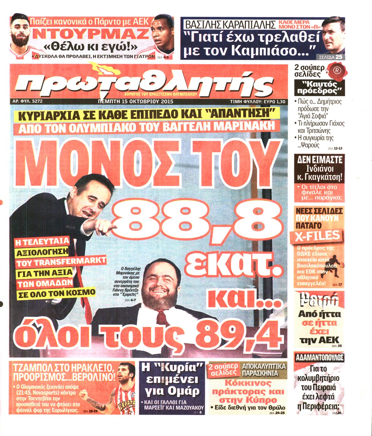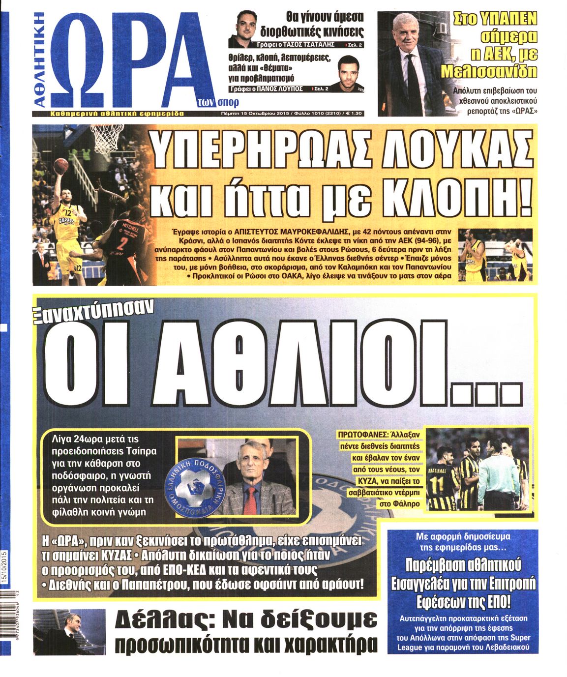 Οι αθλητικές εφημερίδες 15/10/2015 Enikos Newsroom 08:13, Πέμπτη 15 Οκτωβρίου 2015 Media Διαβάστε τα σημερινά πρωτοσέλιδα των αθλητικών εφημερίδων. ΑΘΛΗΤΙΚΕΣ ΕΦΗΜΕΡΙΔΕΣ ΕΦΗΜΕΡΙΔΕΣ ΠΡΩΤΟΣΕΛΙΔΑ Μοιράσου το: σχολίασε κι εσύ (0 σχόλια) Ακολουθήστε το enikos.gr στο Google News και μάθετε πρώτοι όλες τις ειδήσεις Δείτε όλες τις τελευταίες ειδήσεις από την Ελλάδα και τον Κόσμο στο enikos.gr Ειδήσεις Ροή Ειδήσεων 2 ώρες πριν Χριστούγεννα στα μπλόκα: Επιμένουν στις κινητοποιήσεις τους οι αγρότες – Ανοίγουν τα διόδια το Σαββατοκύριακο 3 ώρες πριν Ουκρανία: Η άνευ προηγουμένου επίθεση σε ρωσικό τάνκερ στη Μεσόγειο και το μήνυμα προς στον Πούτιν – Το «μακρύ χέρι» του Κιέβου 2 ώρες πριν Πούτιν: Τα μηνύματα σε Ευρώπη και ΝΑΤΟ από το μαραθώνιο «σόου» του – Η απαίτηση για «σεβασμό» και η ειρήνη «με τους όρους» της Μόσχας 3 ώρες πριν Τραμπ: Δεν αποκλείει την πιθανότητα ενός πολέμου στη Βενεζουέλα – «Ο Μαδούρο ξέρει καλύτερα από τον καθένα τι ακριβώς θέλω» 3 ώρες πριν Συνεχίζει να προκαλεί ο Μίτσκοσκι: «Για μένα το όνομα Μακεδονία είναι ιερό» 2 ώρες πριν Ανακαλύφθηκαν αρχαία χρυσά νομίσματα 2.200 ετών που απεικονίζουν τον θεό Απόλλωνα – Η άγνωστη σύνδεση με τον Φίλιππο Β΄ της Μακεδονίας 3 ώρες πριν Ύπνος: Μια κρυφή κατάσταση του εγκεφάλου πριν από τον ύπνο μπορεί να είναι το “κλειδί” για υψηλή ευφυΐα και δημιουργικότητα 4 ώρες πριν Αριθμολογία: Οι άνθρωποι που έχουν γεννηθεί αυτές τις 4 ημερομηνίες, συχνά παρεξηγούνται – «Η καλοσύνη τους κρύβει τεράστια δύναμη» 5 ώρες πριν Ξεχάστε το καθάρισμα το Σαββατοκύριακο: Ο «κανόνας των 20 λεπτών» που θα σας λύσει τα χέρια 13 λεπτά πριν Μπαρτσελόνα – Μπασκόνια 134-124: Οι «μπλαουγκράνα» πήραν το ματς της χρονιάς ύστερα από τρεις παρατάσεις 28 λεπτά πριν Φαίη Σκορδά: «Παλιότερα τα κομπλιμέντα τα προσπερνούσα, τώρα τα έχω ανάγκη» 44 λεπτά πριν Βασίλης Σπανούλης: Δεν εμφανίστηκε ούτε ένας δημοσιογράφος στην συνέντευξη Τύπου – «Καλησπέρα στον… κανέναν», δείτε βίντεο 55 λεπτά πριν Πόλεμος στην Ουκρανία: Εφτά νεκροί από ρωσική πυραυλική επίθεση στο λιμάνι της Οδησσού 59 λεπτά πριν ΗΠΑ: Η κυβέρνηση του Ντόναλντ Τραμπ άρχισε να δημοσιοποιεί τα αρχεία Έπσταϊν ENIKOS NETWORK Το ΕΚΑΒ τιμήθηκε από την Ακαδημία Αθηνών για τα 40 χρόνια προσφοράς του Έχετε πραγματικά μεγάλη καρδιά; 10 χαρακτηριστικά όσων έχουν καλοσύνη Αναστολή μέτρων αναγκαστικής εκτέλεσης για κτηνοτρόφους που πλήττονται από την ευλογιά των αιγοπροβάτων Πλήρης επάρκεια προϊόντων στις λαϊκές της Αττικής, παρά τις αγροτικές κινητοποιήσεις – Τι απαντούν οι πωλητές Χαρτογραφώντας το «σημείο χωρίς επιστροφή»: Για πρώτη φορά αποκαλύπτεται με λεπτομέρεια το ακανθώδες όριο της ατμόσφαιρας τ... Η Google καταργεί τη λειτουργία «dark web report» – Πώς θα μπορούν οι χρήστες να διαγράφουν τα δεδομένα τους περισσότερα 22:42 , Παρασκευή 19 Δεκεμβρίου 2025 Γιώργος Γιαννόπουλος για “Το σόι σου”: “Είναι ευτυχία και ευλογία αυτή η σειρά” «Είναι ευτυχία και ευλογία η συγκυρία αυτής της σειράς», θα πει ο Γιώργος Γιαννόπουλος -ο αγαπ... 20:37 , Παρασκευή 19 Δεκεμβρίου 2025 Don’t Forget The Lyrics: Η Έλλη Κοκκίνου υποδέχεται 4 παίκτες που θα κάνουν τα πάντα για να μη χάσουν ούτε… μισή λέξη από τους στίχους Το «Don’t Forget The Lyrics» επιστρέφει απόψε, Παρασκευή 19 Δεκεμβρίου, στις 21:00 με νέο επει... 19:31 , Παρασκευή 19 Δεκεμβρίου 2025 GNTM: Απόψε ο μεγάλος τελικός για τους 4 φιναλίστ Έπειτα από μήνες γεμάτους μόδα, δημιουργία και έντονες αναμετρήσεις, το GNTM 2025 κορυφώνεται,..