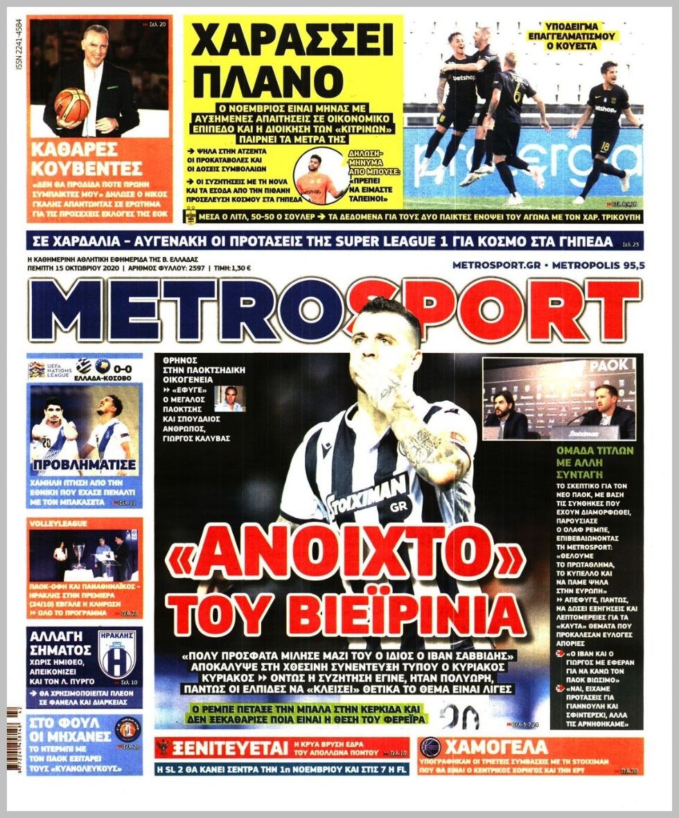 Οι αθλητικές εφημερίδες 15/10/2020 Διονύσης Νίκκας 06:52, Πέμπτη 15 Οκτωβρίου 2020 Media Διαβάστε τα πρωτοσέλιδα των αθλητικών εφημερίδων… ΑΘΛΗΤΙΚΕΣ ΕΦΗΜΕΡΙΔΕΣ Μοιράσου το: σχολίασε κι εσύ (0 σχόλια) Ακολουθήστε το enikos.gr στο Google News και μάθετε πρώτοι όλες τις ειδήσεις Δείτε όλες τις τελευταίες ειδήσεις από την Ελλάδα και τον Κόσμο στο enikos.gr Ειδήσεις Ροή Ειδήσεων 4 ώρες πριν Μεσόγειος: Η διαδρομή του ρωσικού τάνκερ «Qendil» και η στοχευμένη επίθεση της Ουκρανίας με drone – Ο Πούτιν προειδοποίησε για αντίποινα 43 λεπτά πριν Αγρότες: Έκλεισαν για μία ώρα την παρακαμπτήρια της Ιόνιας Οδού στη θέση Χαλίκι 2 ώρες πριν Εμπλοκή και αερομαχίες με οπλισμένα τουρκικά F-16 στο Αιγαίο 2 ώρες πριν Πούτιν: «Ναι, είμαι ερωτευμένος» – Βίντεο από τη σπάνια προσωπική παραδοχή του 47 λεπτά πριν Ανδρέας Λυκουρέντζος: Υπέβαλε την παραίτησή του ο πρόεδρος του ΕΛΓΑ, αλλά δεν έγινε δεκτή – Όλο το παρασκήνιο 57 λεπτά πριν Αριθμολογία: Οι άνθρωποι που έχουν γεννηθεί αυτές τις 4 ημερομηνίες, συχνά παρεξηγούνται – «Η καλοσύνη τους κρύβει τεράστια δύναμη» 3 ώρες πριν Μήπως έχετε χάσει τον εαυτό σας στη σχέση σας; 7 «αθόρυβες» υποχωρήσεις που μάλλον κάνατε, χωρίς να το συνειδητοποιήσετε 2 ώρες πριν Ξεχάστε το καθάρισμα το Σαββατοκύριακο: Ο «κανόνας των 20 λεπτών» που θα σας λύσει τα χέρια 5 ώρες πριν Κουίζ για την παλιά Αθήνα: Αναγνωρίζετε την περιοχή; Έχετε περάσει 100% από εκεί 2 λεπτά πριν ΕΕ: «Κάποια στιγμή θα χρησιμοποιήσουμε τα ρωσικά περιουσιακά στοιχεία» δήλωσε ο πρόεδρος του ΕΛΚ 6 λεπτά πριν Conference League: Καλύτερη επίθεση η ΑΕΚ στη διοργάνωση και 2η σε προσπάθειες στην εστία – Ξεχωρίζουν Πινέδα, Ελίασον και Ρότα 8 λεπτά πριν Έγκυος η Άννα Κορακάκη: «Η οικογένειά μας μεγαλώνει…» – Η αποκάλυψη για το φύλο του μωρού 15 λεπτά πριν Τραγωδία στο Βελεστίνο: Πέθανε ο αντιδήμαρχος Γιάννης Παπαϊωάννου 19 λεπτά πριν Ολυμπιακός – Βιλερμπάν: Μάτωσε στο πρόσωπο ο Παπανικολάου έπειτα από αγκωνιά του Βοτιέ – ΦΩΤΟ ENIKOS NETWORK Το ΕΚΑΒ τιμήθηκε από την Ακαδημία Αθηνών για τα 40 χρόνια προσφοράς του Έχετε πραγματικά μεγάλη καρδιά; 10 χαρακτηριστικά όσων έχουν καλοσύνη Έρχονται νέες προσλήψεις σε Δήμο – Όλες οι λεπτομέρειες Επίδομα παιδιού: Πότε ανοίγει ξανά η πλατφόρμα για τις αιτήσεις Χαρτογραφώντας το «σημείο χωρίς επιστροφή»: Για πρώτη φορά αποκαλύπτεται με λεπτομέρεια το ακανθώδες όριο της ατμόσφαιρας τ... Η Google καταργεί τη λειτουργία «dark web report» – Πώς θα μπορούν οι χρήστες να διαγράφουν τα δεδομένα τους περισσότερα 20:37 , Παρασκευή 19 Δεκεμβρίου 2025 Don’t Forget The Lyrics: Η Έλλη Κοκκίνου υποδέχεται 4 παίκτες που θα κάνουν τα πάντα για να μη χάσουν ούτε… μισή λέξη από τους στίχους Το «Don’t Forget The Lyrics» επιστρέφει απόψε, Παρασκευή 19 Δεκεμβρίου, στις 21:00 με νέο επει... 19:31 , Παρασκευή 19 Δεκεμβρίου 2025 GNTM: Απόψε ο μεγάλος τελικός για τους 4 φιναλίστ Έπειτα από μήνες γεμάτους μόδα, δημιουργία και έντονες αναμετρήσεις, το GNTM 2025 κορυφώνεται,... 18:11 , Παρασκευή 19 Δεκεμβρίου 2025 Το σόι σου: Ο Άρης έρχεται στην Ελλάδα για τις γιορτές των Χριστουγέννων – Τι θα δούμε στο αποψινό εορταστικό επεισόδιο Ένα απολαυστικό, εορταστικό επεισόδιο της σειράς “Το σόι σου”, γεμάτο ευτράπελα αλ... 15:15 , Παρασκευή 19 Δεκεμβρίου 2025 Την Κυριακή με τη Realnews: Ό,τι και αν αγοράσεις, σκανάρεις και κερδίζεις! Την Κυριακή με τη Realnews: Ό,τι και αν αγοράσεις, σκανάρεις και κερδίζεις! Με το PADU app, το... ΤΕΛΕΥΤΑΙΕΣ ΕΙΔΗΣΕΙΣ 2 λεπτά πριν ΕΕ: «Κάποια στιγμή θα χρησιμοποιήσουμε τα ρ