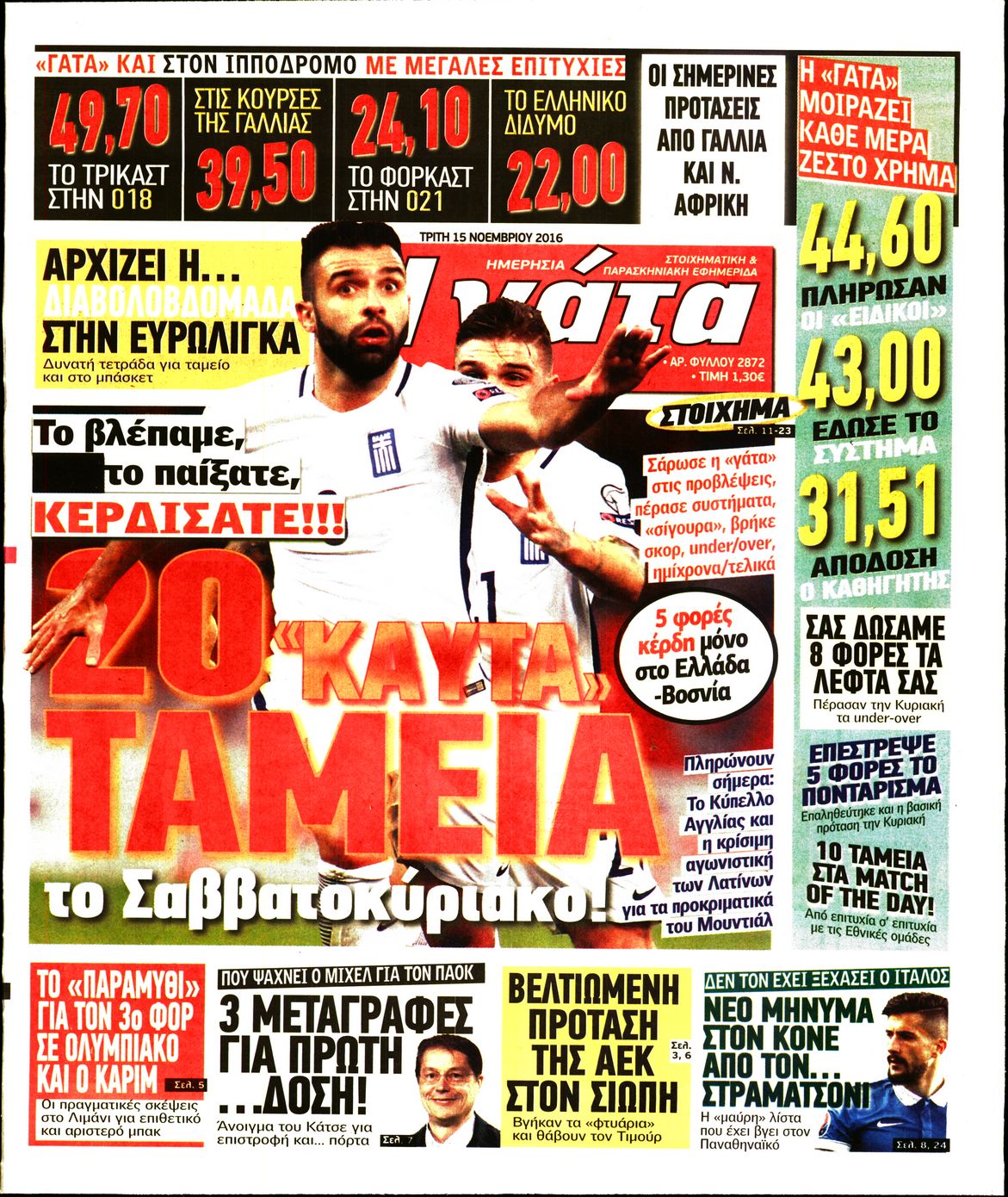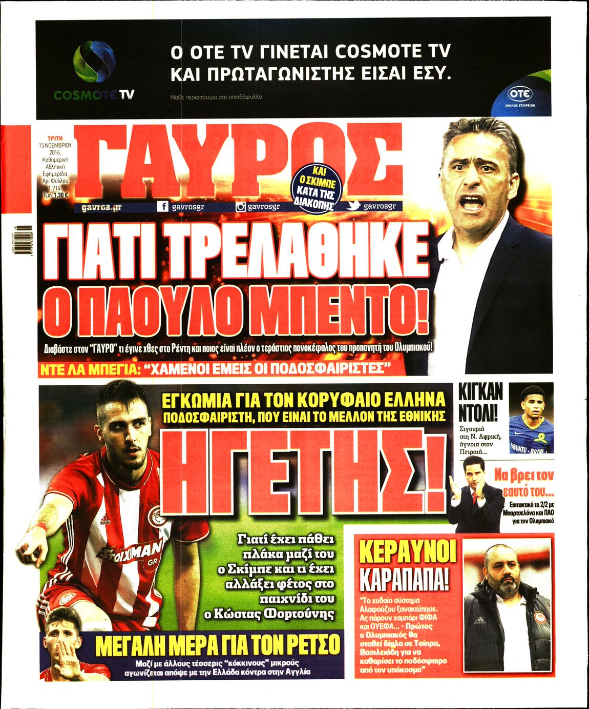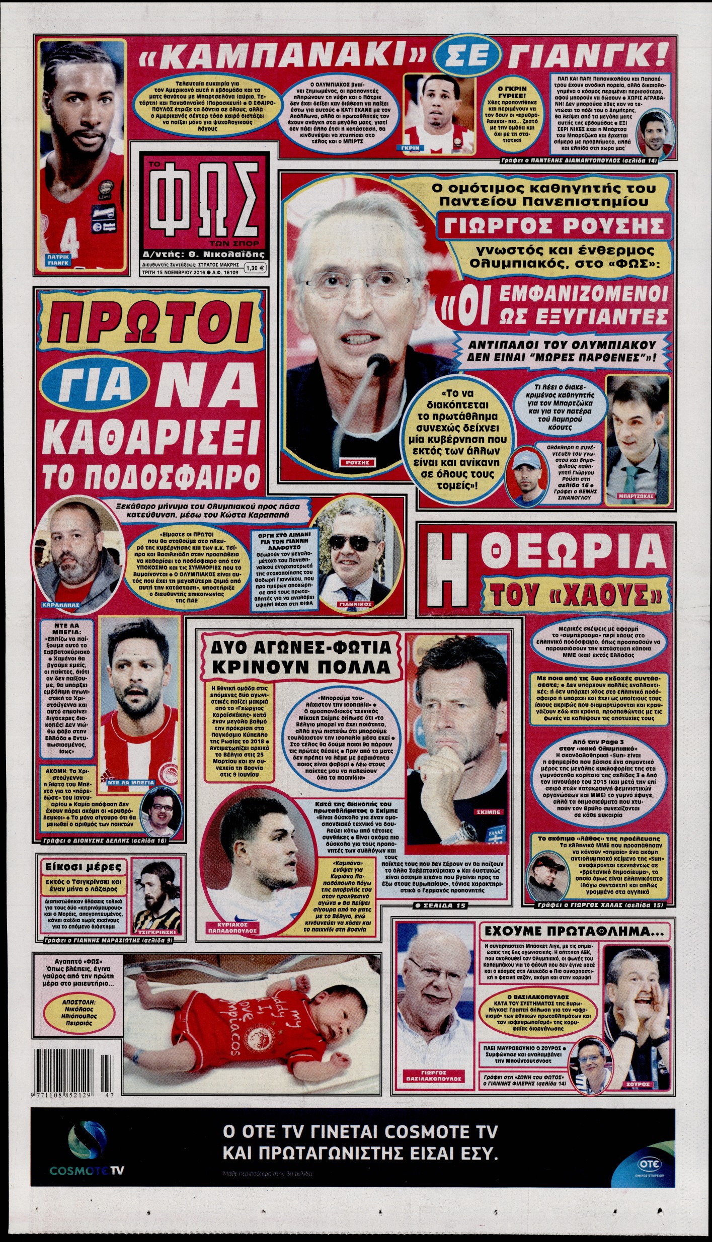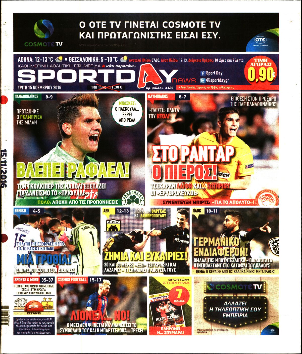 Οι αθλητικές εφημερίδες 15/11/2016 Enikos Newsroom 03:55, Τρίτη 15 Νοεμβρίου 2016 Media Διαβάστε τα σημερινά πρωτοσέλιδα των αθλητικών εφημερίδων: ΑΘΛΗΤΙΚΕΣ ΕΦΗΜΕΡΙΔΕΣ ΠΡΩΤΟΣΕΛΙΔΑ Μοιράσου το: σχολίασε κι εσύ (0 σχόλια) Ακολουθήστε το enikos.gr στο Google News και μάθετε πρώτοι όλες τις ειδήσεις Δείτε όλες τις τελευταίες ειδήσεις από την Ελλάδα και τον Κόσμο στο enikos.gr Ειδήσεις Ροή Ειδήσεων 1 ώρα πριν Εκτός ευρωομάδας ΣΥΡΙΖΑ ο Νίκος Παππάς μετά την επίθεση στον δημοσιογράφο Νίκο Γιαννόπουλο – Η μήνυση και οι νέες δηλώσεις 2 ώρες πριν «Αγριεύουν» οι αγρότες: «Δεν συντρέχει λόγος συνάντησης με τον πρωθυπουργό» – Ώρα αποφάσεων στη σύσκεψη της Πέμπτης 2 ώρες πριν Κυψέλη: Χωρίς την οικογένειά της δίπλα της απολογήθηκε η 16χρονη – «Της είχε επιτεθεί κάποιος για να την βιάσει, φοβήθηκε και κυκλοφορούσε με μαχαίρι» 1 ώρα πριν Politico: Το πρόβλημα της Ευρώπης δεν είναι το Βέλγιο αλλά ο Ντόναλντ Τραμπ 3 ώρες πριν Αλεξανδρούπολη: Πολυοργανική ανεπάρκεια λόγω υποσιτισμού η αιτία θανάτου του 3χρονου αγοριού 2 ώρες πριν Μυστήριο με τεράστιες κυκλικές πέτρες 200 κιλών – Ανακαλύφθηκαν τυχαία κατά τη διάρκεια οδικών έργων και κανείς δεν ξέρει από πού προέρχονται 3 ώρες πριν Ύπνος: Ειδικός εξηγεί τον πραγματικό λόγο που ξυπνάτε στις 4 τα ξημερώματα – Ο ρόλος των ορμονών και του κιρκάδιου ρυθμού 4 ώρες πριν Αριθμολογία: Οι άνθρωποι που έχουν γεννηθεί αυτές τις 4 ημερομηνίες, είναι τρυφεροί και αγαπούν ανιδιοτελώς 15 ώρες πριν 20 χρόνια τα Χριστούγεννα ξεκινούν στα Public με μεγάλη ποικιλία σε δώρα! 8 λεπτά πριν Βέλγους πολιτικούς και επικεφαλής χρηματοπιστωτικών ιδρυμάτων στοχοποιεί η Μόσχα για τα κατασχεθέντα περιουσιακά στοιχεία 23 λεπτά πριν ΗΠΑ: Αναζητείται δεύτερος ύποπτος για την επίθεση στο πανεπιστήμιο Μπράουν 38 λεπτά πριν Λεωφόρος Αλεξάνδρας: Δεν εντοπίστηκε βόμβα έξω από το κολλέγιο – Προσήχθη άνδρας για το προειδοποιητικό σημείωμα 55 λεπτά πριν Ελένη Κρίτα για το reunion του «Παρά Πέντε»: «Ήταν πραγματικά σαν να μην είχαμε χαθεί ποτέ» 1 ώρα πριν Κύπελλο Ελλάδας: Αυτά είναι τα ζευγάρια στα νοκ-άουτ, οι διασταυρώσεις στους «8» κι ο δρόμος προς τον τελικό ENIKOS NETWORK Αϋπνία: Το κόλπο που θα σας βοηθήσει να κοιμηθείτε απόψε – Είναι απλό και έχει αποτέλεσμα 2,6 εκατομμύρια πολίτες έχουν ήδη εμβολιαστεί κατά της γρίπης ΕΛΣΤΑΤ: Τι δείχνουν τα νέα στοιχεία για τις ηλεκτρονικές παραγγελίες των επιχειρήσεων ΚΕΠΕ: Οι 3 διακριτές συμβολές των ΜμΕ και της μεταποίησης στην ελληνική οικονομία Χαρτογραφώντας το «σημείο χωρίς επιστροφή»: Για πρώτη φορά αποκαλύπτεται με λεπτομέρεια το ακανθώδες όριο της ατμόσφαιρας τ... Η Google καταργεί τη λειτουργία «dark web report» – Πώς θα μπορούν οι χρήστες να διαγράφουν τα δεδομένα τους περισσότερα 22:24 , Τετάρτη 17 Δεκεμβρίου 2025 Το Σπίτι Δίπλα Στο Ποτάμι: Σε κίνδυνο η υγεία του Απόστολου – Τι θα δούμε απόψε “Το Σπίτι Δίπλα στο Ποτάμι” ξετυλίγει το νήμα της ζωής των πέντε αδελφών με καταισ... 21:14 , Τετάρτη 17 Δεκεμβρίου 2025 Παιχνίδια Εκδίκησης: Θα καταφέρει ο Χρήστος να κλονίσει την εμπιστοσύνη της Μάγιας απέναντι στον Άγη; Τα «Παιχνίδια Εκδίκησης» έρχονται απόψε στις 22:30, στον Αντ1, με το τελευταίο επεισόδιο της χ... 20:57 , Τετάρτη 17 Δεκεμβρίου 2025 Άγιος Έρωτας: Η Χλόη καταθέτει εναντίον του πατέρα της και ο Χάρης αποκαλύπτει στον Κλεάνθη ότι δεν είναι ο βιολογικός του πατέρας. Γεμάτο αποκαλύψεις είναι το νέο επεισόδιο της σειράς “Άγιος Έρωτας” απόψε στις 21:... 20:15 , Τετάρτη 17 Δεκεμβρίο