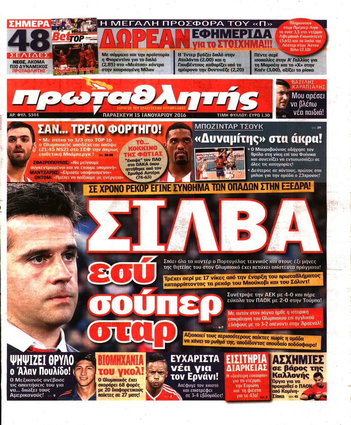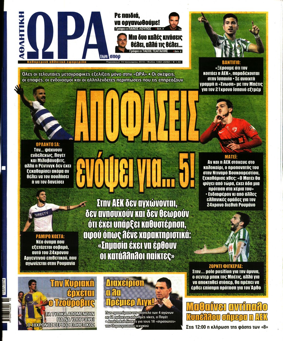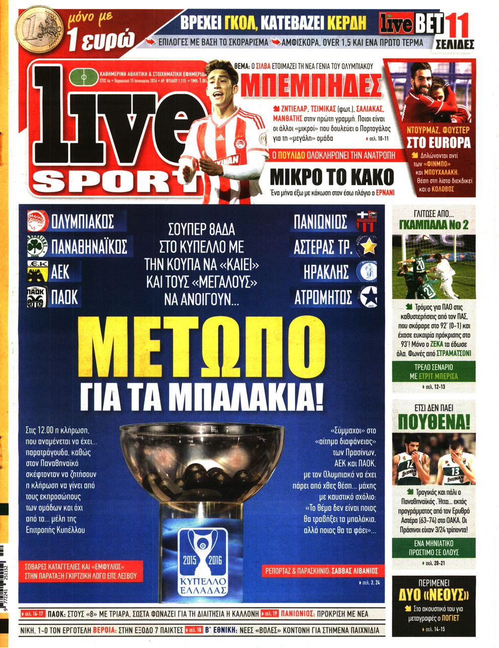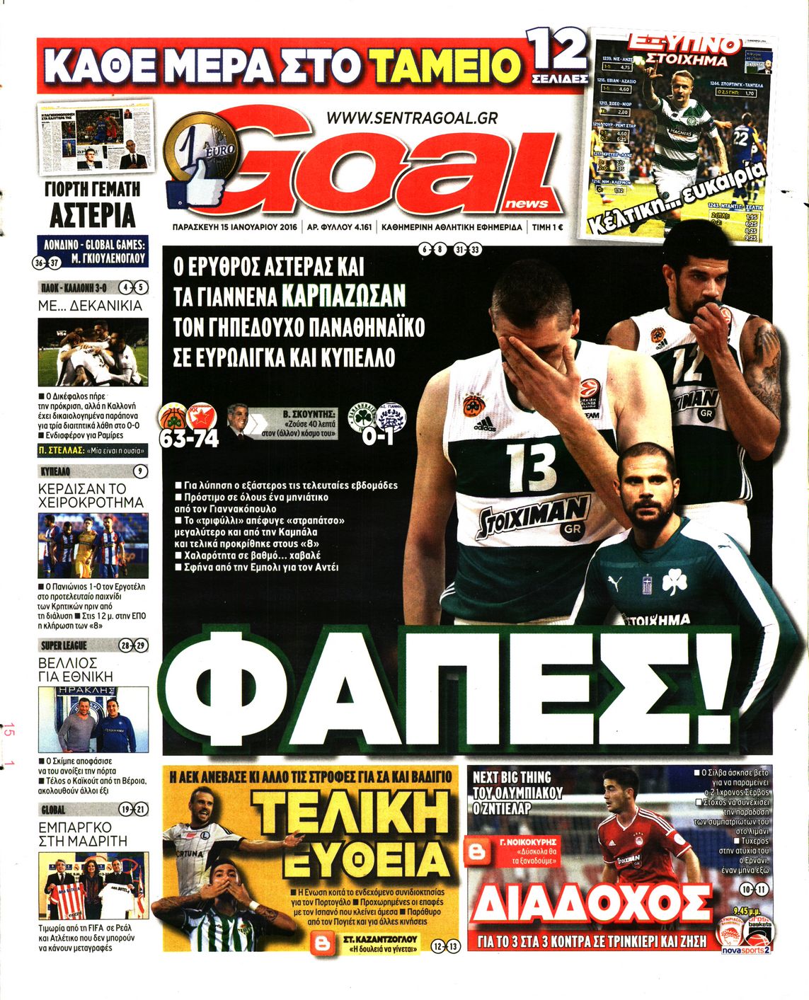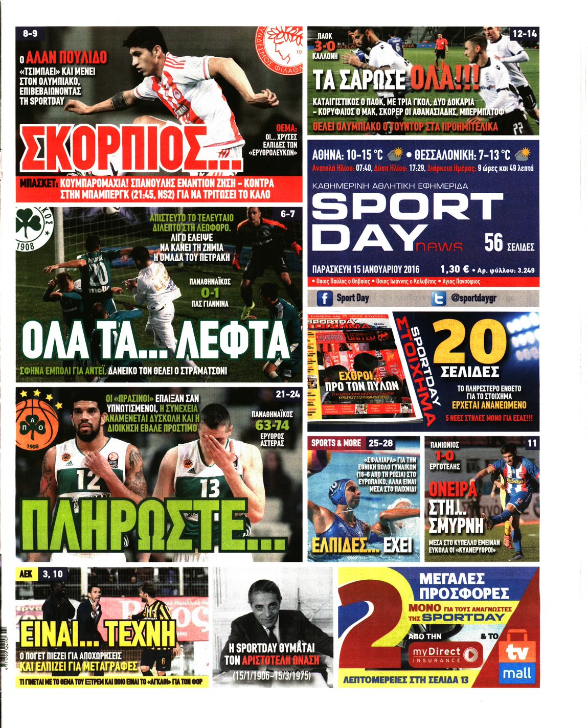 Οι αθλητικές εφημερίδες 15/1/2016 Enikos Newsroom 05:58, Παρασκευή 15 Ιανουαρίου 2016 Media Διαβάστε τα σημερινά πρωτοσέλιδα των αθλητικών εφημερίδων: ΑΘΛΗΤΙΚΕΣ ΕΦΗΜΕΡΙΔΕΣ ΠΡΩΤΟΣΕΛΙΔΑ Μοιράσου το: σχολίασε κι εσύ (0 σχόλια) Ακολουθήστε το enikos.gr στο Google News και μάθετε πρώτοι όλες τις ειδήσεις Δείτε όλες τις τελευταίες ειδήσεις από την Ελλάδα και τον Κόσμο στο enikos.gr Ειδήσεις Ροή Ειδήσεων 1 ώρα πριν Μεσόγειος: Η διαδρομή του ρωσικού τάνκερ «Qendil» και η στοχευμένη επίθεση της Ουκρανίας με drone – Ο Πούτιν προειδοποίησε για αντίποινα 56 λεπτά πριν Αττική: Θρίλερ με νεκρό βρέφος 5 μηνών – Κοιμόταν στο ίδιο κρεβάτι με τους γονείς του 2 ώρες πριν Από το Ορμένιο ως τα Μάλγαρα κι από τη Σιάτιστα μέχρι τη Νίκαια: Μπλόκα σε όλη την Ελλάδα – Το Σάββατο ανοίγουν τα διόδια οι αγρότες 2 ώρες πριν «Έλληνας Εσκομπάρ»: Φωτογραφίες με τους 4 τόνους κοκαΐνης που κατασχέθηκαν από το σκάφος «Ουρανία» 3 ώρες πριν Πούτιν: Σαρκαστικά μηνύματα, παράπονα και απρόοπτα στη συνέντευξη Τύπου – Η πρόταση γάμου on air και οι ερωτήσεις για τα αγγούρια και τους… εξωγήινους 3 ώρες πριν Τα 5 ζώδια που ευνοούνται στην ερωτική ζωή τους την επόμενη εβδομάδα – «Η ενέργεια του Αιγόκερου φέρνει αγάπη και σταθερότητα» 7 ώρες πριν Ειδικός μοιράζεται 6 κόλπα για να διατηρείστε σε φόρμα με πάνω από 40 ώρες εργασίας την εβδομάδα: «Προπονηθείτε πριν από τη δουλειά, όχι μετά» 4 ώρες πριν Αυτό το έξυπνο μαθηματικό κόλπο θα μπορούσε να αλλάξει τον τρόπο με τον οποίο οι επιστήμονες μελετούν τους σεισμούς 2 ώρες πριν Κουίζ για την παλιά Αθήνα: Αναγνωρίζετε την περιοχή; Έχετε περάσει 100% από εκεί 3 λεπτά πριν Λάρισα: Ασθενοφόρο έπεσε πάνω σε κλούβα της ΕΛ.ΑΣ στον Πλατύκαμπο – Τραυματίστηκε ο συνοδηγός – ΒΙΝΤΕΟ 9 λεπτά πριν Τέμπη: Διεκόπη για τις 9 Ιανουαρίου η δίκη για τα χαμένα βίντεο της εμπορικής αμαξοστοιχίας – «Απαιτούμε να μας σέβονται» 14 λεπτά πριν Hellenic Train: Αλλαγές και καταργήσεις δρομολογίων λεωφορείων λόγω των αγροτικών κινητοποιήσεων 20 λεπτά πριν Ζελένσκι: «Δεν χρειάζεται αναθεώρηση του Συντάγματος» για να εγκαταλείψει η Ουκρανία τον στόχο ένταξης στο ΝΑΤΟ 25 λεπτά πριν Παναγιώτα Βλαντή: Η τρυφερή εξομολόγηση για τον σύζυγό της – «Πραγματικά ήταν για μένα αυτό που ήθελα σε όλη μου τη ζωή» ENIKOS NETWORK «Η σούπερ» γρίπη εξαπλώνεται στην Ευρώπη-Στοιχεία από το ECDC για την αποτελεσματικότητα του εμβολίου ΕΛΣΤΑΤ: Αύξηση κατά 1,7% των επαγγελματιών υγείας το 2024 Η απάντηση της κυβέρνησης στα αιτήματα των αγροτών: 16 έχουν ικανοποιηθεί, 4 βρίσκονται υπό επεξεργασία και 7 δεν είναι εφι... Μισθολογική διαφάνεια: Το 68% των εργαζομένων αγνοεί τη νέα οδηγία – Αναλυτικά τα στοιχεία έρευνας Χαρτογραφώντας το «σημείο χωρίς επιστροφή»: Για πρώτη φορά αποκαλύπτεται με λεπτομέρεια το ακανθώδες όριο της ατμόσφαιρας τ... Η Google καταργεί τη λειτουργία «dark web report» – Πώς θα μπορούν οι χρήστες να διαγράφουν τα δεδομένα τους περισσότερα 18:11 , Παρασκευή 19 Δεκεμβρίου 2025 Το σόι σου: Ο Άρης έρχεται στην Ελλάδα για τις γιορτές των Χριστουγέννων – Τι θα δούμε στο αποψινό εορταστικό επεισόδιο Ένα απολαυστικό, εορταστικό επεισόδιο της σειράς “Το σόι σου”, γεμάτο ευτράπελα αλ... 15:15 , Παρασκευή 19 Δεκεμβρίου 2025 Την Κυριακή με τη Realnews: Ό,τι και αν αγοράσεις, σκανάρεις και κερδίζεις! Την Κυριακή με τη Realnews: Ό,τι και αν αγοράσεις, σκανάρεις και κερδίζεις! Με το PADU app, το... 08:00 , Παρασκευή 19 Δεκεμβρίου 2025 Την Κυριακή με τη Realnews: Δωροεπιταγή 10€ Δωροεπιταγή αξίας 10€ για 