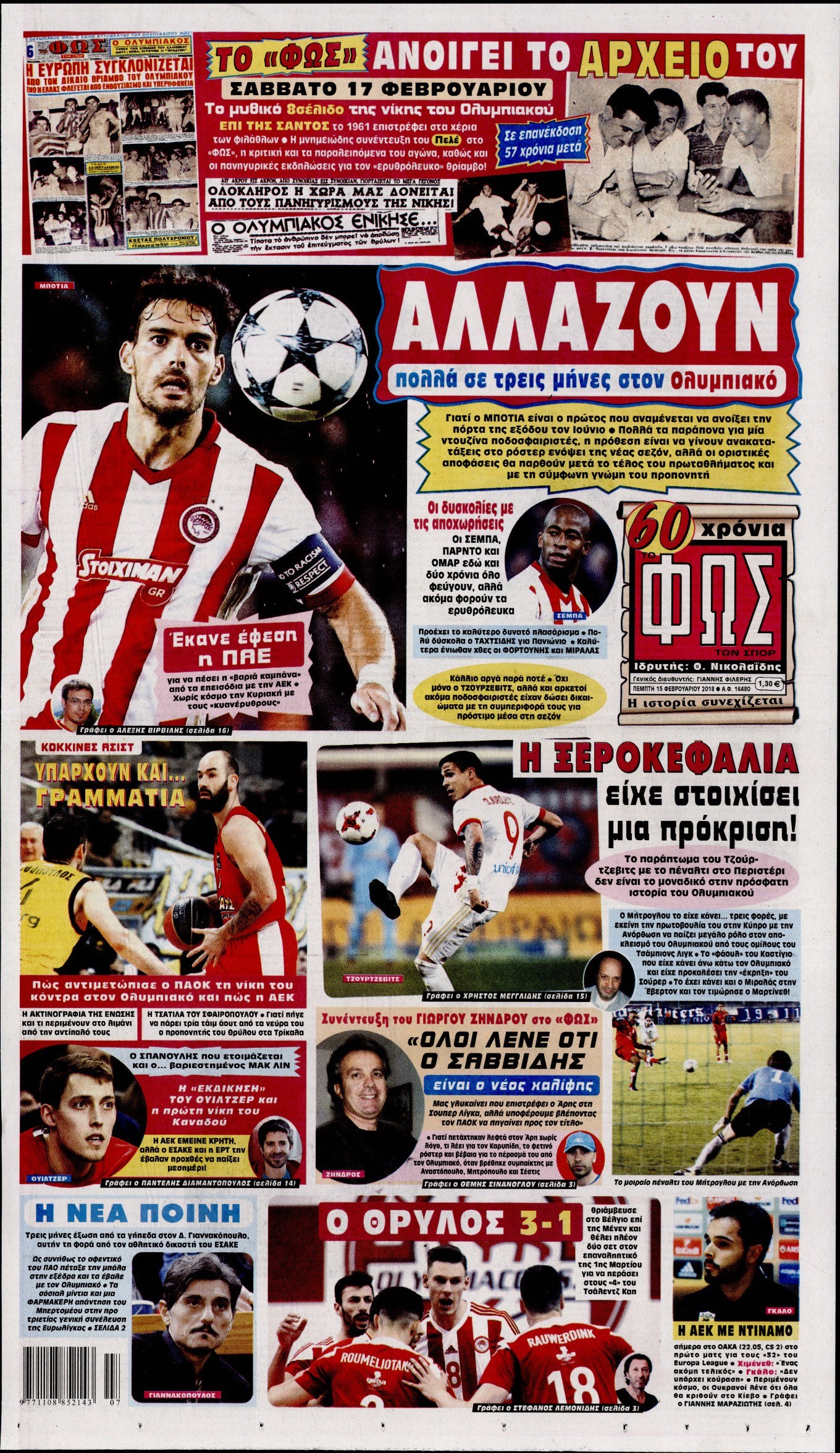 Οι αθλητικές εφημερίδες 15/2/2018 Enikos Newsroom 07:20, Πέμπτη 15 Φεβρουαρίου 2018 Media Διαβάστε τα σημερινά πρωτοσέλιδα των αθλητικών εφημερίδων: ΑΘΛΗΤΙΚΕΣ ΕΦΗΜΕΡΙΔΕΣ ΠΡΩΤΟΣΕΛΙΔΑ Μοιράσου το: σχολίασε κι εσύ (0 σχόλια) Ακολουθήστε το enikos.gr στο Google News και μάθετε πρώτοι όλες τις ειδήσεις Δείτε όλες τις τελευταίες ειδήσεις από την Ελλάδα και τον Κόσμο στο enikos.gr Ειδήσεις Ροή Ειδήσεων 2 ώρες πριν Πώς δρούσε το κύκλωμα που διακινούσε ναρκωτικά σε σχολεία – Υπέβαλαν σε βασανιστήρια όσους δεν τηρούσαν τους «κανόνες πειθαρχίας» 3 ώρες πριν Αγρότες: Γιορτές στα μπλόκα με ανοιχτά διόδια – Δικογραφία στα Ιωάννινα για το σήκωμα των μπαρών 2 ώρες πριν Ζελένσκι: Οι Αμερικανοί πρότειναν συνάντηση Ουκρανίας, ΗΠΑ, Ρωσίας στο Μαϊάμι 2 ώρες πριν Αττική: Εξαρθρώθηκε εγκληματική οργάνωση που έκλεβε οχήματα, τα παραποιούσε και τα μεταπωλούσε σε πολίτες – Πώς δρούσε το κύκλωμα 1 ώρα πριν Μικαέλα Μπέντχαους: Ο πρώτος άνθρωπος σε αναπηρικό αμαξίδιο που ταξίδεψε στο διάστημα – ΒΙΝΤΕΟ 3 ώρες πριν Η τύχη χαμογελά σε 3 ζώδια έως τις 28 Δεκεμβρίου – «Προσέξτε τις επιλογές σας και η επιμονή σας θα ανταμειφθεί» 7 ώρες πριν Διαιτολόγος αποκαλύπτει 9 πρωινές συνήθειες που «λιώνουν» το κοιλιακό λίπος – «Υποστηρίζουν την υγιεινή απώλεια βάρους» 4 ώρες πριν Μία ανεκμετάλλευτη πηγή θα μπορούσε να προσφέρει ανεξάντλητη ενέργεια – Οι επιστήμονες ίσως γνωρίζουν πώς να την ξεκλειδώσουν 10 ώρες πριν Enerwave: Το νέο «ρεύμα» στη λιανική ενέργειας που αλλάζει την εμπειρία του καταναλωτή 2 λεπτά πριν Φωτιά σε αυτοκίνητο στην Λεωφόρο Κηφισίας στο ύψος της Φιλοθέης – Μεγάλο μποτιλιάρισμα στο σημείο 6 λεπτά πριν Πηνελόπη Πλάκα: Η εξομολόγηση για την προσωπική της ζωή – «Γούσταρα πάρα πολύ την ελευθερία μου» 18 λεπτά πριν Λούλα: Προειδοποιεί πως μια επέμβαση των ΗΠΑ στη Βενεζουέλα θα μπορούσε να είναι καταστροφική 26 λεπτά πριν Τραμπ: Πώς περνάει τις γιορτές των Χριστουγέννων – Τα δώρα που κάνει στα εγγόνια του 39 λεπτά πριν HOTΕΛ ΕΛVIRA: Η Ελβίρα μαθαίνει πως ο Χάρι μένει κρυφά στο ξενοδοχείο του Παντελή ENIKOS NETWORK Οι γυναίκες αποκαλύπτουν το πιο ελκυστικό πράγμα που μπορεί να κάνει ένας άνδρας Ομορφιά και αντιγήρανση: Ειδικοί μιλούν για συσκευές περιποίησης του δέρματος Ολοκληρώθηκαν πληρωμές 22,16 εκατ. ευρώ για το μεταφορικό ισοδύναμο – Κικίλιας: Στηρίζουμε τη νησιωτικότητα Η Realnews στο www.pressreader.com Χαρτογραφώντας το «σημείο χωρίς επιστροφή»: Για πρώτη φορά αποκαλύπτεται με λεπτομέρεια το ακανθώδες όριο της ατμόσφαιρας τ... Η Google καταργεί τη λειτουργία «dark web report» – Πώς θα μπορούν οι χρήστες να διαγράφουν τα δεδομένα τους περισσότερα 18:19 , Σάββατο 20 Δεκεμβρίου 2025 HOTΕΛ ΕΛVIRA: Η Ελβίρα μαθαίνει πως ο Χάρι μένει κρυφά στο ξενοδοχείο του Παντελή Συνεχίζονται οι εκλογές για πρόεδρο, στο νέο επεισόδιο της κωμικής σειράς του MEGA, HOTΕΛ ΕΛVI... 14:04 , Σάββατο 20 Δεκεμβρίου 2025 Η Realnews αυτής της Κυριακής (21/12/2025) Με τίτλο: «Ασπίδα προστασίας για την Ελλάδα» κυκλοφορεί, αυτήν την Κυριακή, η Realnews. Σημαντ... 12:53 , Σάββατο 20 Δεκεμβρίου 2025 Να μ’ αγαπάς: Το παρελθόν έρχεται στο φως – Καταιγιστικές εξελίξεις στα τελευταία επεισόδια του 2025 Ο Άγγελος αποκαλύπτεται, η Φωτεινή ανησυχεί για τον Λευτέρη και η Ζωή έρχεται αντιμέτωπη με το... 11:41 , Σάββατο 20 Δεκεμβρίου 2025 «Η αγάπη δεν χάνεται ποτέ»: Η μικρού μήκους ταινία κινουμένων σχεδίων που θέτει ερωτήματα για τη ζωή και τον θάνατο Ο θάνατος είναι ένα από τα πιο σκληρά θέματα που καλείται να διαχειρ