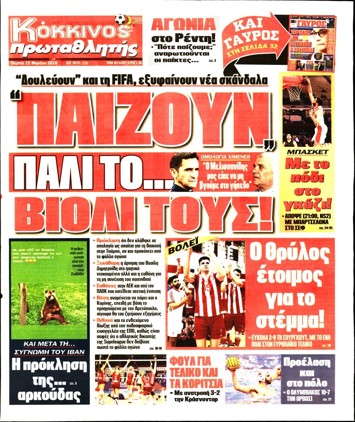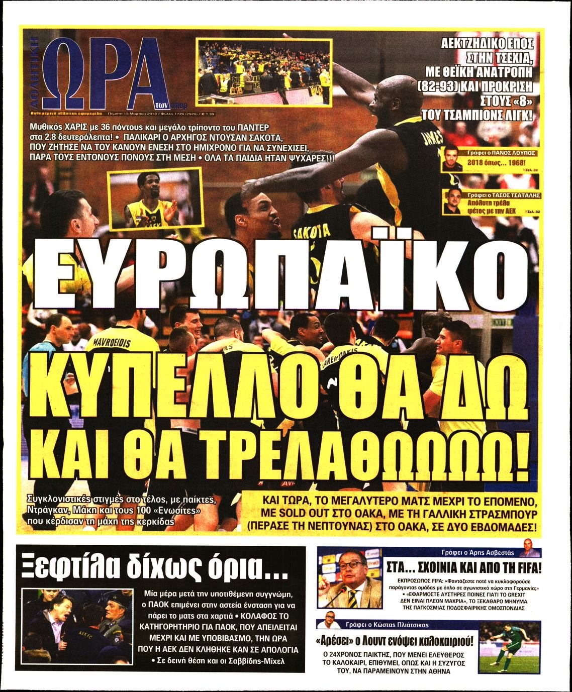 Οι αθλητικές εφημερίδες 15/3/2018 Enikos Newsroom 07:25, Πέμπτη 15 Μαρτίου 2018 Media Διαβάστε τα σημερινά πρωτοσέλιδα των αθλητικών εφημερίδων: ΑΘΛΗΤΙΚΕΣ ΕΦΗΜΕΡΙΔΕΣ ΠΡΩΤΟΣΕΛΙΔΑ Μοιράσου το: σχολίασε κι εσύ (0 σχόλια) Ακολουθήστε το enikos.gr στο Google News και μάθετε πρώτοι όλες τις ειδήσεις Δείτε όλες τις τελευταίες ειδήσεις από την Ελλάδα και τον Κόσμο στο enikos.gr Ειδήσεις Ροή Ειδήσεων 5 ώρες πριν Χριστούγεννα στα μπλόκα: Επιμένουν στις κινητοποιήσεις τους οι αγρότες – Ανοίγουν τα διόδια το Σαββατοκύριακο 5 ώρες πριν Ουκρανία: Η άνευ προηγουμένου επίθεση σε ρωσικό τάνκερ στη Μεσόγειο και το μήνυμα προς στον Πούτιν – Το «μακρύ χέρι» του Κιέβου 4 ώρες πριν Πούτιν: Τα μηνύματα σε Ευρώπη και ΝΑΤΟ από το μαραθώνιο «σόου» του – Η απαίτηση για «σεβασμό» και η ειρήνη «με τους όρους» της Μόσχας 5 ώρες πριν Τραμπ: Δεν αποκλείει την πιθανότητα ενός πολέμου στη Βενεζουέλα – «Ο Μαδούρο ξέρει καλύτερα από τον καθένα τι ακριβώς θέλω» 6 ώρες πριν Συνεχίζει να προκαλεί ο Μίτσκοσκι: «Για μένα το όνομα Μακεδονία είναι ιερό» 4 ώρες πριν Ανακαλύφθηκαν αρχαία χρυσά νομίσματα 2.200 ετών που απεικονίζουν τον θεό Απόλλωνα – Η άγνωστη σύνδεση με τον Φίλιππο Β΄ της Μακεδονίας 5 ώρες πριν Ύπνος: Μια κρυφή κατάσταση του εγκεφάλου πριν από τον ύπνο μπορεί να είναι το “κλειδί” για υψηλή ευφυΐα και δημιουργικότητα 6 ώρες πριν Αριθμολογία: Οι άνθρωποι που έχουν γεννηθεί αυτές τις 4 ημερομηνίες, συχνά παρεξηγούνται – «Η καλοσύνη τους κρύβει τεράστια δύναμη» 7 ώρες πριν Ξεχάστε το καθάρισμα το Σαββατοκύριακο: Ο «κανόνας των 20 λεπτών» που θα σας λύσει τα χέρια 9 λεπτά πριν Η Ελλάδα προσχωρεί στη Διεθνή Επιτροπή Αποζημιώσεων για την Ουκρανία 23 λεπτά πριν GNTM: Η Ξένια Τσίρκοβα αναδείχθηκε μεγάλη νικήτρια και πήρε τις 50.000 ευρώ – Ποιος βρέθηκε σε απόσταση αναπνοής; 38 λεπτά πριν Θεσσαλονίκη: Εξαφανίστηκε 13χρονος από χώρο φιλοξενίας ασυνόδευτων ανηλίκων στο Ωραιόκαστρο 49 λεπτά πριν Ντόναλντ Τραμπ: «Πολύ βαριά αντίποινα» στη Συρία – «Πλήττουμε πολύ δυνατά οχυρά του Ισλαμικού Κράτους» 1 ώρα πριν Εξάρχεια: Ένταση με μολότοφ, χημικά και κρότου λάμψης ENIKOS NETWORK Το ΕΚΑΒ τιμήθηκε από την Ακαδημία Αθηνών για τα 40 χρόνια προσφοράς του Έχετε πραγματικά μεγάλη καρδιά; 10 χαρακτηριστικά όσων έχουν καλοσύνη Αναστολή μέτρων αναγκαστικής εκτέλεσης για κτηνοτρόφους που πλήττονται από την ευλογιά των αιγοπροβάτων Πλήρης επάρκεια προϊόντων στις λαϊκές της Αττικής, παρά τις αγροτικές κινητοποιήσεις – Τι απαντούν οι πωλητές Χαρτογραφώντας το «σημείο χωρίς επιστροφή»: Για πρώτη φορά αποκαλύπτεται με λεπτομέρεια το ακανθώδες όριο της ατμόσφαιρας τ... Η Google καταργεί τη λειτουργία «dark web report» – Πώς θα μπορούν οι χρήστες να διαγράφουν τα δεδομένα τους περισσότερα 02:50 , Σάββατο 20 Δεκεμβρίου 2025 GNTM: Η Ξένια Τσίρκοβα αναδείχθηκε μεγάλη νικήτρια και πήρε τις 50.000 ευρώ – Ποιος βρέθηκε σε απόσταση αναπνοής; Με φαντασμαγορικό τρόπο ολοκληρώθηκε το βράδυ της Παρασκευής ο μεγάλος τελικός του GNTM, μέσα ... 22:42 , Παρασκευή 19 Δεκεμβρίου 2025 Γιώργος Γιαννόπουλος για “Το σόι σου”: “Είναι ευτυχία και ευλογία αυτή η σειρά” «Είναι ευτυχία και ευλογία η συγκυρία αυτής της σειράς», θα πει ο Γιώργος Γιαννόπουλος -ο αγαπ... 20:37 , Παρασκευή 19 Δεκεμβρίου 2025 Don’t Forget The Lyrics: Η Έλλη Κοκκίνου υποδέχεται 4 παίκτες που θα κάνουν τα πάντα για να μη χάσουν ούτε… μισή λέξη από τους στίχους Το «Don’t Forget The Lyrics» επιστρέφει απόψε, Παρασκευή 19 Δεκεμβρίου, στις 21:00 με νέο