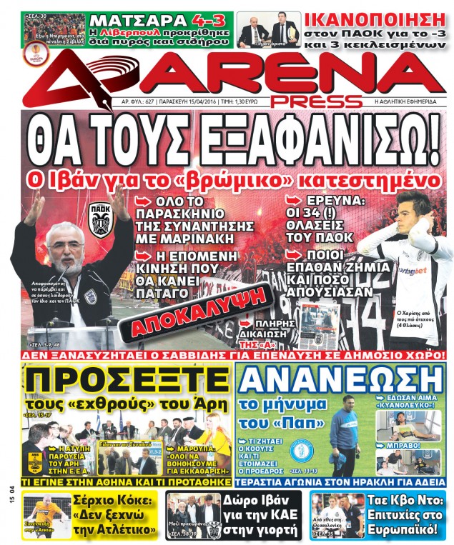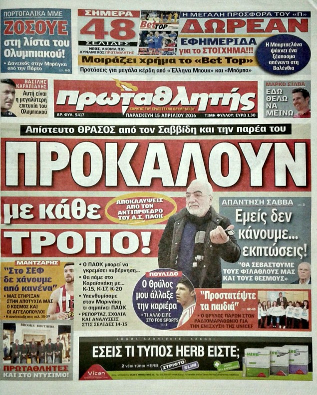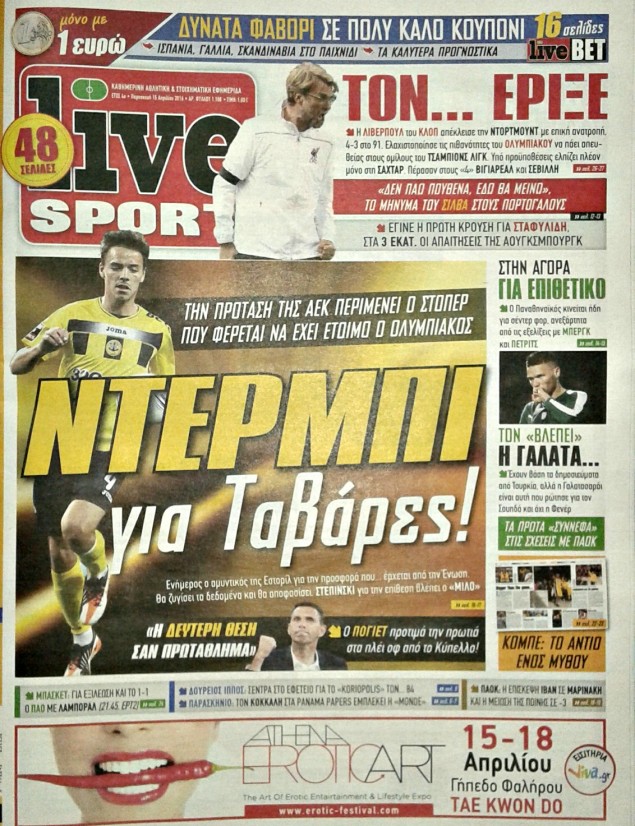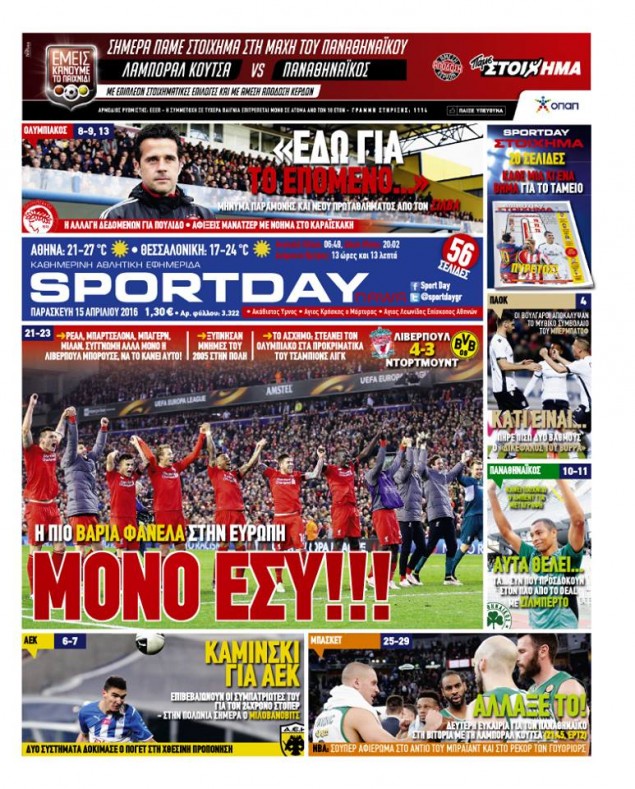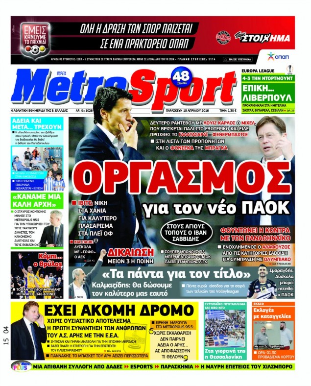 Oι αθλητικές εφημερίδες 15/4/2016 Enikos Newsroom 04:51, Παρασκευή 15 Απριλίου 2016 Media Διαβάστε τα σημερινά πρωτοσέλιδα των αθλητικών εφημερίδων: ΑΘΛΗΤΙΚΕΣ ΕΦΗΜΕΡΙΔΕΣ ΠΡΩΤΟΣΕΛΙΔΑ Μοιράσου το: σχολίασε κι εσύ (0 σχόλια) Ακολουθήστε το enikos.gr στο Google News και μάθετε πρώτοι όλες τις ειδήσεις Δείτε όλες τις τελευταίες ειδήσεις από την Ελλάδα και τον Κόσμο στο enikos.gr Ειδήσεις Ροή Ειδήσεων 4 ώρες πριν Αγρότες: «Όχι στον διάλογο, μας εμπαίζει η κυβέρνηση» – Αποφάσισαν κλιμάκωση των κινητοποιήσεων, τι θα γίνει τα Χριστούγεννα 47 λεπτά πριν Αθήνα: Εξαρθρώθηκε εγκληματική οργάνωση που διακινούσε ναρκωτικά σε μορφή σοκολάτας – Δύο τράπερ ανάμεσα στους 4 συλληφθέντες – ΒΙΝΤΕΟ 56 λεπτά πριν Στη φυλακή ο «Έλληνας Εσκομπάρ» και τρεις συνεργοί του για το φορτίο με την κοκαΐνη – Τι υποστήριξε στην απολογία του 2 ώρες πριν Γιώργος Μαζωνάκης: «Έχει υποστεί ένα σωρό εκβιαστικές πρακτικές – Του είπαν ότι θα του βάλουν τον συγκεκριμένο άνθρωπο να τον καταγγείλει» 34 λεπτά πριν Γεωργιάδης για Κωνσταντοπούλου: «Έχει καταφέρει να ξεπεράσει ακόμη και τον εαυτό της – Το ερώτημα είναι “γιατί τώρα;”» 5 ώρες πριν Τα 5 ζώδια που θα ευνοηθούν στα οικονομικά τους το 2026 – «Τραβούν το χρήμα σαν μαγνήτες» 2 ώρες πριν Γάμος: 11 ψυχρές αλλά ευγενικές φράσεις, που λέει ένας άνδρας όταν σκέφτεται τον χωρισμό 42 λεπτά πριν Σφουγγάρισμα: Η συνήθεια που θα σας βοηθήσει να διατηρήσετε το σπίτι σας καθαρό και τακτοποιημένο 1 ημέρα πριν 20 χρόνια τα Χριστούγεννα ξεκινούν στα Public με μεγάλη ποικιλία σε δώρα! 3 λεπτά πριν ΗΠΑ: Νέες φωτογραφίες από τον φάκελο Επστάιν έδωσαν στην δημοσιότητα οι Δημοκρατικοί 9 λεπτά πριν ΕΦΕΤ: Συμβουλές για ασφαλή κατανάλωση τροφίμων κατά την εορταστική περίοδο των Χριστουγέννων 17 λεπτά πριν Φάμελλος: Η κινητοποίηση των αγροτών είναι για το συμφέρον όλων των κοινωνικών ομάδων – Πρέπει να φύγετε το συντομότερο 21 λεπτά πριν Primeira Liga: 8ος πιο ακριβός παίκτης στην Πορτογαλία ο Παυλίδης με αξία 35 εκατ. ευρώ – 27ος ο Ιωαννίδης, 45ος ο Βαγιαννίδης 26 λεπτά πριν Λένα Μαντά: «Με τον πατέρα μου δεν έχω ούτε μία καλή ανάμνηση» ENIKOS NETWORK Σκέφτεστε συνέχεια συζητήσεις που έχετε κάνει; Τι σημαίνει αυτό, σύμφωνα με ειδικό Ξεκίνησε η «επέλαση» της γρίπης στην Ελλάδα-Ποιοι κινδυνεύουν Servicers: Μικρή μείωση στα κόκκινα δάνεια που διαχειρίζονται – Αναλυτικά τα στοιχεία ΑΑΔΕ: “Αλλάζει πρόσωπο” το Φορολογικό Μητρώο για πολίτες και επιχειρήσεις – Όλες οι λεπτομέρειες Χαρτογραφώντας το «σημείο χωρίς επιστροφή»: Για πρώτη φορά αποκαλύπτεται με λεπτομέρεια το ακανθώδες όριο της ατμόσφαιρας τ... Η Google καταργεί τη λειτουργία «dark web report» – Πώς θα μπορούν οι χρήστες να διαγράφουν τα δεδομένα τους περισσότερα 17:45 , Πέμπτη 18 Δεκεμβρίου 2025 ROUK ZOUK: Εορταστικό επεισόδιο με καλεσμένους τους πρωταγωνιστές του «Γιατί ρε πατέρα» Το Σάββατο 20 Δεκεμβρίου στις 21:00, η Ζέτα Μακρυπούλια υποδέχεται εκλεκτούς ηθοποιούς που όλο... 17:20 , Πέμπτη 18 Δεκεμβρίου 2025 Άγιος έρωτας: Η Χριστίνα εξομολογείται στον πατέρα Νικόλαο, απόψε στις 21:00 στον Alpha Η Νότα αποφασίζει να εκδικηθεί τον Πέτρο και τον Στέφανο, για χάρη του Λούη, όμως τα πράγματα ... 16:50 , Πέμπτη 18 Δεκεμβρίου 2025 Να μ’ αγαπάς: Ζωή και Φωτεινή συμφιλιώνονται ως μάνα με κόρη, απόψε στις 20:00 Η ταυτότητα του Άγγελου αποκαλύπτεται στο νέο επεισόδιο της σειράς “Να μ’ αγαπάς... 15:52 , Πέμπτη 18 Δεκεμβρίου 2025 Το Σπίτι Δίπλα Στο Ποτάμι: Το καθηλωτικό τελευταίο επεισόδιο για το 2025 απόψε στις 22:30 