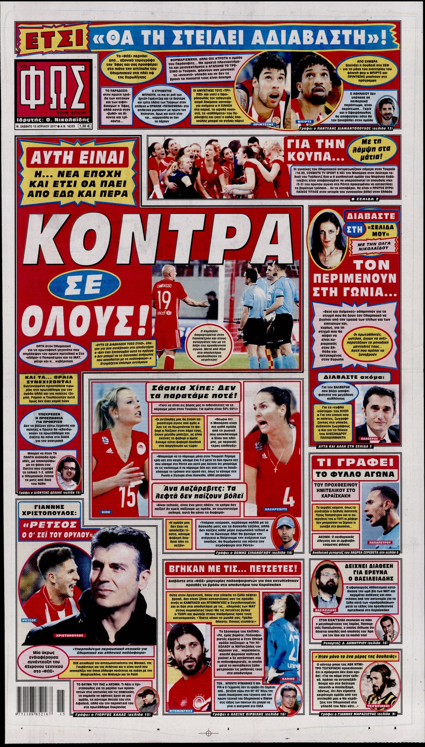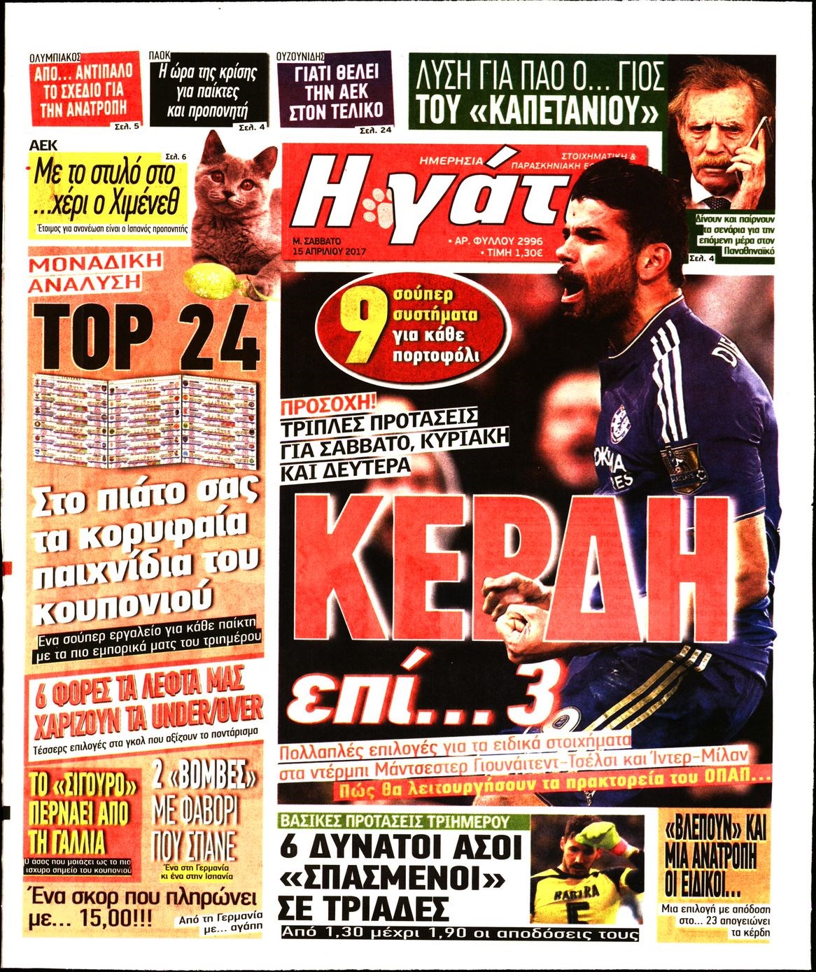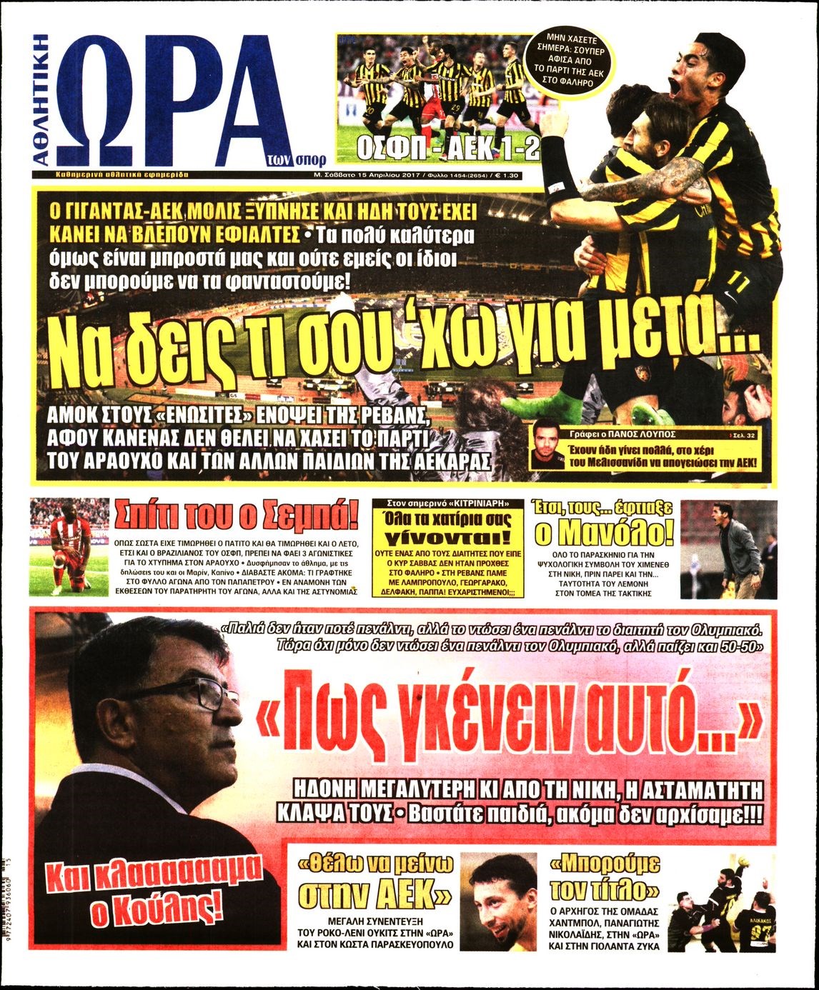 Οι αθλητικές εφημερίδες 15/4/2017 Enikos Newsroom 06:38, Σάββατο 15 Απριλίου 2017 Media Διαβάστε τα σημερινά πρωτοσέλιδα των αθλητικών εφημερίδων: ΑΘΛΗΤΙΚΕΣ ΕΦΗΜΕΡΙΔΕΣ ΠΡΩΤΟΣΕΛΙΔΑ Μοιράσου το: σχολίασε κι εσύ (0 σχόλια) Ακολουθήστε το enikos.gr στο Google News και μάθετε πρώτοι όλες τις ειδήσεις Δείτε όλες τις τελευταίες ειδήσεις από την Ελλάδα και τον Κόσμο στο enikos.gr Ειδήσεις Ροή Ειδήσεων 1 ώρα πριν Φοροδιαφυγή: Ποιοι φορολογούμενοι κινδυνεύουν να πληρώσουν «τσουχτερά» πρόστιμα 22 λεπτά πριν Φοινικούντα: Παραδόθηκε 30χρονος στην Καλαμάτα για τη διπλή δολοφονία 39 λεπτά πριν Αγρότες: Ανυποχώρητοι στα μπλόκα – Στις Σέρρες σήμερα η κρίσιμη συνεδρίαση της Πανελλαδικής Επιτροπής 51 λεπτά πριν Τα επίσημα χρονοδιαγράμματα που η Τουρκία θα παραλάβει τα Eurofighter 9 ώρες πριν «Θύελλα» αντιδράσεων για τον Νίκο Παππά μετά την επίθεση στον δημοσιογράφο Νίκο Γιαννόπουλο – Η μήνυση, οι δηλώσεις και η έξοδος από την ευρωομάδα του ΣΥΡΙΖΑ 2 ώρες πριν Καούρα: Το μπαχαρικό που είναι «εξίσου αποτελεσματικό» με την ομεπραζόλη, σύμφωνα με ειδικούς 3 ώρες πριν Τα ζώδια σήμερα, Πέμπτη 18 Δεκεμβρίου: Λέοντες, η καρδιά σας θέλει να εκφραστεί 2 ώρες πριν Οπτική ψευδαίσθηση: Μόνο οι πιο έξυπνοι άνθρωποι θα βρουν 7 ξωτικά 15 δευτερόλεπτα 23 ώρες πριν 20 χρόνια τα Χριστούγεννα ξεκινούν στα Public με μεγάλη ποικιλία σε δώρα! 5 λεπτά πριν Αλμπέρτο Εσκενάζυ: Το μεσημέρι το «τελευταίο αντίο» στο αποτεφρωτήριο της Ριτσώνας – Η απόφαση της οικογένειάς του 9 λεπτά πριν Τραγωδία στη Θεσσαλονίκη: Νεκρή η 57χρονη που παρασύρθηκε από αυτοκίνητο στον Εύοσμο 14 λεπτά πριν Ανακαλύφθηκαν σπάνια λυχνία λαδιού και μια γραφίδα 2.000 ετών 19 λεπτά πριν Την Κυριακή με τη Realnews: Δωροεπιταγή 10€ 22 λεπτά πριν Φοινικούντα: Παραδόθηκε 30χρονος στην Καλαμάτα για τη διπλή δολοφονία ENIKOS NETWORK Ουρική αρθρίτιδα: Μεγάλη μελέτη αποκαλύπτει τι μπορεί να προκαλεί τη νόσο Τι σημαίνει όταν ο σκύλος σας σάς φέρνει τυχαία αντικείμενα, σύμφωνα με εκπαιδεύτρια Οφειλές προς το Δημόσιο: «Φρένο» στα σενάρια για νέα ρύθμιση – Τι απαντά το υπουργείο Εθνικής Οικονομίας και Οικονομικών Φοροδιαφυγή: Ποιοι φορολογούμενοι κινδυνεύουν να πληρώσουν «τσουχτερά» πρόστιμα Χαρτογραφώντας το «σημείο χωρίς επιστροφή»: Για πρώτη φορά αποκαλύπτεται με λεπτομέρεια το ακανθώδες όριο της ατμόσφαιρας τ... Η Google καταργεί τη λειτουργία «dark web report» – Πώς θα μπορούν οι χρήστες να διαγράφουν τα δεδομένα τους περισσότερα 08:00 , Πέμπτη 18 Δεκεμβρίου 2025 Την Κυριακή με τη Realnews: Δωροεπιταγή 10€ Δωροεπιταγή αξίας 10€ για αγορές άνω των 60€ από τα πολυκαταστήματα FactoryOutlet H προσφορά ι... 07:50 , Πέμπτη 18 Δεκεμβρίου 2025 «Το σόι σου»: Backstage στα γυρίσματα για το εορταστικό επεισόδιο «Το σόι σου» φορά τα γιορτινά του για τα Χριστούγεννα και η Όλγα Λαφαζάνη, με την κάμερα του «... 07:36 , Πέμπτη 18 Δεκεμβρίου 2025 Οι αθλητικές μεταδόσεις 18/12/2025 – Πού θα δείτε τον αγώνα της ΑΕΚ με την Κραϊόβα για το Conference League Τα ματς ΑΕΚ – Ουνιβερσιτάτεα Κραϊόβα για το Conference League και Παναθηναϊκός – Χάποελ Τελ Αβ... 05:48 , Πέμπτη 18 Δεκεμβρίου 2025 Οι οικονομικές εφημερίδες 18/12/2025 Διαβάστε τα πρωτοσέλιδα από τις οικονομικές εφημερίδες, σήμερα 18/12/2025. ΤΕΛΕΥΤΑΙΕΣ ΕΙΔΗΣΕΙΣ 5 λεπτά πριν Αλμπέρτο Εσκενάζυ: Το μεσημέρι το «τελευταίο αντίο»... 9 λεπτά πριν Τραγωδία στη Θεσσαλονίκη: Νεκρή η 57χρονη που... 14 λεπτά πριν Ανακαλύφθηκαν σπάνια λυχνία λαδιού και μια γραφίδα... 19 λεπτά πριν Την Κυριακή με τη Realnews: Δωροεπιταγή 10€ 22 λεπτά πριν Φοινικούντα: 